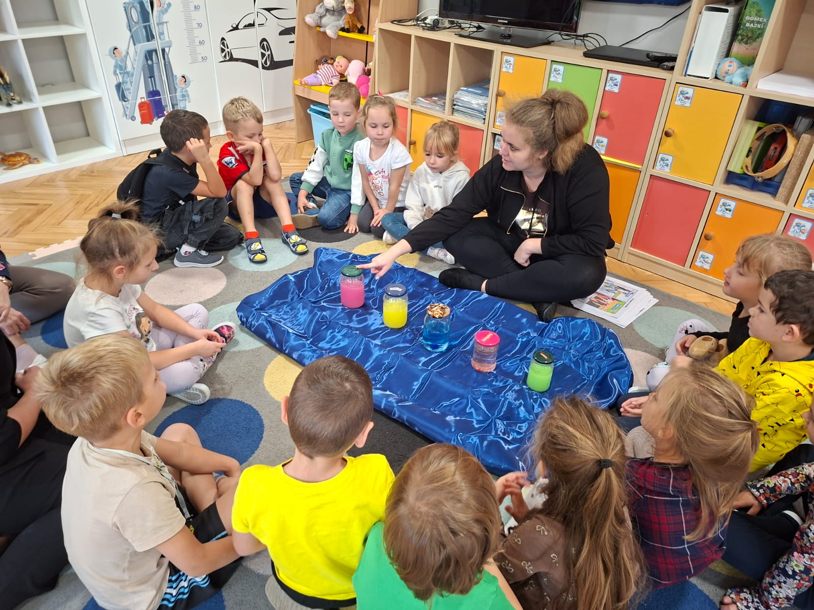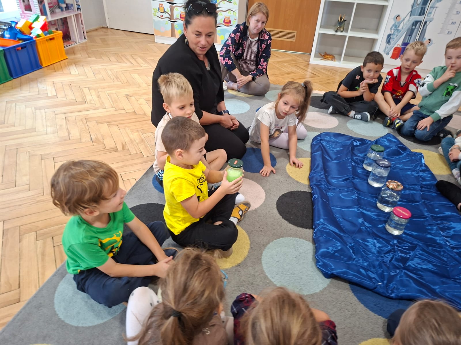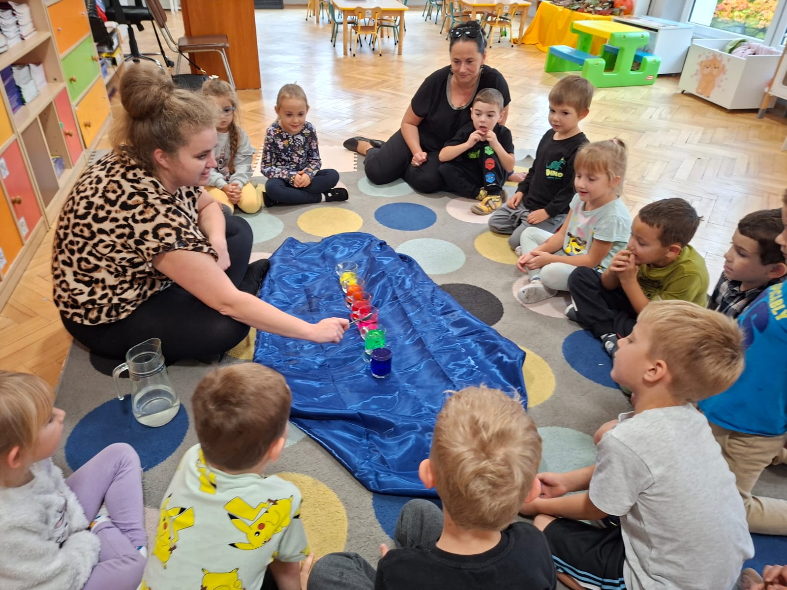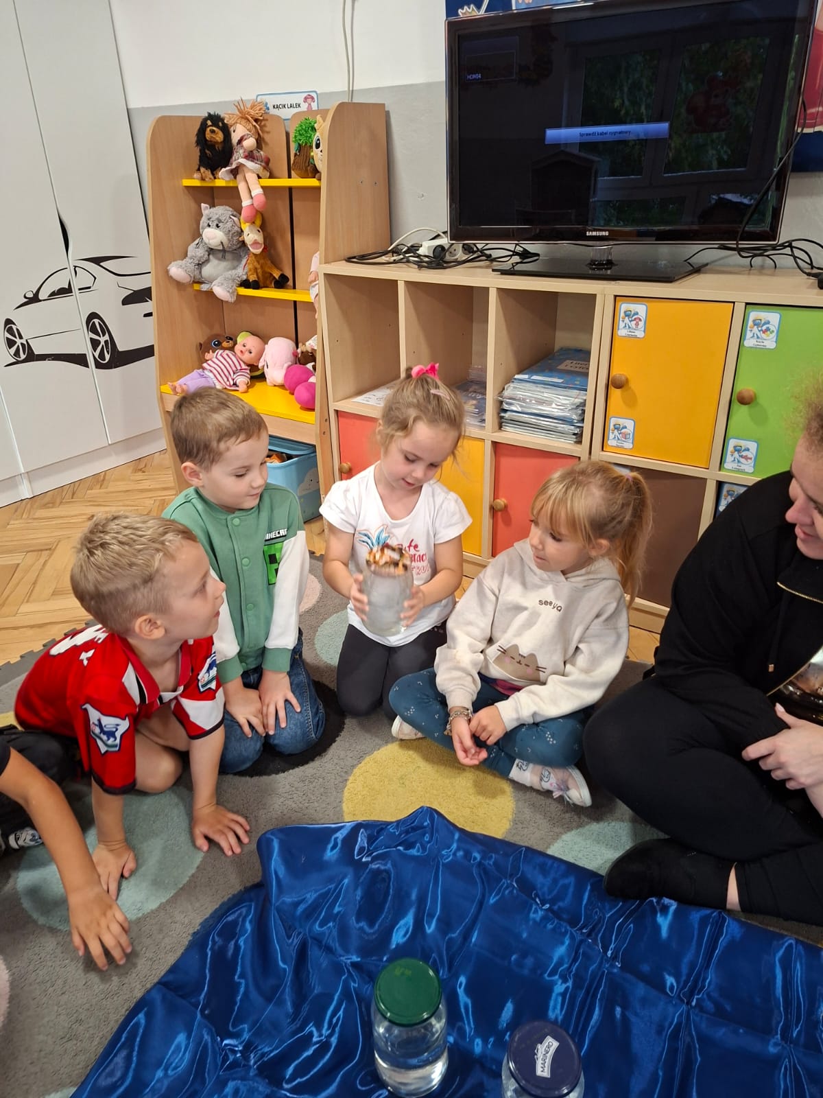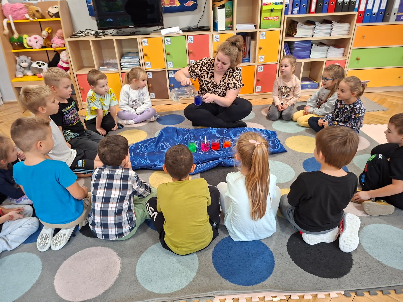 W minionych tygodniach dzieci zgłębiały tematy dotyczące pogody, jej uwarunkowań czy wahań pogodowych. Poznały nazwy zjawisk atmosferycznych. Nauczyły się piosenki "Pada, pada deszczyk..."