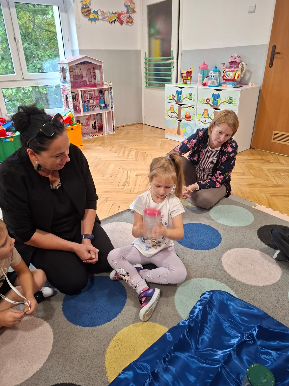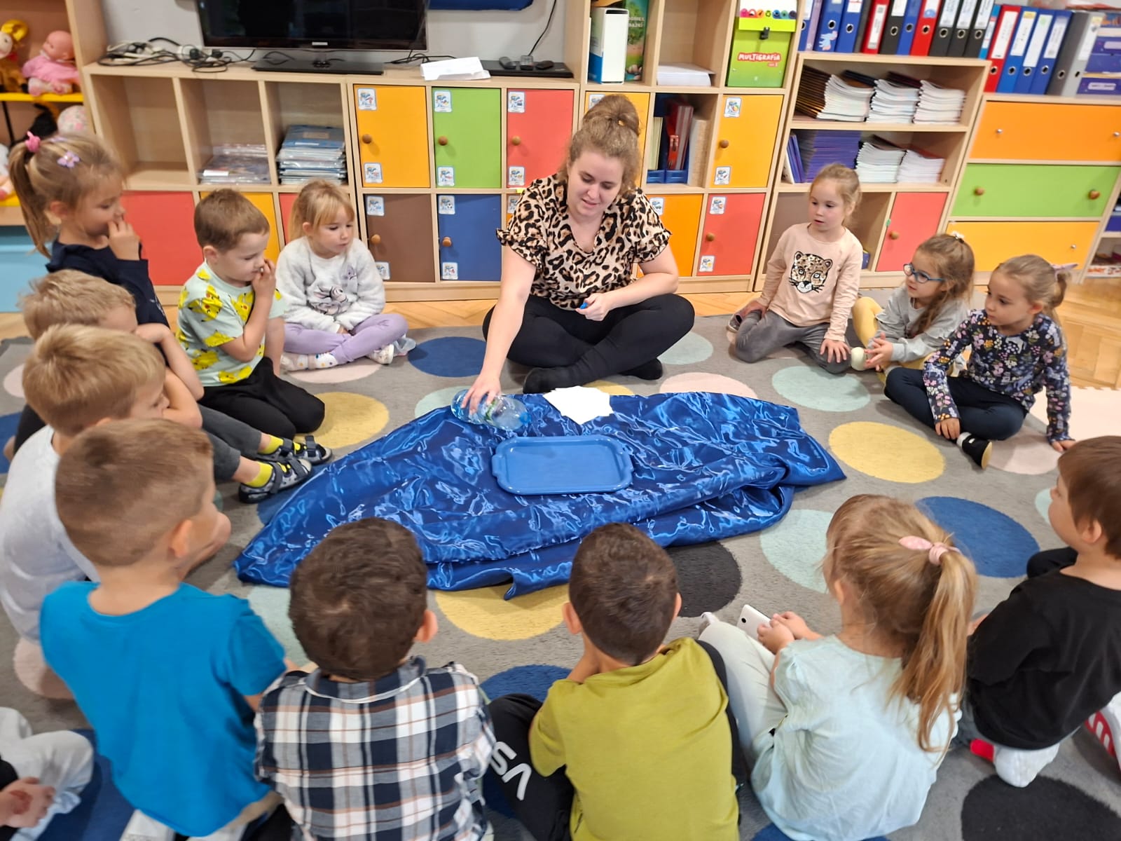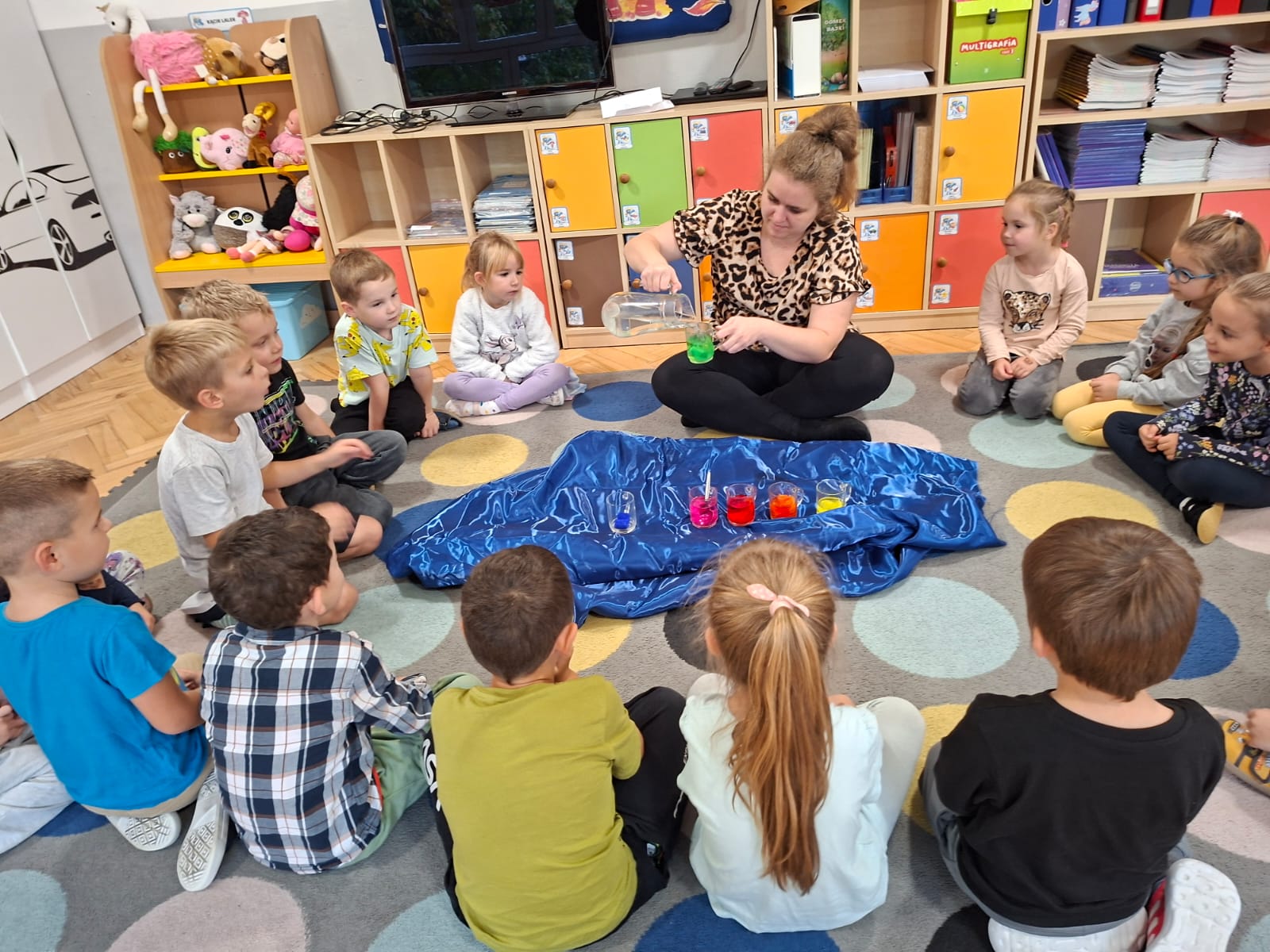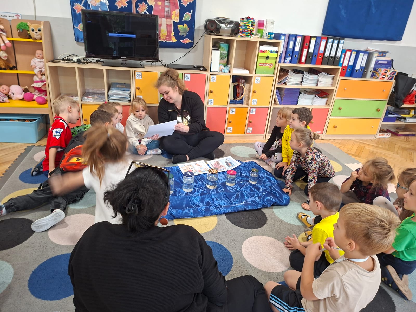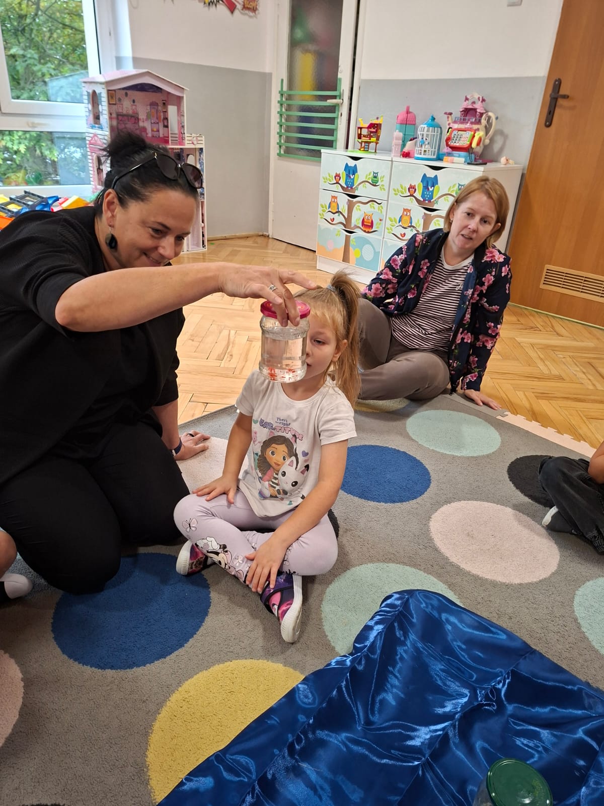 W minionych tygodniach dzieci zgłębiały tematy dotyczące pogody, jej uwarunkowań czy wahań pogodowych. Poznały nazwy zjawisk atmosferycznych. Nauczyły się piosenki "Pada, pada deszczyk..."