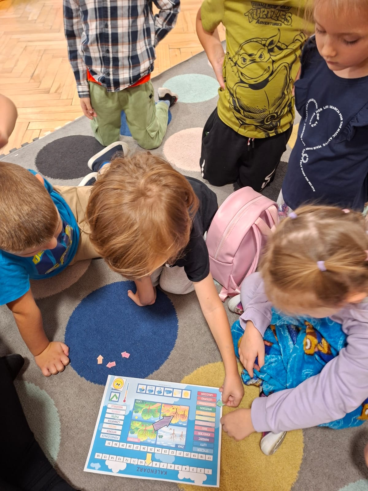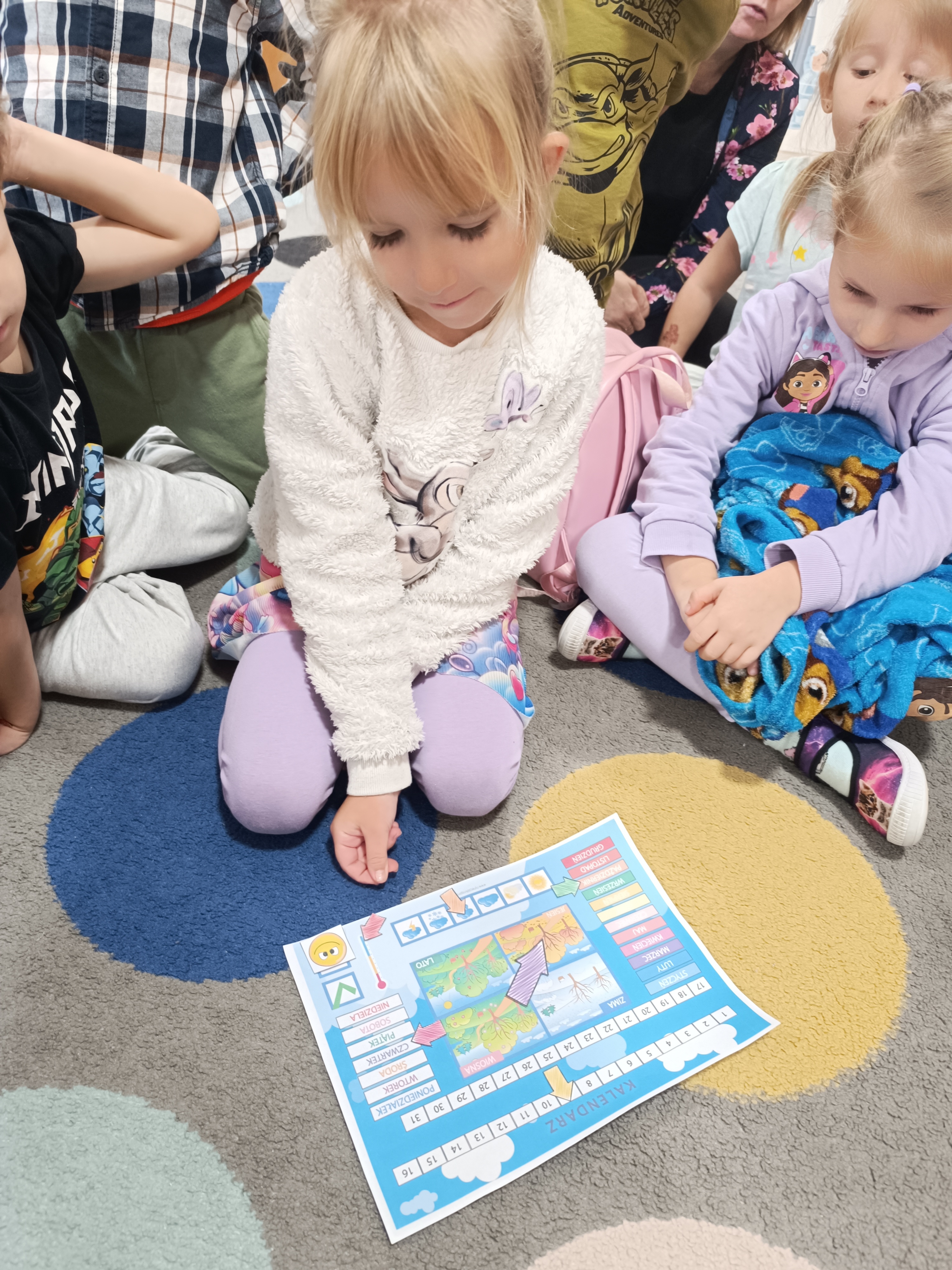 Wspólnie zrobiliśmy kalendarz pogodowy, określając aktualną pogodę, która była w ten dzień, temperaturę, porę roku, dzień.
