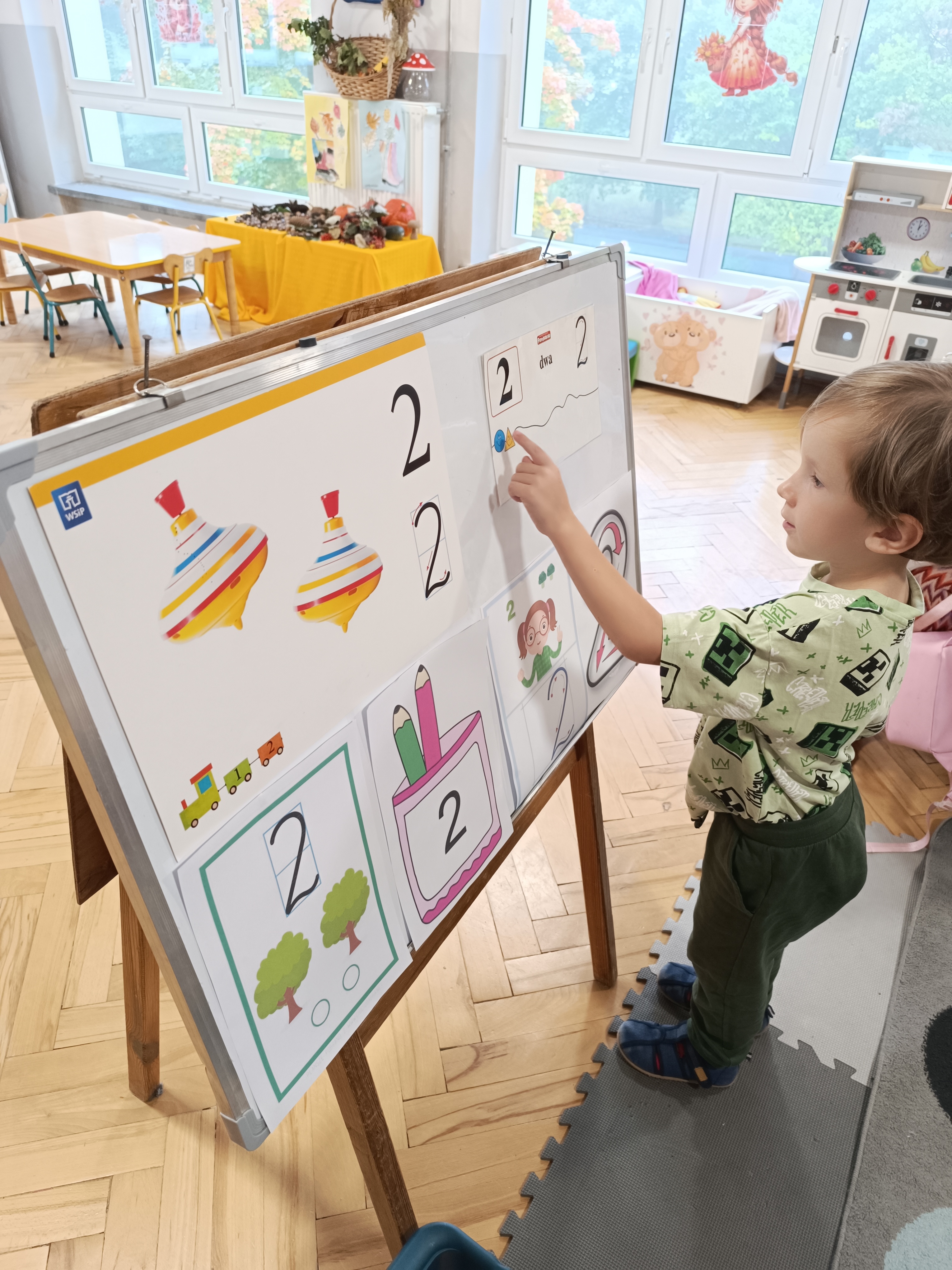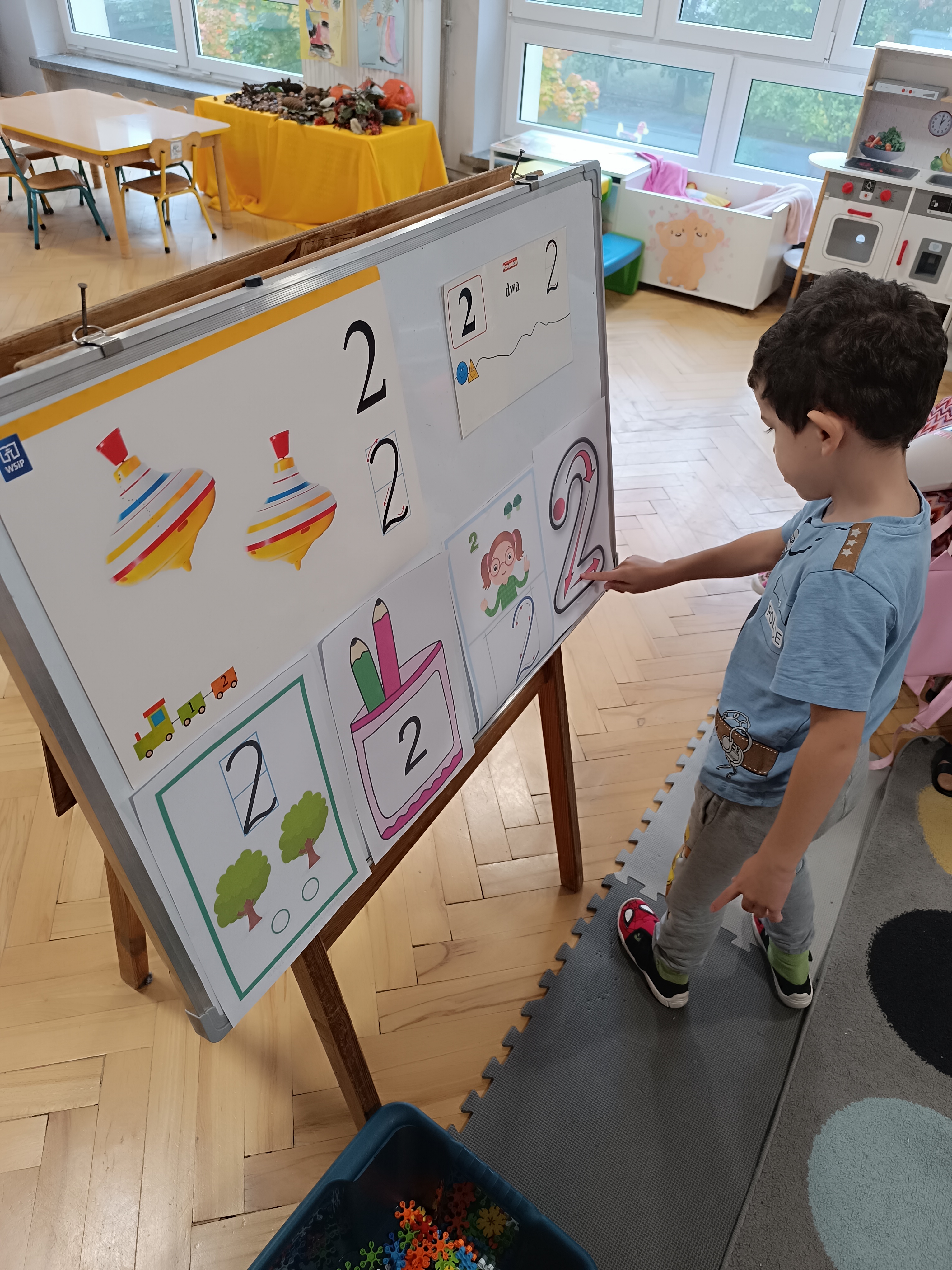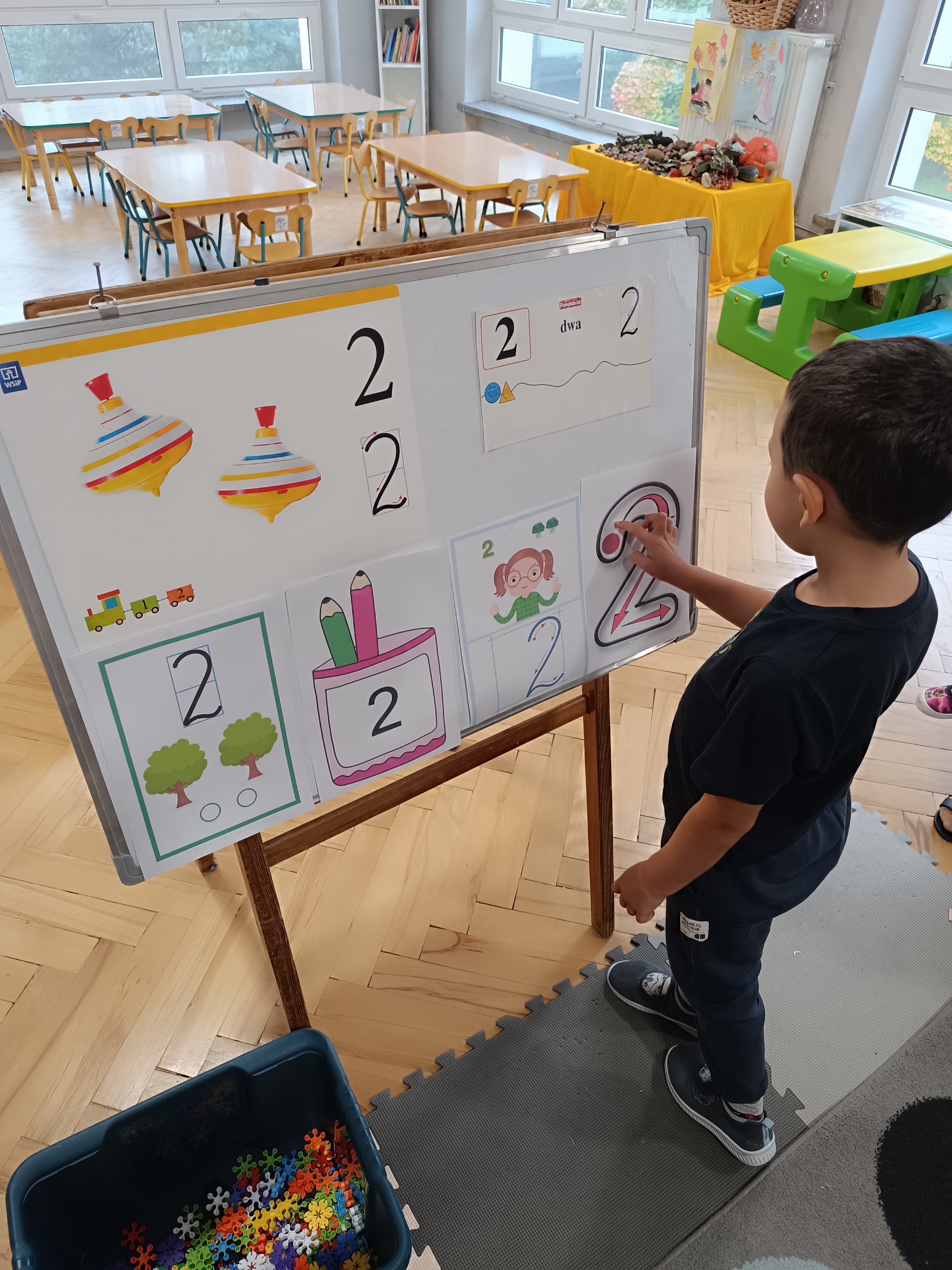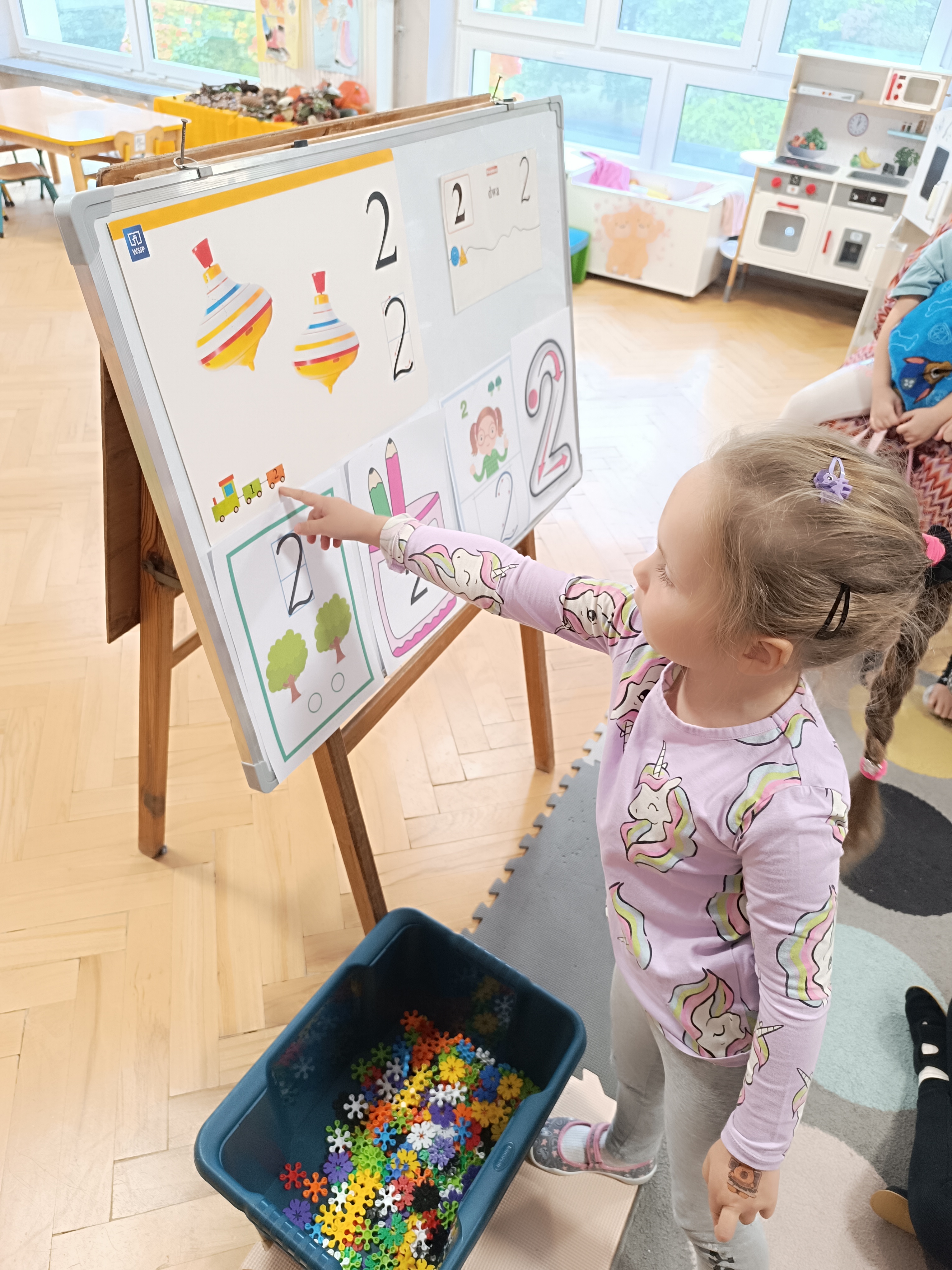 Smerfy w tym tygodniu zapoznały się z nową literką - M,m - zapoznały się z jej wyglądem pisanym jak również drukowanym , tworząc ją z klocków, rysując po śladzie, oraz cyferką - 2 , poznając na różne sposoby, dobierając się w pary - para to 2, układając cyferkę z klocków, układając cyferkę z puzzli, szukając cyferki ukrytej w sali.