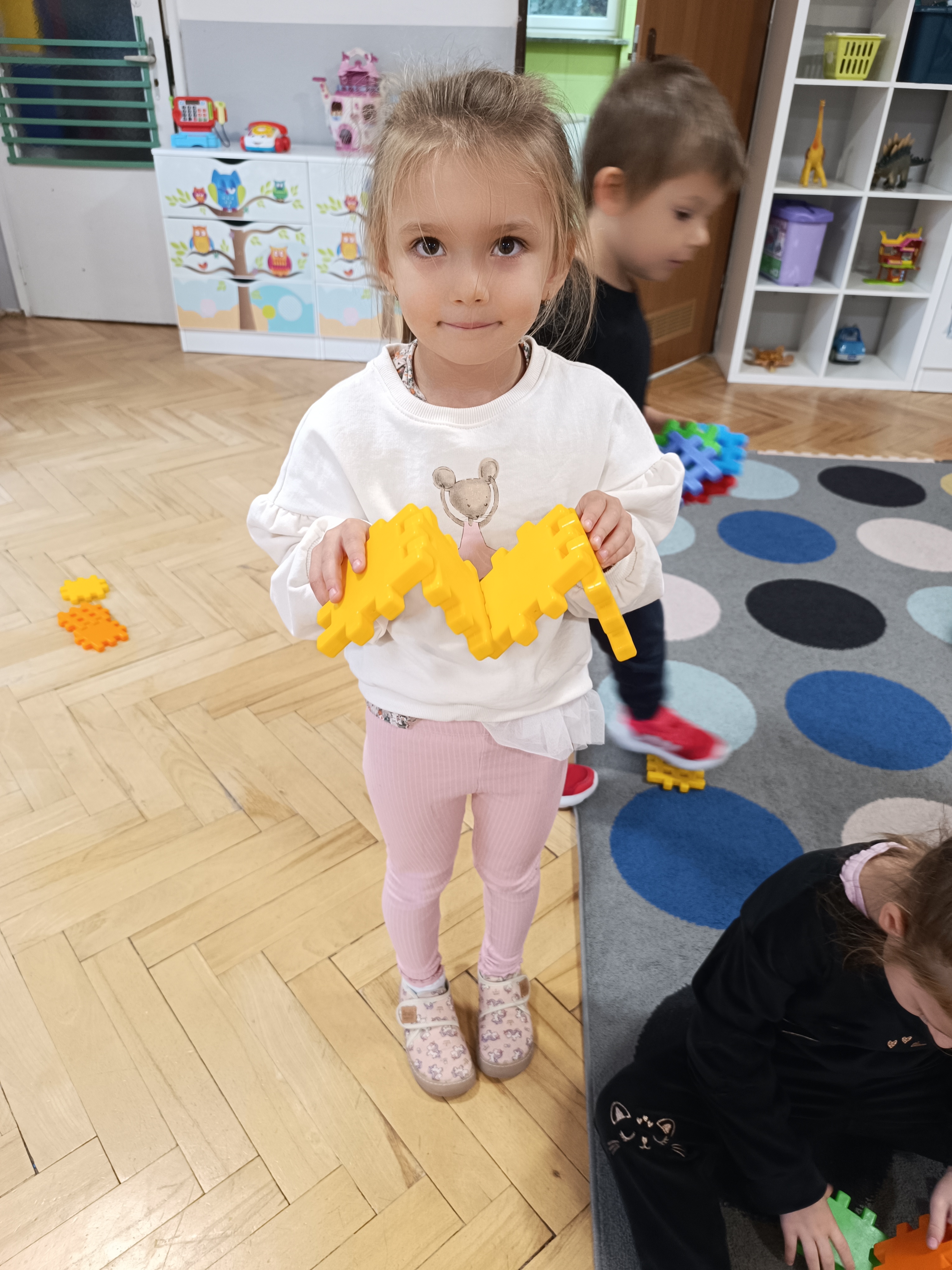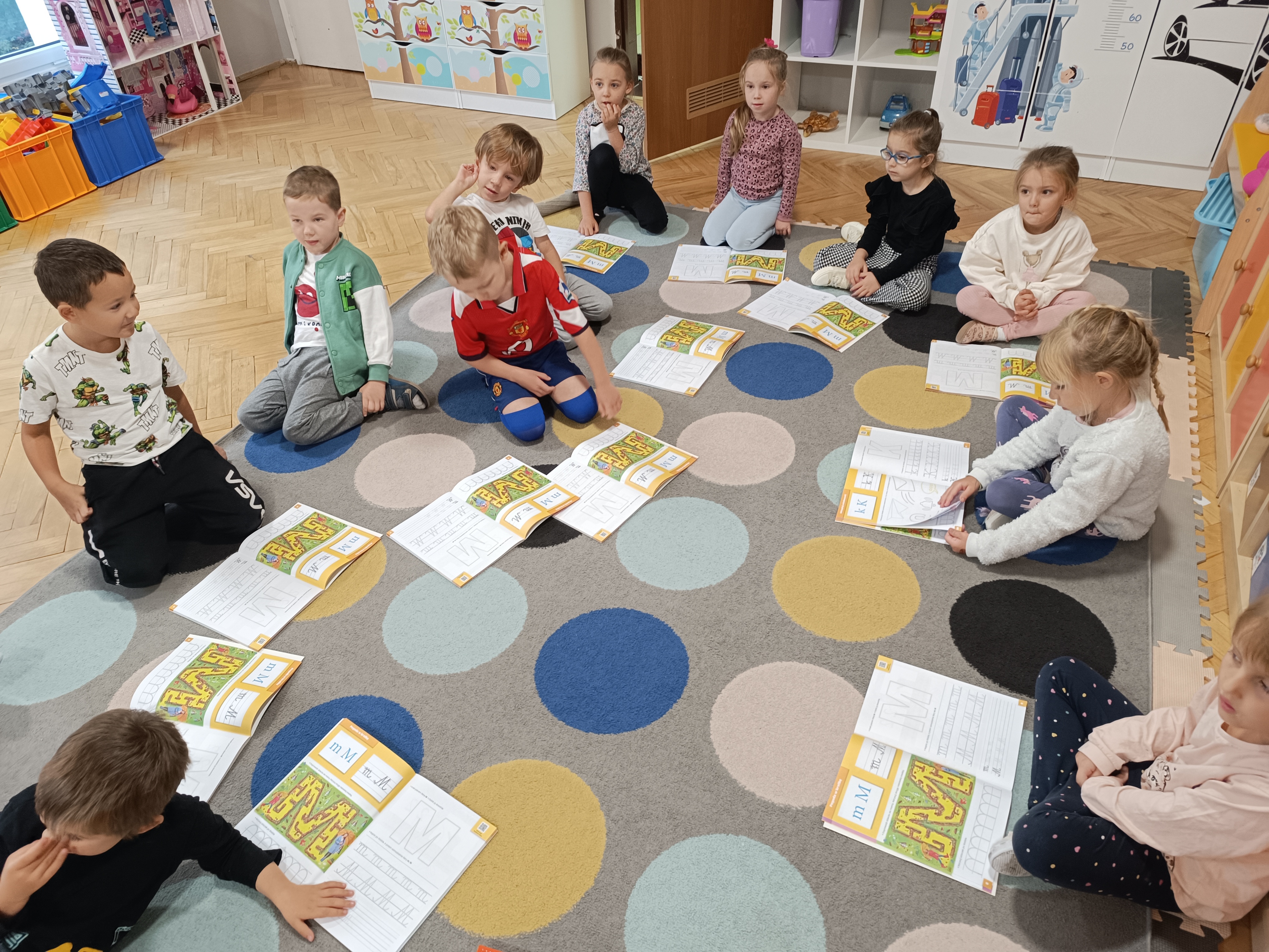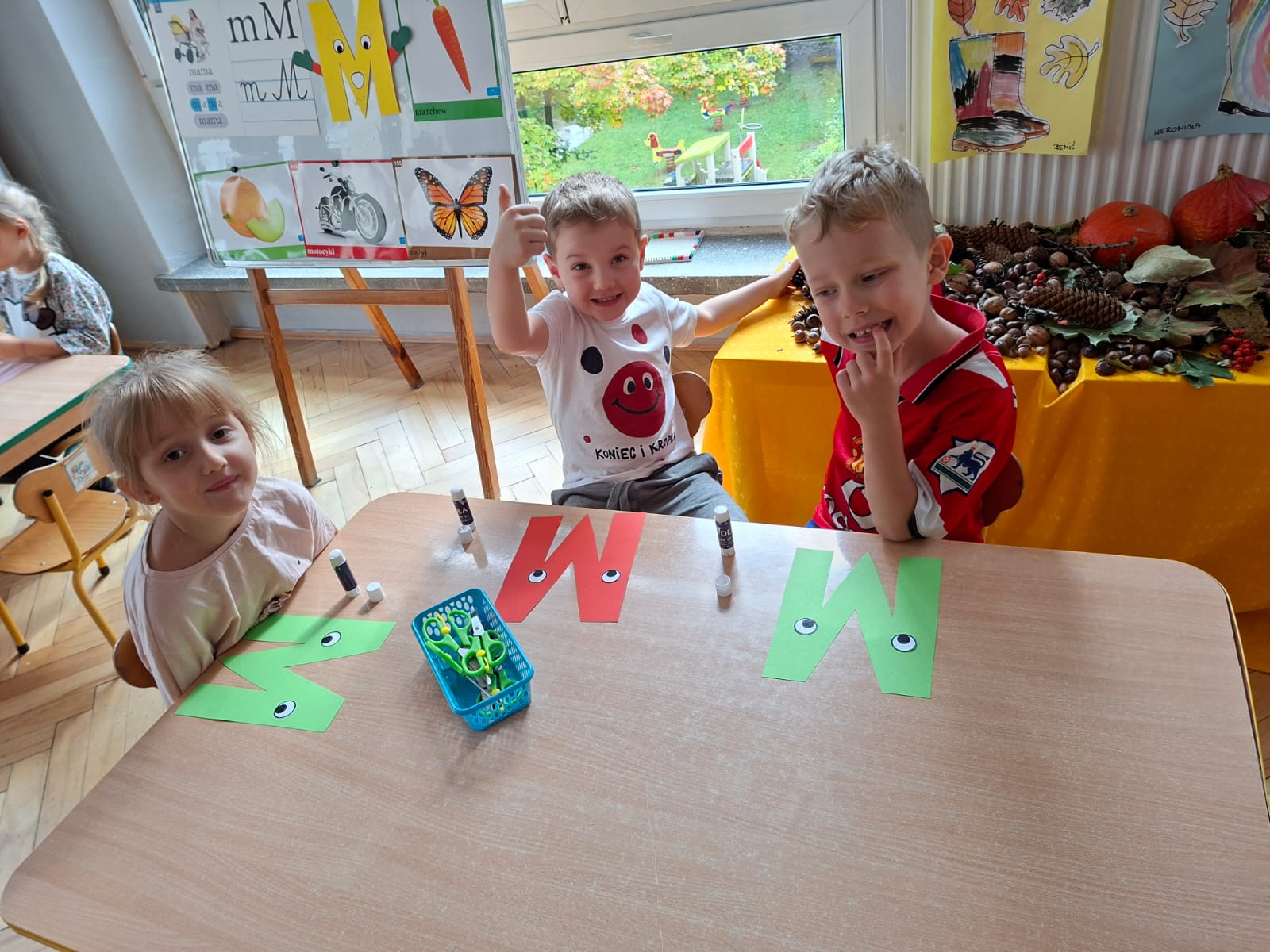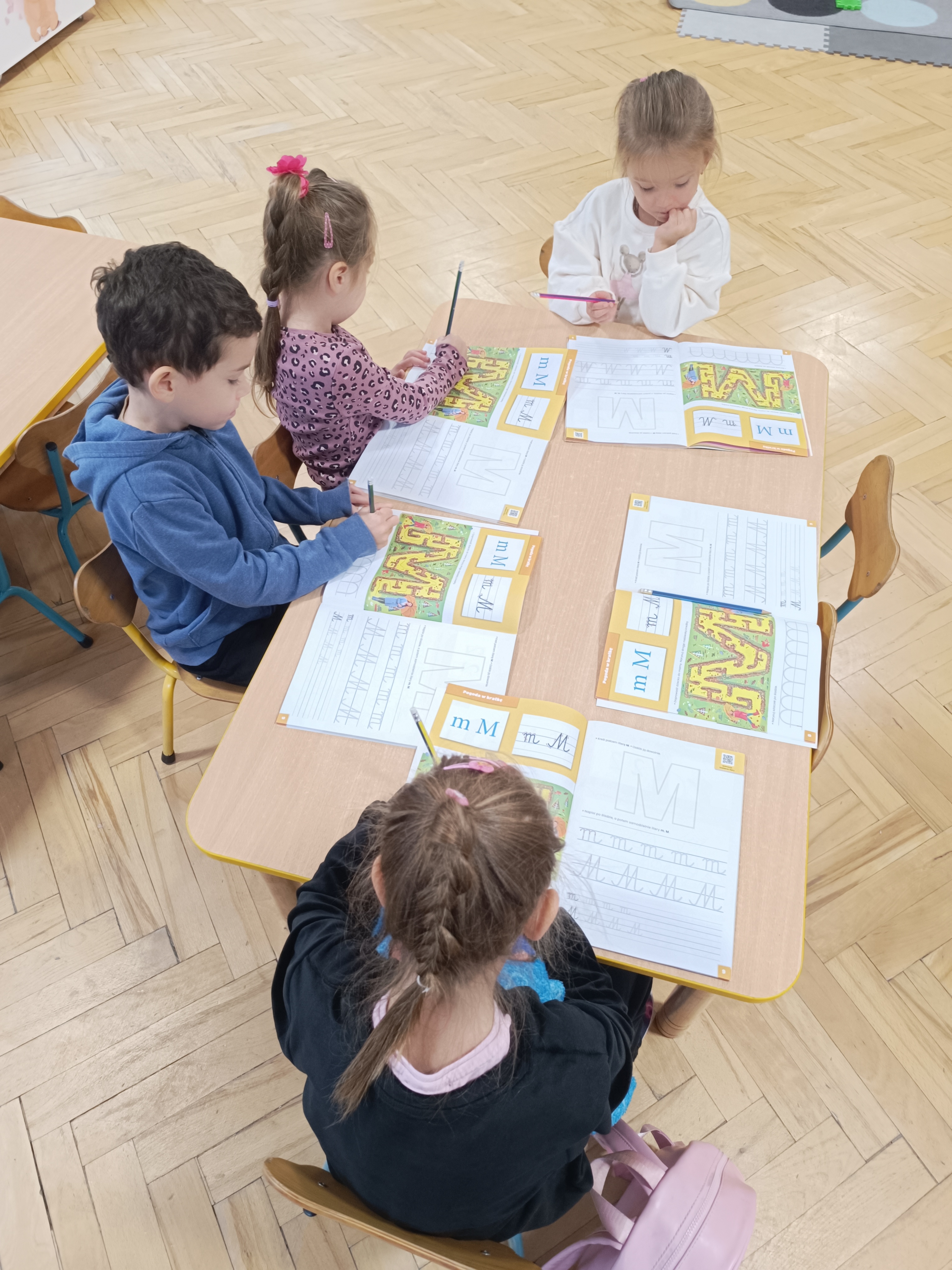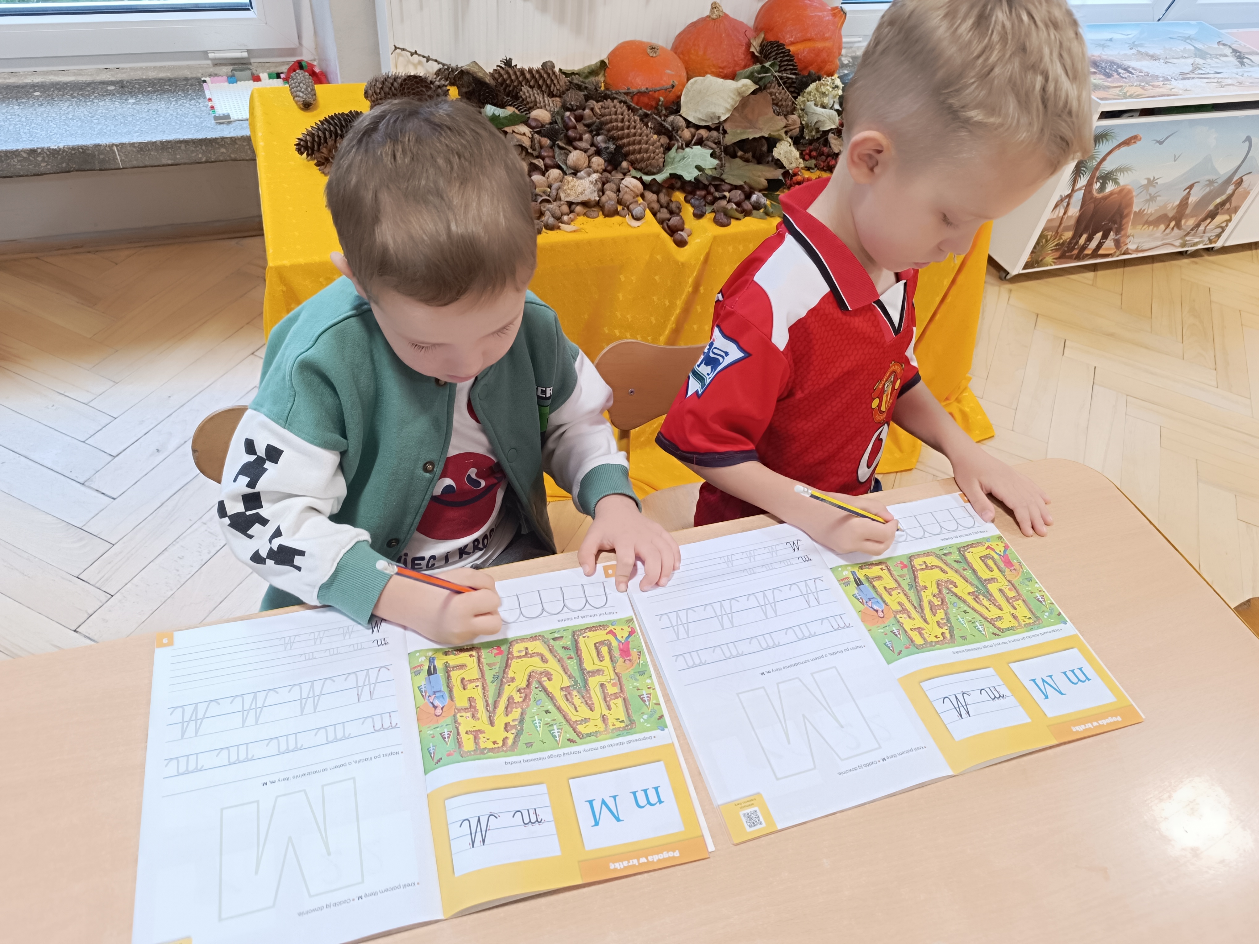 Smerfy w tym tygodniu zapoznały się z nową literką - M,m - zapoznały się z jej wyglądem pisanym jak również drukowanym , tworząc ją z klocków, rysując po śladzie, oraz cyferką - 2 , poznając na różne sposoby, dobierając się w pary - para to 2, układając cyferkę z klocków, układając cyferkę z puzzli, szukając cyferki ukrytej w sali.