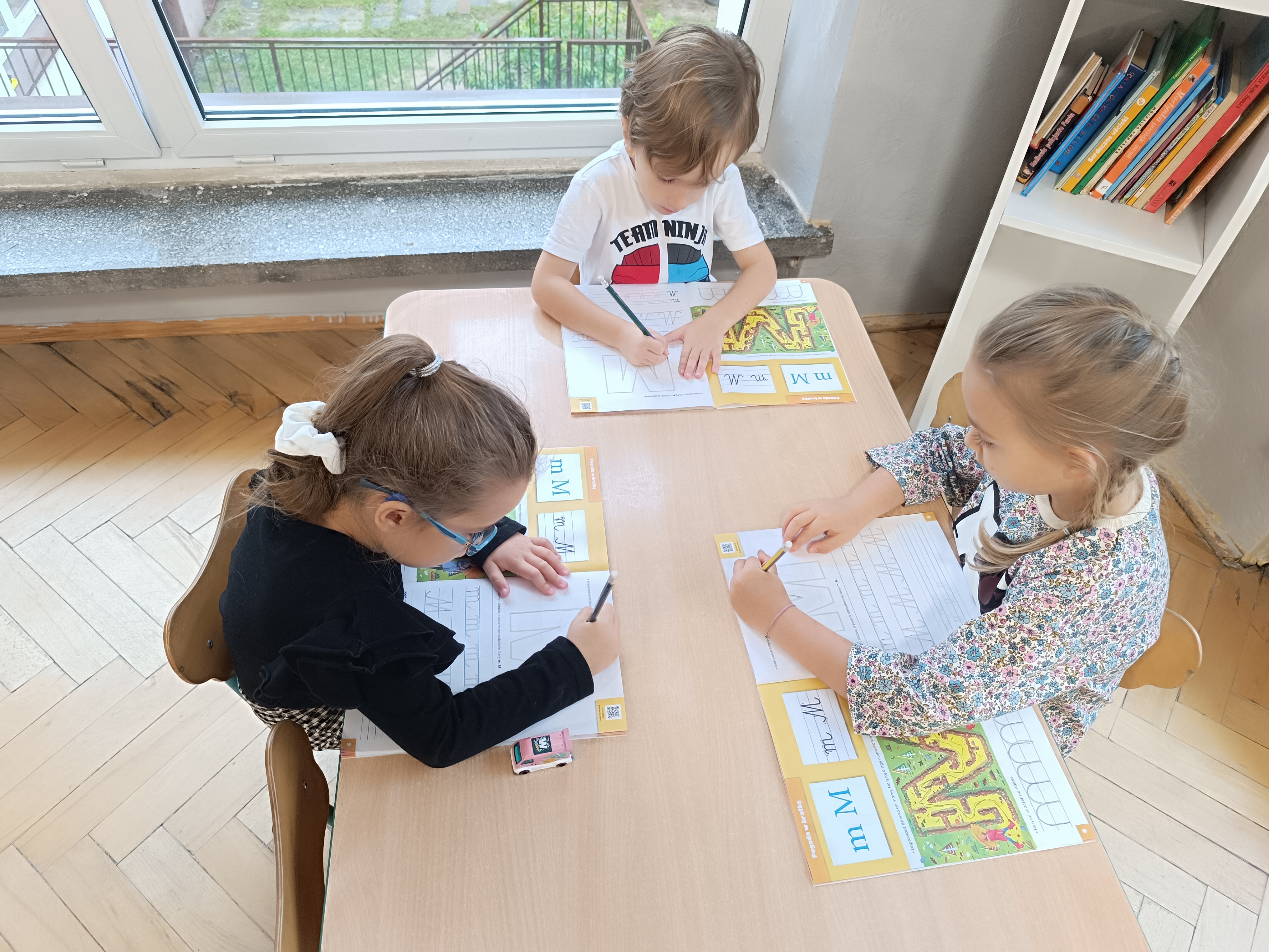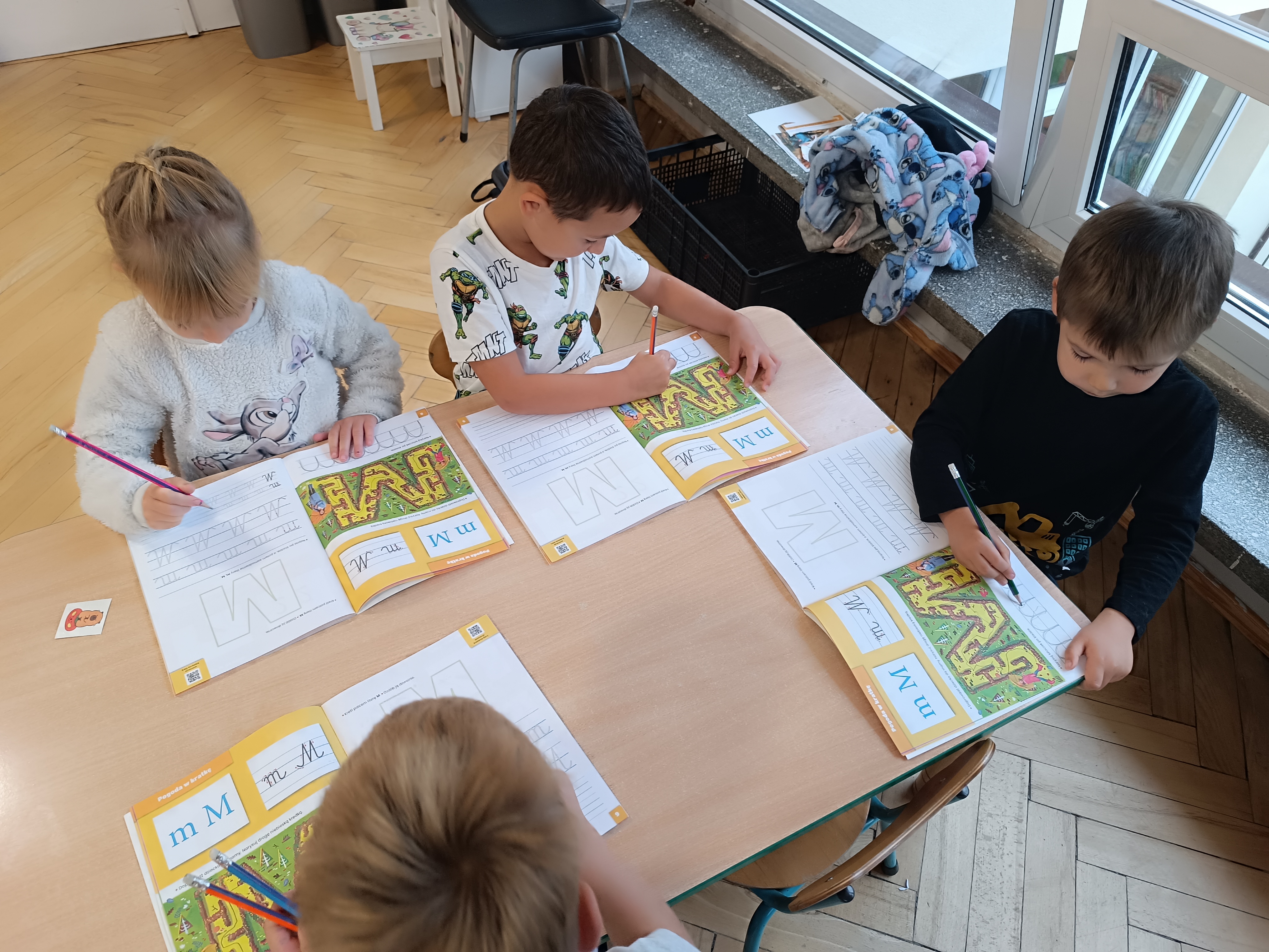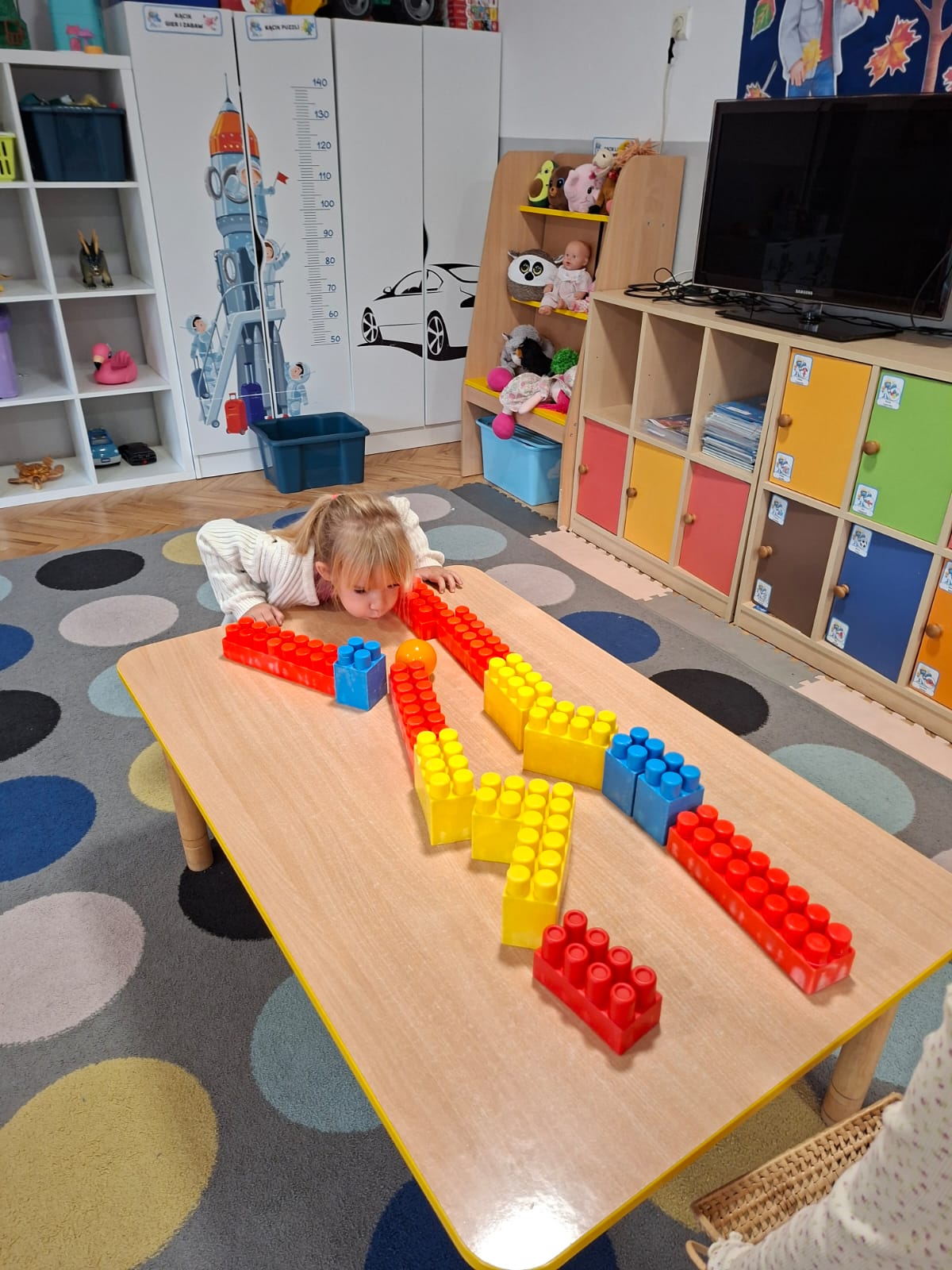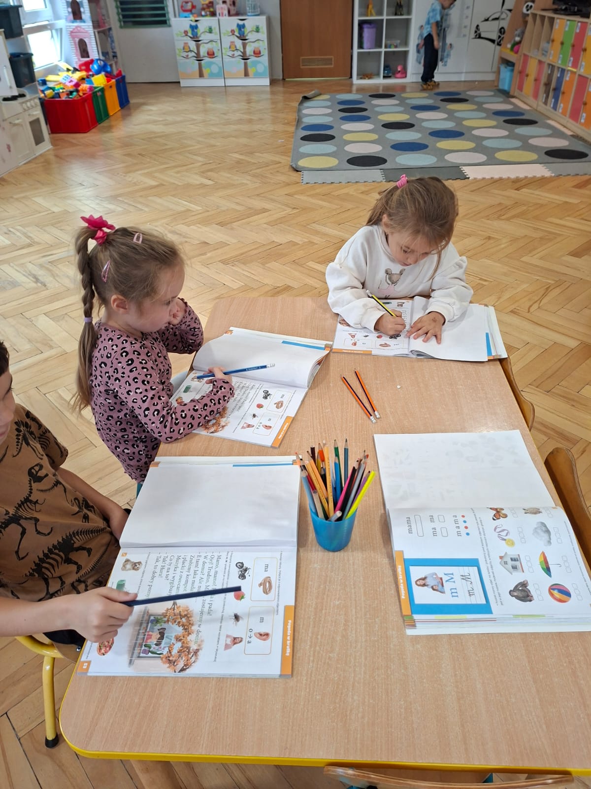 Smerfy w tym tygodniu zapoznały się z nową literką - M,m - zapoznały się z jej wyglądem pisanym jak również drukowanym , tworząc ją z klocków, rysując po śladzie, oraz cyferką - 2 , poznając na różne sposoby, dobierając się w pary - para to 2, układając cyferkę z klocków, układając cyferkę z puzzli, szukając cyferki ukrytej w sali.