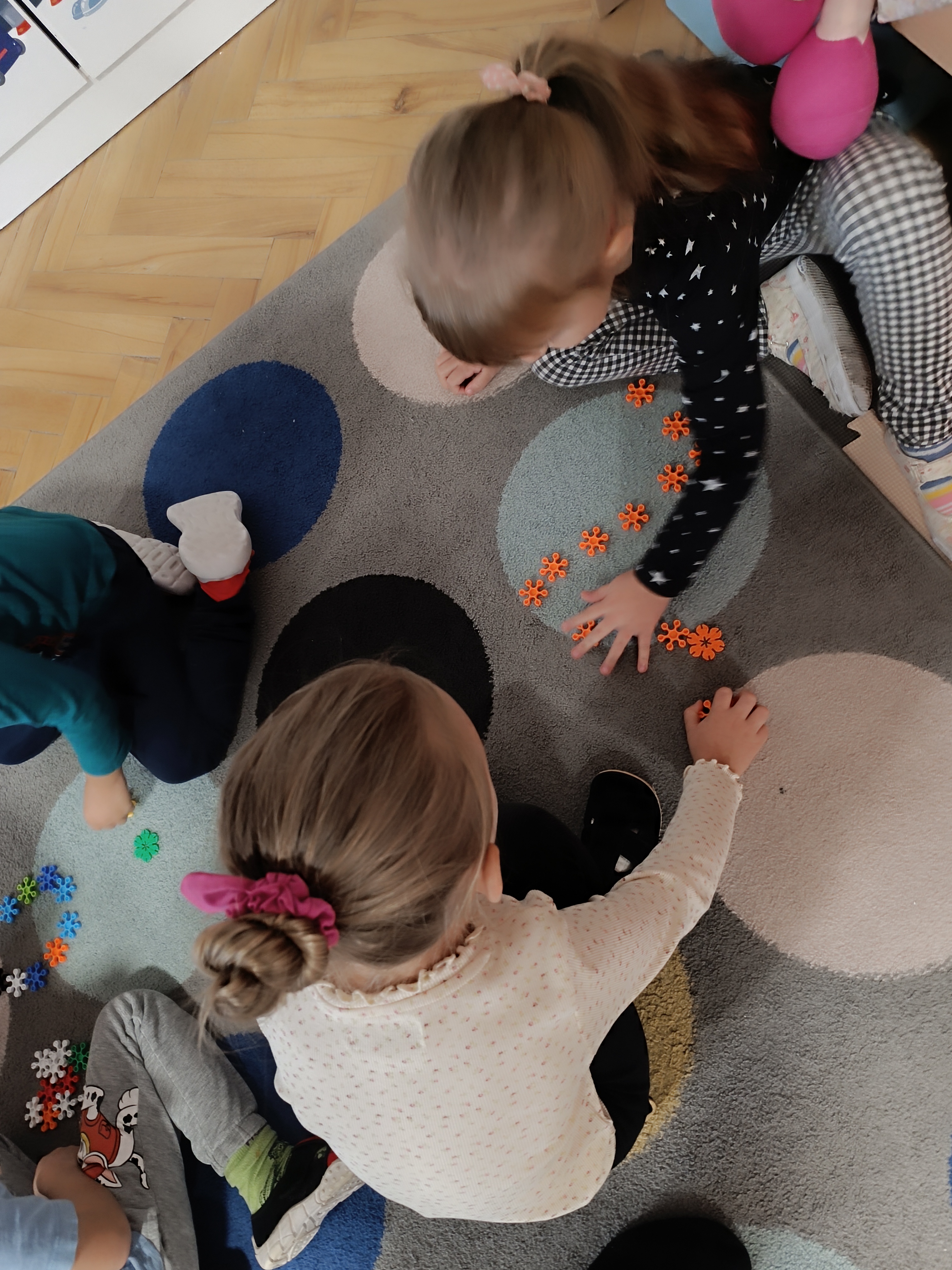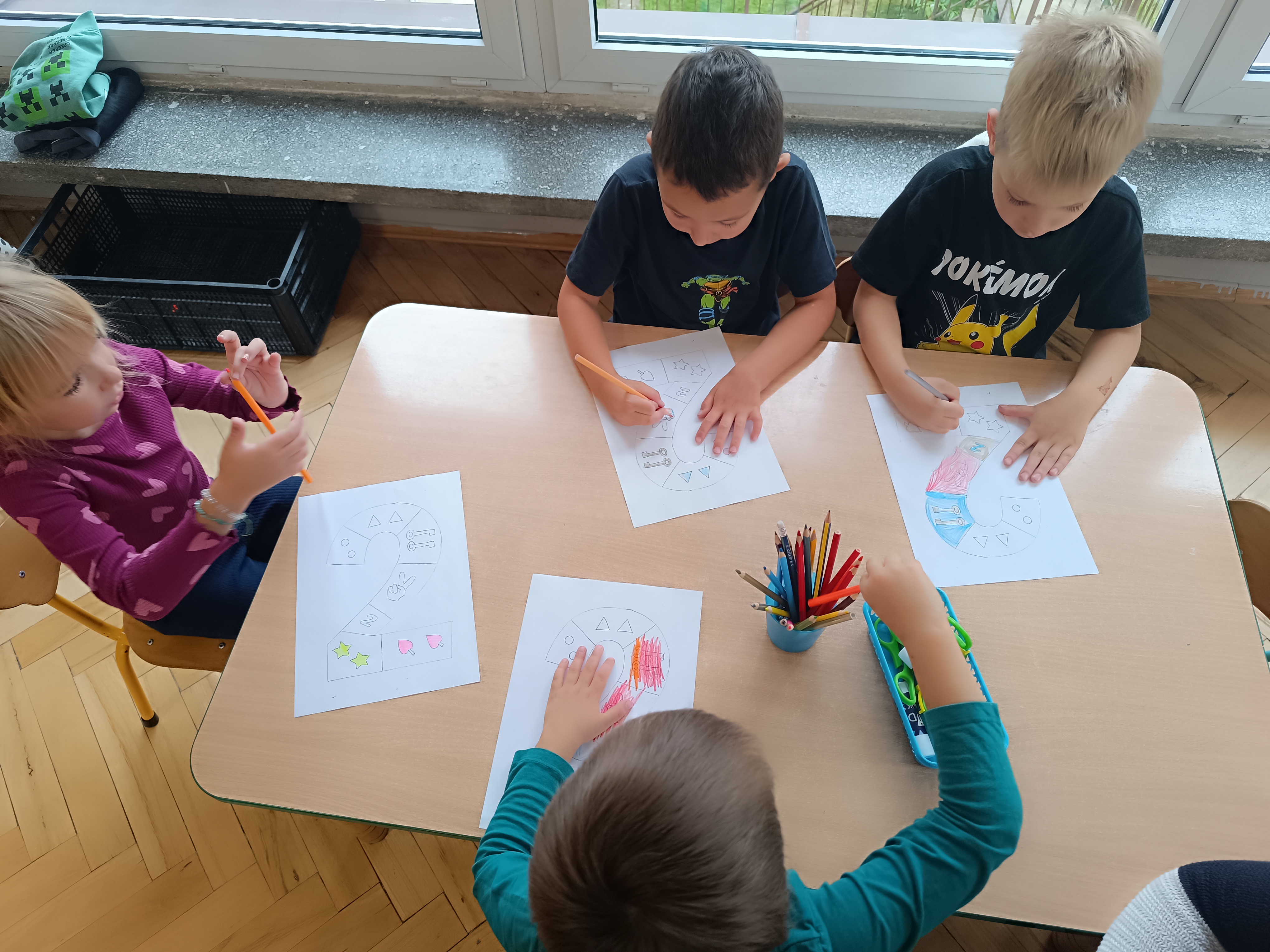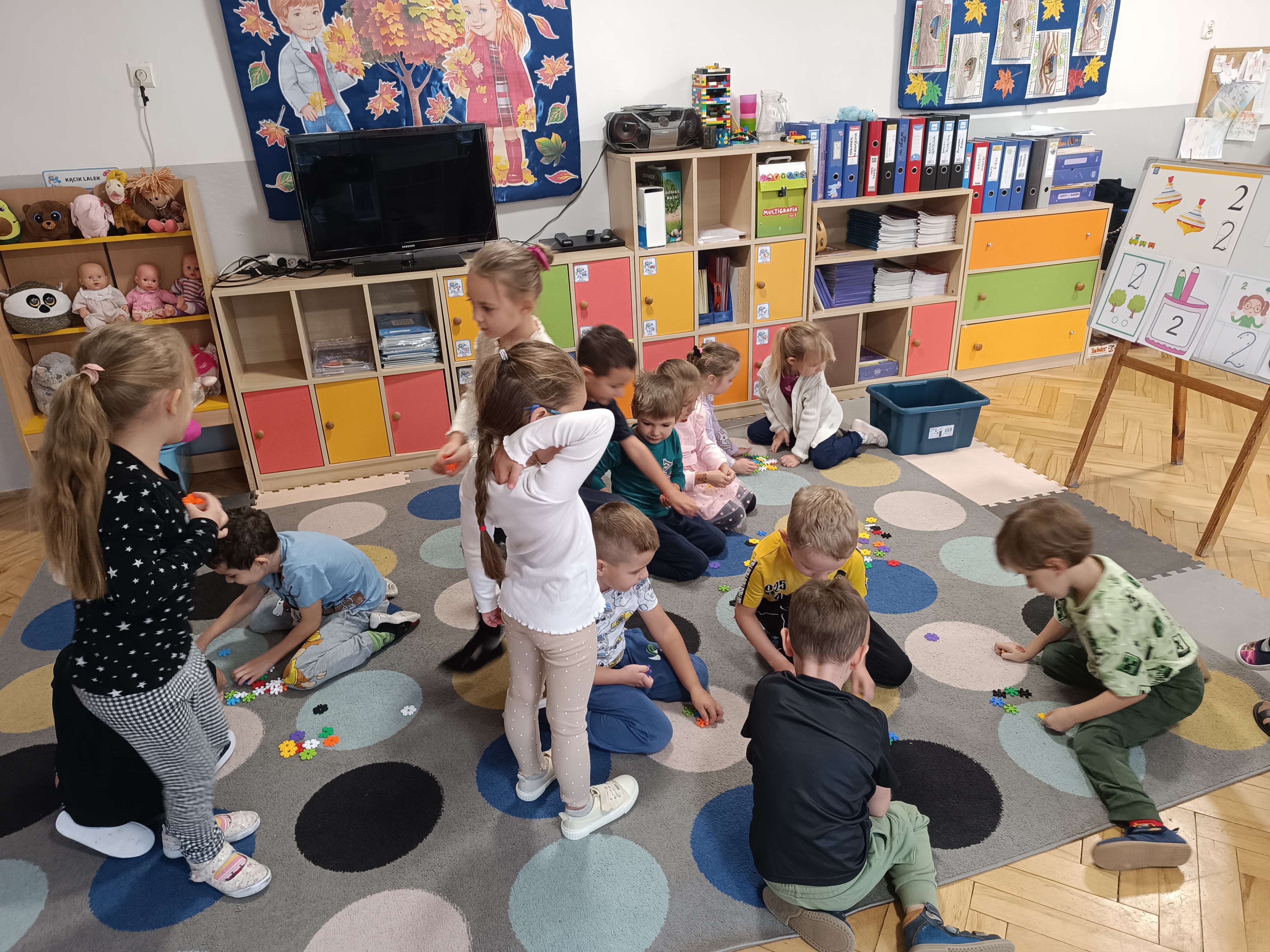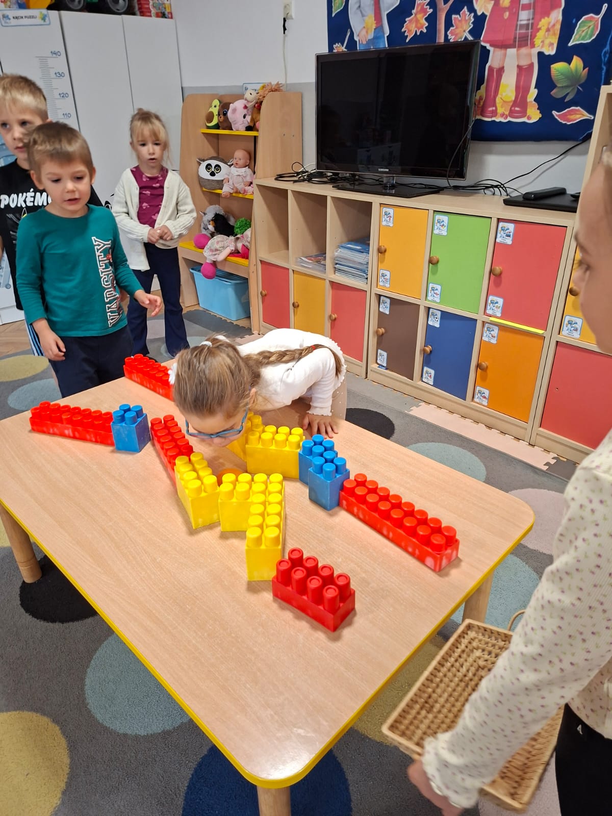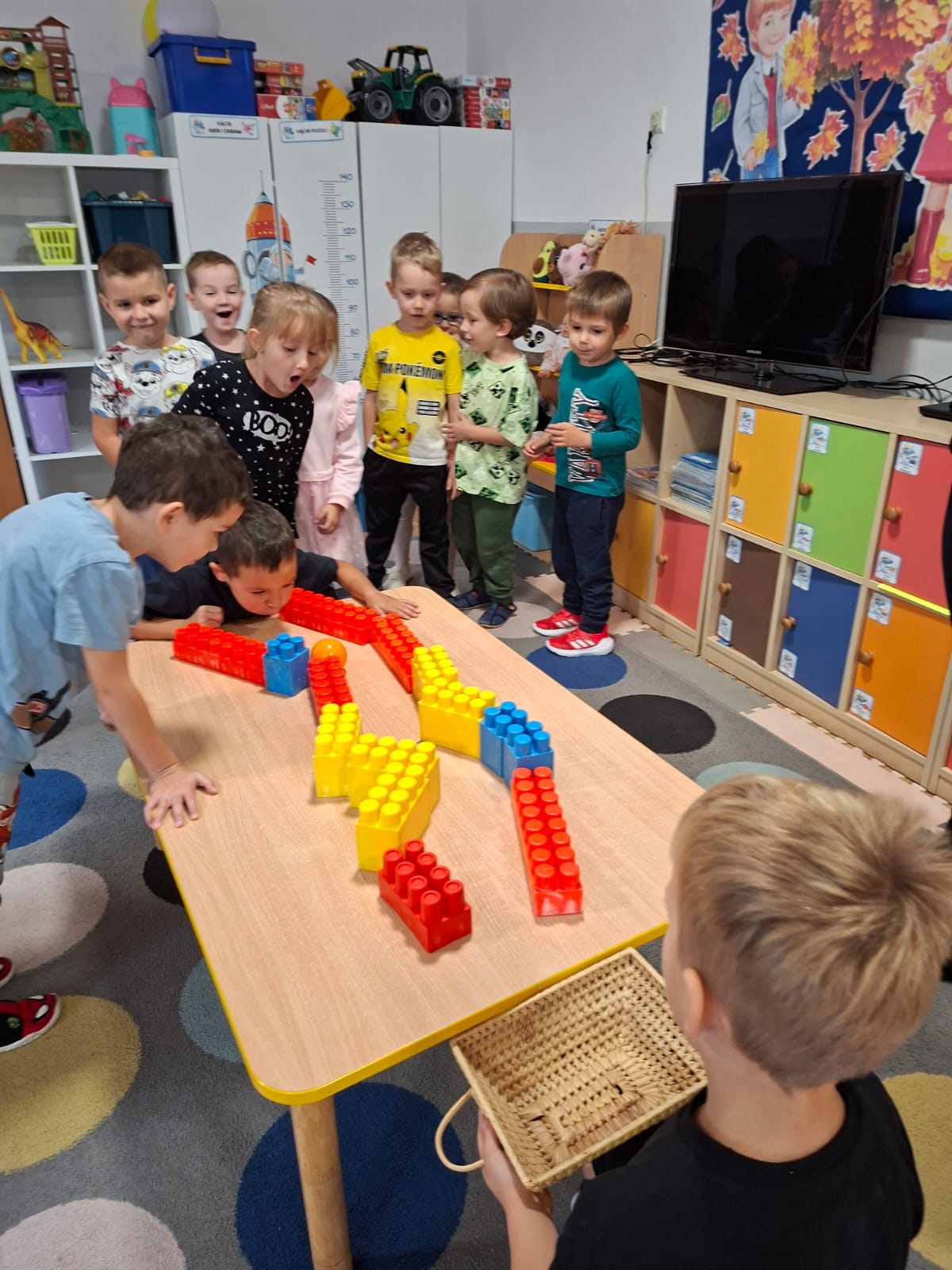 Smerfy w tym tygodniu zapoznały się z nową literką - M,m - zapoznały się z jej wyglądem pisanym jak również drukowanym , tworząc ją z klocków, rysując po śladzie, oraz cyferką - 2 , poznając na różne sposoby, dobierając się w pary - para to 2, układając cyferkę z klocków, układając cyferkę z puzzli, szukając cyferki ukrytej w sali.