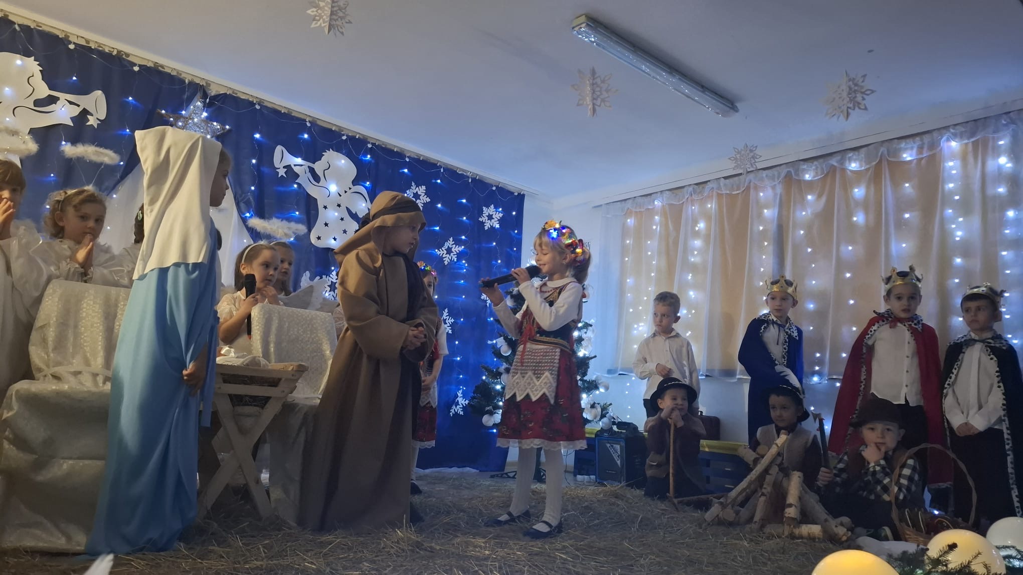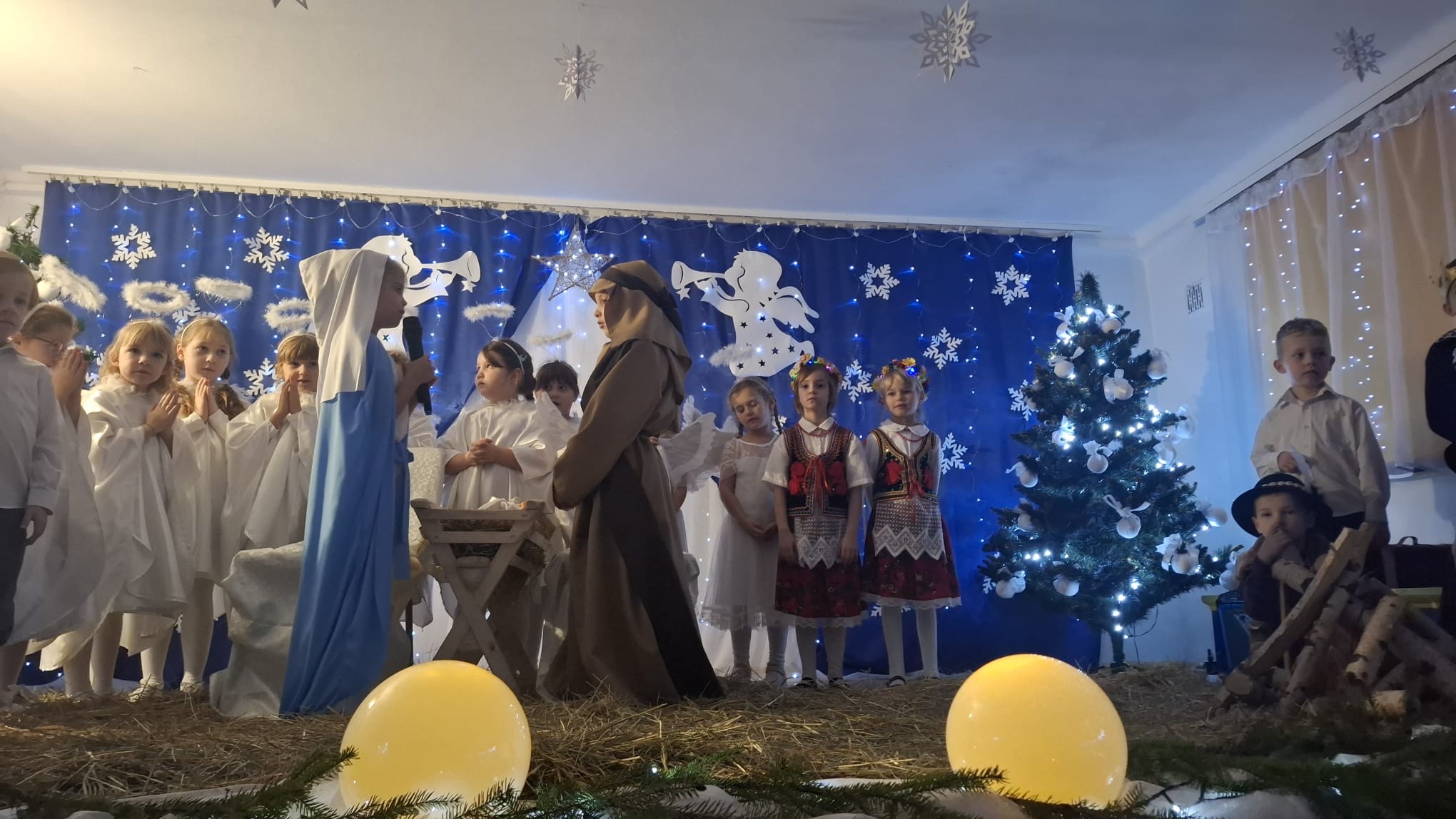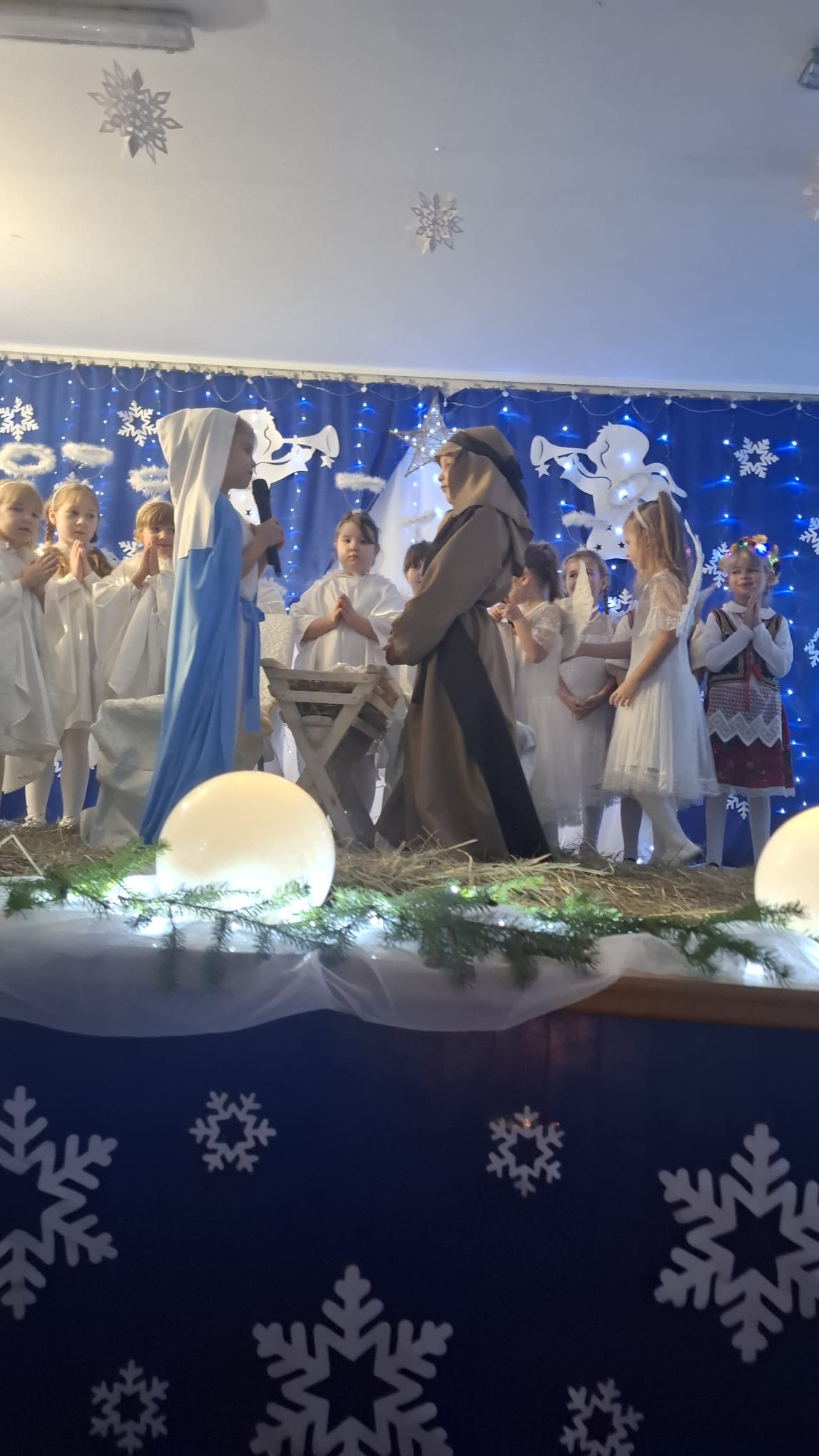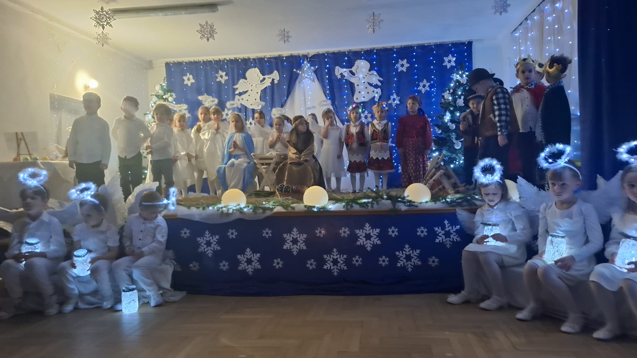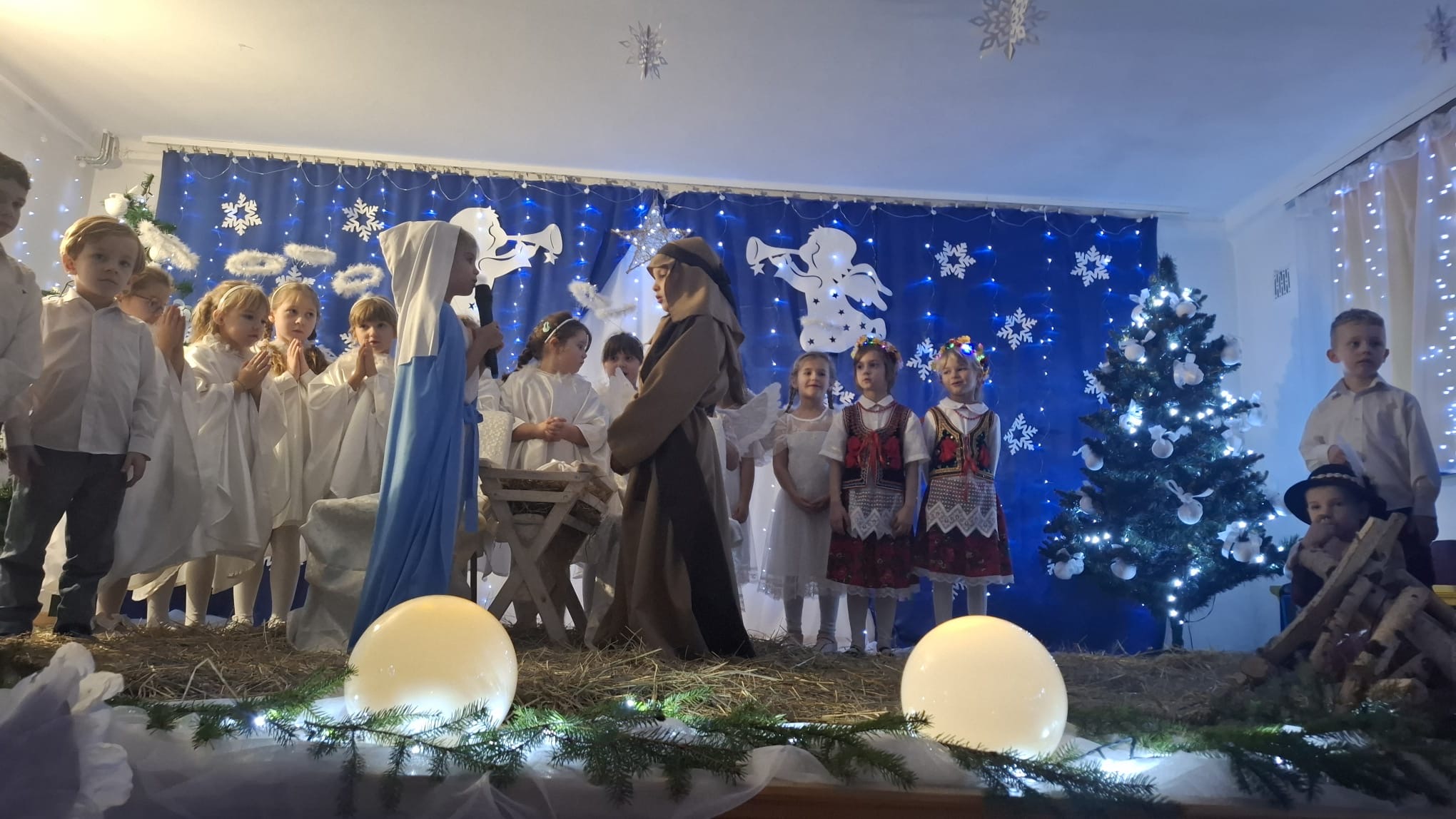 W dniu 18.12 w naszym przedszkolu odbyły się jasełka bożonarodzeniowe pt. „Pójdźmy wszyscy do stajenki”, przygotowane przez dzieci z grupy IV i V pod kierunkiem wychowawców. Dzieci zaprezentowały inscenizację ukazującą drogę Józefa i Maryi do stajenki, osoby spotkane po drodze, a także pasterzy, którzy jako pierwsi dowiedzieli się o narodzinach Jezusa, oraz Trzech Króli składających pokłon i dary Dzieciątku. Przedstawienie było wzbogacone śpiewem kolęd i piosenek: ,,W żłobie leży”, „Gore gwiazda Jezusowi” w wykonaniu Blanki, grą na dzwonkach melodii kolędy „Lulajże Jezuniu” w wykonaniu Julii , piosenką „Świeć, gwiazdeczko mała, świeć” oraz tańcem do utworu „Noel”. Występ odbył się w uroczystej i podniosłej atmosferze. Jasełka obejrzeli zaproszeni goście przez dyrekcję przedszkola: radni miasta Trzebinia pani Karolina Cyran, pani Halina Henc, pan Mateusz Król, pani Monika Dereszowska, księża z parafii Niepokalanego Serca Najświętszej Maryi Panny w Sierszy proboszcz ks. Kanonik Jerzy Filek, ks. Marcin Meres, Wicedyrektor SP nr 6 w Gaju pani Magdalena Staroń, Dyrektor SP nr 5 w Sierszy pan Łukasz Matusik oraz rodzice. Na ręce pani dyrektor zostało przekazane podczas jasełek światełko pokoju przez panią komendantkę hufca z Trzebini Annę Pilarczyk - Więcław. Mali artyści z dużym zaangażowaniem i radością zaprezentowali swoje role, za co zostali nagrodzeni gromkimi brawami. Przedstawienie było pięknym wprowadzeniem w świąteczny nastrój oraz okazją do wspólnego przeżywania tradycji bożonarodzeniowych.