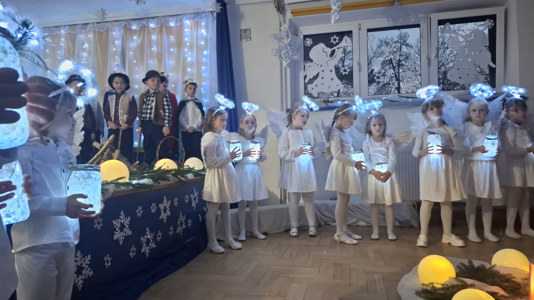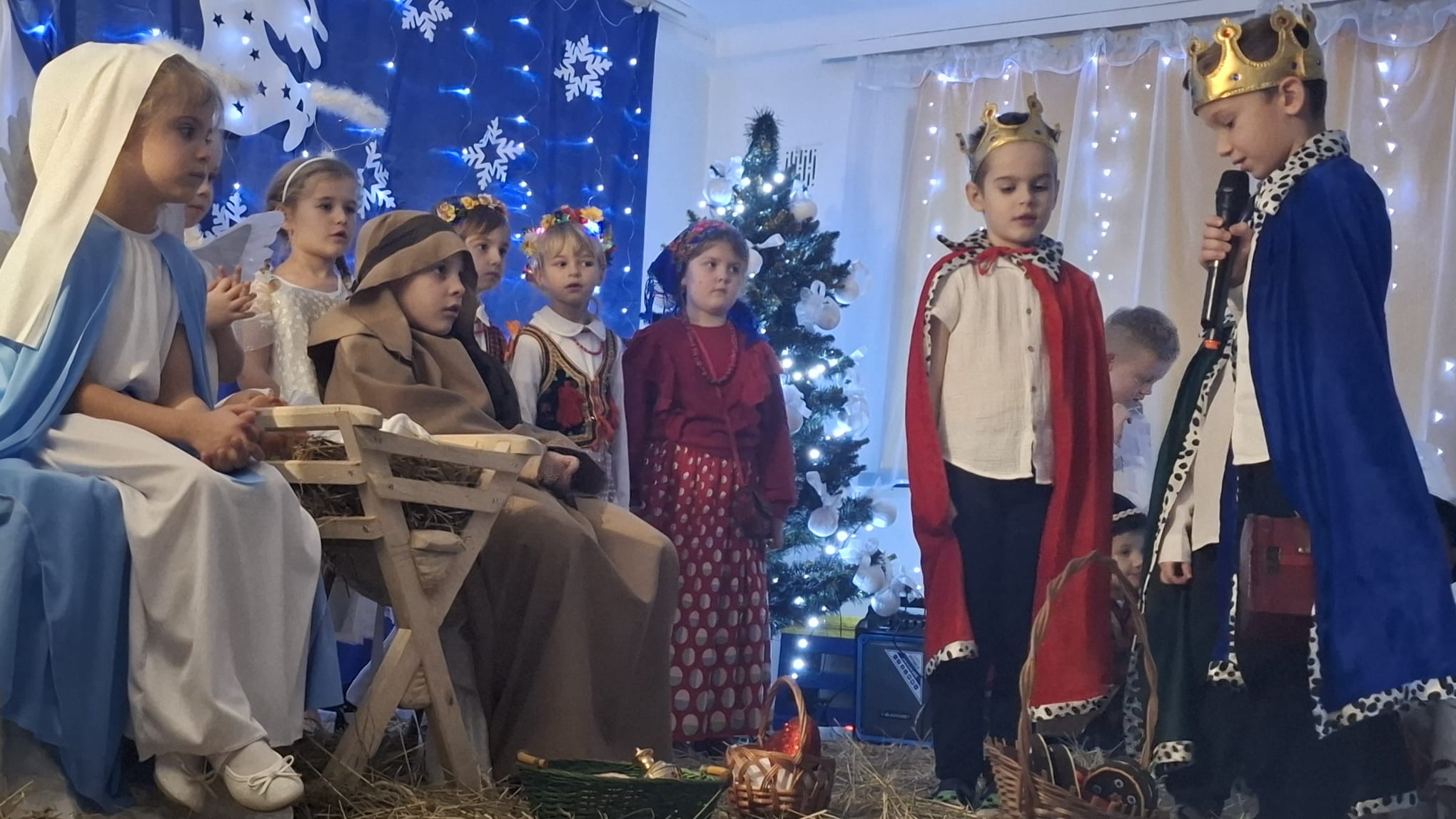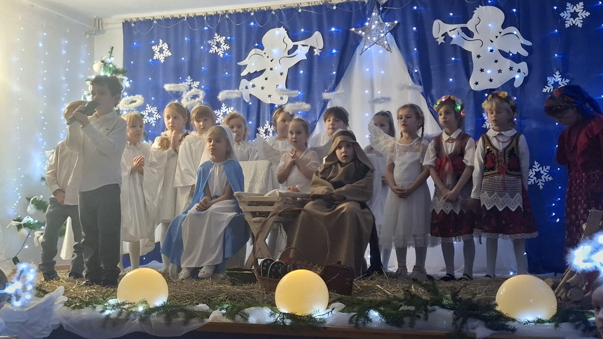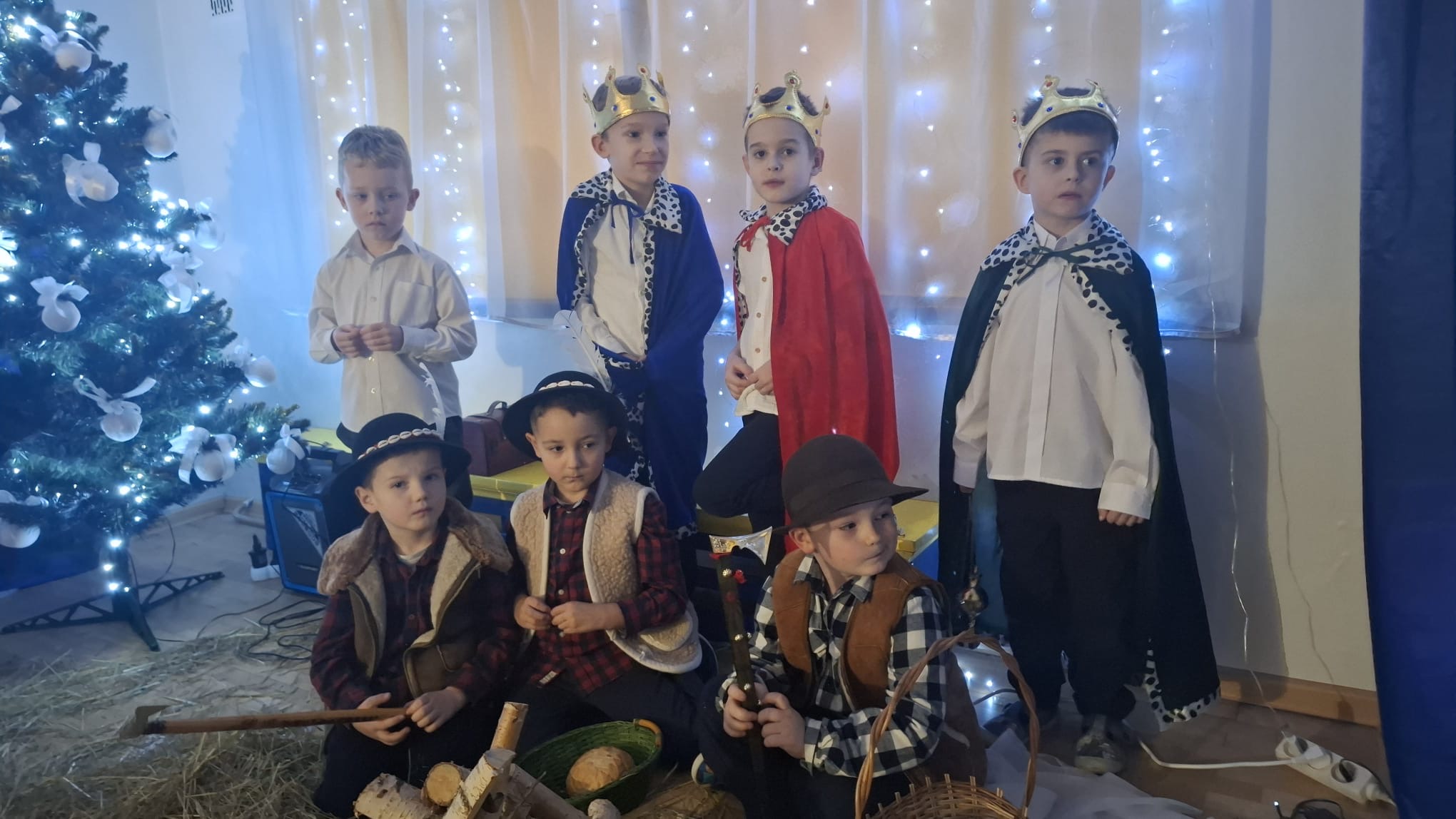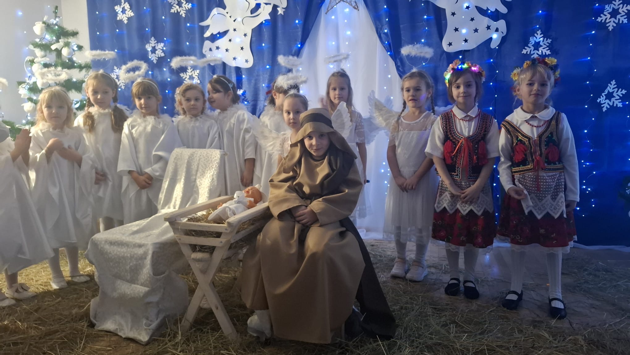 W dniu 18.12 w naszym przedszkolu odbyły się jasełka bożonarodzeniowe pt. „Pójdźmy wszyscy do stajenki”, przygotowane przez dzieci z grupy IV i V pod kierunkiem wychowawców. Dzieci zaprezentowały inscenizację ukazującą drogę Józefa i Maryi do stajenki, osoby spotkane po drodze, a także pasterzy, którzy jako pierwsi dowiedzieli się o narodzinach Jezusa, oraz Trzech Króli składających pokłon i dary Dzieciątku. Przedstawienie było wzbogacone śpiewem kolęd i piosenek: ,,W żłobie leży”, „Gore gwiazda Jezusowi” w wykonaniu Blanki, grą na dzwonkach melodii kolędy „Lulajże Jezuniu” w wykonaniu Julii , piosenką „Świeć, gwiazdeczko mała, świeć” oraz tańcem do utworu „Noel”. Występ odbył się w uroczystej i podniosłej atmosferze. Jasełka obejrzeli zaproszeni goście przez dyrekcję przedszkola: radni miasta Trzebinia pani Karolina Cyran, pani Halina Henc, pan Mateusz Król, pani Monika Dereszowska, księża z parafii Niepokalanego Serca Najświętszej Maryi Panny w Sierszy proboszcz ks. Kanonik Jerzy Filek, ks. Marcin Meres, Wicedyrektor SP nr 6 w Gaju pani Magdalena Staroń, Dyrektor SP nr 5 w Sierszy pan Łukasz Matusik oraz rodzice. Na ręce pani dyrektor zostało przekazane podczas jasełek światełko pokoju przez panią komendantkę hufca z Trzebini Annę Pilarczyk - Więcław. Mali artyści z dużym zaangażowaniem i radością zaprezentowali swoje role, za co zostali nagrodzeni gromkimi brawami. Przedstawienie było pięknym wprowadzeniem w świąteczny nastrój oraz okazją do wspólnego przeżywania tradycji bożonarodzeniowych.