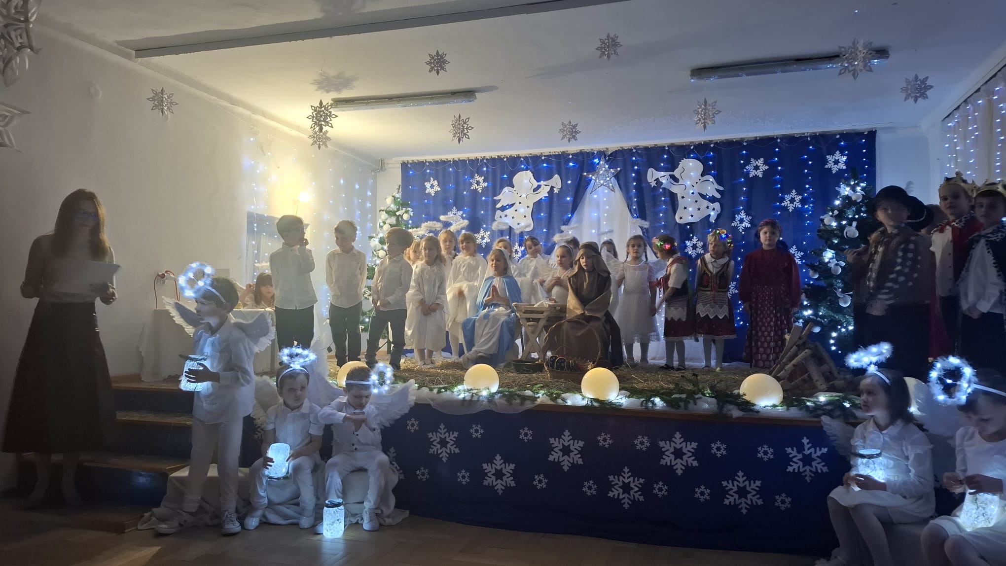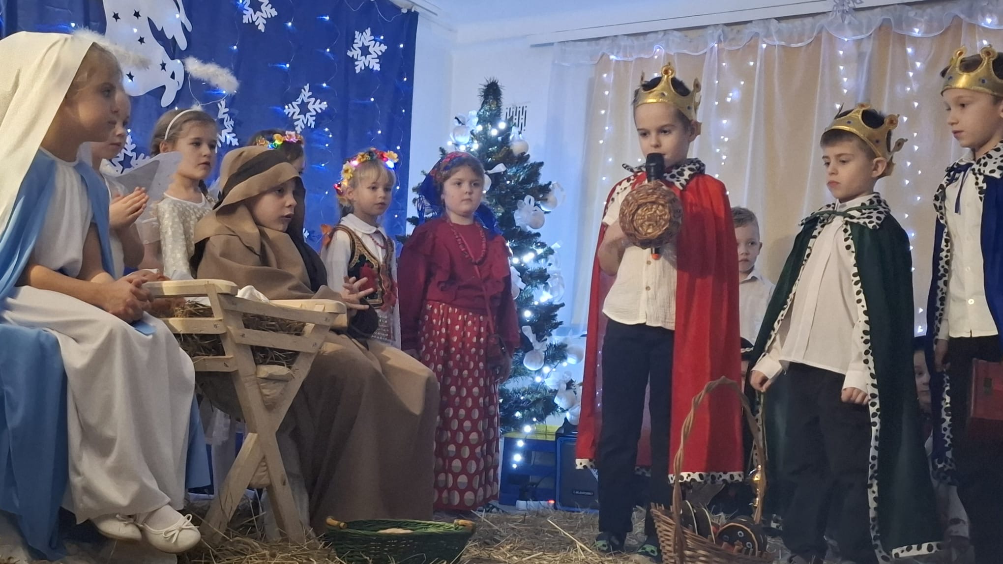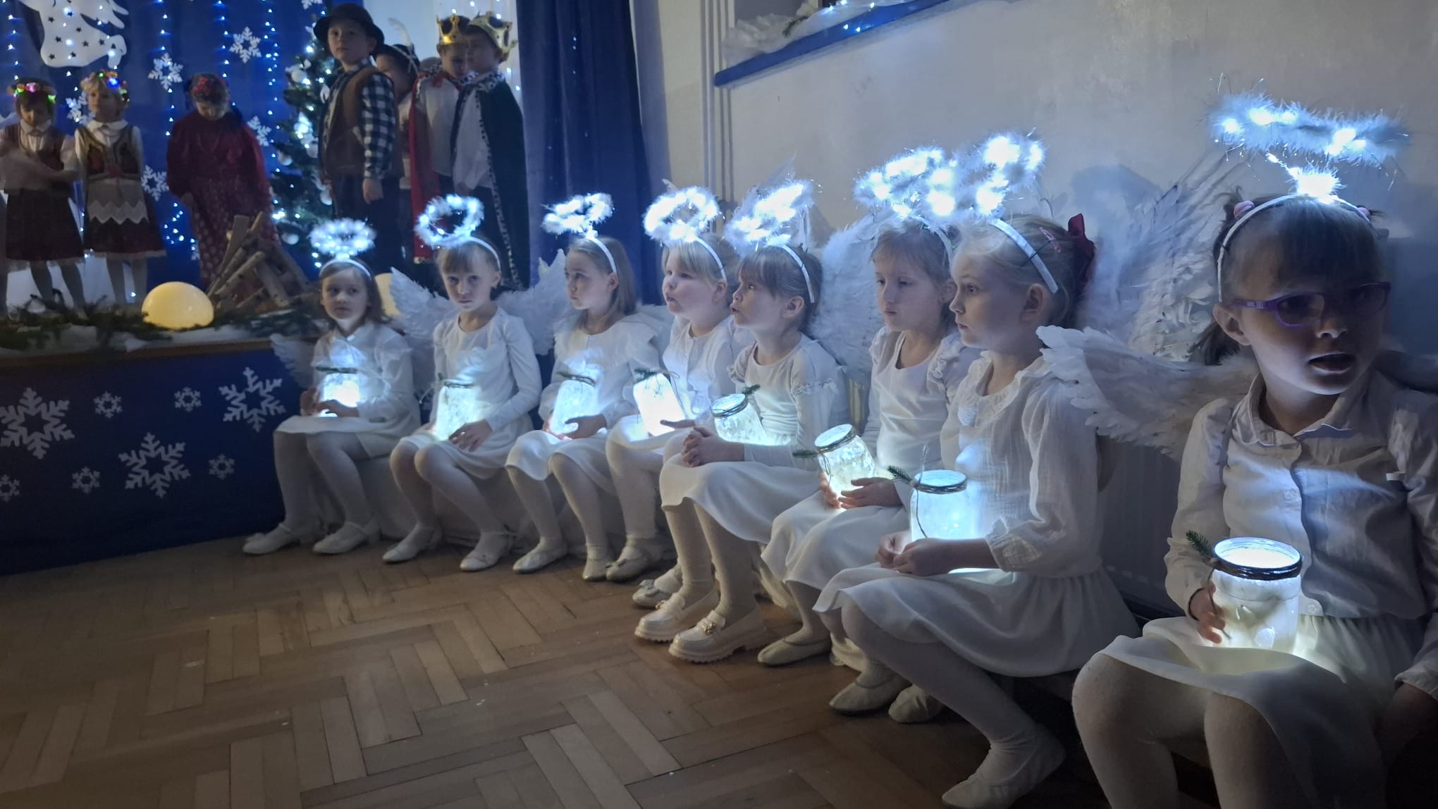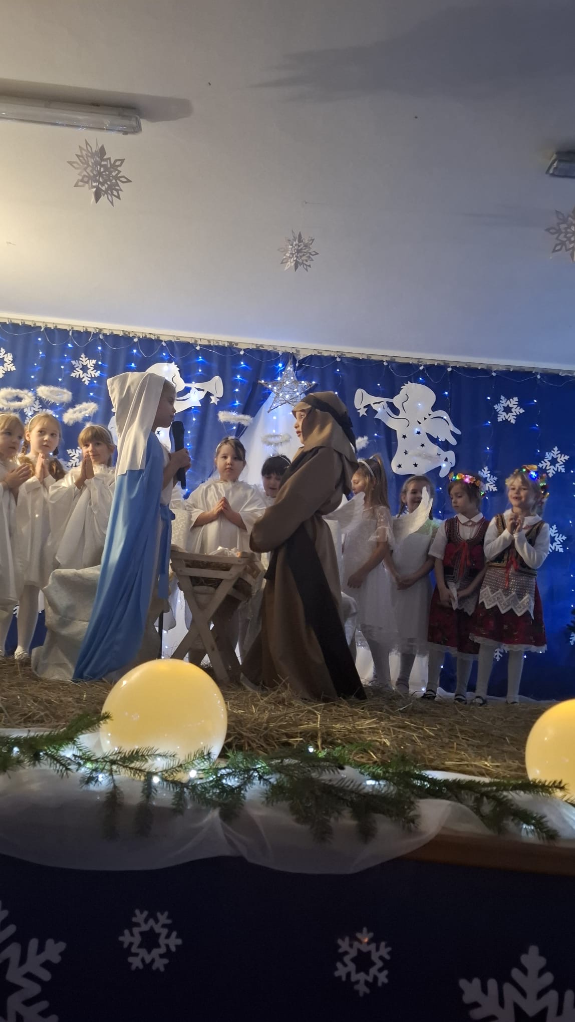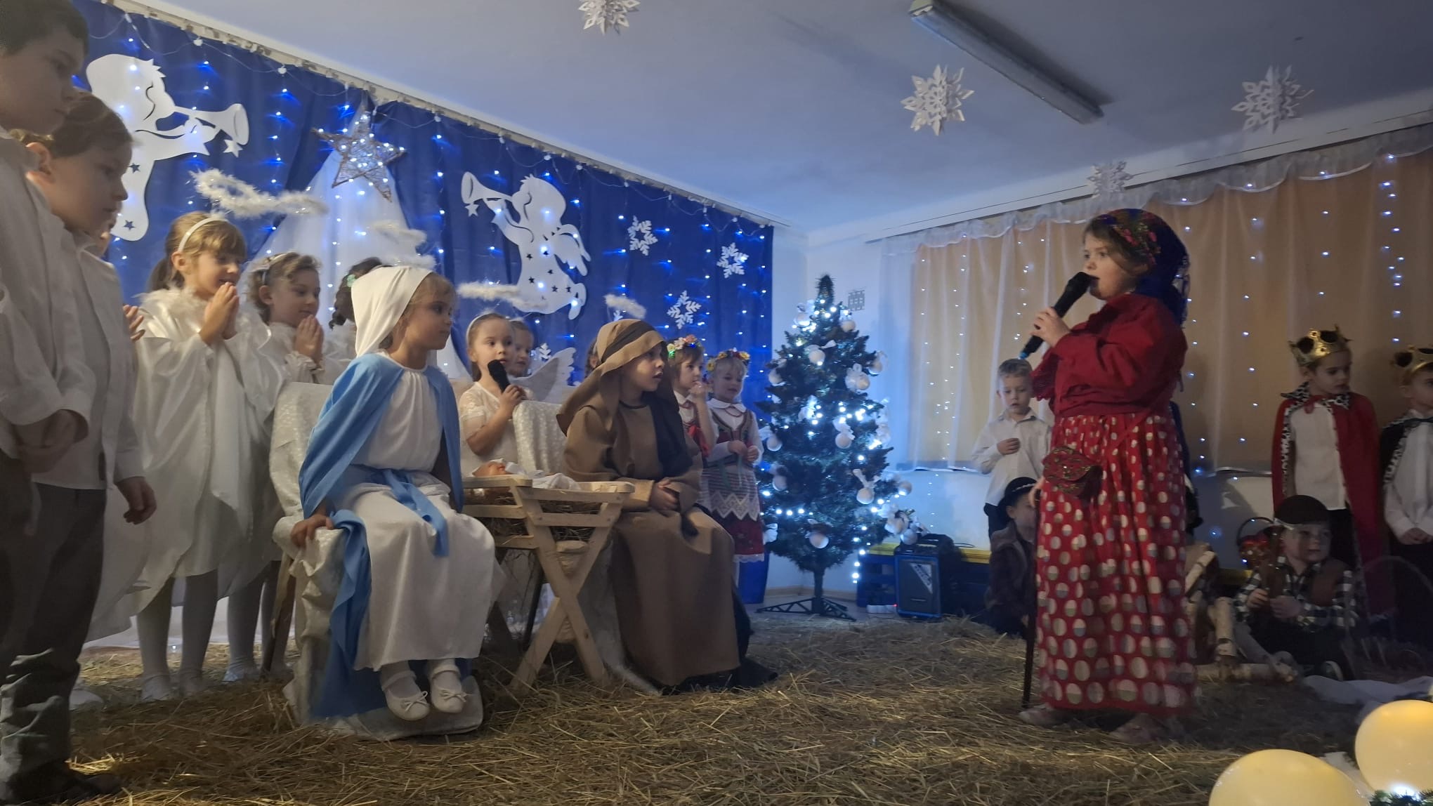 W dniu 18.12 w naszym przedszkolu odbyły się jasełka bożonarodzeniowe pt. „Pójdźmy wszyscy do stajenki”, przygotowane przez dzieci z grupy IV i V pod kierunkiem wychowawców. Dzieci zaprezentowały inscenizację ukazującą drogę Józefa i Maryi do stajenki, osoby spotkane po drodze, a także pasterzy, którzy jako pierwsi dowiedzieli się o narodzinach Jezusa, oraz Trzech Króli składających pokłon i dary Dzieciątku. Przedstawienie było wzbogacone śpiewem kolęd i piosenek: ,,W żłobie leży”, „Gore gwiazda Jezusowi” w wykonaniu Blanki, grą na dzwonkach melodii kolędy „Lulajże Jezuniu” w wykonaniu Julii , piosenką „Świeć, gwiazdeczko mała, świeć” oraz tańcem do utworu „Noel”. Występ odbył się w uroczystej i podniosłej atmosferze. Jasełka obejrzeli zaproszeni goście przez dyrekcję przedszkola: radni miasta Trzebinia pani Karolina Cyran, pani Halina Henc, pan Mateusz Król, pani Monika Dereszowska, księża z parafii Niepokalanego Serca Najświętszej Maryi Panny w Sierszy proboszcz ks. Kanonik Jerzy Filek, ks. Marcin Meres, Wicedyrektor SP nr 6 w Gaju pani Magdalena Staroń, Dyrektor SP nr 5 w Sierszy pan Łukasz Matusik oraz rodzice. Na ręce pani dyrektor zostało przekazane podczas jasełek światełko pokoju przez panią komendantkę hufca z Trzebini Annę Pilarczyk - Więcław. Mali artyści z dużym zaangażowaniem i radością zaprezentowali swoje role, za co zostali nagrodzeni gromkimi brawami. Przedstawienie było pięknym wprowadzeniem w świąteczny nastrój oraz okazją do wspólnego przeżywania tradycji bożonarodzeniowych.
