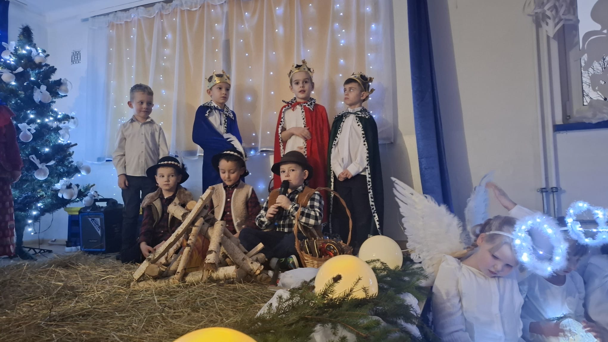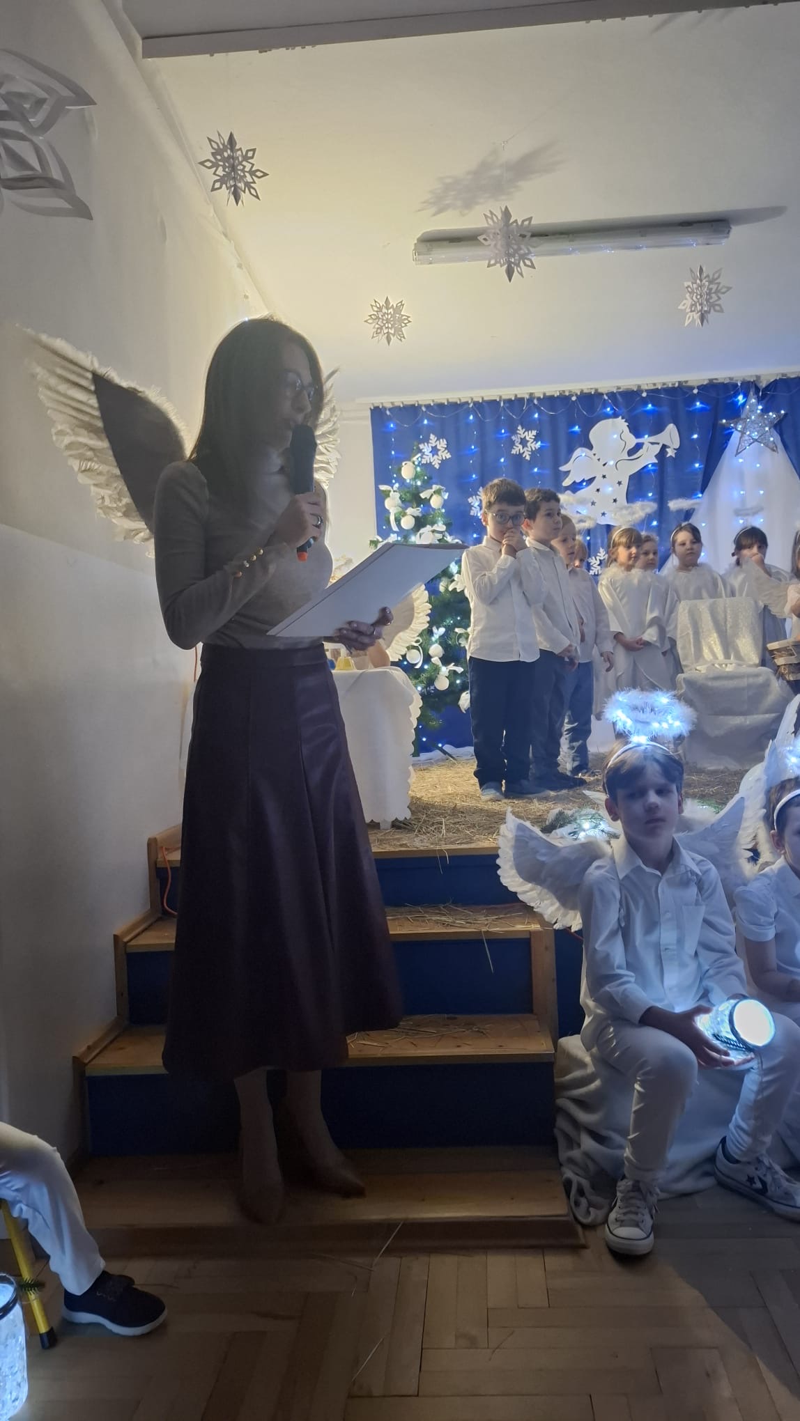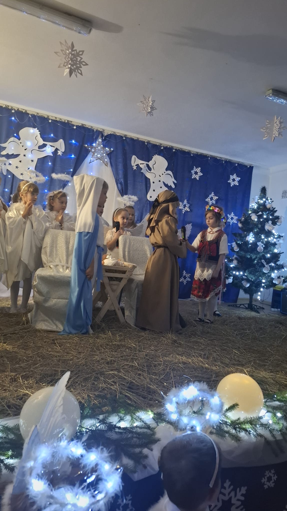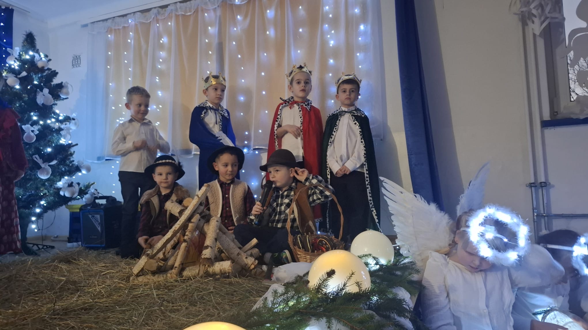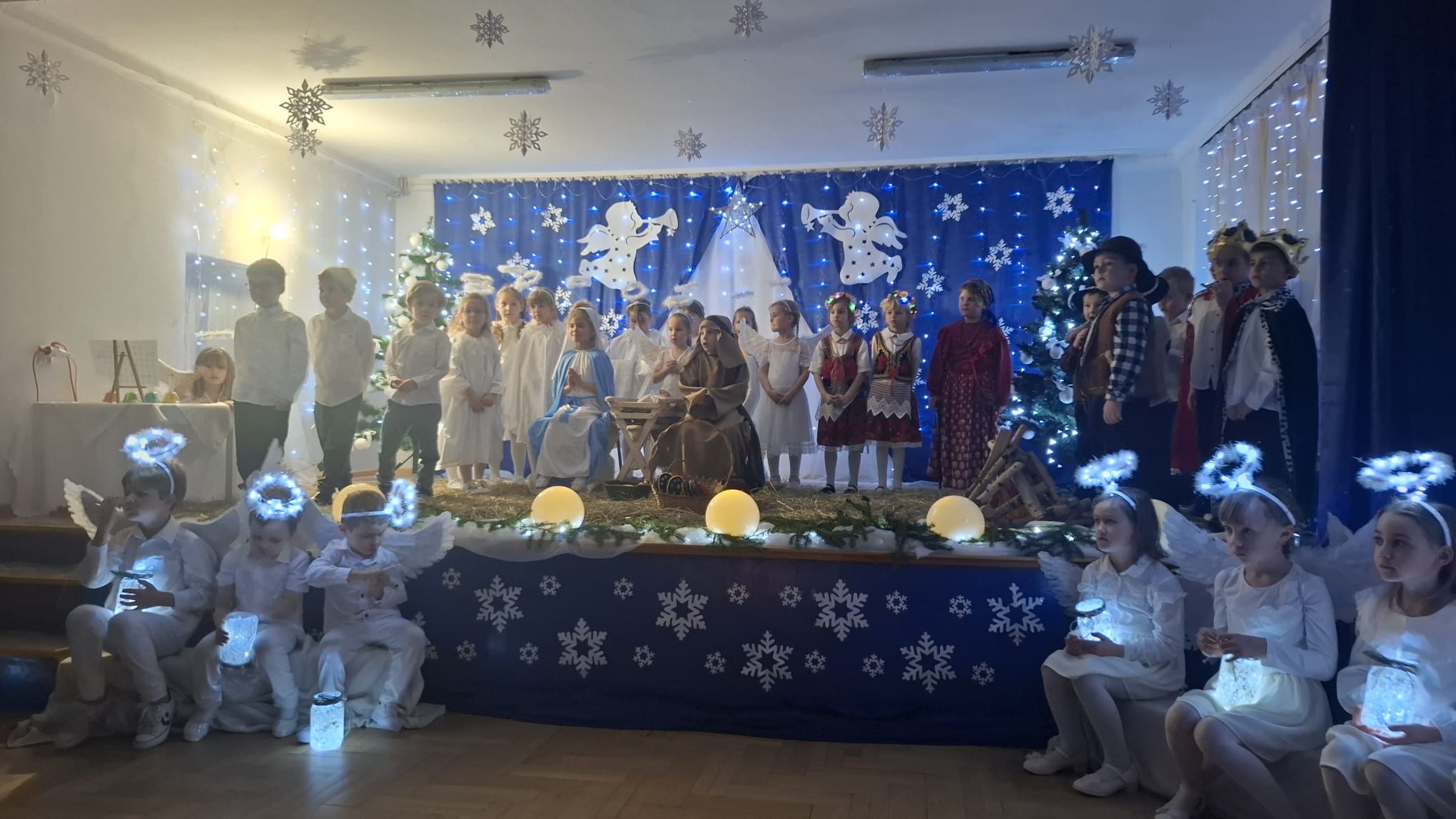 W dniu 18.12 w naszym przedszkolu odbyły się jasełka bożonarodzeniowe pt. „Pójdźmy wszyscy do stajenki”, przygotowane przez dzieci z grupy IV i V pod kierunkiem wychowawców. Dzieci zaprezentowały inscenizację ukazującą drogę Józefa i Maryi do stajenki, osoby spotkane po drodze, a także pasterzy, którzy jako pierwsi dowiedzieli się o narodzinach Jezusa, oraz Trzech Króli składających pokłon i dary Dzieciątku. Przedstawienie było wzbogacone śpiewem kolęd i piosenek: ,,W żłobie leży”, „Gore gwiazda Jezusowi” w wykonaniu Blanki, grą na dzwonkach melodii kolędy „Lulajże Jezuniu” w wykonaniu Julii , piosenką „Świeć, gwiazdeczko mała, świeć” oraz tańcem do utworu „Noel”. Występ odbył się w uroczystej i podniosłej atmosferze. Jasełka obejrzeli zaproszeni goście przez dyrekcję przedszkola: radni miasta Trzebinia pani Karolina Cyran, pani Halina Henc, pan Mateusz Król, pani Monika Dereszowska, księża z parafii Niepokalanego Serca Najświętszej Maryi Panny w Sierszy proboszcz ks. Kanonik Jerzy Filek, ks. Marcin Meres, Wicedyrektor SP nr 6 w Gaju pani Magdalena Staroń, Dyrektor SP nr 5 w Sierszy pan Łukasz Matusik oraz rodzice. Na ręce pani dyrektor zostało przekazane podczas jasełek światełko pokoju przez panią komendantkę hufca z Trzebini Annę Pilarczyk - Więcław. Mali artyści z dużym zaangażowaniem i radością zaprezentowali swoje role, za co zostali nagrodzeni gromkimi brawami. Przedstawienie było pięknym wprowadzeniem w świąteczny nastrój oraz okazją do wspólnego przeżywania tradycji bożonarodzeniowych.