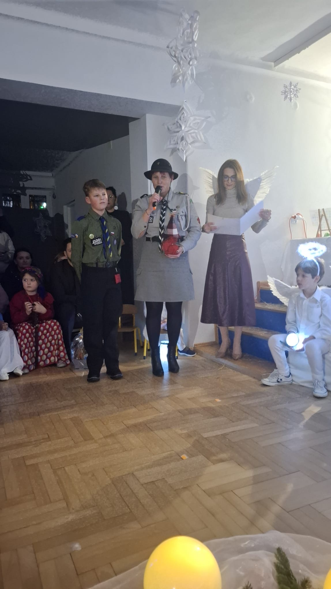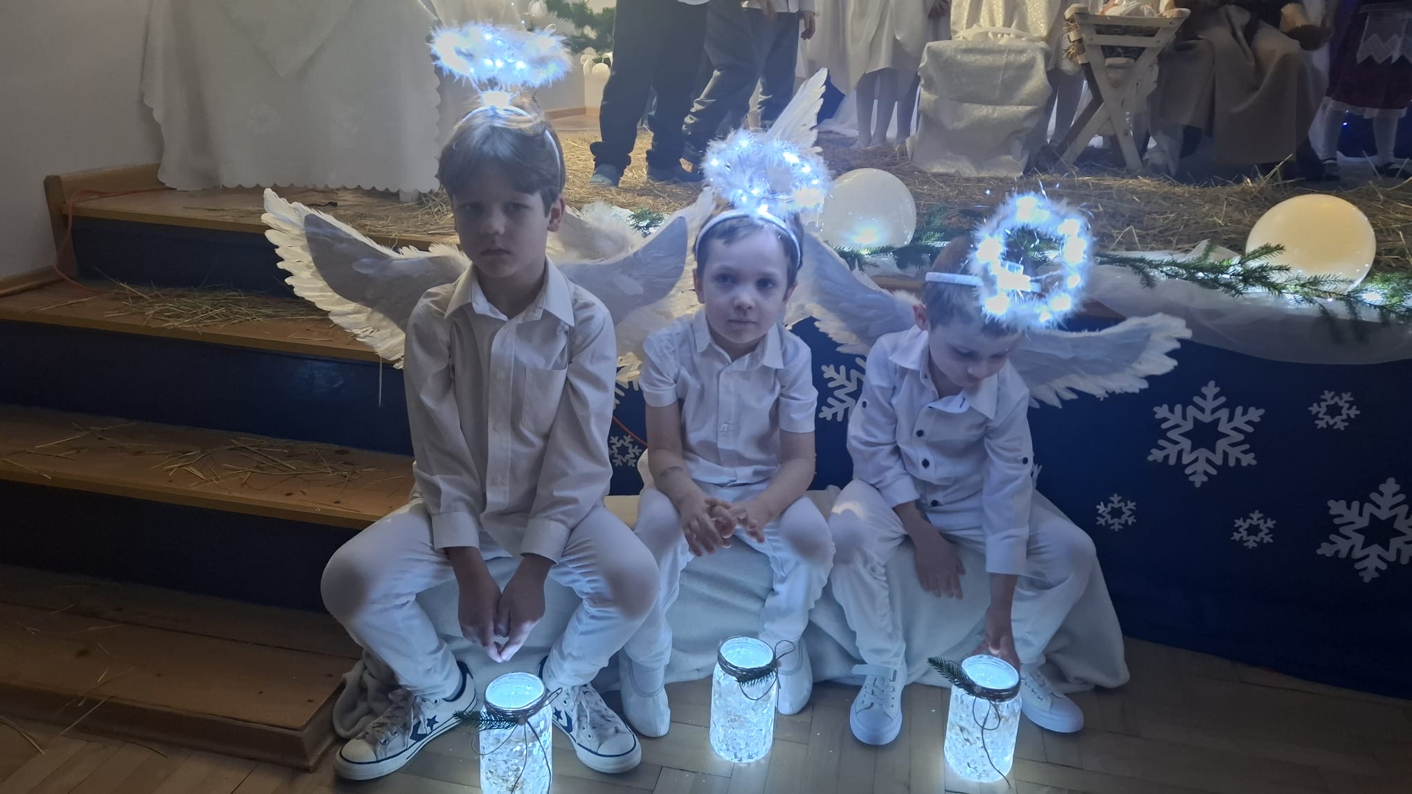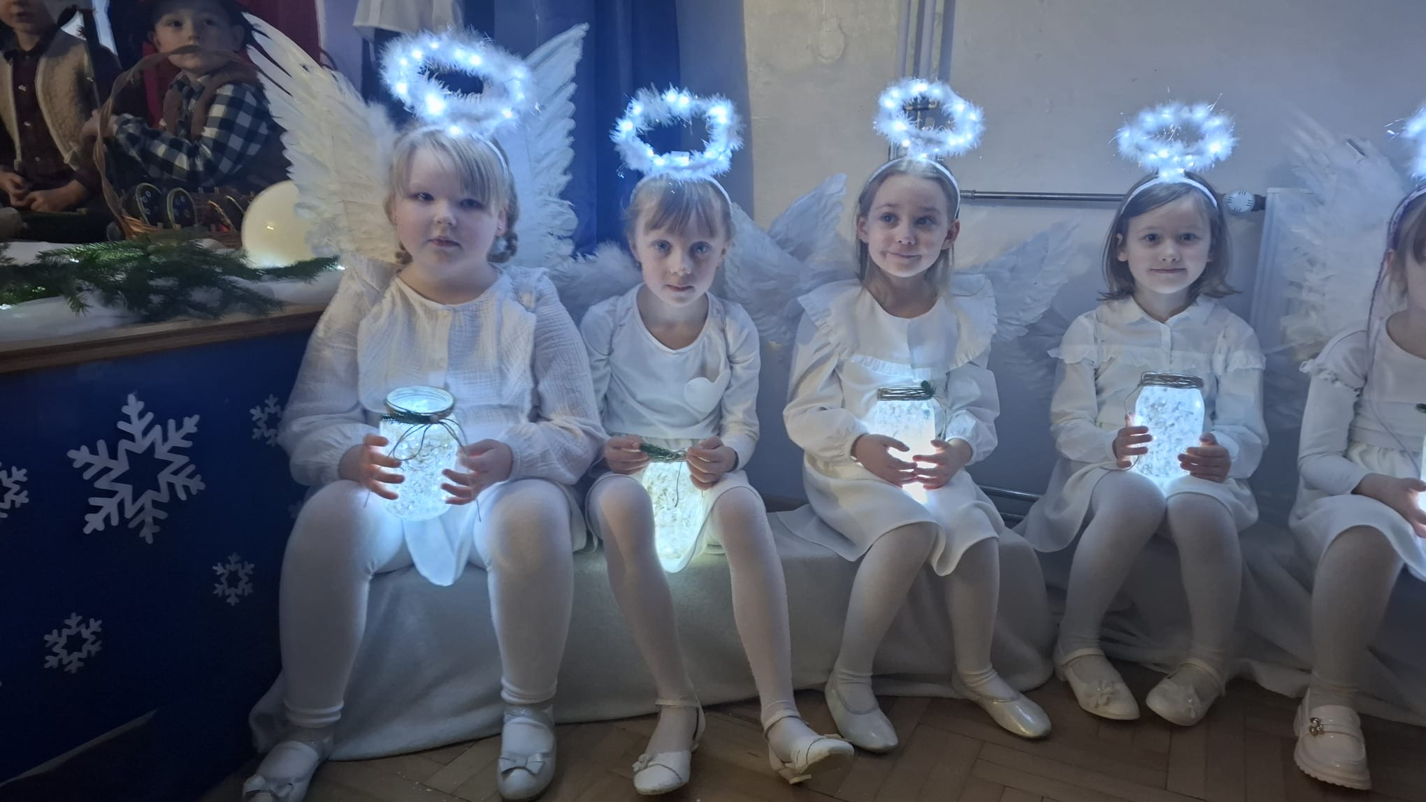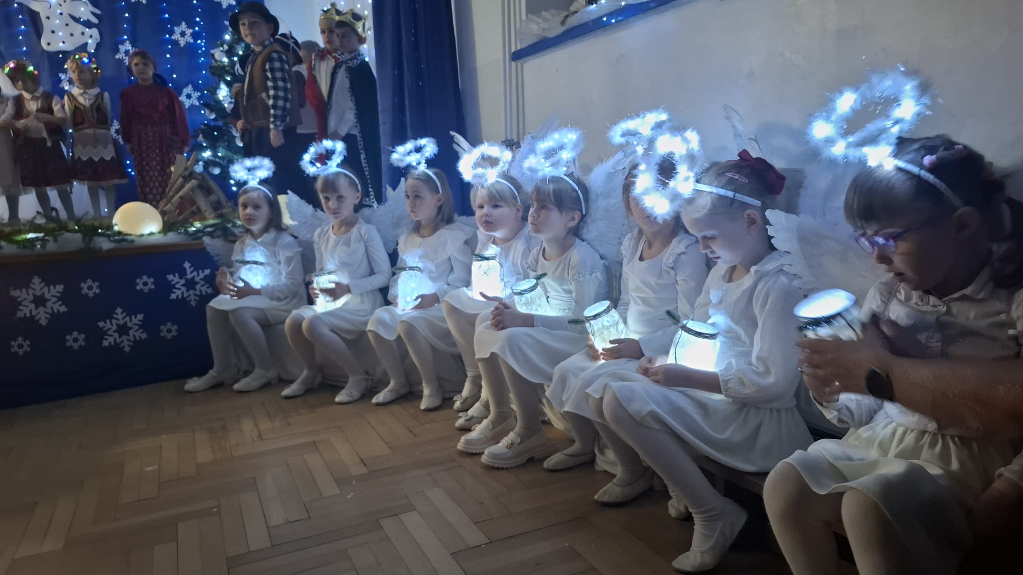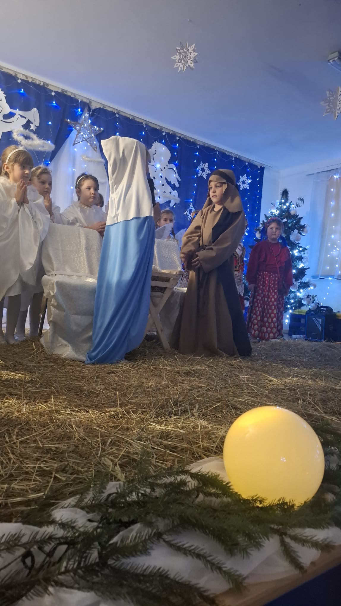 W dniu 18.12 w naszym przedszkolu odbyły się jasełka bożonarodzeniowe pt. „Pójdźmy wszyscy do stajenki”, przygotowane przez dzieci z grupy IV i V pod kierunkiem wychowawców. Dzieci zaprezentowały inscenizację ukazującą drogę Józefa i Maryi do stajenki, osoby spotkane po drodze, a także pasterzy, którzy jako pierwsi dowiedzieli się o narodzinach Jezusa, oraz Trzech Króli składających pokłon i dary Dzieciątku. Przedstawienie było wzbogacone śpiewem kolęd i piosenek: ,,W żłobie leży”, „Gore gwiazda Jezusowi” w wykonaniu Blanki, grą na dzwonkach melodii kolędy „Lulajże Jezuniu” w wykonaniu Julii , piosenką „Świeć, gwiazdeczko mała, świeć” oraz tańcem do utworu „Noel”. Występ odbył się w uroczystej i podniosłej atmosferze. Jasełka obejrzeli zaproszeni goście przez dyrekcję przedszkola: radni miasta Trzebinia pani Karolina Cyran, pani Halina Henc, pan Mateusz Król, pani Monika Dereszowska, księża z parafii Niepokalanego Serca Najświętszej Maryi Panny w Sierszy proboszcz ks. Kanonik Jerzy Filek, ks. Marcin Meres, Wicedyrektor SP nr 6 w Gaju pani Magdalena Staroń, Dyrektor SP nr 5 w Sierszy pan Łukasz Matusik oraz rodzice. Na ręce pani dyrektor zostało przekazane podczas jasełek światełko pokoju przez panią komendantkę hufca z Trzebini Annę Pilarczyk - Więcław. Mali artyści z dużym zaangażowaniem i radością zaprezentowali swoje role, za co zostali nagrodzeni gromkimi brawami. Przedstawienie było pięknym wprowadzeniem w świąteczny nastrój oraz okazją do wspólnego przeżywania tradycji bożonarodzeniowych.