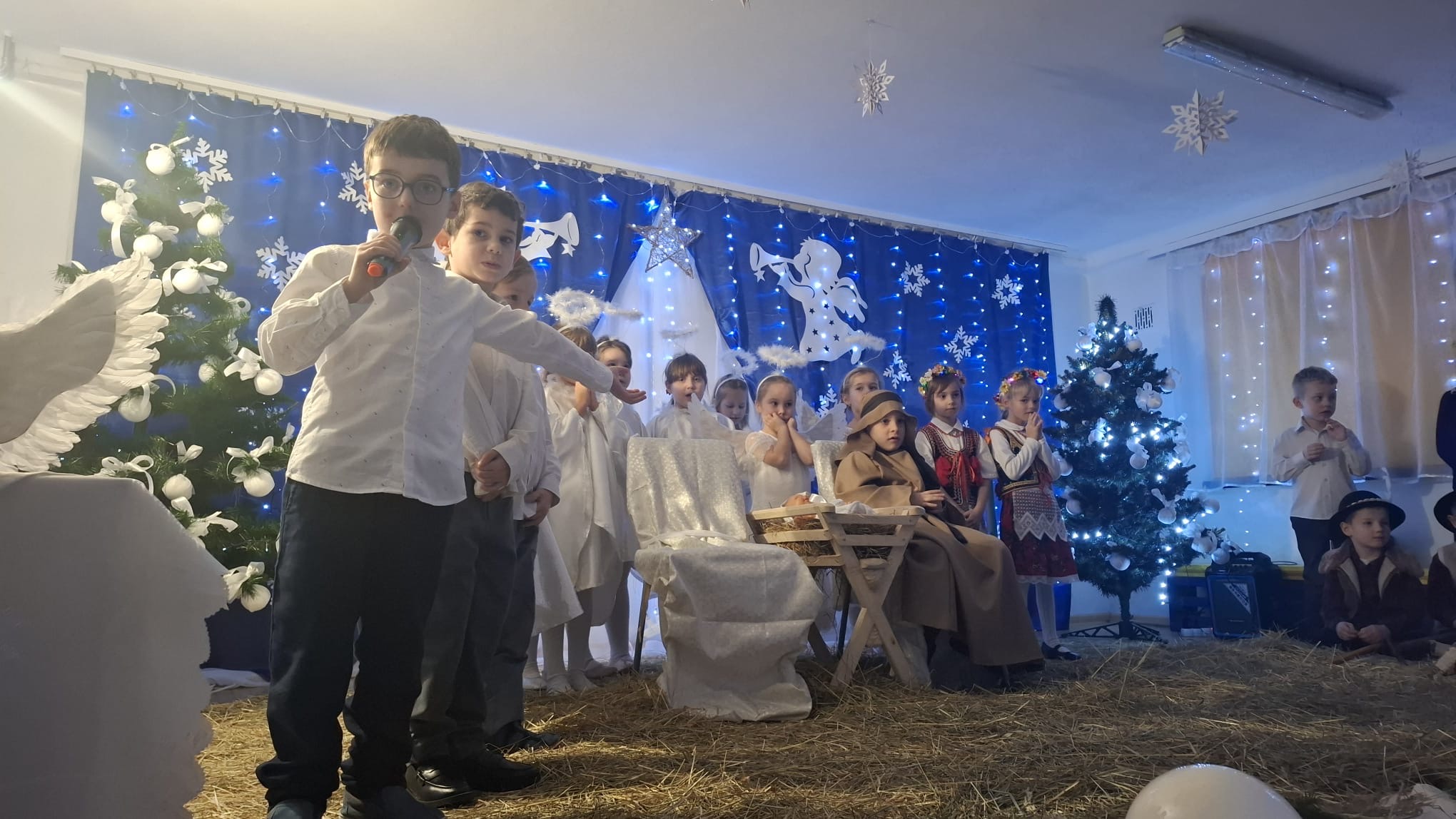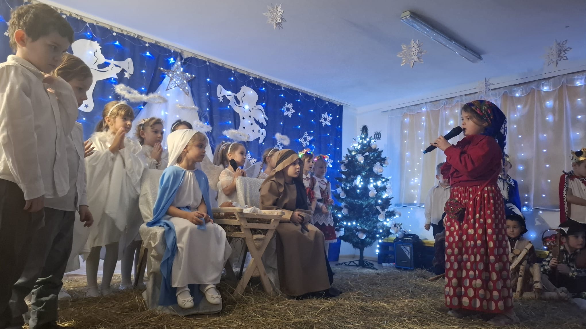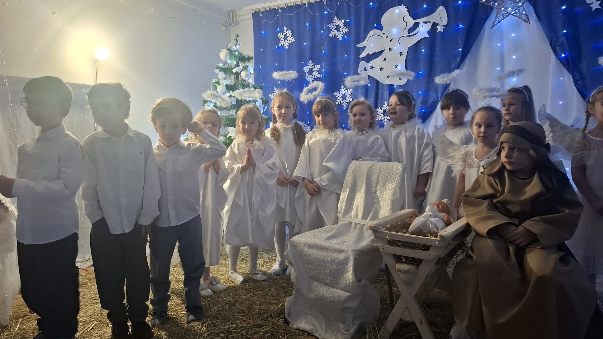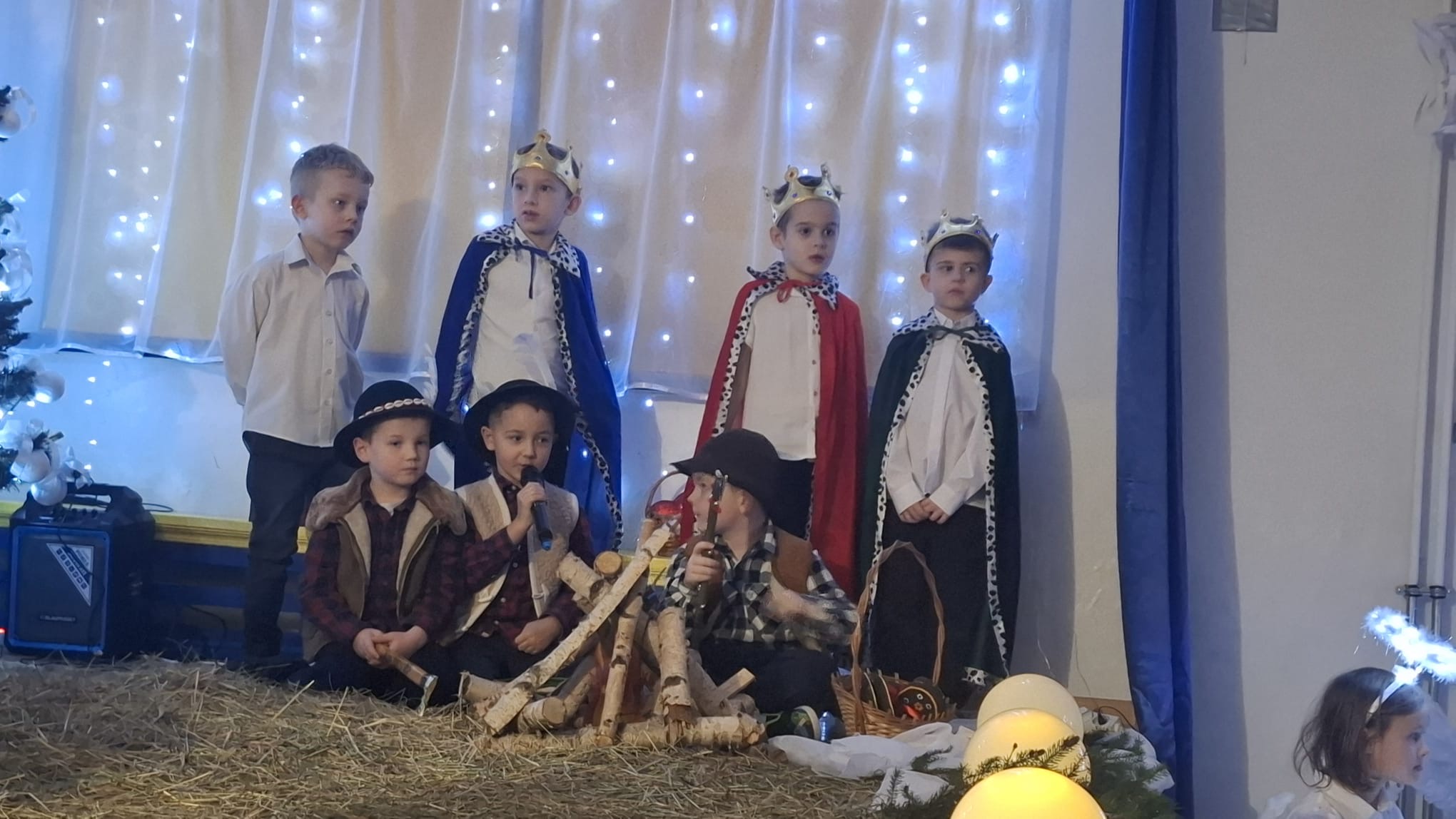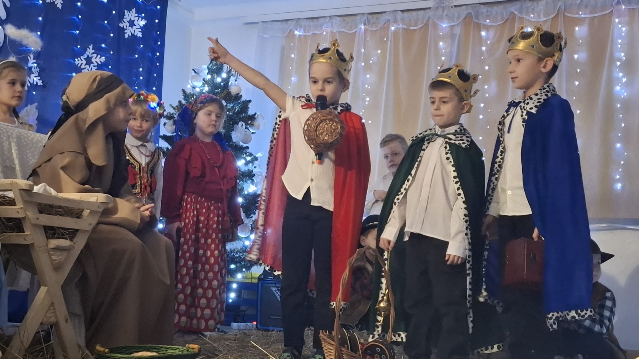 W dniu 18.12 w naszym przedszkolu odbyły się jasełka bożonarodzeniowe pt. „Pójdźmy wszyscy do stajenki”, przygotowane przez dzieci z grupy IV i V pod kierunkiem wychowawców. Dzieci zaprezentowały inscenizację ukazującą drogę Józefa i Maryi do stajenki, osoby spotkane po drodze, a także pasterzy, którzy jako pierwsi dowiedzieli się o narodzinach Jezusa, oraz Trzech Króli składających pokłon i dary Dzieciątku. Przedstawienie było wzbogacone śpiewem kolęd i piosenek: ,,W żłobie leży”, „Gore gwiazda Jezusowi” w wykonaniu Blanki, grą na dzwonkach melodii kolędy „Lulajże Jezuniu” w wykonaniu Julii , piosenką „Świeć, gwiazdeczko mała, świeć” oraz tańcem do utworu „Noel”. Występ odbył się w uroczystej i podniosłej atmosferze. Jasełka obejrzeli zaproszeni goście przez dyrekcję przedszkola: radni miasta Trzebinia pani Karolina Cyran, pani Halina Henc, pan Mateusz Król, pani Monika Dereszowska, księża z parafii Niepokalanego Serca Najświętszej Maryi Panny w Sierszy proboszcz ks. Kanonik Jerzy Filek, ks. Marcin Meres, Wicedyrektor SP nr 6 w Gaju pani Magdalena Staroń, Dyrektor SP nr 5 w Sierszy pan Łukasz Matusik oraz rodzice. Na ręce pani dyrektor zostało przekazane podczas jasełek światełko pokoju przez panią komendantkę hufca z Trzebini Annę Pilarczyk - Więcław. Mali artyści z dużym zaangażowaniem i radością zaprezentowali swoje role, za co zostali nagrodzeni gromkimi brawami. Przedstawienie było pięknym wprowadzeniem w świąteczny nastrój oraz okazją do wspólnego przeżywania tradycji bożonarodzeniowych.