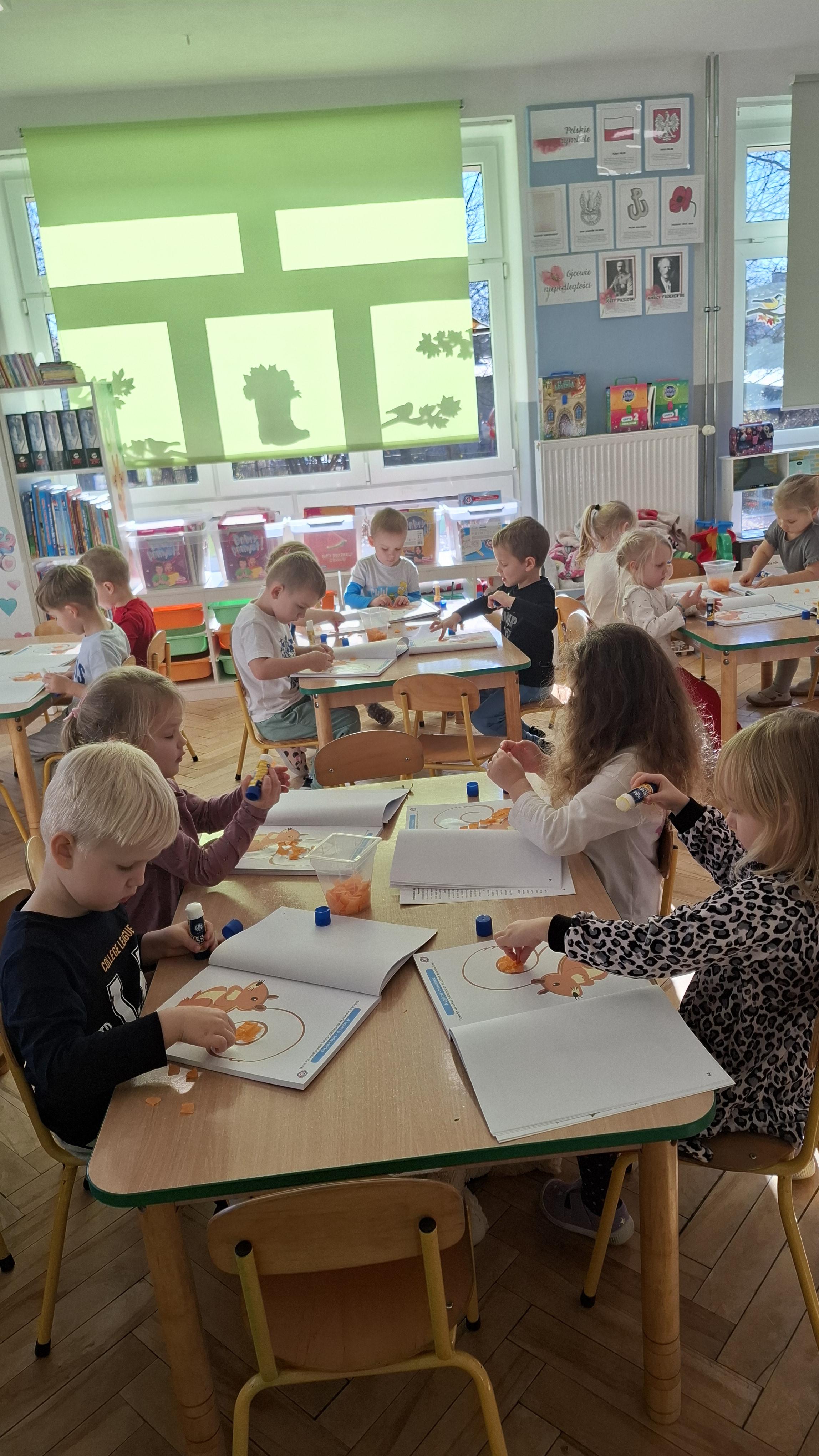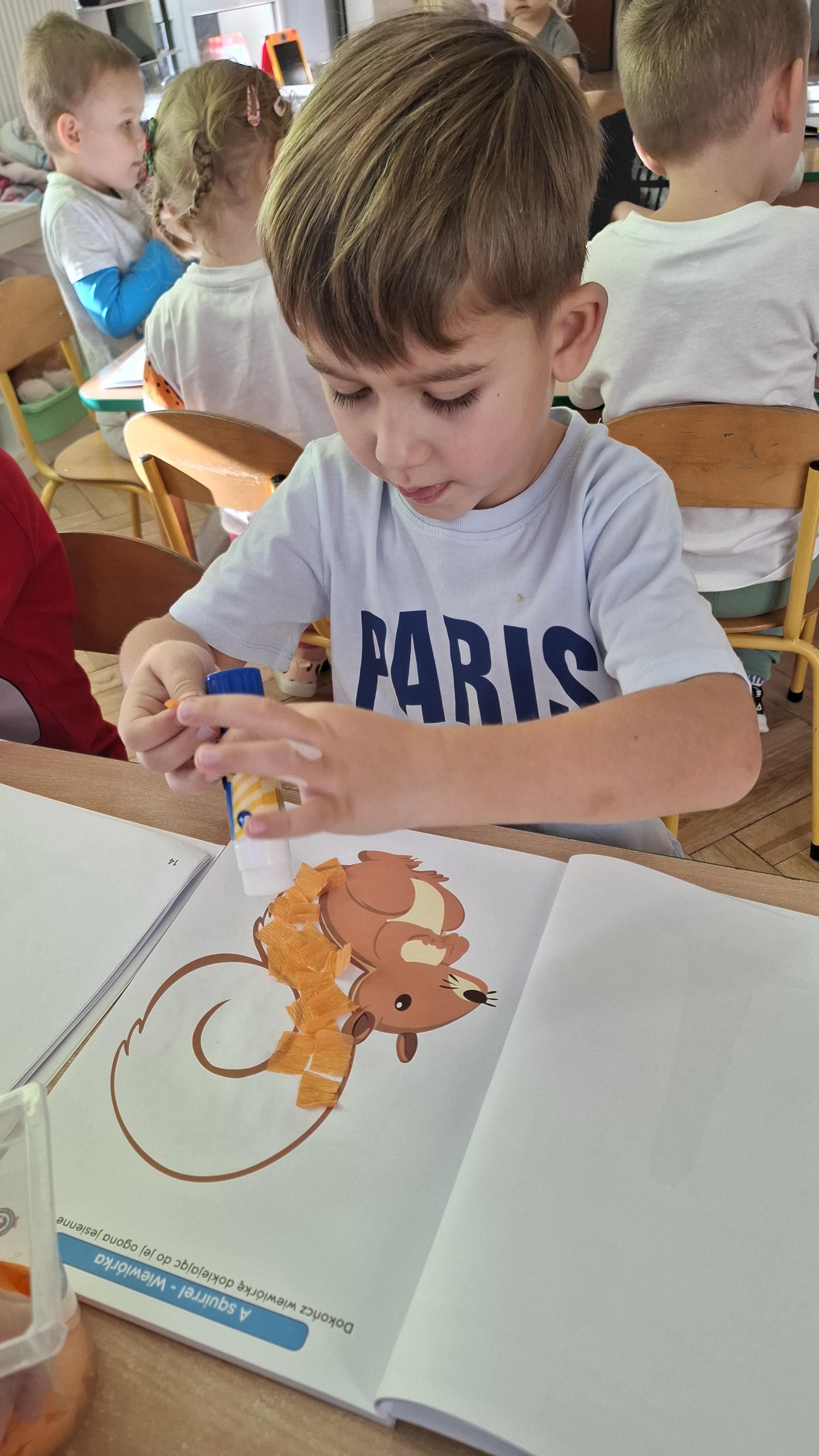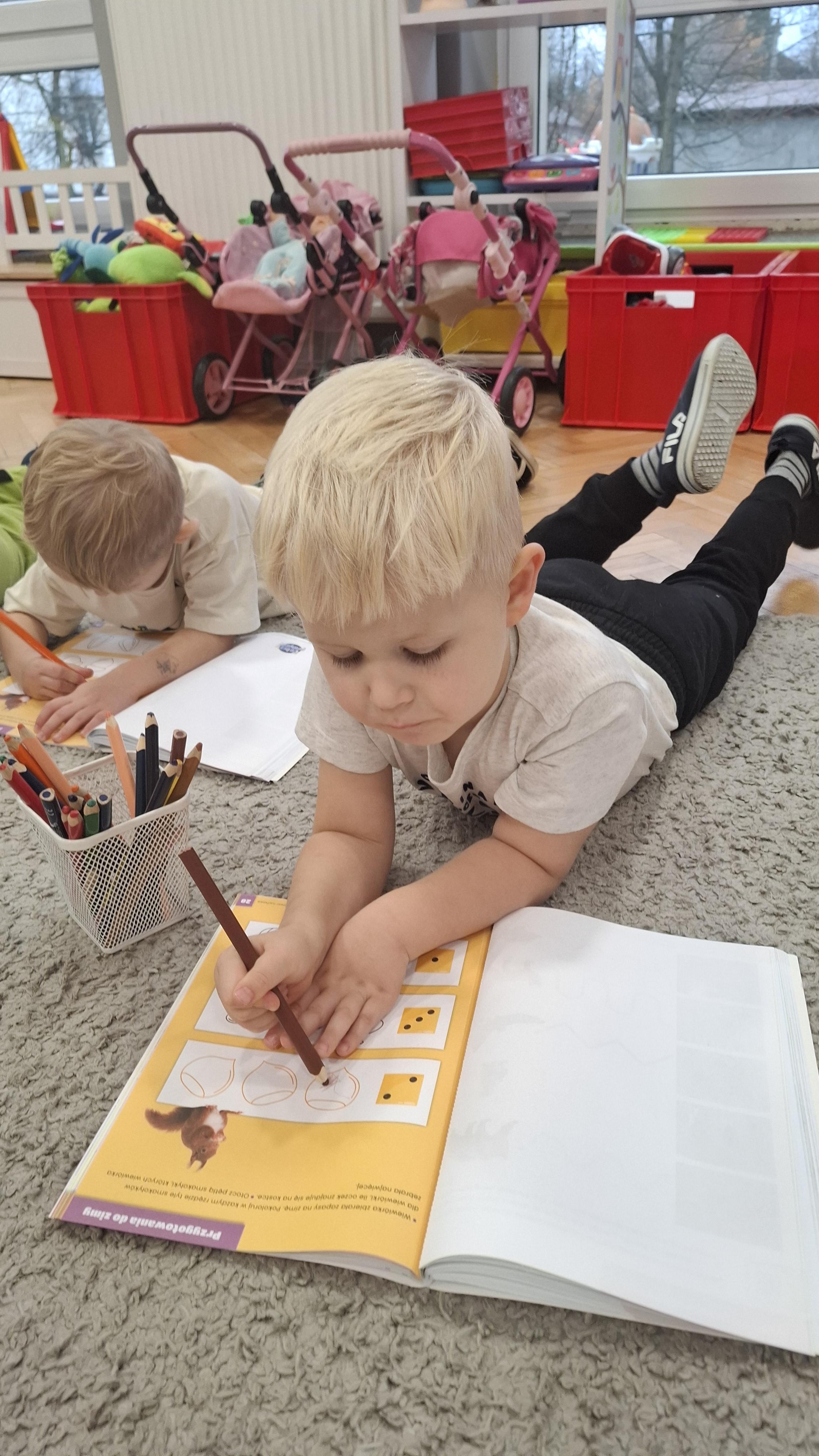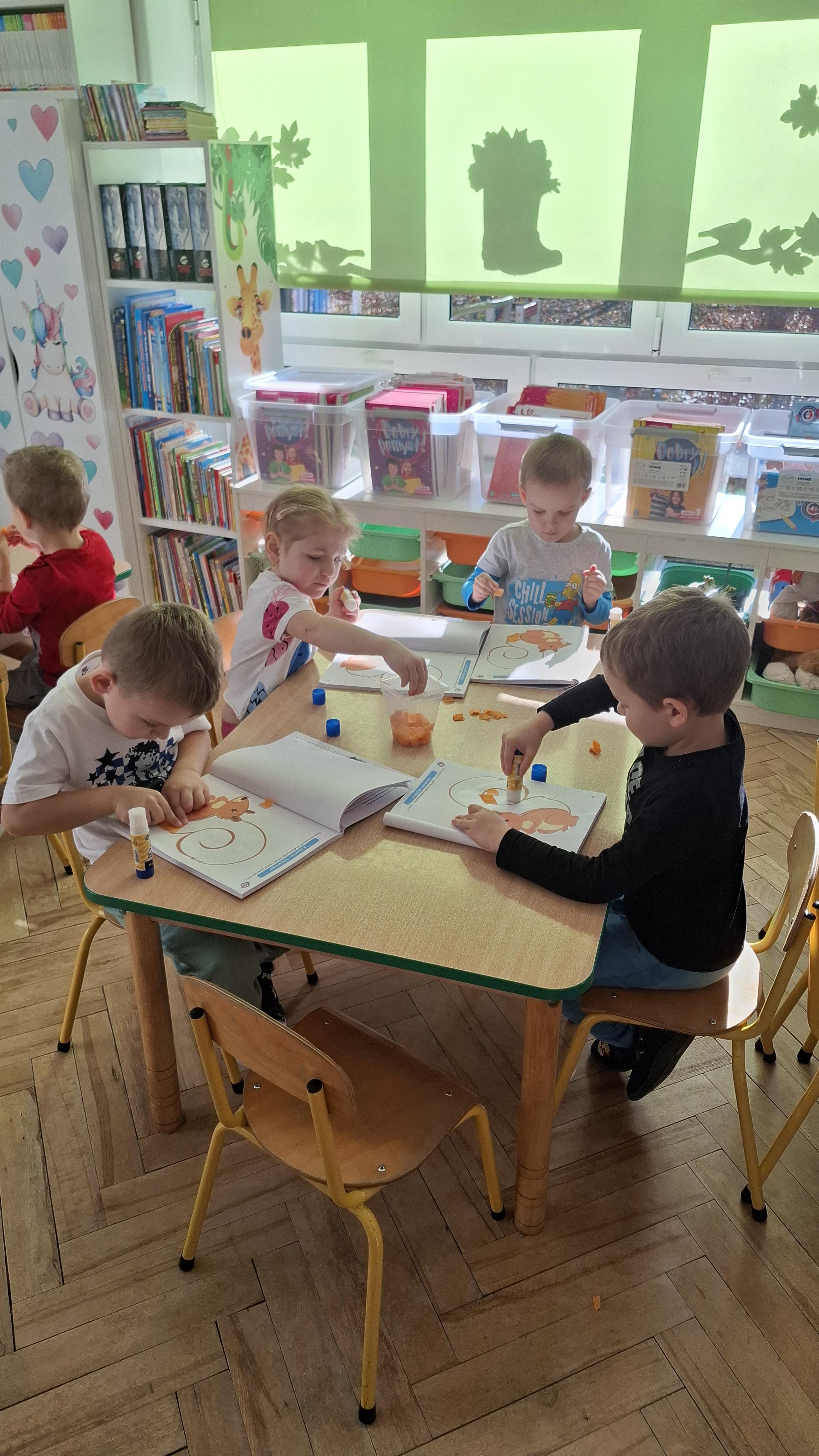 W trakcie tygodnia dzieci utrwalały znajomość nazw zwierząt leśnych, dzieliły wyrazy na sylaby i tworzyły zdrobnienia, rozwijając przy tym swoje umiejętności językowe. Rozmawialiśmy również o tym, że zimą warto pomagać ptakom, zwłaszcza gdy trudno im znaleźć pożywienie.