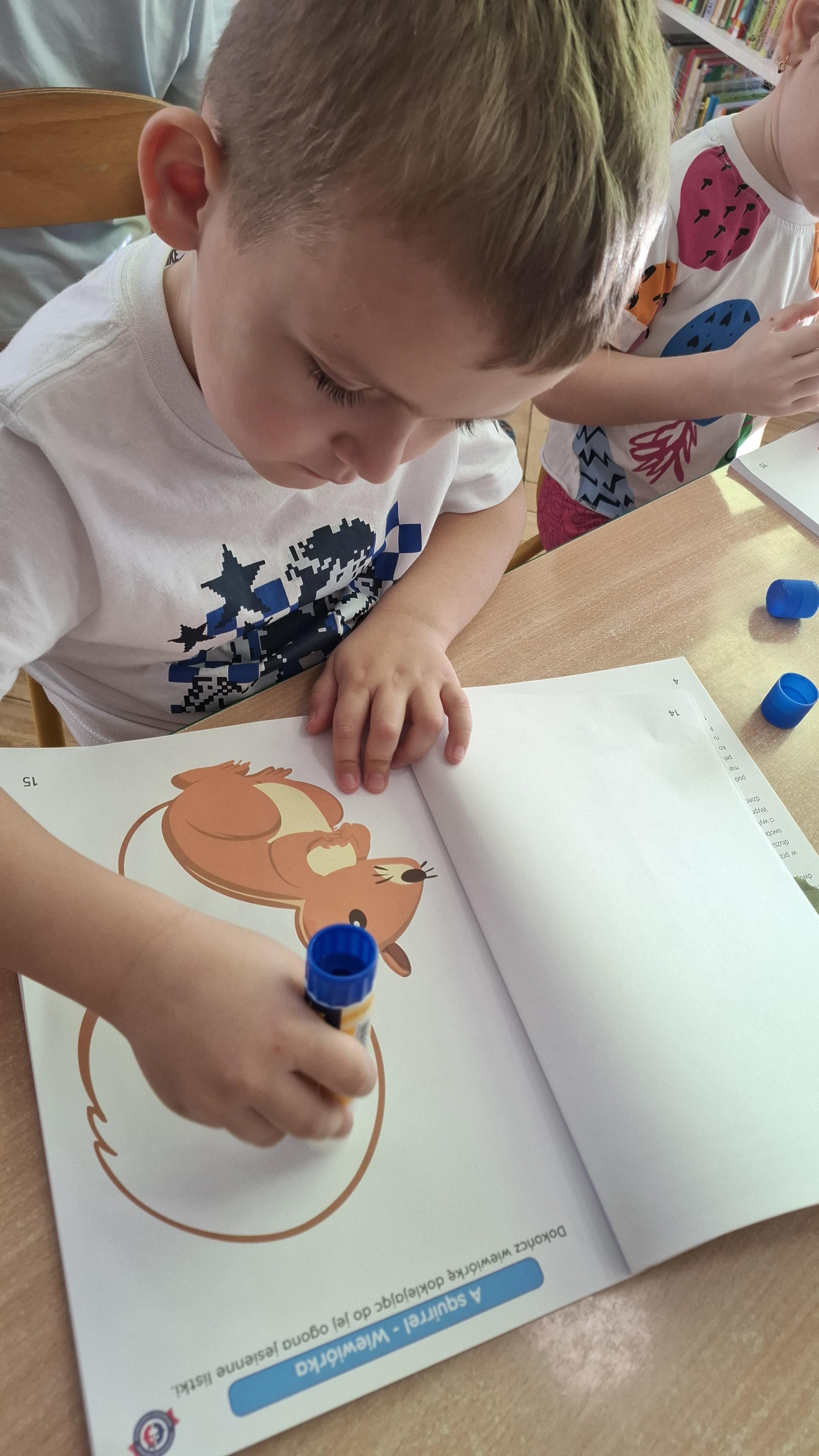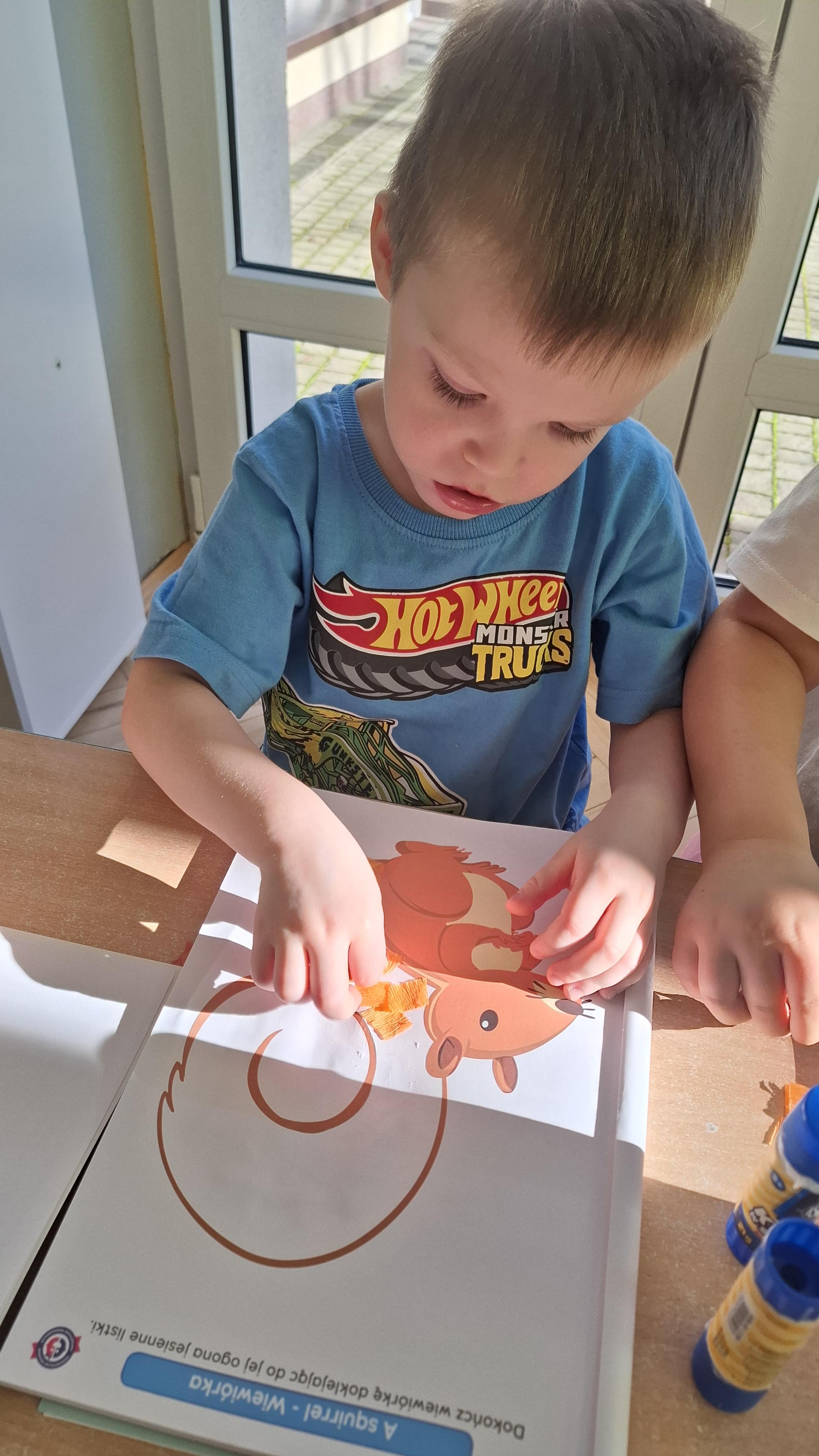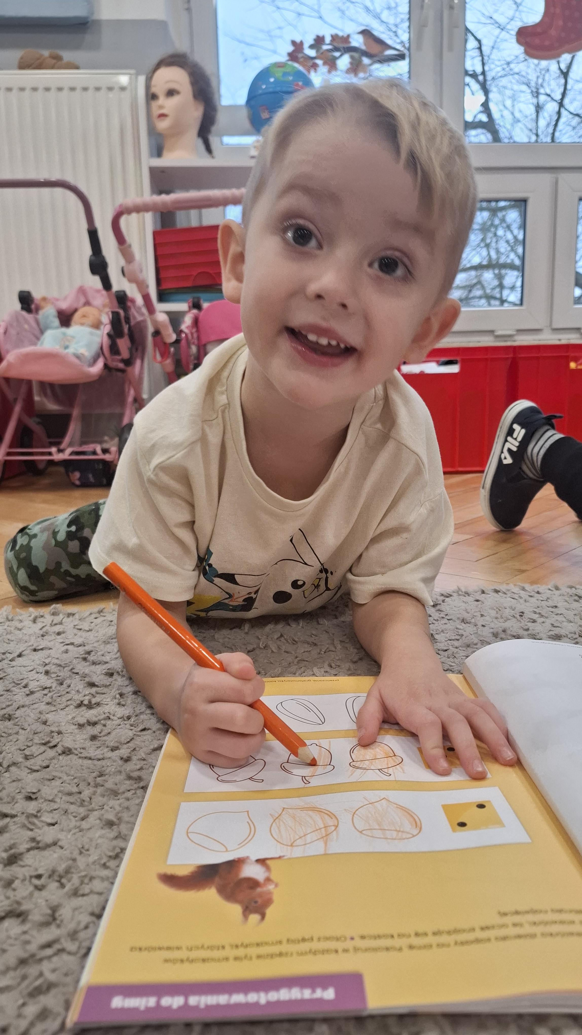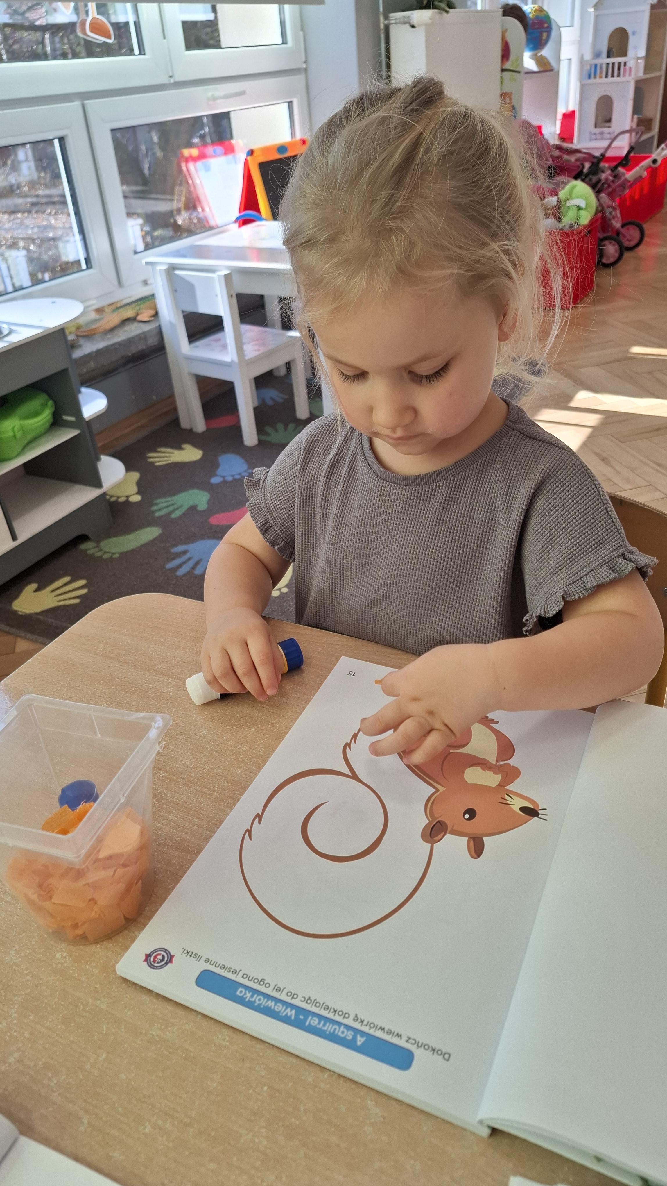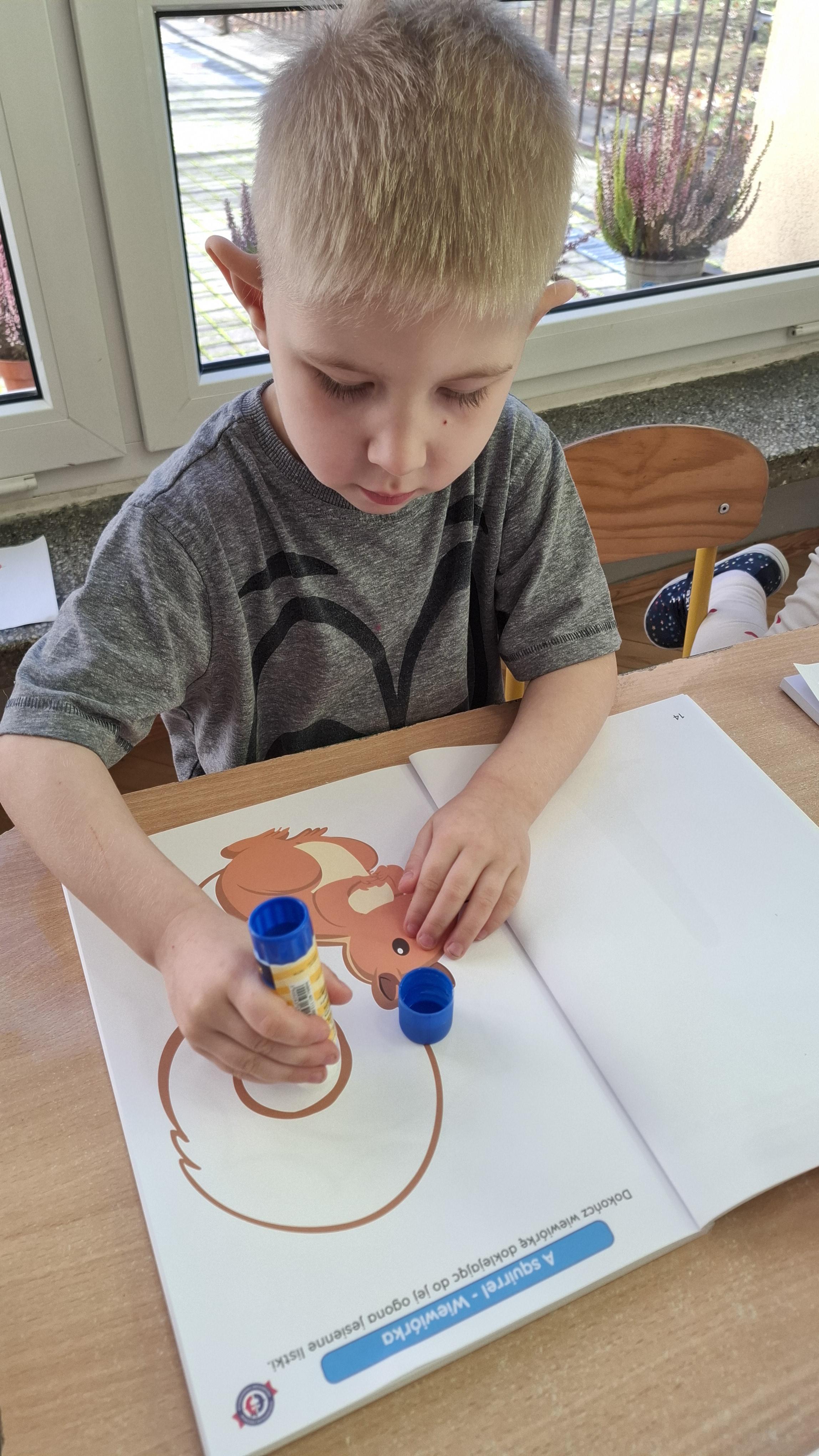 W trakcie tygodnia dzieci utrwalały znajomość nazw zwierząt leśnych, dzieliły wyrazy na sylaby i tworzyły zdrobnienia, rozwijając przy tym swoje umiejętności językowe. Rozmawialiśmy również o tym, że zimą warto pomagać ptakom, zwłaszcza gdy trudno im znaleźć pożywienie.