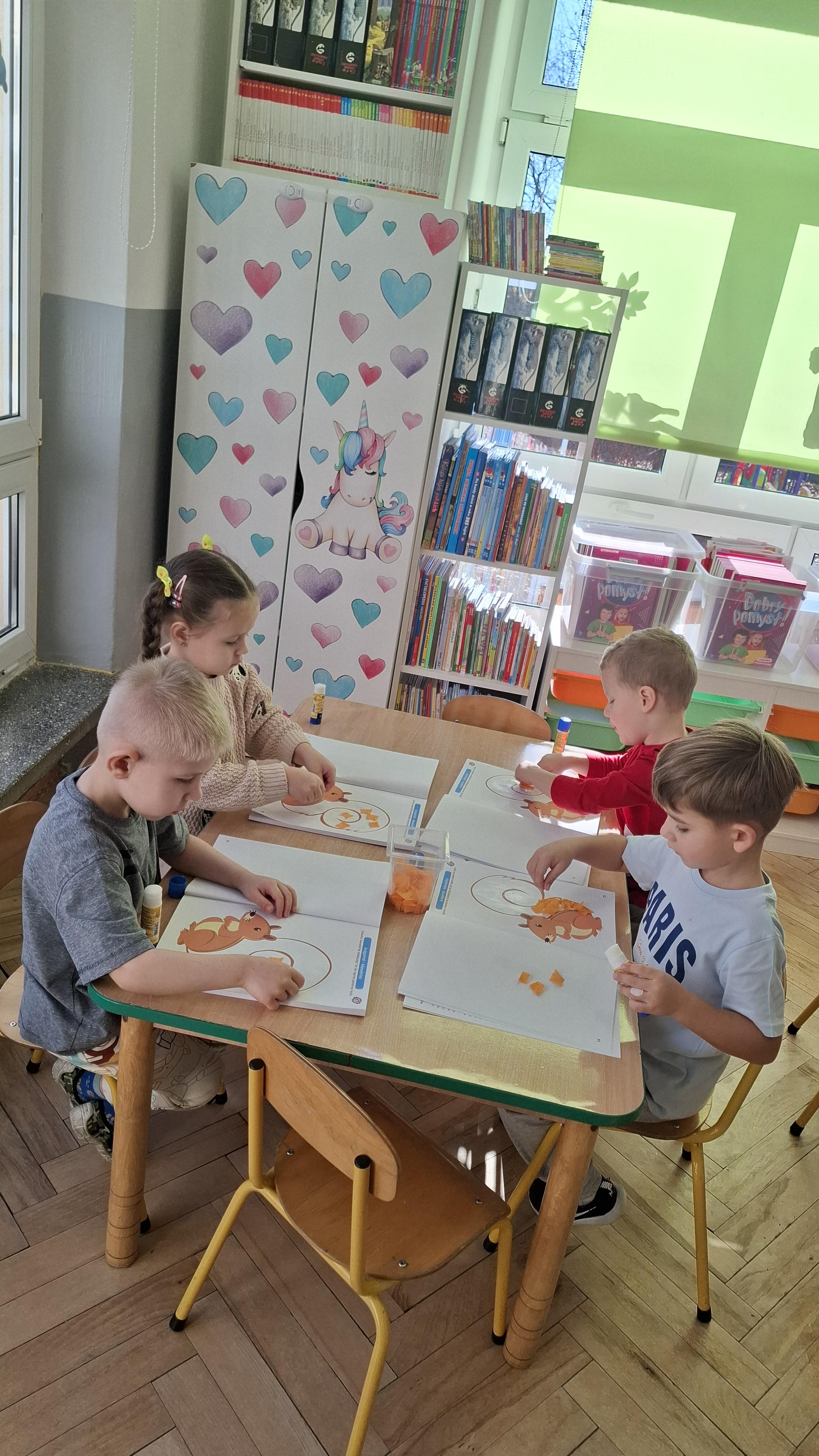 W minionym tygodniu rozmawialiśmy o znaczeniu odpoczynku i snu. Po wysłuchaniu opowiadania W. Kosteckiej „Jak chrapie niedźwiedź?” dzieci dowiedziały się, że zwierzęta – podobnie jak ludzie – również potrzebują snu. Jedne śpią w dzień, inne w nocy, a niektóre, jak niedźwiedzie czy borsuki, zapadają zimą w sen, ponieważ wtedy trudniej o pożywienie.