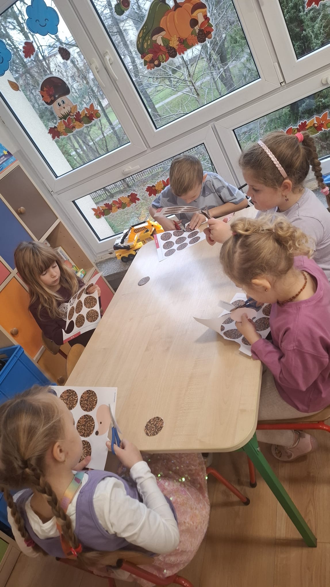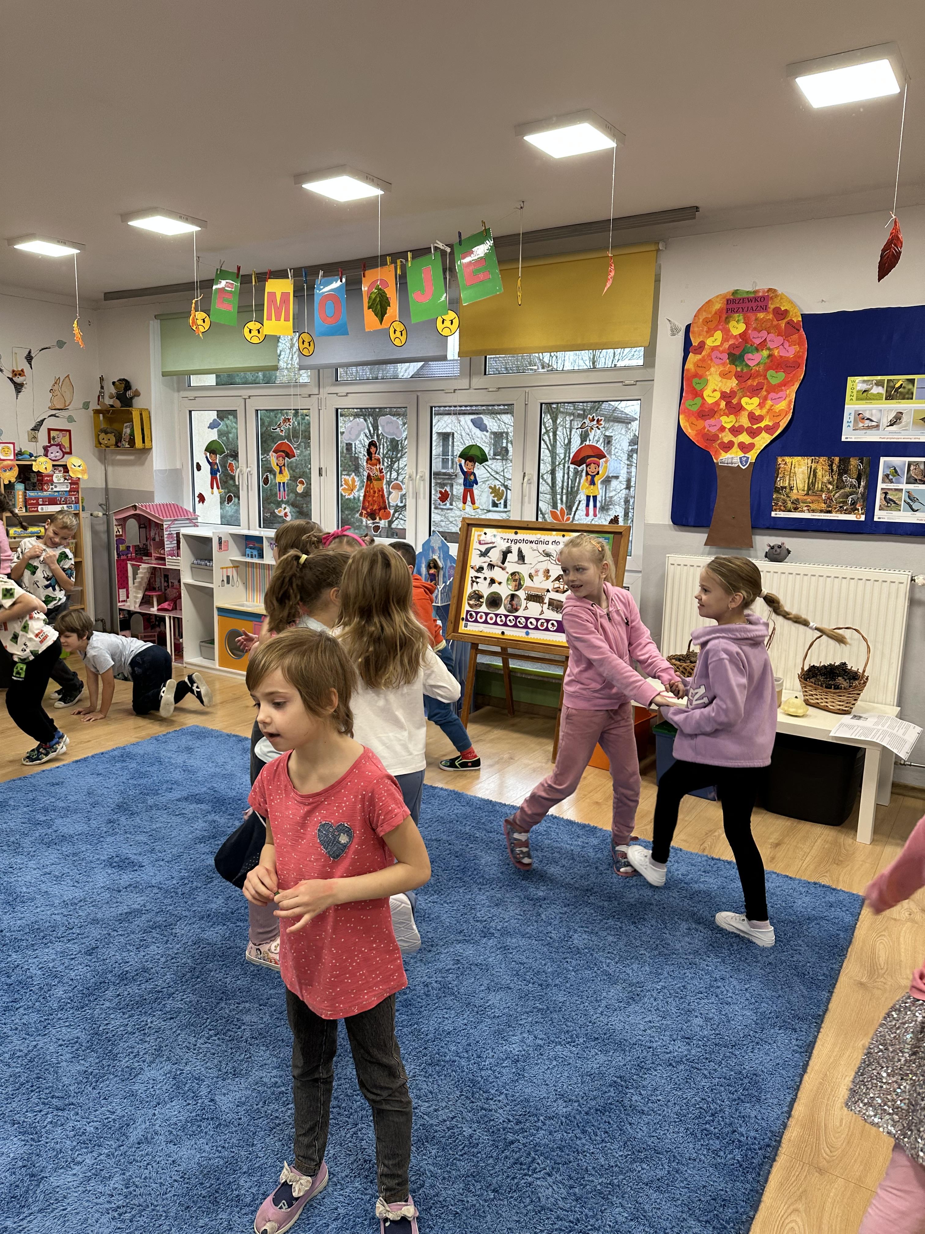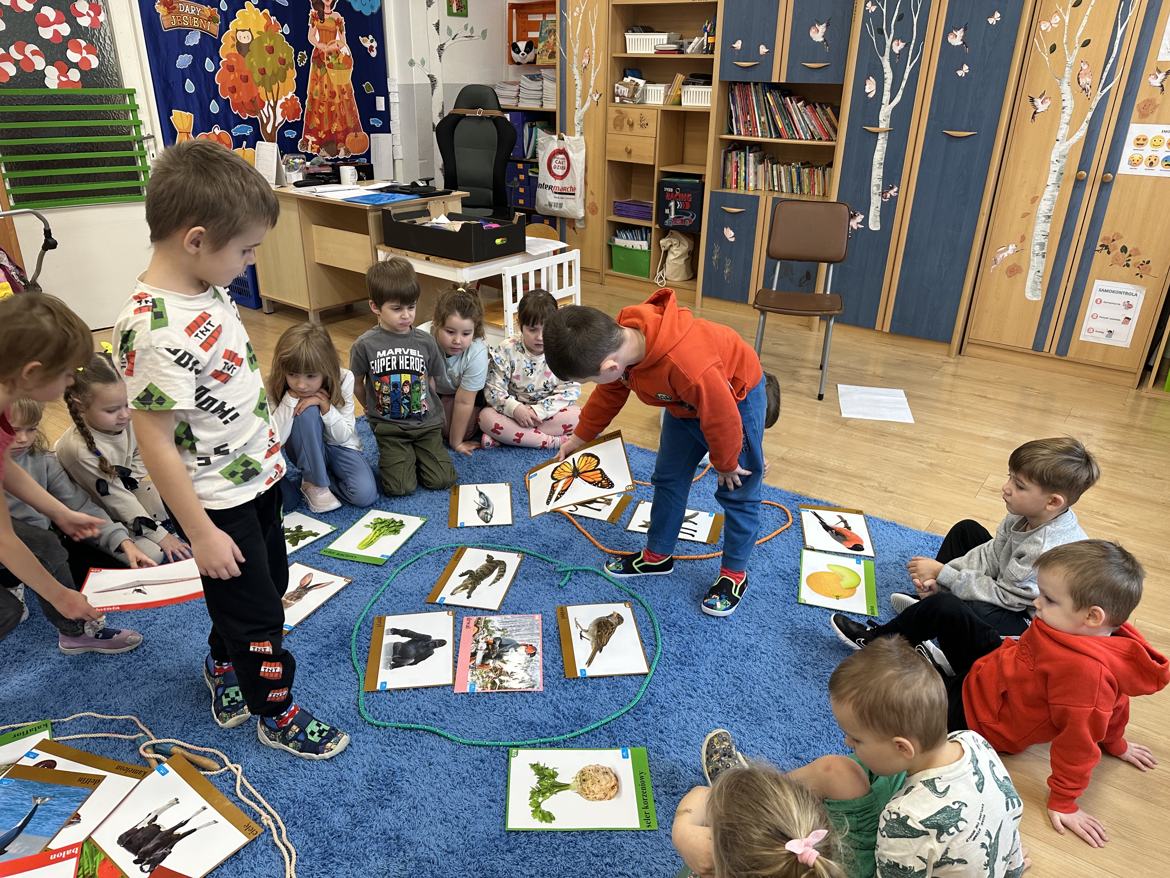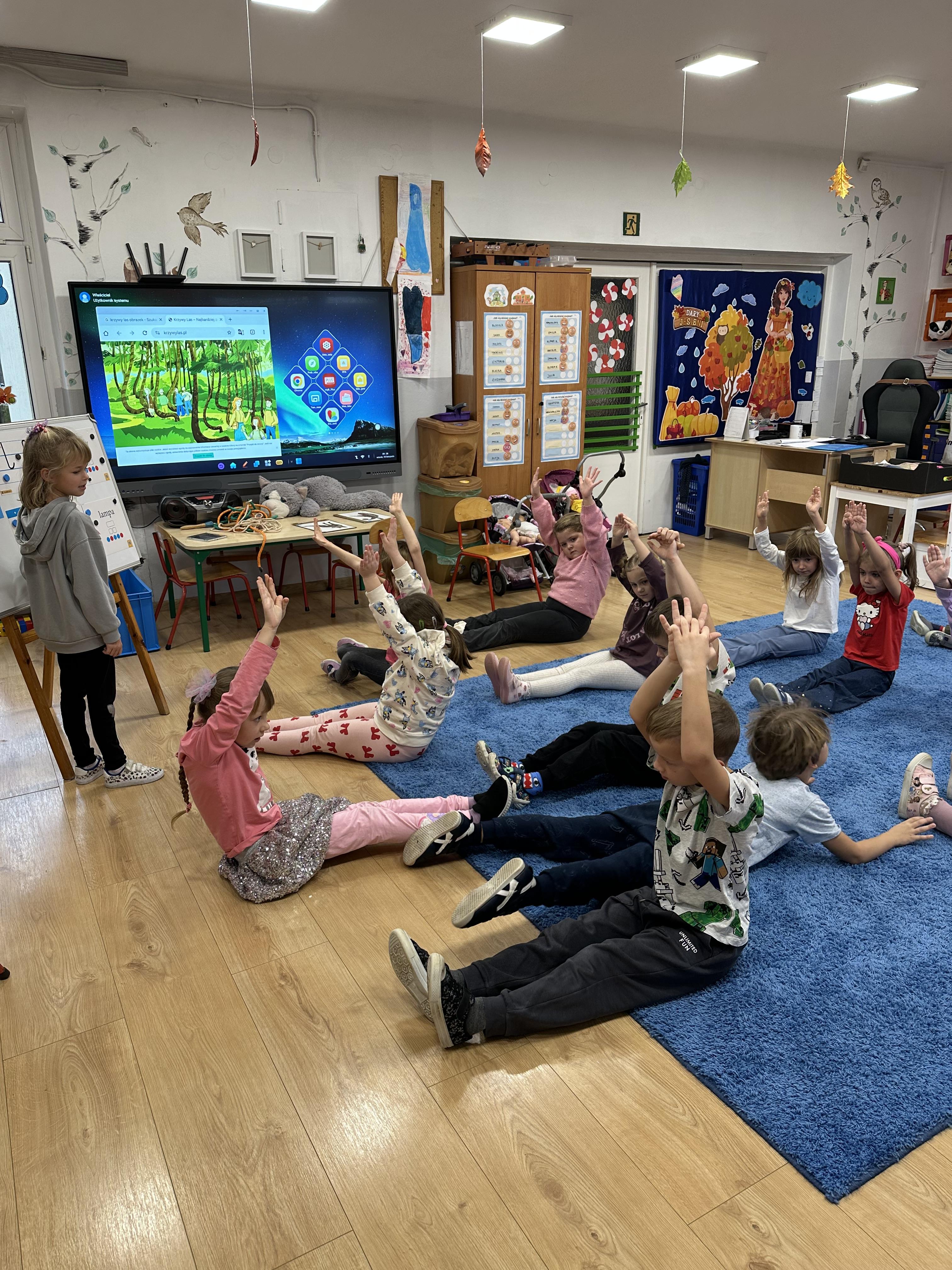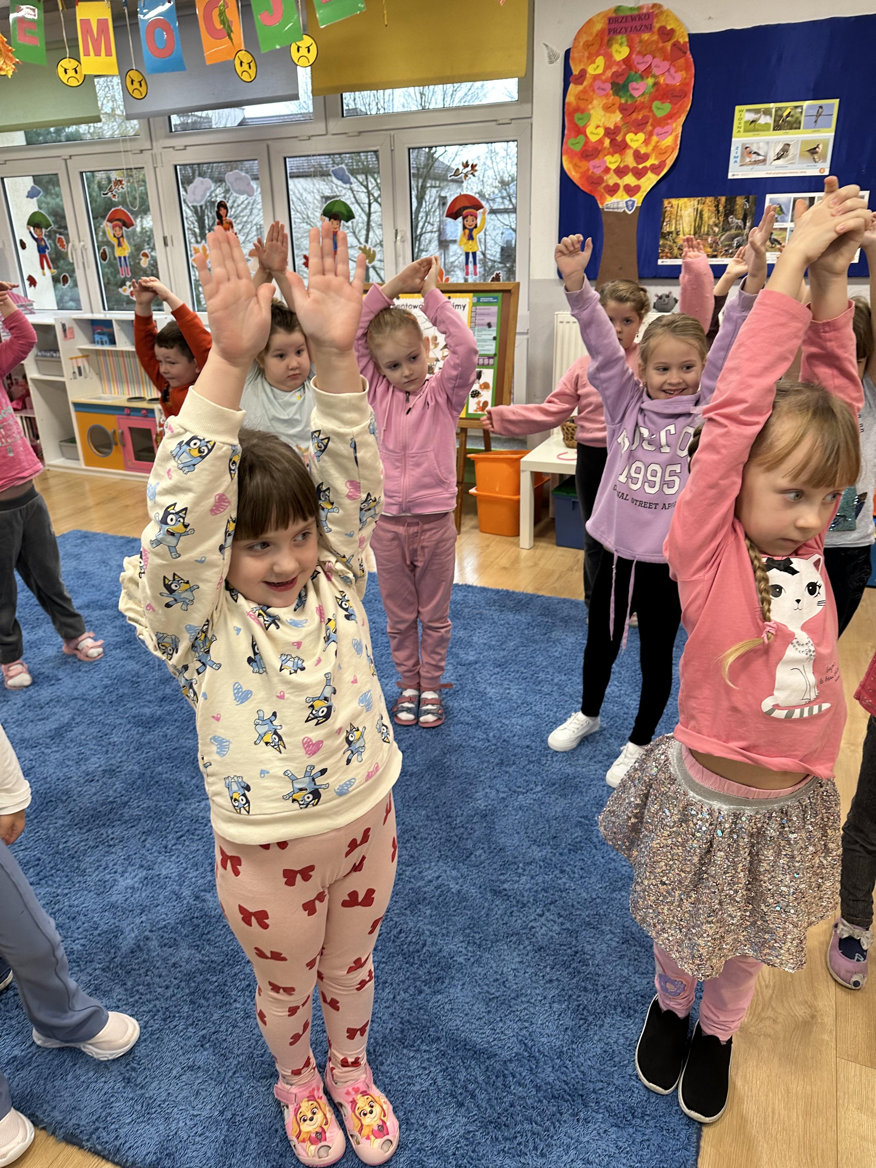 W poniedziałek przedszkolaki wysłuchały opowiadania ,,Odpoczynek zimowy”, które stało się punktem wyjścia do wspólnej rozmowy o tym, jak ważny jest sen dla zachowania zdrowia. Przedszkolaki uświadomiły sobie, że wszyscy mają prawo do odpoczynku i jest on potrzebny każdej istocie. Podczas zabawy „Niedźwiedzi sen” dowiedziały się, dlaczego niedźwiedź śpi całą zimę, rozwijały swoją wiedzę przyrodniczą dotyczącą hibernacji zwierząt i pobudzały ciekawość poznawczą. Nie brakowało w tym dniu zabaw ruchowych – sześciolatki skakały, udając żaby, prawidłowo reagowały ruchem na umówiony sygnał oraz wykonywały skłony. W trakcie zabawy „Czy sen jest ważny?” dzieliły się swoimi przemyśleniami dotyczącymi snu. Zdały sobie sprawę, że niewyspanie się wywołuje niezadowolenie i rozdrażnienie. Dzień zakończyły wykonaniem pracy plastycznej z wykorzystaniem kół. We wtorek dzieci poznały literę l, L, układały jej schemat graficzny i kreśliły jej wzór w powietrzu. Podczas zabaw rozwijały swoje kompetencje językowe, wyróżniały głoski w nagłosie, śródgłosie i wygłosie, dokonywały analizy i syntezy słuchowej słowa ,,las”, reagowały ruchowo na głoskę l. Podczas zabaw ruchowych „Jeśli l, zróbcie las” i „Ułóż małe l” utrwalały zdobytą wiedzę. W drugiej części dnia dzieci wybrały się do lasu na spacer. Obserwowały, jakie zwierzęta i rośliny można znaleźć w lesie i rozbudzały w sobie zainteresowanie przyrodą. Po powrocie do przedszkola narysowały je, a następnie rozwiązywały zagadki językowe dotyczące nazw mieszkańców lasu. W środę dzieci poznały liczbę 7 w trzech aspektach: kardynalnym, porządkowym i miarowym. Podczas zabawy „Znajdź liczby w labiryncie” kształtowały umiejętność kodowania i rozwijały swoje kompetencje matematyczne. Słuchały wiersza ,,Konik polny i mrówka”, który stał się początkiem rozmowy o pracowitości. Dzieci uświadomiły sobie, że najpierw należy wykonać obowiązki, dopiero później jest czas na zabawę. Pogadanka ta stanowiła wprowadzenie do rozmowy o przygotowaniach zwierząt do zimy. Na dworze dzieci ćwiczyły umiejętność rzutu do celu oraz przeliczały do 7. Nie zabrakło w tym dniu zadań matematycznych. W trakcie zabaw „Zbieramy orzechy” i „7 kroków” przedszkolaki utrwalały zdobyte umiejętności matematyczne i kształtowały orientację w przestrzeni. W czwartek rano dzieci wykonały biżuterię z naturalnych, jesiennych przedmiotów, następnie wysłuchały wiersza, po którym rozmawiały na temat dbania o zwierzęta zimą. Kształtowały poczucie odpowiedzialności za los zwierząt zimą. Przedszkolaki czerpały radość ze wspólnej zabawy: biegały po sali, naśladując lot ptaków, rozpoznawały ptaki na obrazkach, brały udział w ćwiczeniach oddechowych, rozwijały umiejętność współpracy w grupie podczas budowania gniazda dla jemiołuszki oraz rozwijały ciekawość poznawczą, wysłuchując głosów ptaków. W trakcie zabawy „Śpią – nie śpią” sprawdzały swoją wiedzę dotyczącą hibernacji zwierząt. Piątkowe zajęcia były skupione na rozwijaniu świadomości ciała i kreatywności ruchowej dzieci podczas obcowania z muzyką klasyczną. Przedszkolaki wysłuchały muzyki z baletu Piotra Czajkowskiego ,,Jezioro łabędzie” oraz wykonały do niej inscenizację. Kształtowały motorykę małą i rozwijały zdolności planowania pracy własnej podczas tworzenia kolażu modowego. W trakcie zabawy „Dotknij” rozwijały świadomość sensoryczną. Na dworze wykonywały ćwiczenia kształtujące prawidłową postawę ciała. Po powrocie do przedszkola rozwiązywały ,,Quiz” i podsumowały wiedzę zebraną w całym tygodniu.