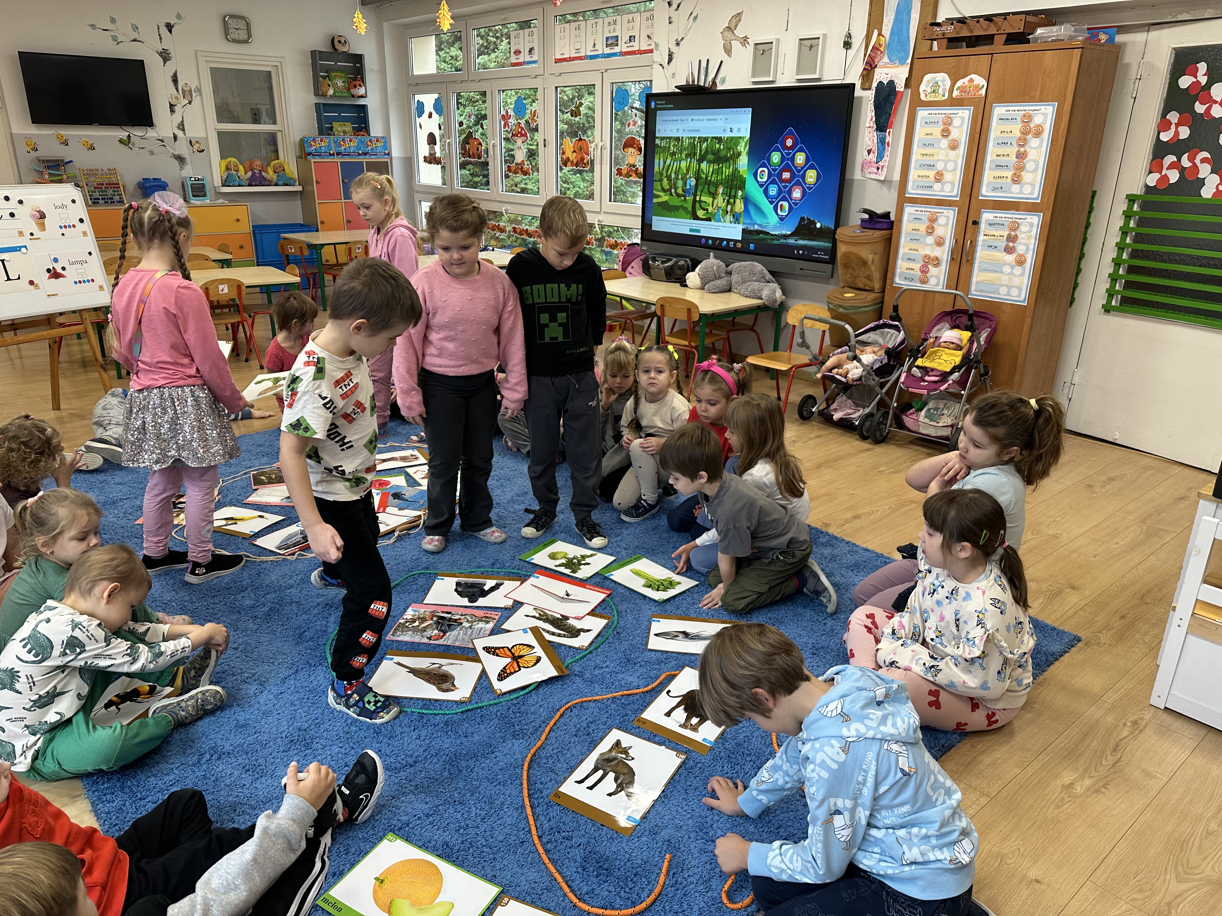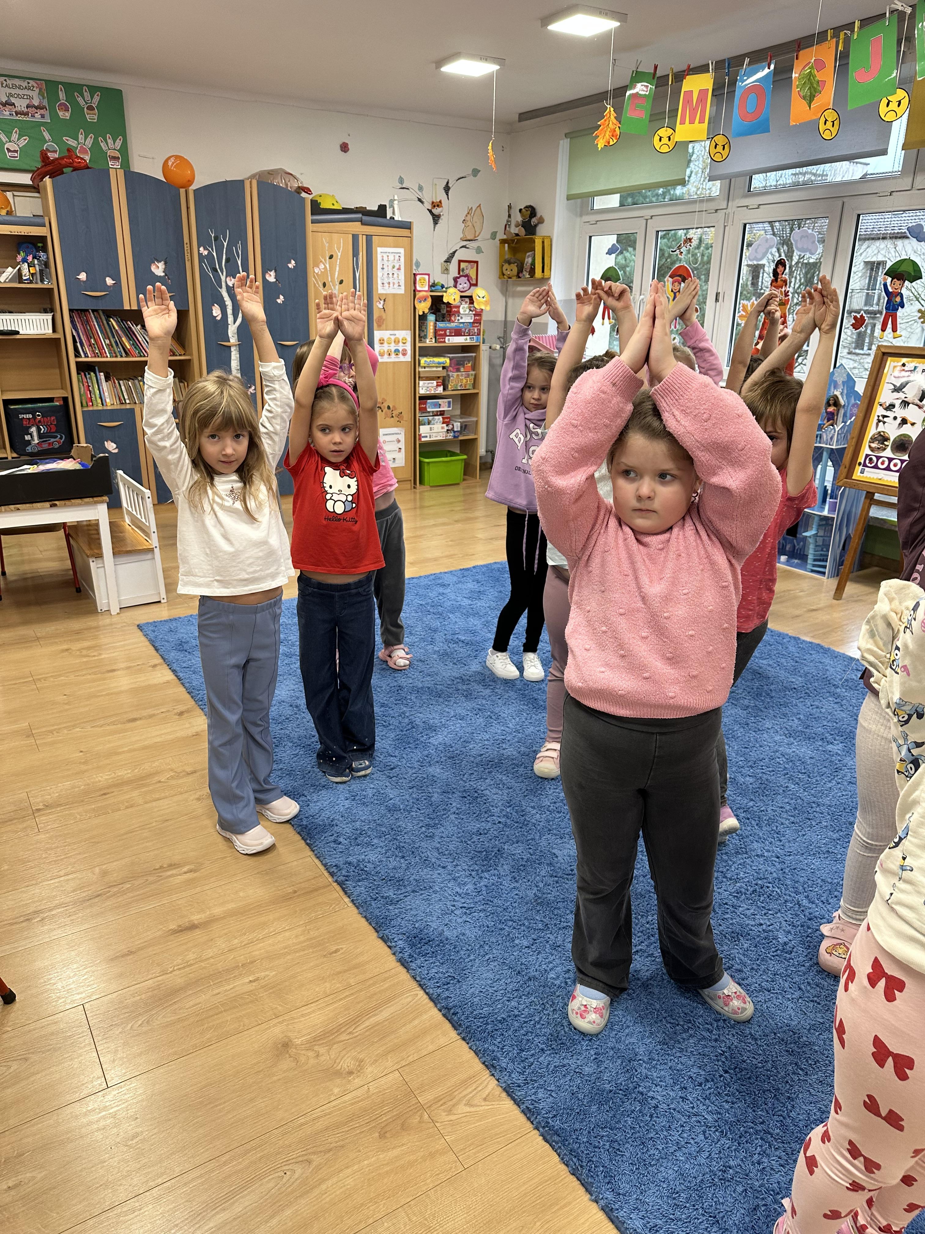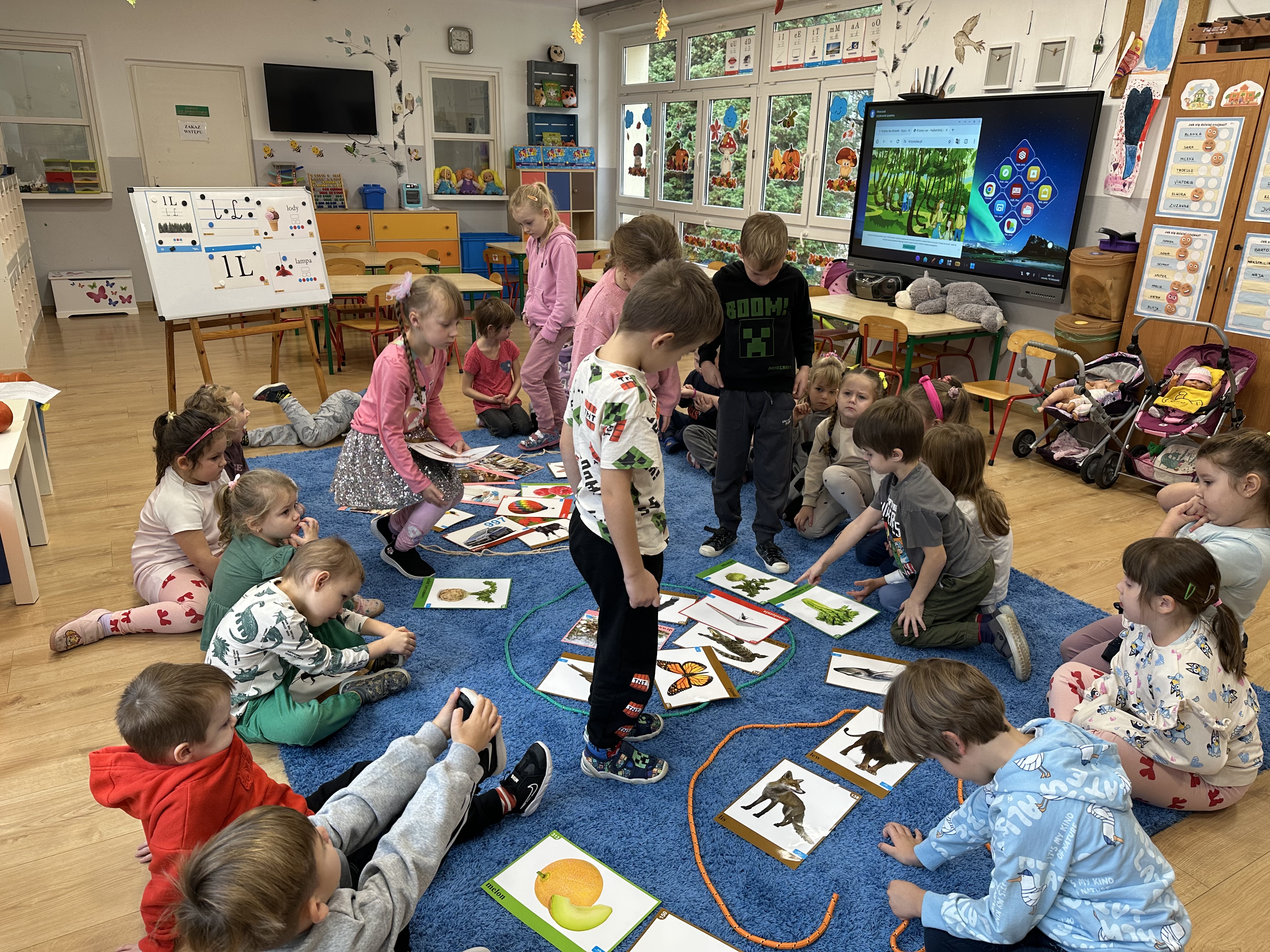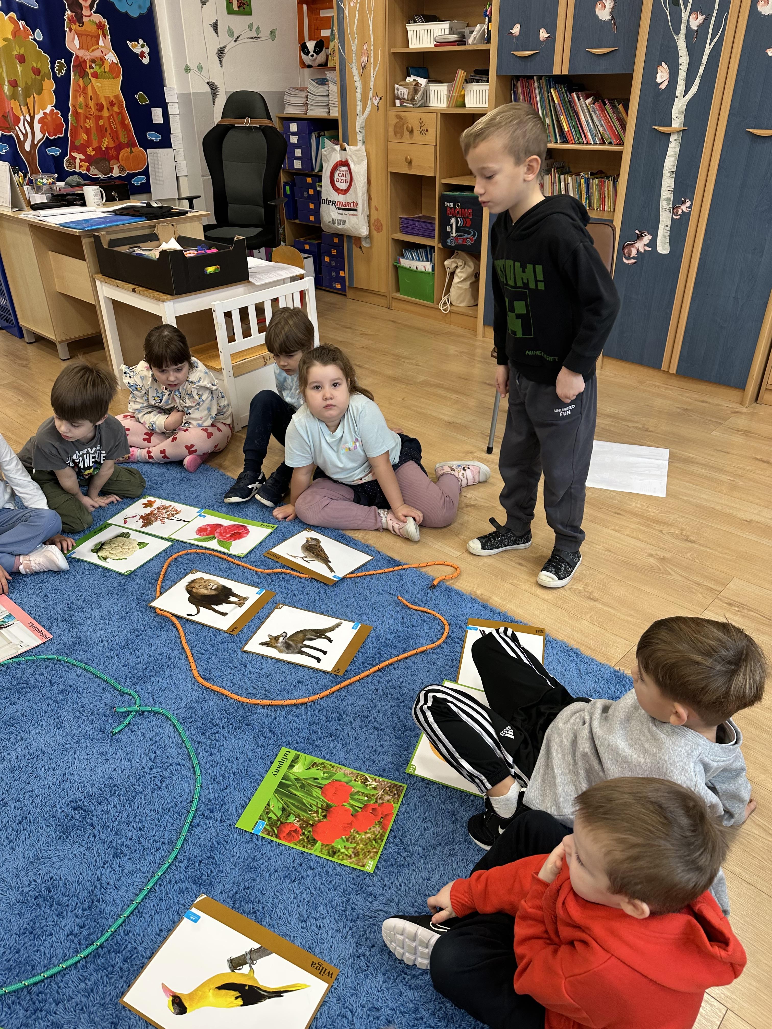 W poniedziałek przedszkolaki wysłuchały opowiadania ,,Odpoczynek zimowy”, które stało się punktem wyjścia do wspólnej rozmowy o tym, jak ważny jest sen dla zachowania zdrowia. Przedszkolaki uświadomiły sobie, że wszyscy mają prawo do odpoczynku i jest on potrzebny każdej istocie. Podczas zabawy „Niedźwiedzi sen” dowiedziały się, dlaczego niedźwiedź śpi całą zimę, rozwijały swoją wiedzę przyrodniczą dotyczącą hibernacji zwierząt i pobudzały ciekawość poznawczą. Nie brakowało w tym dniu zabaw ruchowych – sześciolatki skakały, udając żaby, prawidłowo reagowały ruchem na umówiony sygnał oraz wykonywały skłony. W trakcie zabawy „Czy sen jest ważny?” dzieliły się swoimi przemyśleniami dotyczącymi snu. Zdały sobie sprawę, że niewyspanie się wywołuje niezadowolenie i rozdrażnienie. Dzień zakończyły wykonaniem pracy plastycznej z wykorzystaniem kół. We wtorek dzieci poznały literę l, L, układały jej schemat graficzny i kreśliły jej wzór w powietrzu. Podczas zabaw rozwijały swoje kompetencje językowe, wyróżniały głoski w nagłosie, śródgłosie i wygłosie, dokonywały analizy i syntezy słuchowej słowa ,,las”, reagowały ruchowo na głoskę l. Podczas zabaw ruchowych „Jeśli l, zróbcie las” i „Ułóż małe l” utrwalały zdobytą wiedzę. W drugiej części dnia dzieci wybrały się do lasu na spacer. Obserwowały, jakie zwierzęta i rośliny można znaleźć w lesie i rozbudzały w sobie zainteresowanie przyrodą. Po powrocie do przedszkola narysowały je, a następnie rozwiązywały zagadki językowe dotyczące nazw mieszkańców lasu. W środę dzieci poznały liczbę 7 w trzech aspektach: kardynalnym, porządkowym i miarowym. Podczas zabawy „Znajdź liczby w labiryncie” kształtowały umiejętność kodowania i rozwijały swoje kompetencje matematyczne. Słuchały wiersza ,,Konik polny i mrówka”, który stał się początkiem rozmowy o pracowitości. Dzieci uświadomiły sobie, że najpierw należy wykonać obowiązki, dopiero później jest czas na zabawę. Pogadanka ta stanowiła wprowadzenie do rozmowy o przygotowaniach zwierząt do zimy. Na dworze dzieci ćwiczyły umiejętność rzutu do celu oraz przeliczały do 7. Nie zabrakło w tym dniu zadań matematycznych. W trakcie zabaw „Zbieramy orzechy” i „7 kroków” przedszkolaki utrwalały zdobyte umiejętności matematyczne i kształtowały orientację w przestrzeni. W czwartek rano dzieci wykonały biżuterię z naturalnych, jesiennych przedmiotów, następnie wysłuchały wiersza, po którym rozmawiały na temat dbania o zwierzęta zimą. Kształtowały poczucie odpowiedzialności za los zwierząt zimą. Przedszkolaki czerpały radość ze wspólnej zabawy: biegały po sali, naśladując lot ptaków, rozpoznawały ptaki na obrazkach, brały udział w ćwiczeniach oddechowych, rozwijały umiejętność współpracy w grupie podczas budowania gniazda dla jemiołuszki oraz rozwijały ciekawość poznawczą, wysłuchując głosów ptaków. W trakcie zabawy „Śpią – nie śpią” sprawdzały swoją wiedzę dotyczącą hibernacji zwierząt. Piątkowe zajęcia były skupione na rozwijaniu świadomości ciała i kreatywności ruchowej dzieci podczas obcowania z muzyką klasyczną. Przedszkolaki wysłuchały muzyki z baletu Piotra Czajkowskiego ,,Jezioro łabędzie” oraz wykonały do niej inscenizację. Kształtowały motorykę małą i rozwijały zdolności planowania pracy własnej podczas tworzenia kolażu modowego. W trakcie zabawy „Dotknij” rozwijały świadomość sensoryczną. Na dworze wykonywały ćwiczenia kształtujące prawidłową postawę ciała. Po powrocie do przedszkola rozwiązywały ,,Quiz” i podsumowały wiedzę zebraną w całym tygodniu.