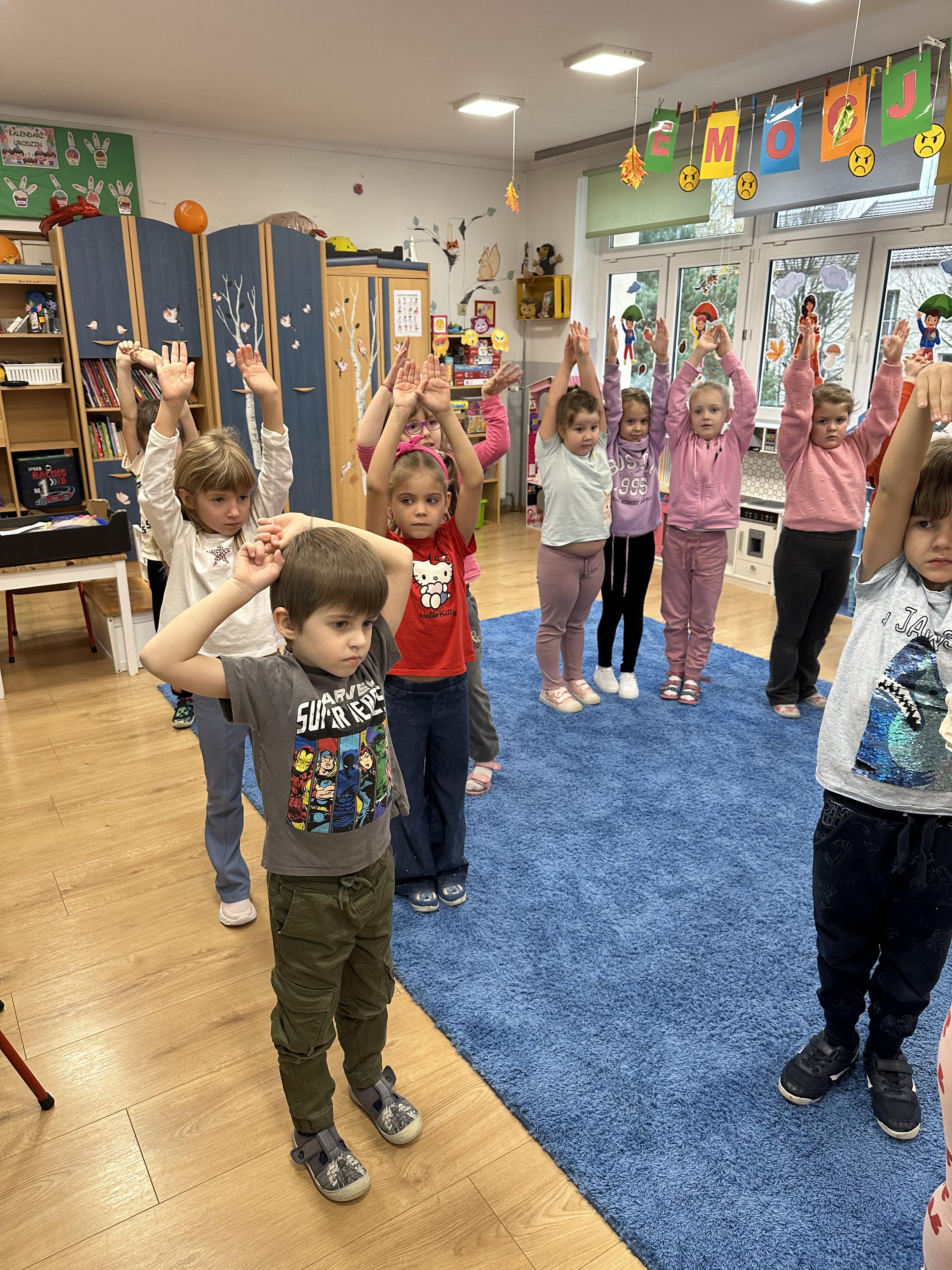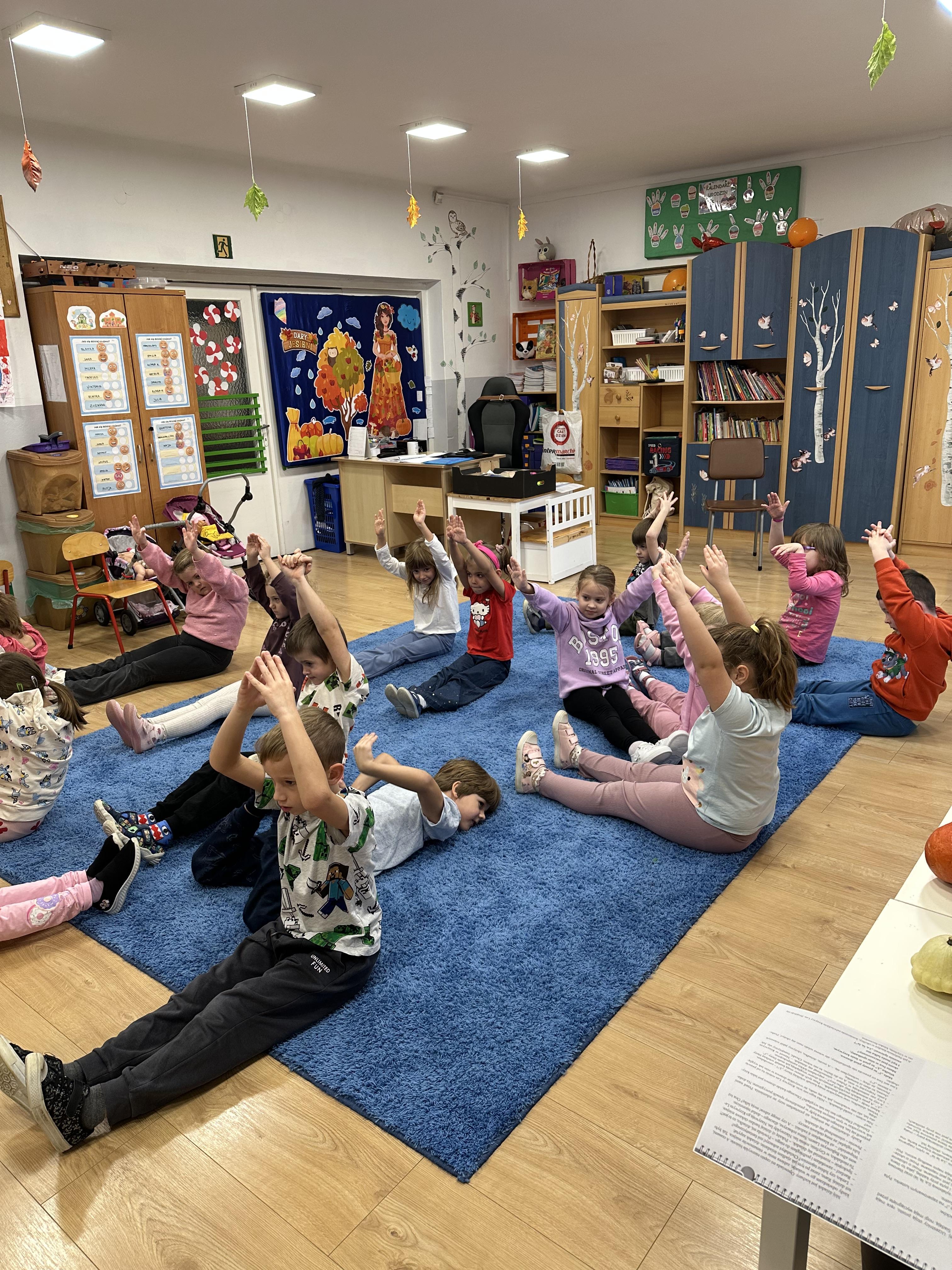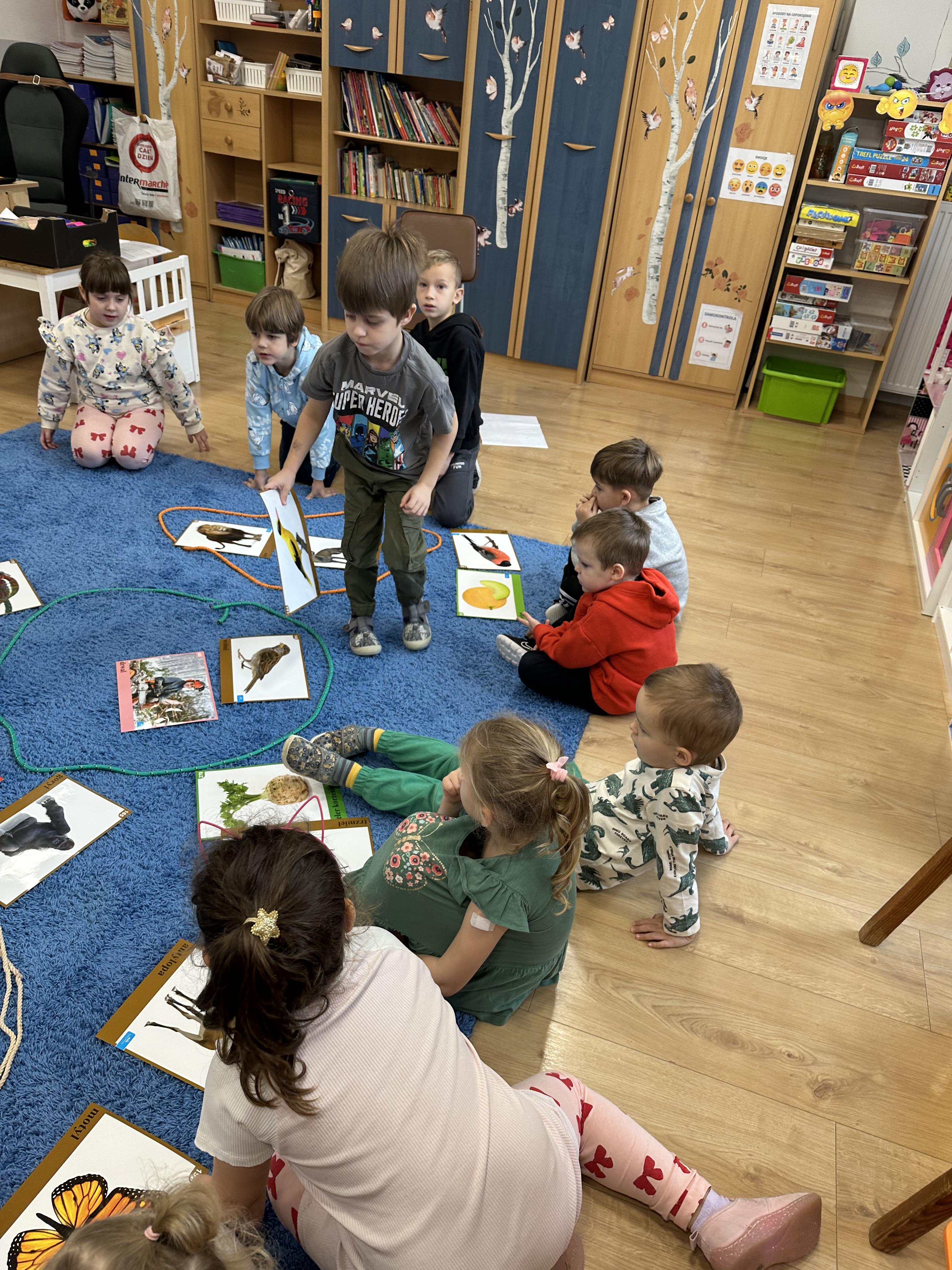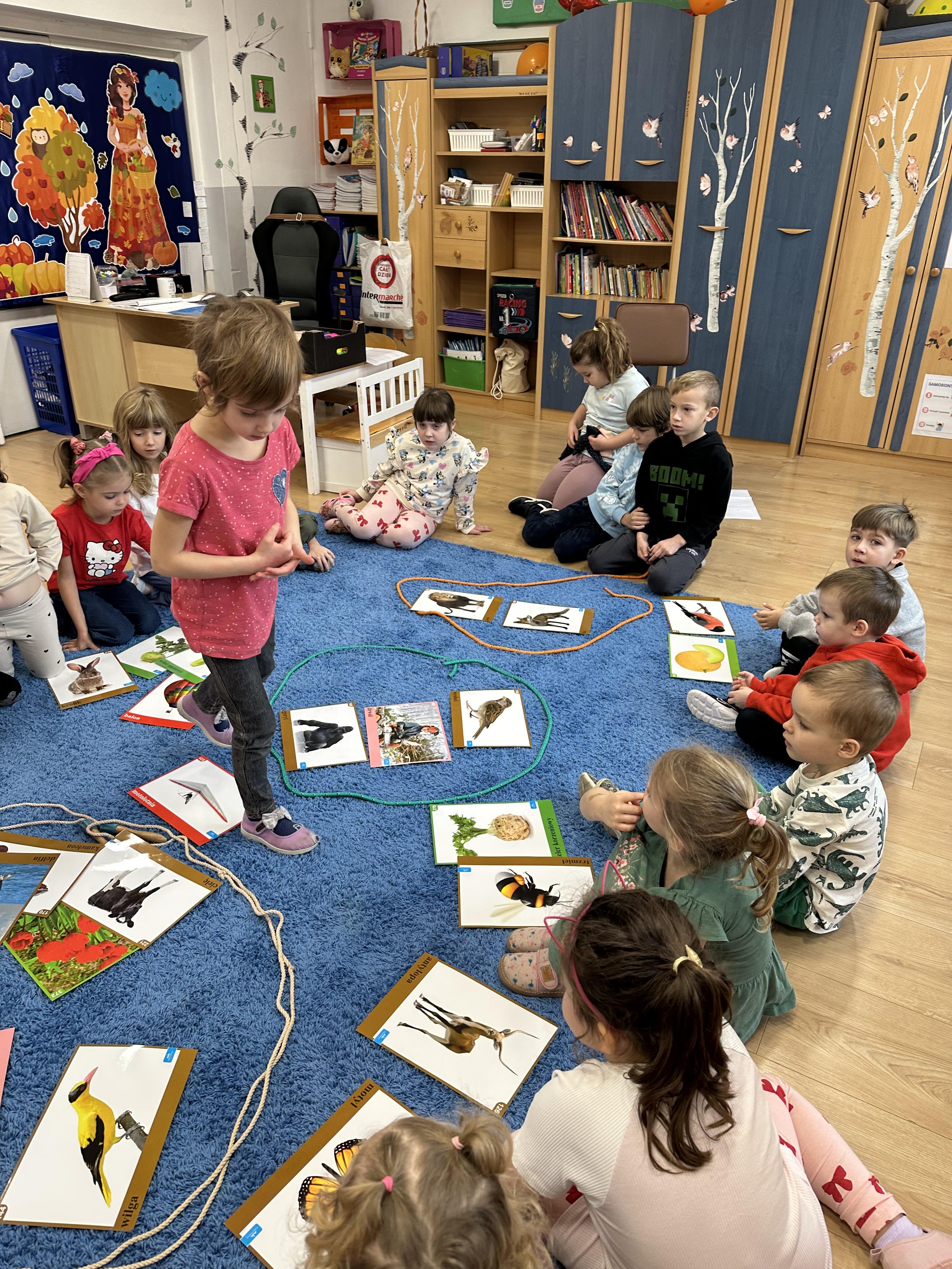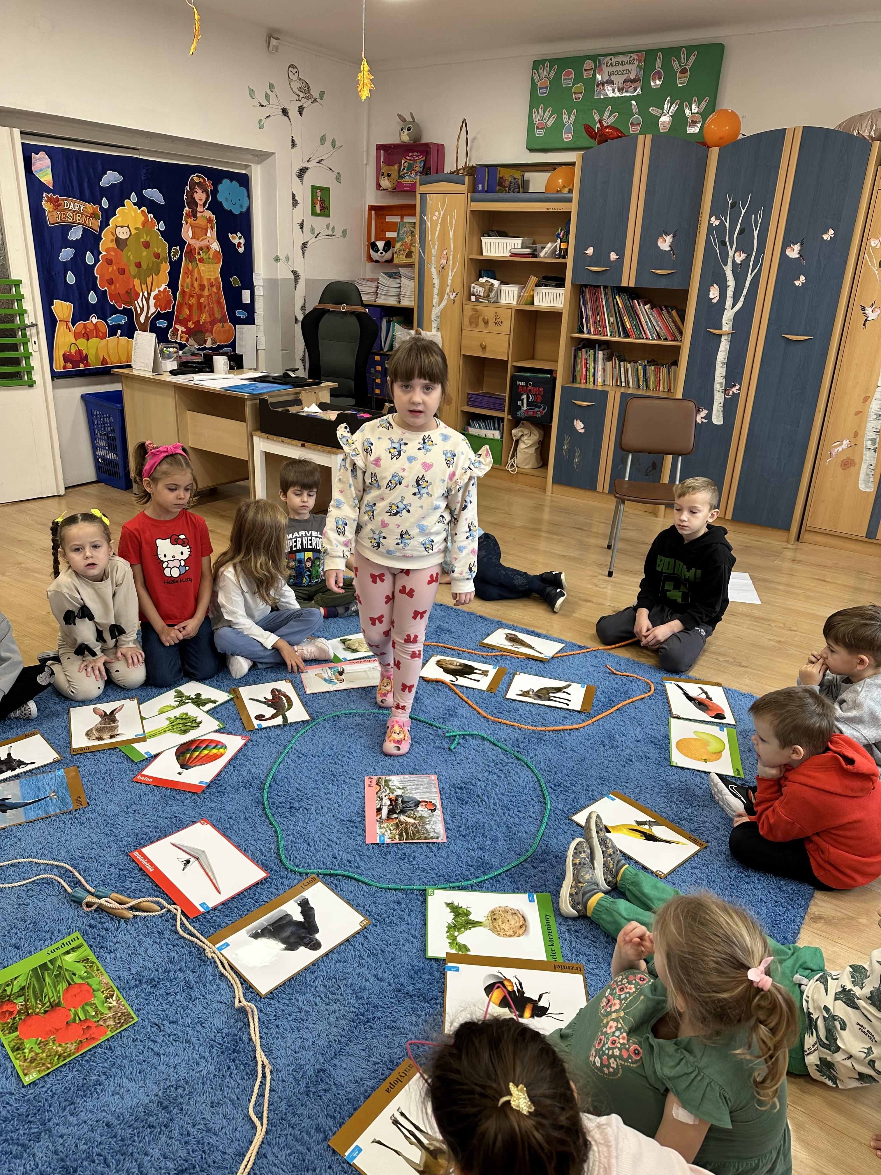 W poniedziałek przedszkolaki wysłuchały opowiadania ,,Odpoczynek zimowy”, które stało się punktem wyjścia do wspólnej rozmowy o tym, jak ważny jest sen dla zachowania zdrowia. Przedszkolaki uświadomiły sobie, że wszyscy mają prawo do odpoczynku i jest on potrzebny każdej istocie. Podczas zabawy „Niedźwiedzi sen” dowiedziały się, dlaczego niedźwiedź śpi całą zimę, rozwijały swoją wiedzę przyrodniczą dotyczącą hibernacji zwierząt i pobudzały ciekawość poznawczą. Nie brakowało w tym dniu zabaw ruchowych – sześciolatki skakały, udając żaby, prawidłowo reagowały ruchem na umówiony sygnał oraz wykonywały skłony. W trakcie zabawy „Czy sen jest ważny?” dzieliły się swoimi przemyśleniami dotyczącymi snu. Zdały sobie sprawę, że niewyspanie się wywołuje niezadowolenie i rozdrażnienie. Dzień zakończyły wykonaniem pracy plastycznej z wykorzystaniem kół. We wtorek dzieci poznały literę l, L, układały jej schemat graficzny i kreśliły jej wzór w powietrzu. Podczas zabaw rozwijały swoje kompetencje językowe, wyróżniały głoski w nagłosie, śródgłosie i wygłosie, dokonywały analizy i syntezy słuchowej słowa ,,las”, reagowały ruchowo na głoskę l. Podczas zabaw ruchowych „Jeśli l, zróbcie las” i „Ułóż małe l” utrwalały zdobytą wiedzę. W drugiej części dnia dzieci wybrały się do lasu na spacer. Obserwowały, jakie zwierzęta i rośliny można znaleźć w lesie i rozbudzały w sobie zainteresowanie przyrodą. Po powrocie do przedszkola narysowały je, a następnie rozwiązywały zagadki językowe dotyczące nazw mieszkańców lasu. W środę dzieci poznały liczbę 7 w trzech aspektach: kardynalnym, porządkowym i miarowym. Podczas zabawy „Znajdź liczby w labiryncie” kształtowały umiejętność kodowania i rozwijały swoje kompetencje matematyczne. Słuchały wiersza ,,Konik polny i mrówka”, który stał się początkiem rozmowy o pracowitości. Dzieci uświadomiły sobie, że najpierw należy wykonać obowiązki, dopiero później jest czas na zabawę. Pogadanka ta stanowiła wprowadzenie do rozmowy o przygotowaniach zwierząt do zimy. Na dworze dzieci ćwiczyły umiejętność rzutu do celu oraz przeliczały do 7. Nie zabrakło w tym dniu zadań matematycznych. W trakcie zabaw „Zbieramy orzechy” i „7 kroków” przedszkolaki utrwalały zdobyte umiejętności matematyczne i kształtowały orientację w przestrzeni. W czwartek rano dzieci wykonały biżuterię z naturalnych, jesiennych przedmiotów, następnie wysłuchały wiersza, po którym rozmawiały na temat dbania o zwierzęta zimą. Kształtowały poczucie odpowiedzialności za los zwierząt zimą. Przedszkolaki czerpały radość ze wspólnej zabawy: biegały po sali, naśladując lot ptaków, rozpoznawały ptaki na obrazkach, brały udział w ćwiczeniach oddechowych, rozwijały umiejętność współpracy w grupie podczas budowania gniazda dla jemiołuszki oraz rozwijały ciekawość poznawczą, wysłuchując głosów ptaków. W trakcie zabawy „Śpią – nie śpią” sprawdzały swoją wiedzę dotyczącą hibernacji zwierząt. Piątkowe zajęcia były skupione na rozwijaniu świadomości ciała i kreatywności ruchowej dzieci podczas obcowania z muzyką klasyczną. Przedszkolaki wysłuchały muzyki z baletu Piotra Czajkowskiego ,,Jezioro łabędzie” oraz wykonały do niej inscenizację. Kształtowały motorykę małą i rozwijały zdolności planowania pracy własnej podczas tworzenia kolażu modowego. W trakcie zabawy „Dotknij” rozwijały świadomość sensoryczną. Na dworze wykonywały ćwiczenia kształtujące prawidłową postawę ciała. Po powrocie do przedszkola rozwiązywały ,,Quiz” i podsumowały wiedzę zebraną w całym tygodniu.