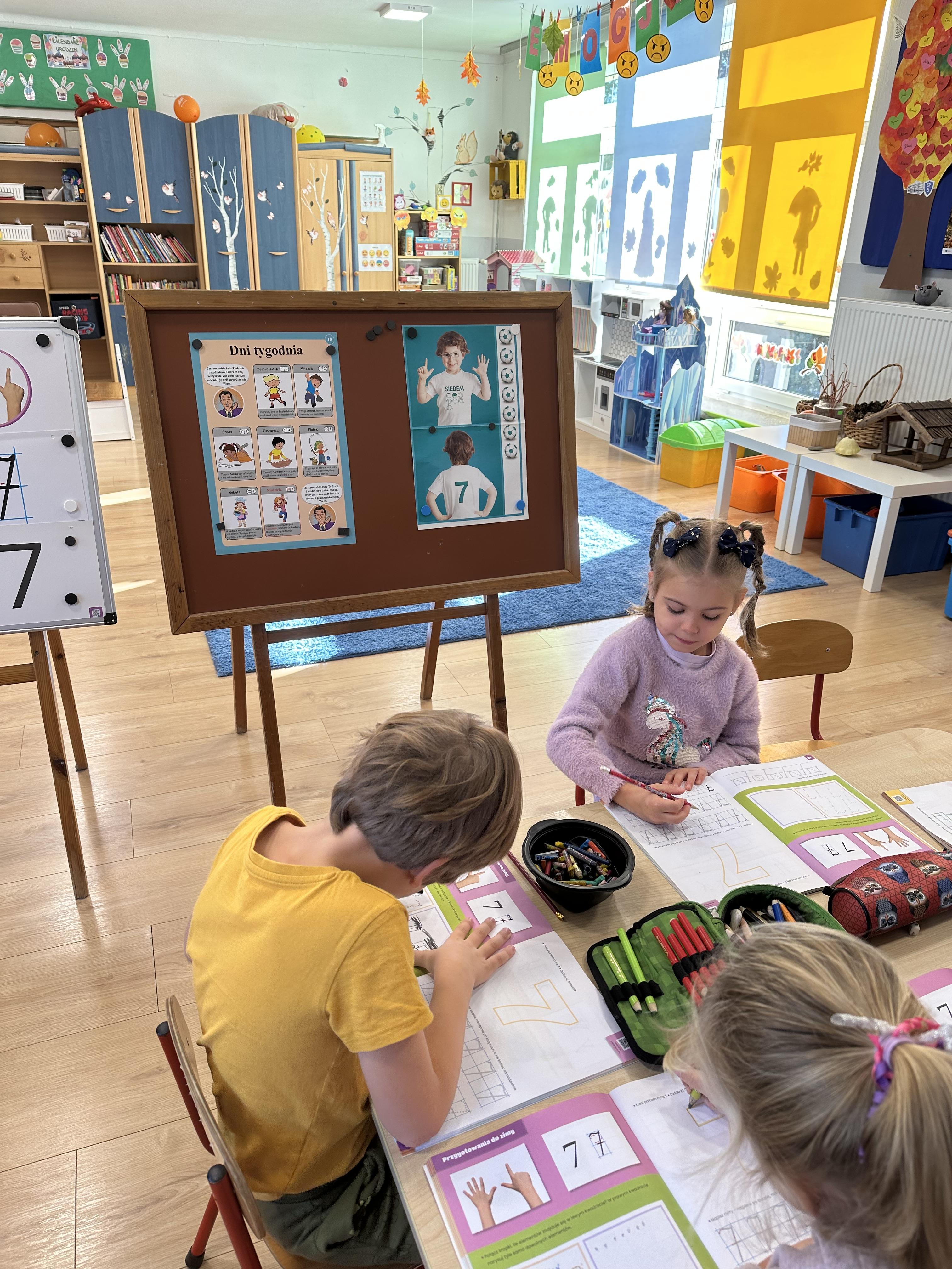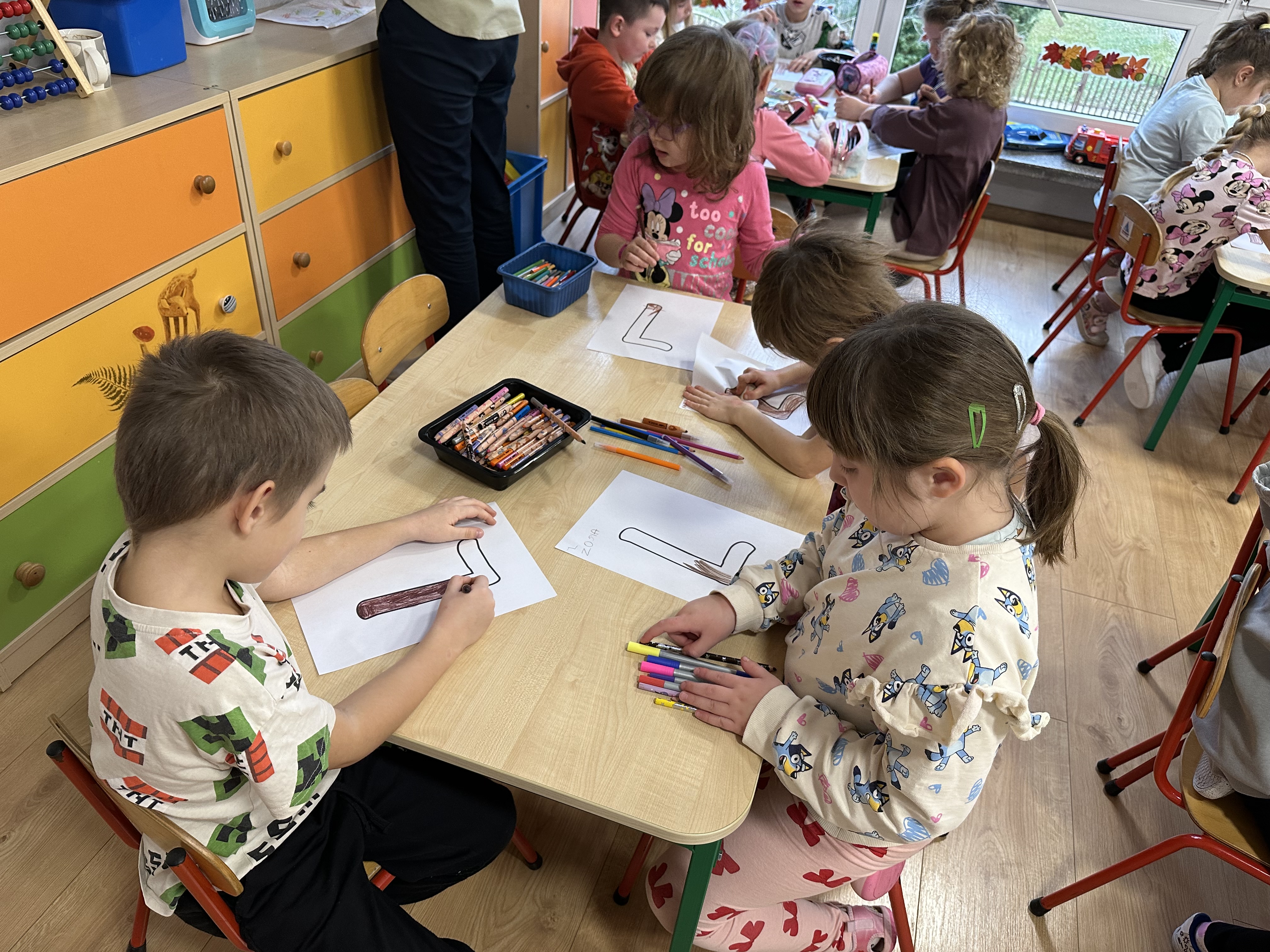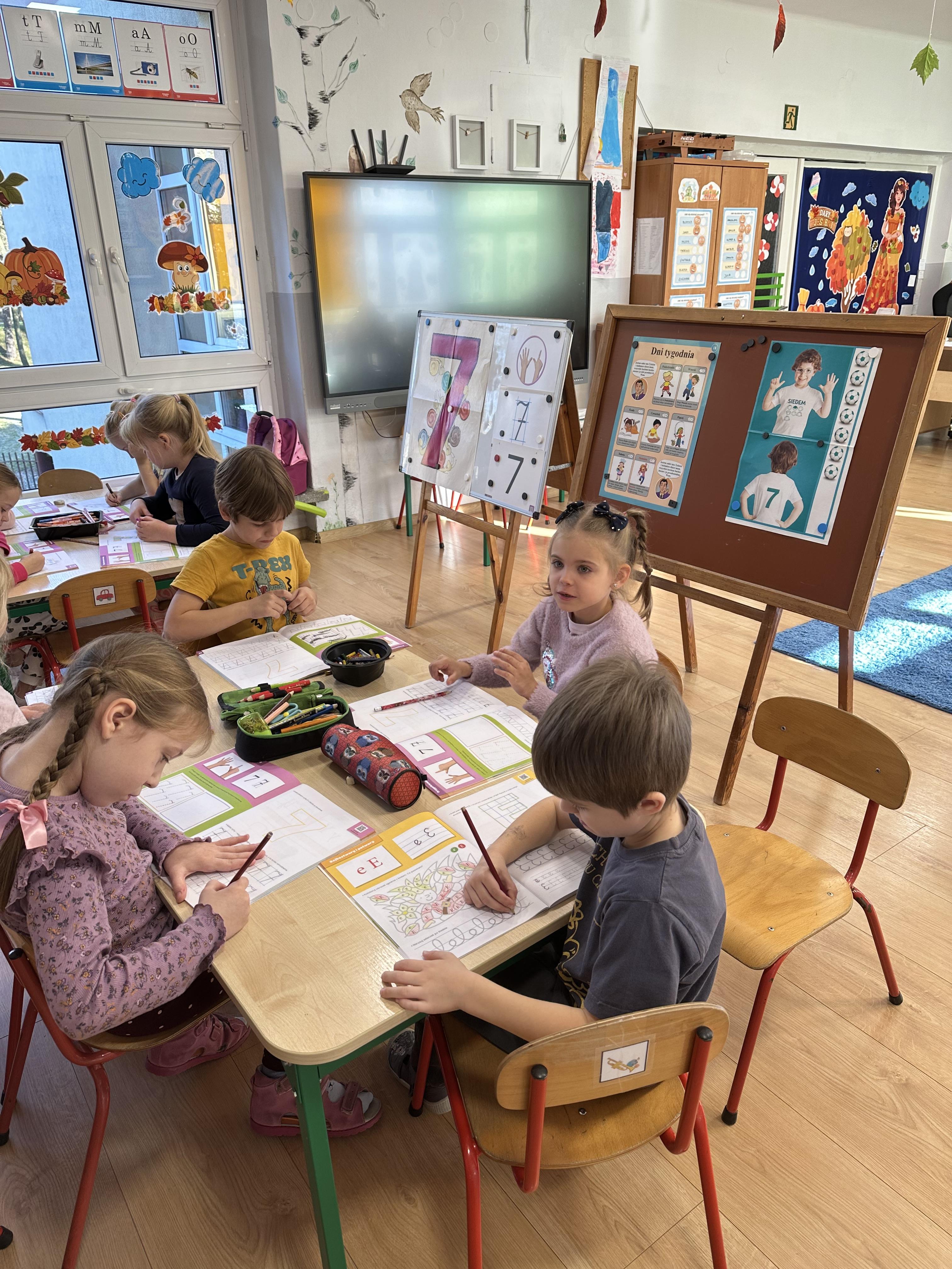 W tym tygodniu nie zabrakło wyjść na świeże powietrze – sześciolatki rozwijały małą i dużą motorykę, umiejętność współpracy w grupie i wrażliwość na piękno otoczenia. Przedszkolaki codziennie wypełniały indywidualnie karty pracy, utrwalały i rozszerzały swoją wiedzę. Rozwijały kreatywne myślenie podczas wykonywania samodzielnych prac plastycznych.