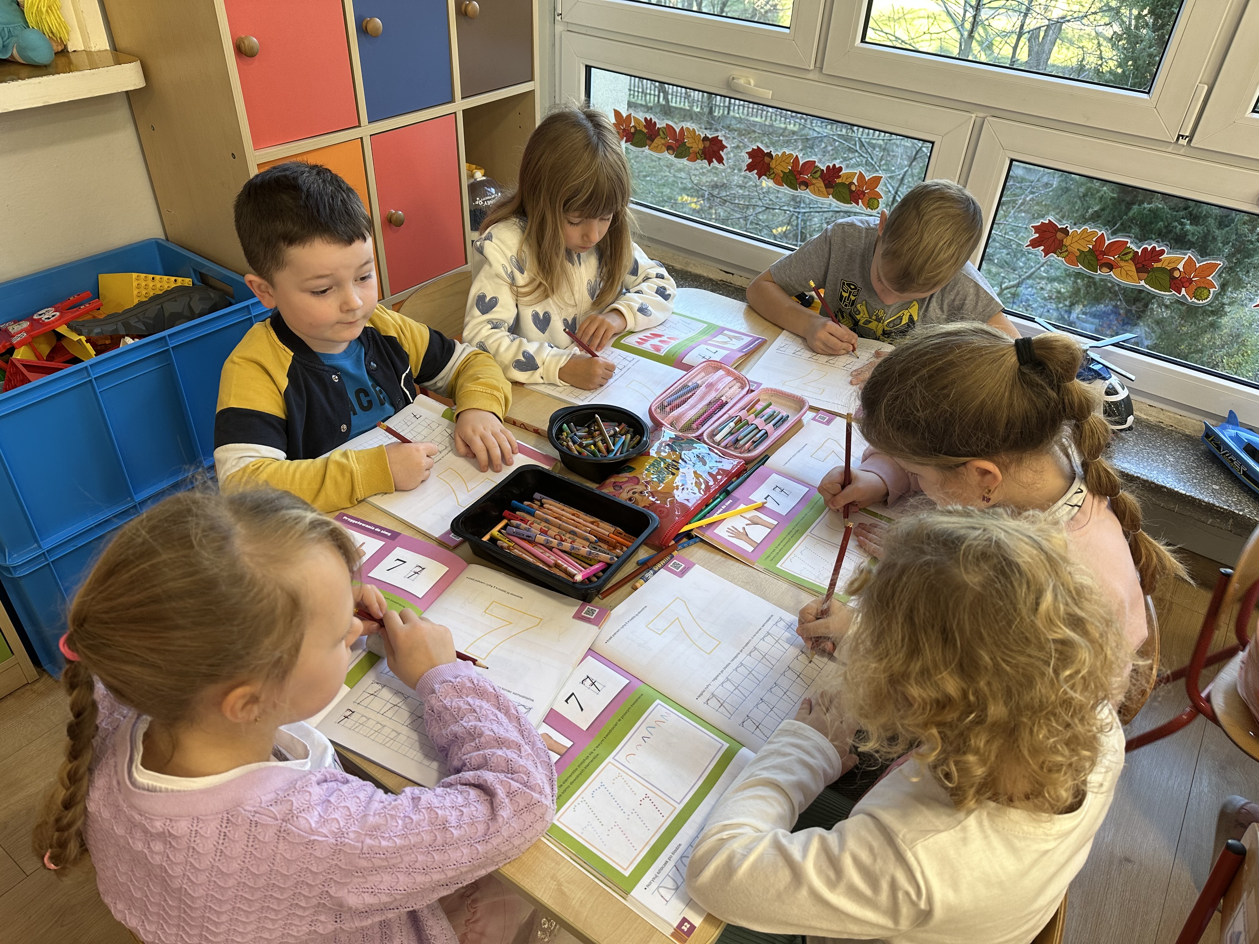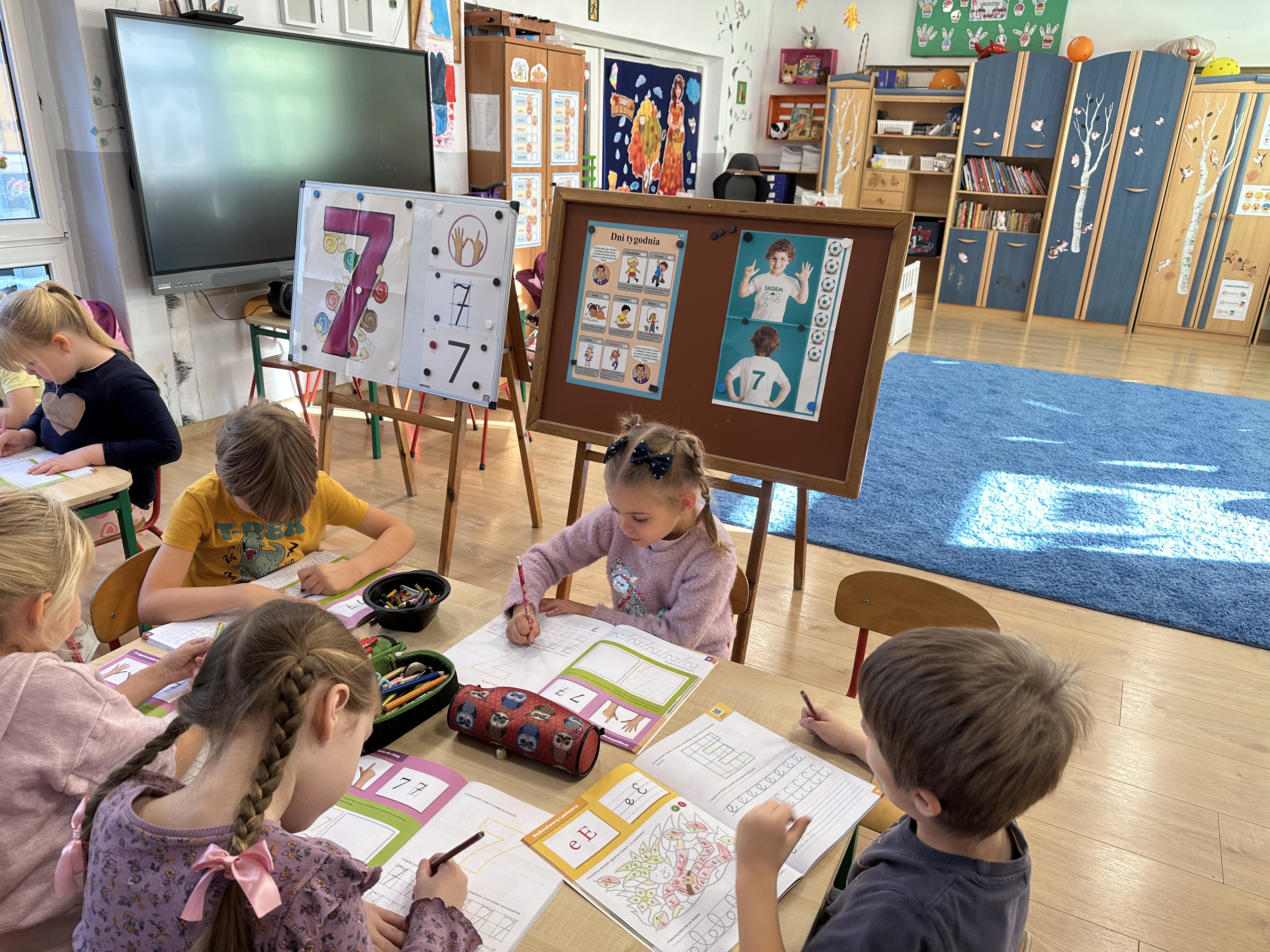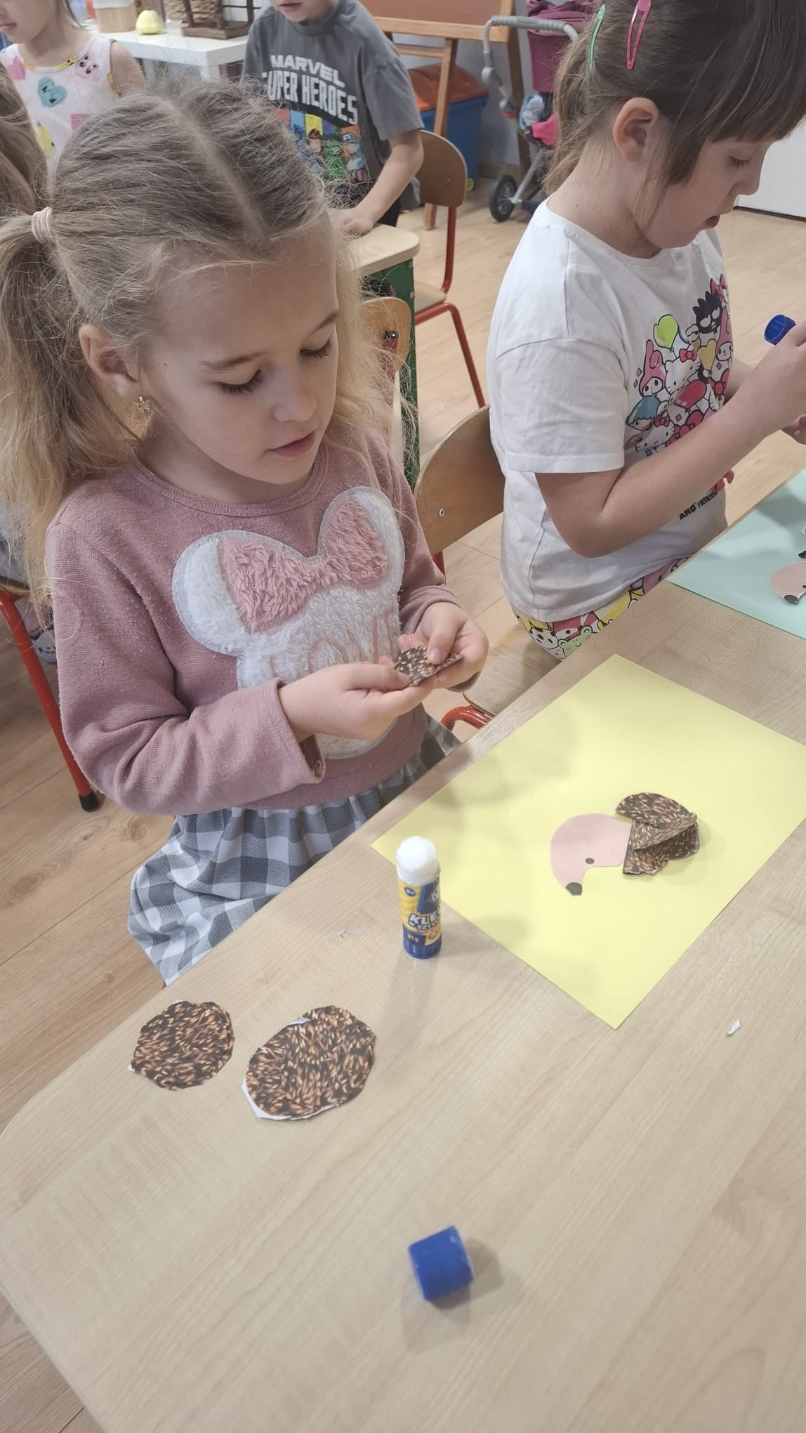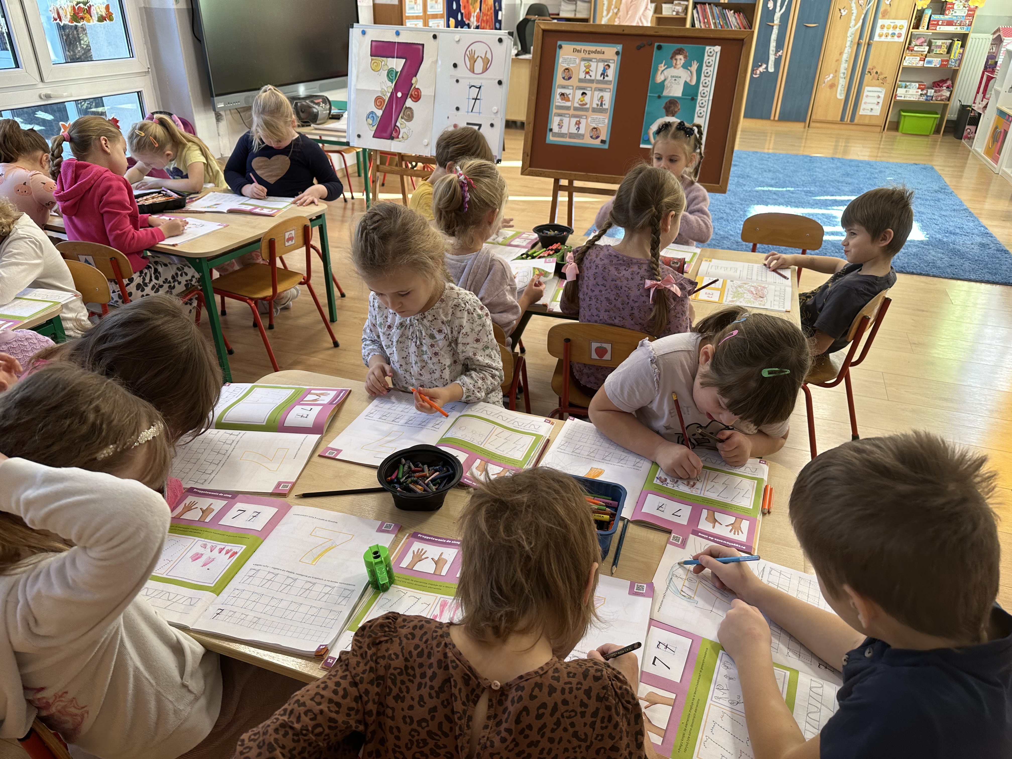 W tym tygodniu nie zabrakło wyjść na świeże powietrze – sześciolatki rozwijały małą i dużą motorykę, umiejętność współpracy w grupie i wrażliwość na piękno otoczenia. Przedszkolaki codziennie wypełniały indywidualnie karty pracy, utrwalały i rozszerzały swoją wiedzę. Rozwijały kreatywne myślenie podczas wykonywania samodzielnych prac plastycznych.