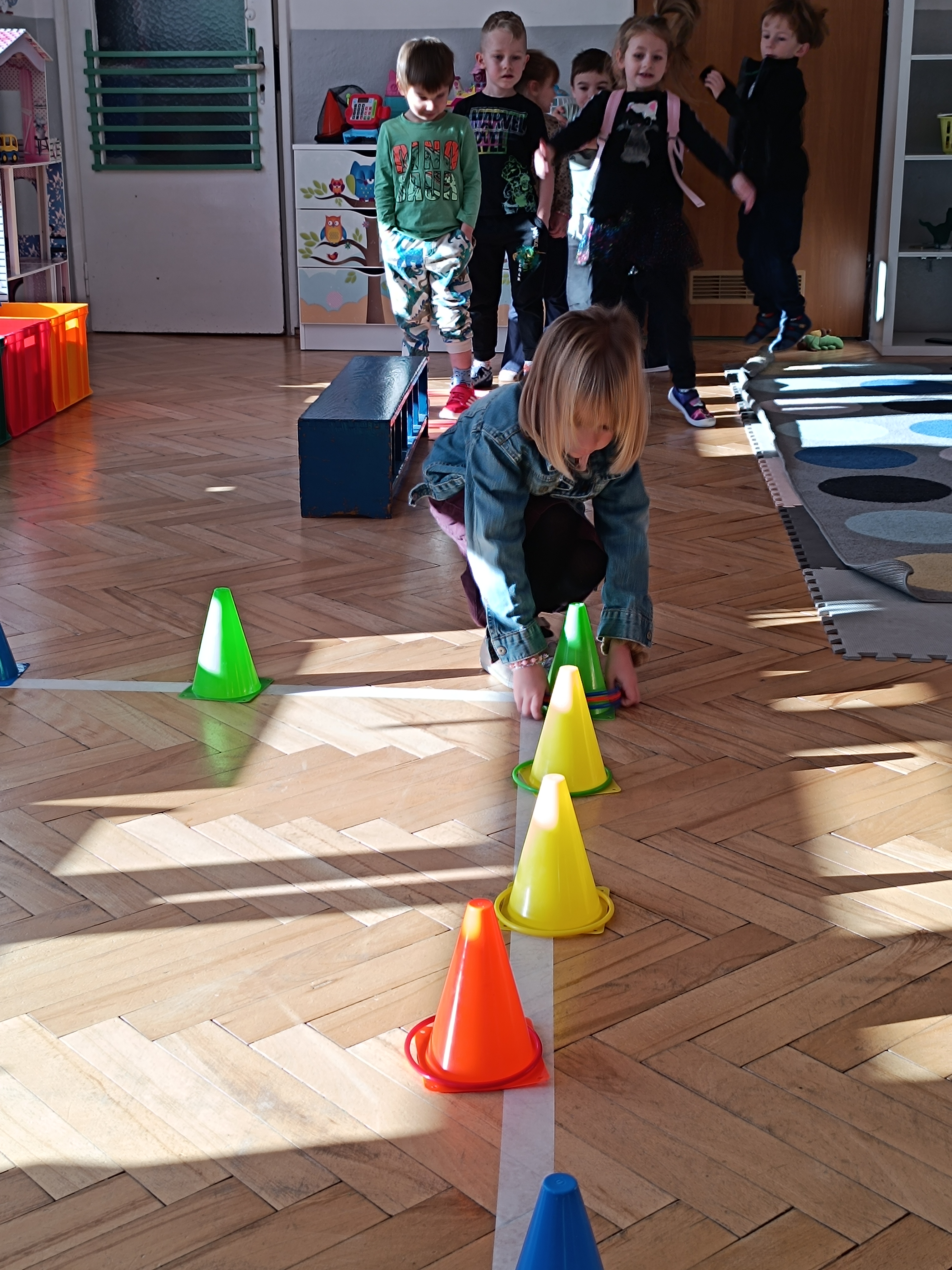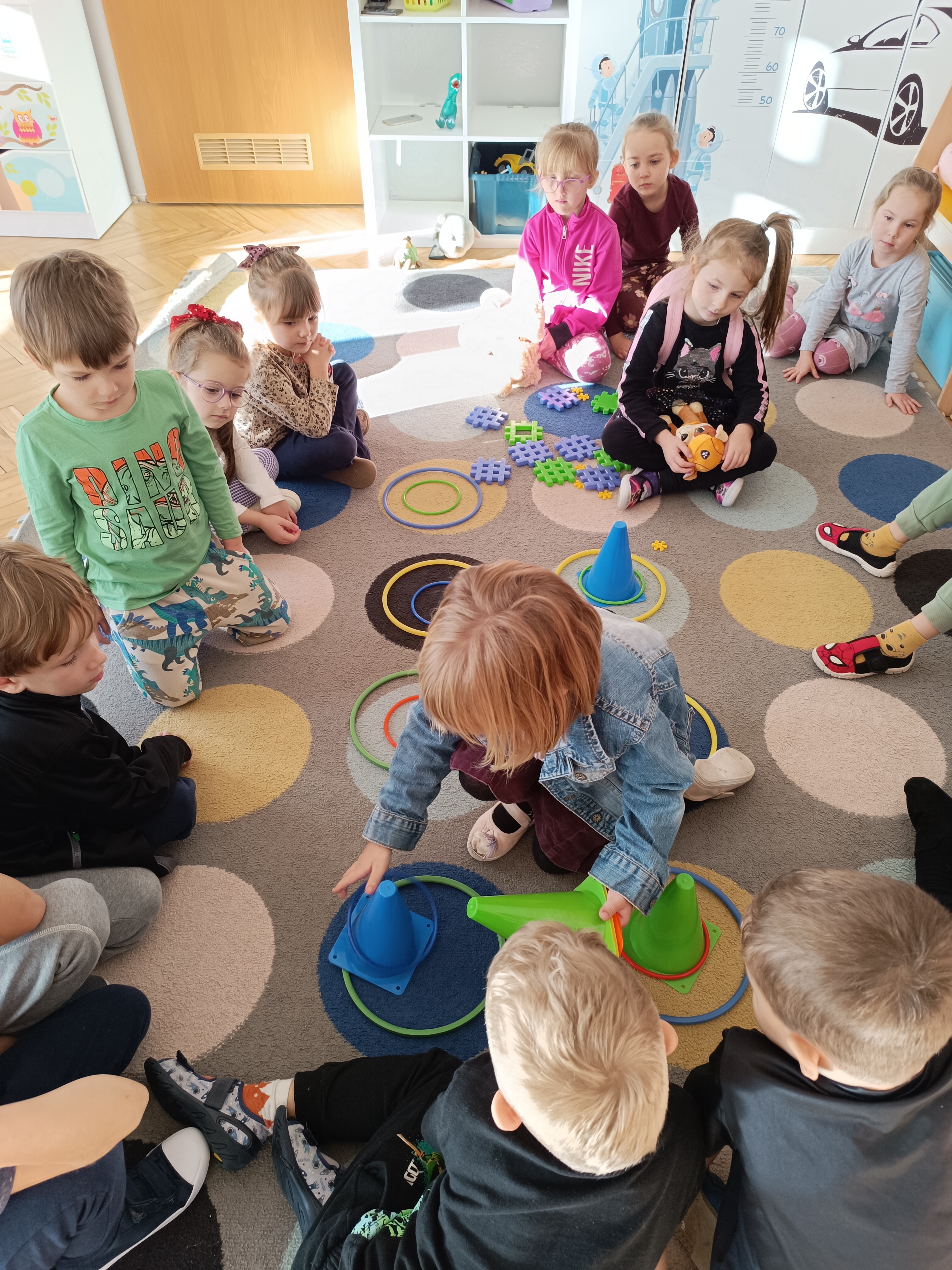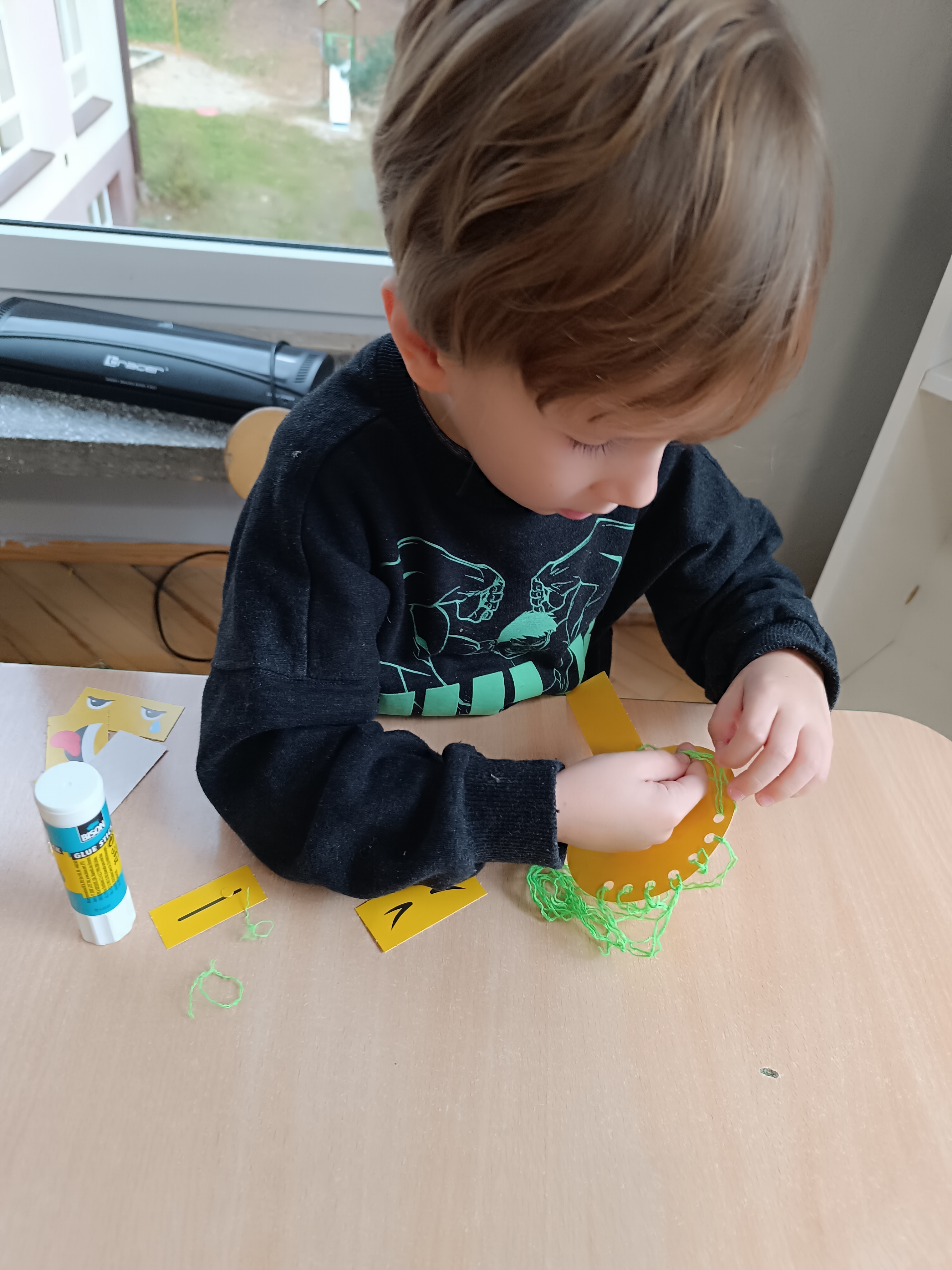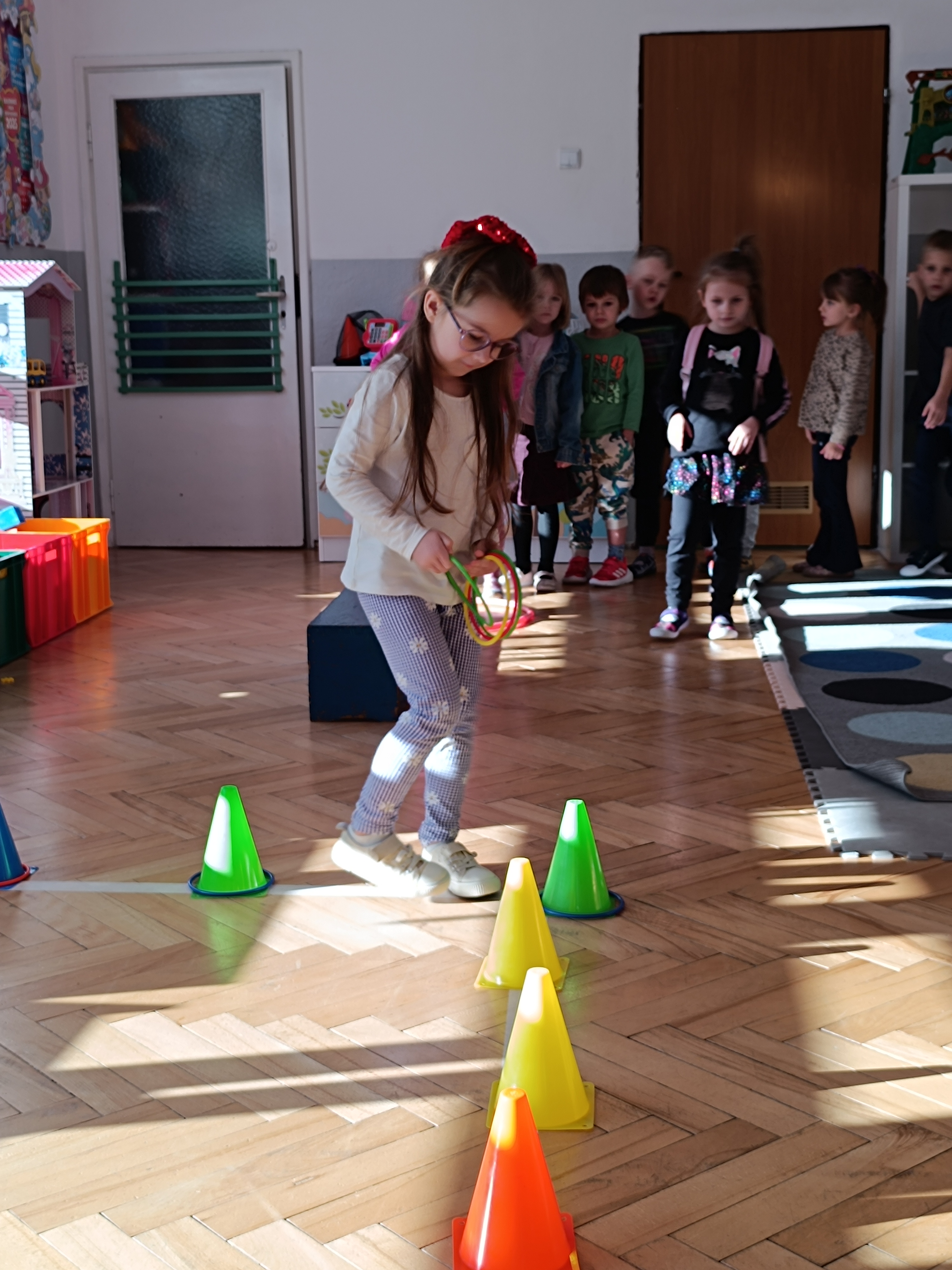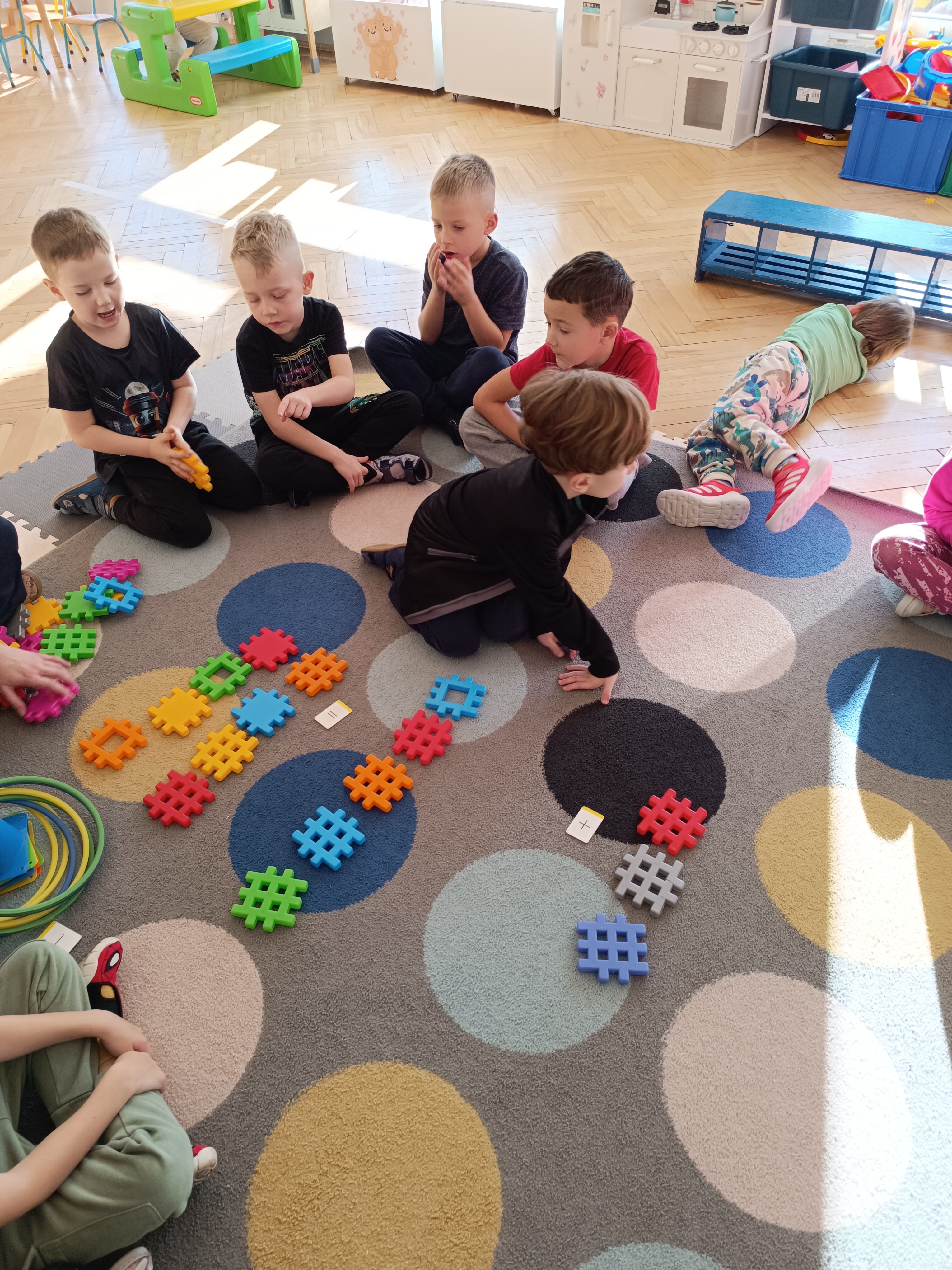 W tym tygodniu poznaliśmy również cyferkę 7 w aspekcie miarowym i porządkowym oraz jej zapis graficzny, uczestnicząc w zabawach matematycznych: " Czy schowałaś orzechy w pierwszej norce?" ; " Ile kołek zrobiła wiewiórka?"; " Jak wygląda siedem?" ; "Matematyczne ruchy".