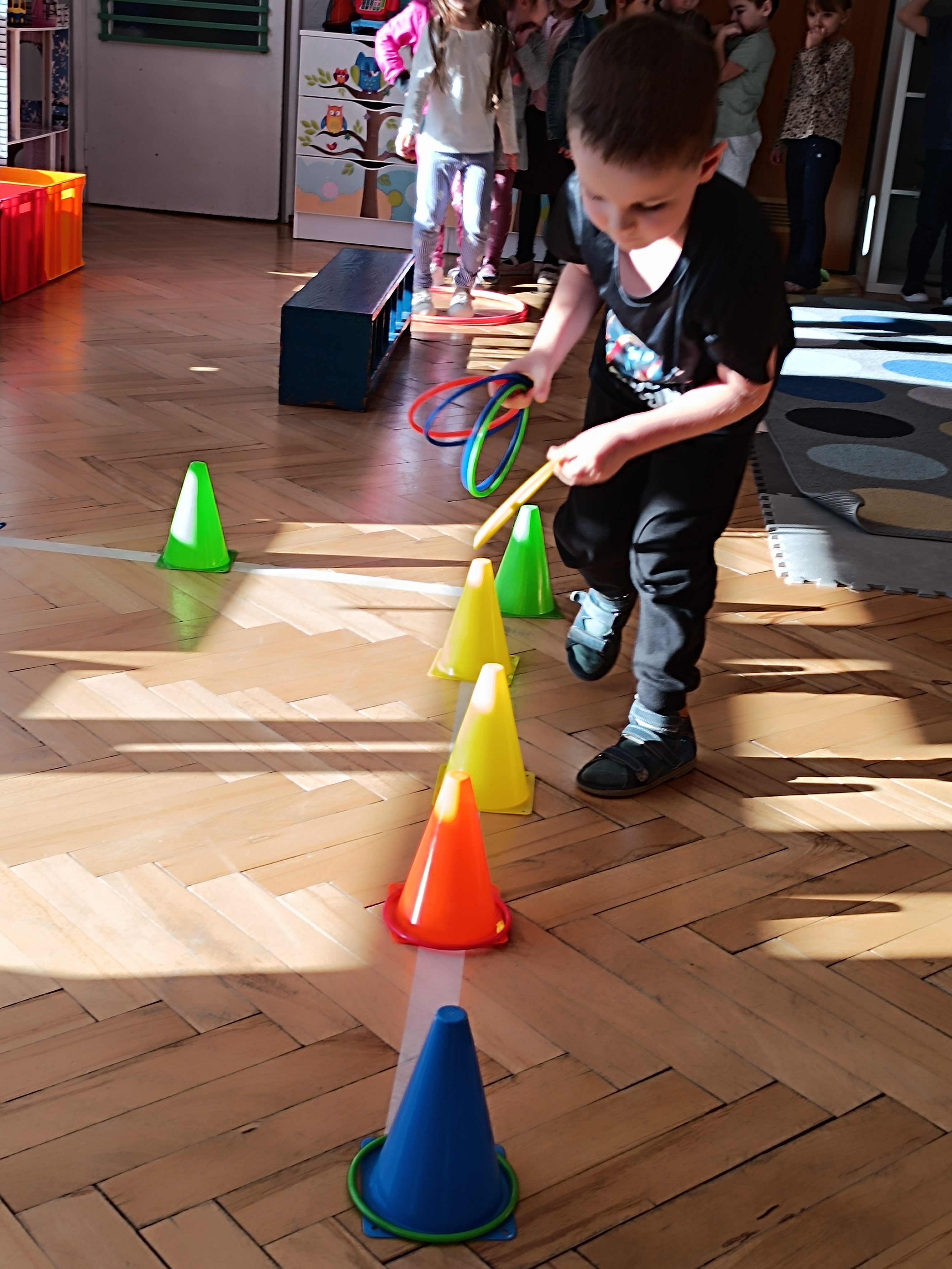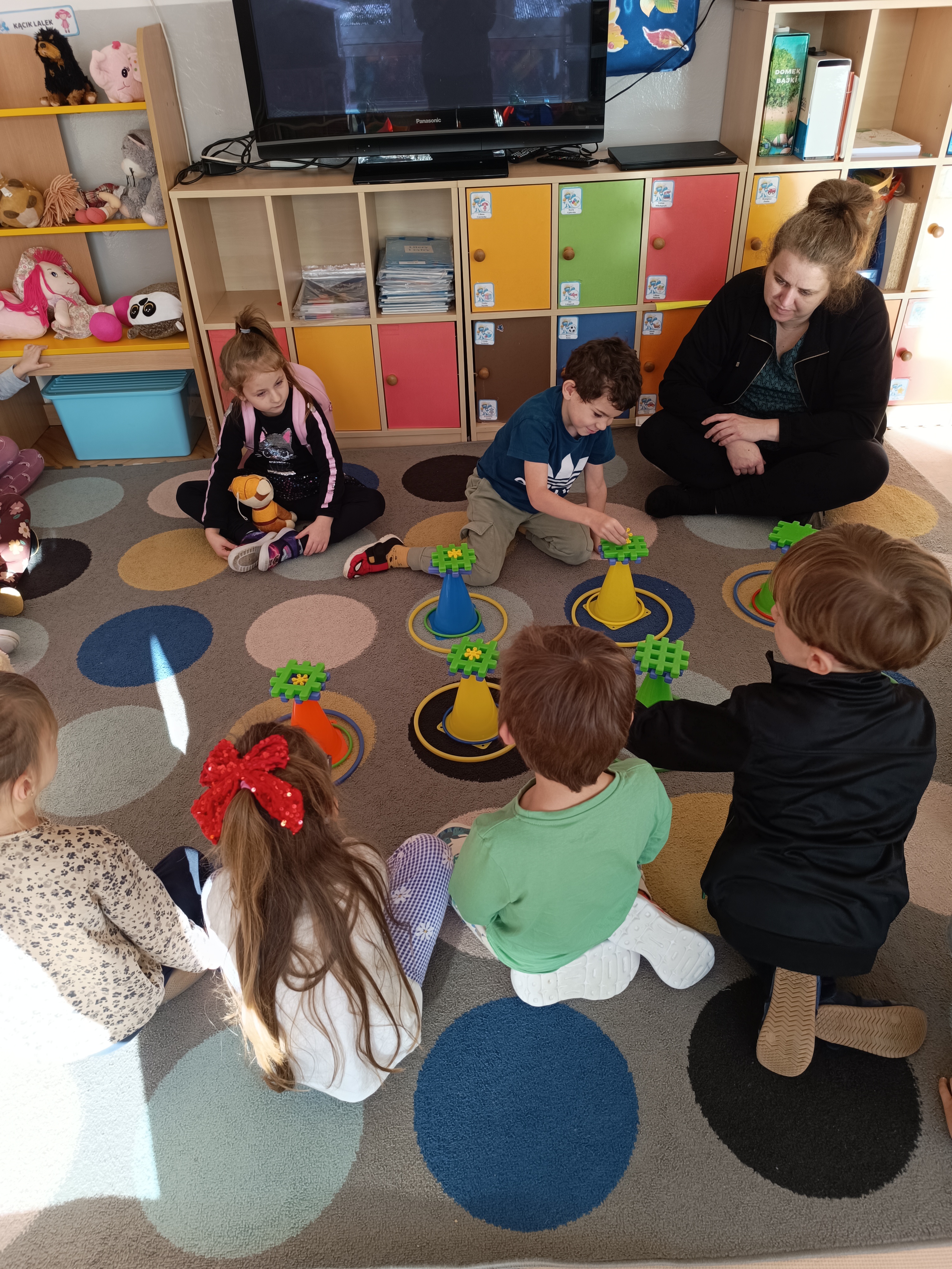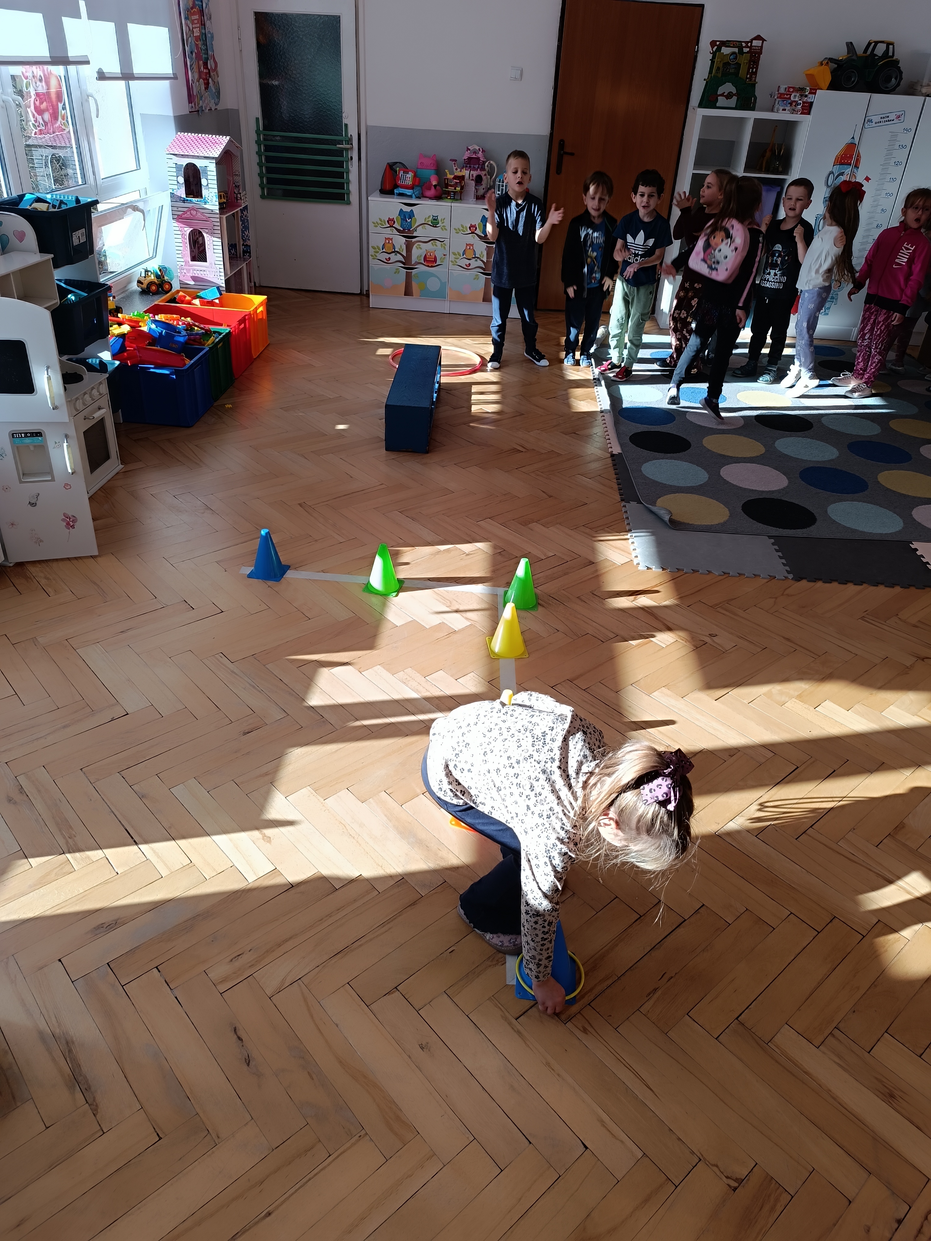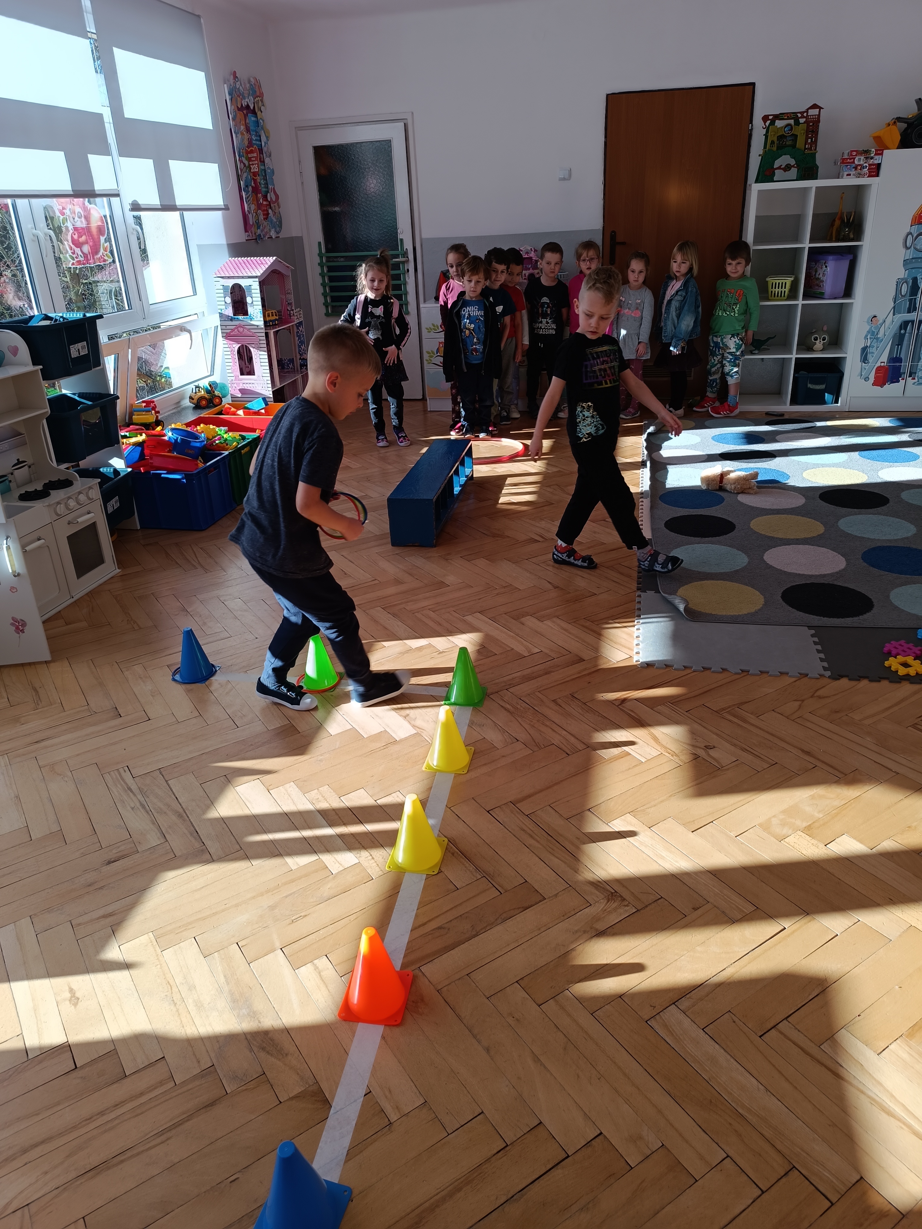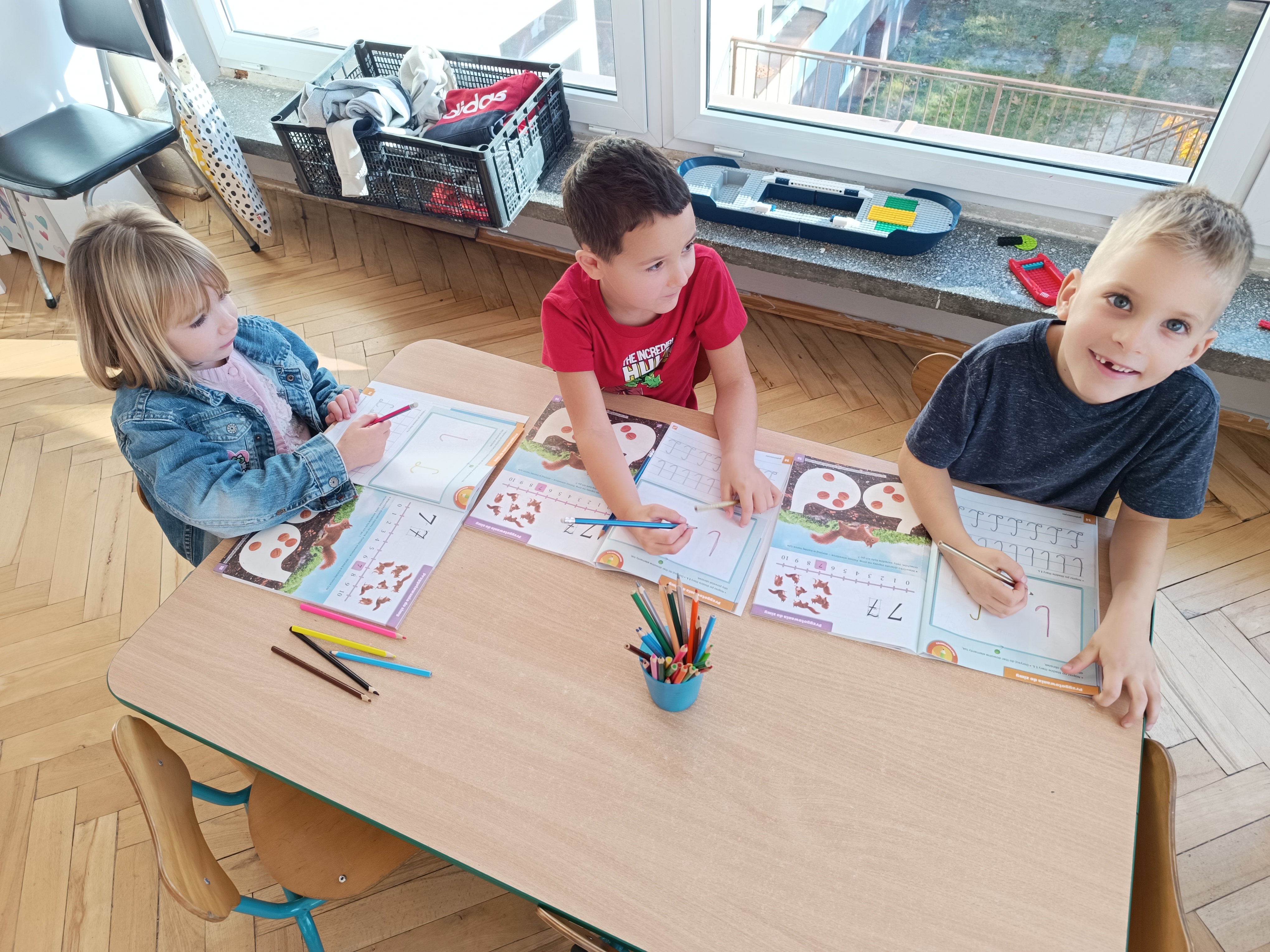 W tym tygodniu poznaliśmy również cyferkę 7 w aspekcie miarowym i porządkowym oraz jej zapis graficzny, uczestnicząc w zabawach matematycznych: " Czy schowałaś orzechy w pierwszej norce?" ; " Ile kołek zrobiła wiewiórka?"; " Jak wygląda siedem?" ; "Matematyczne ruchy".