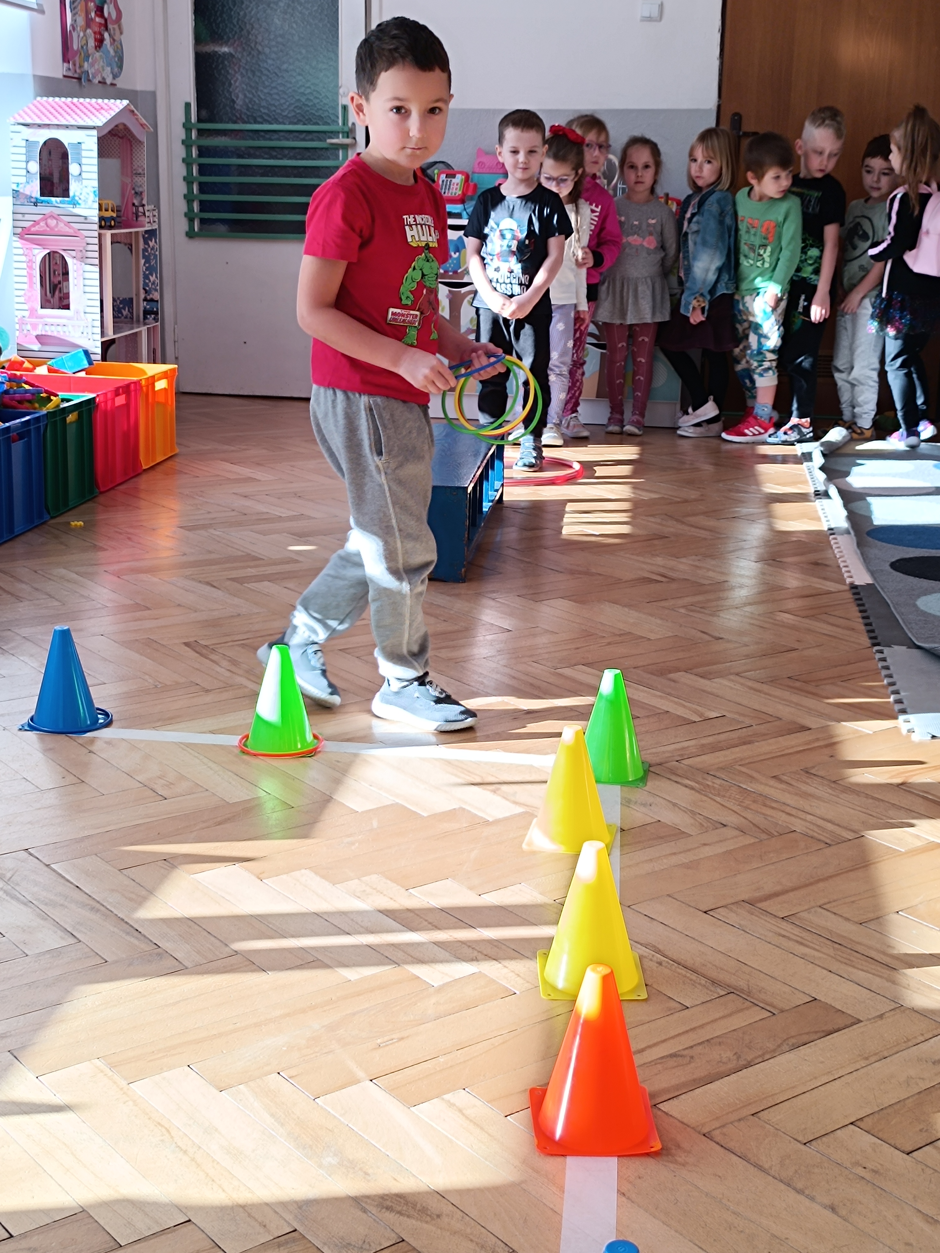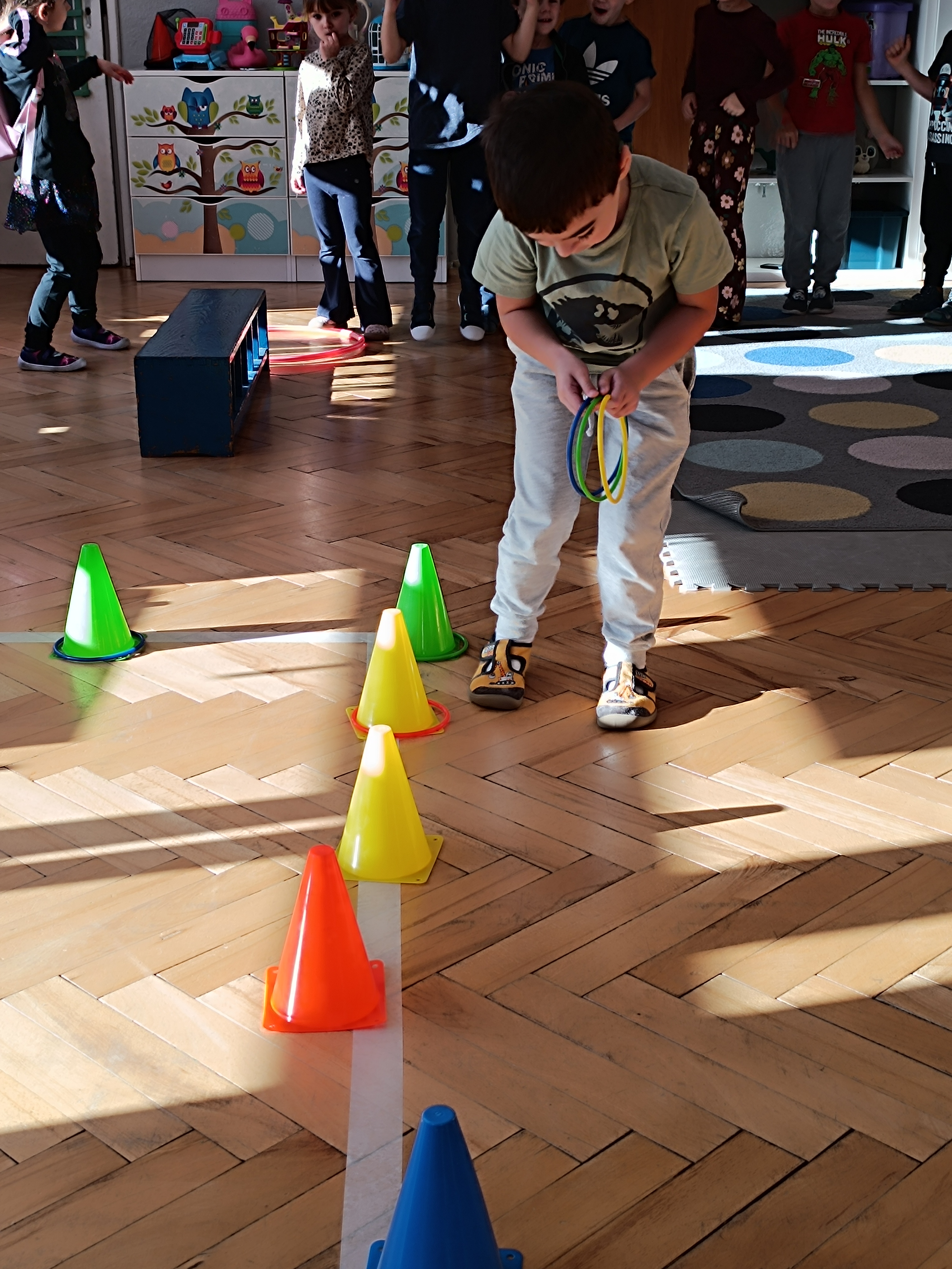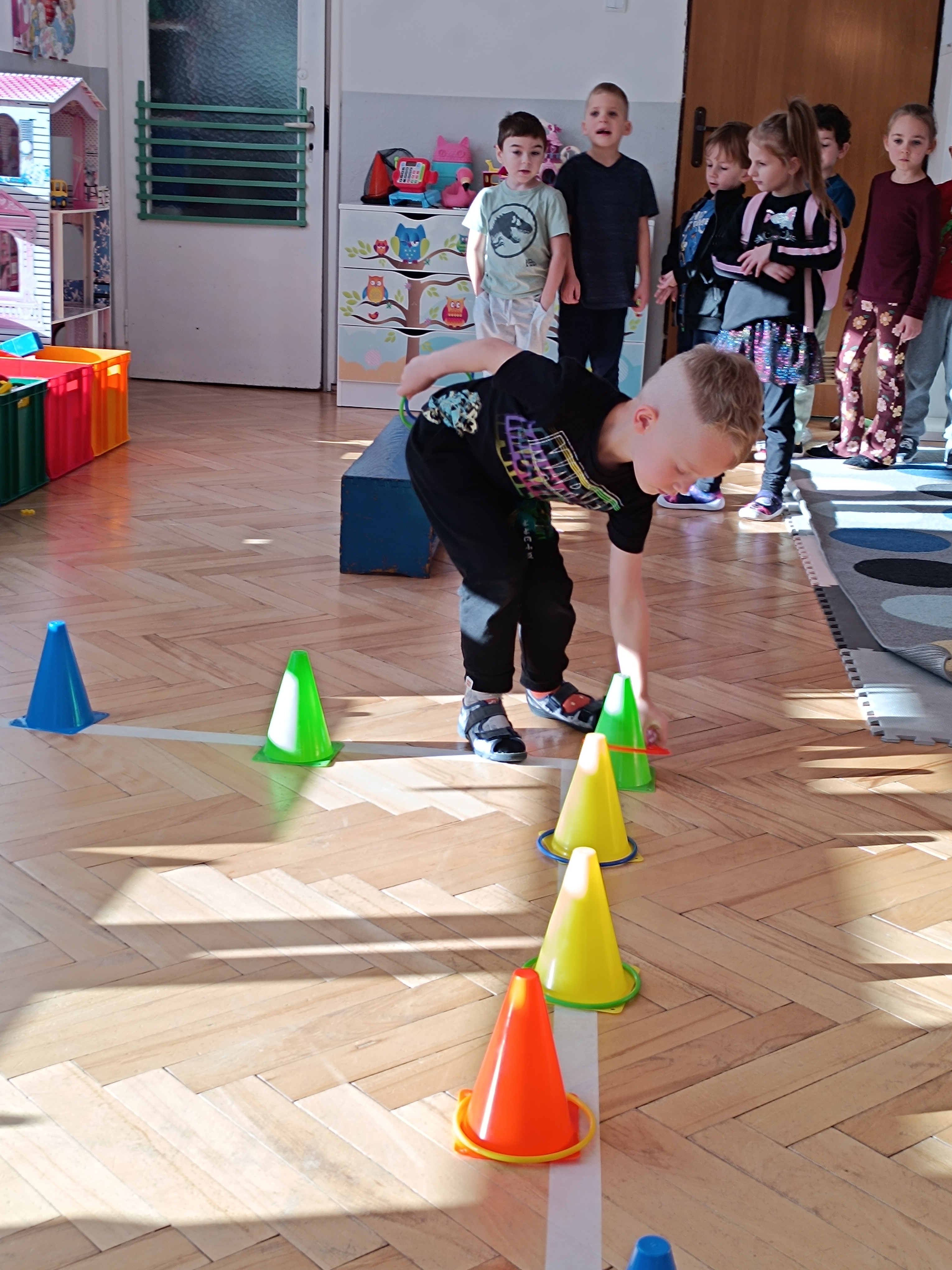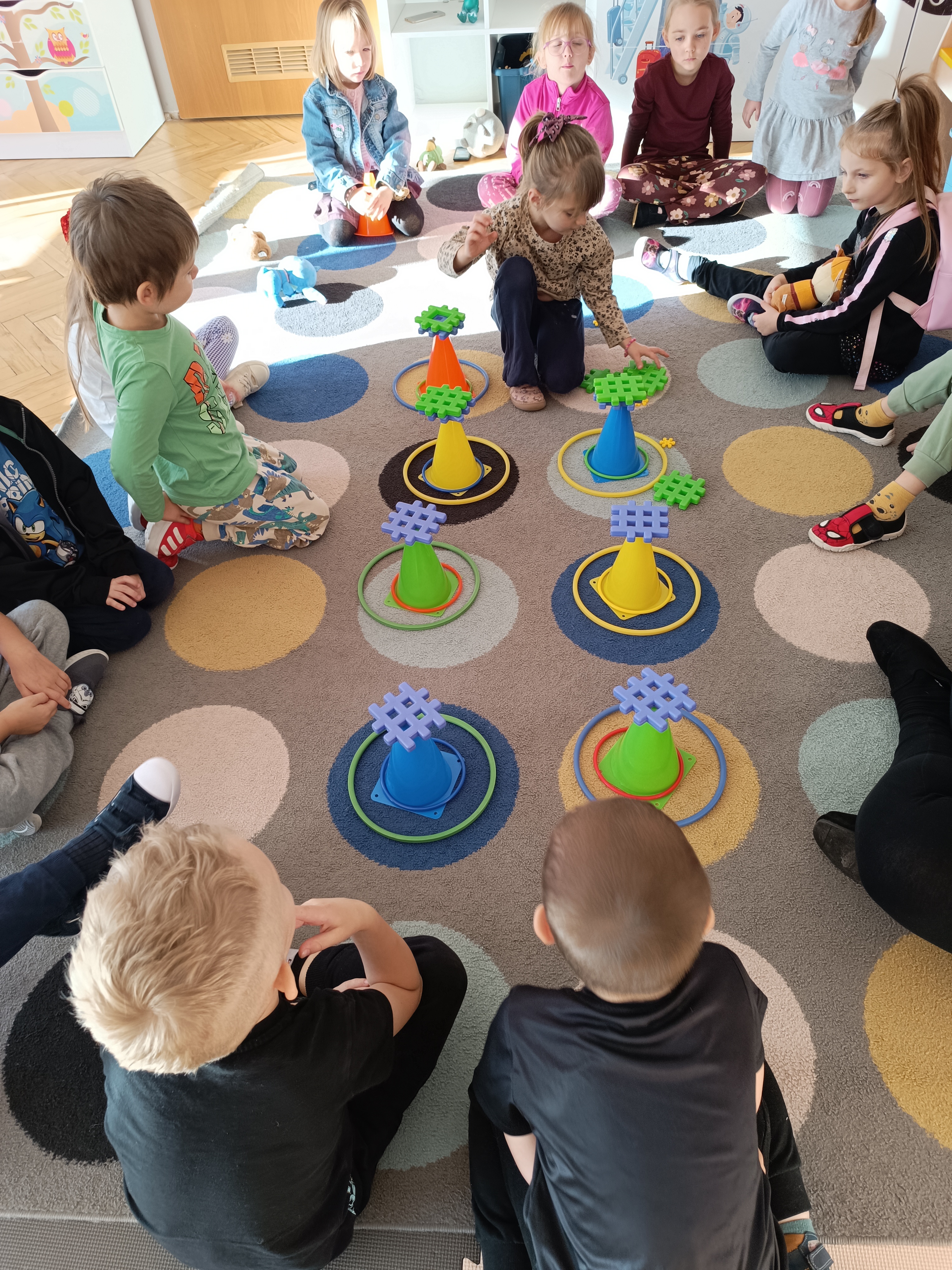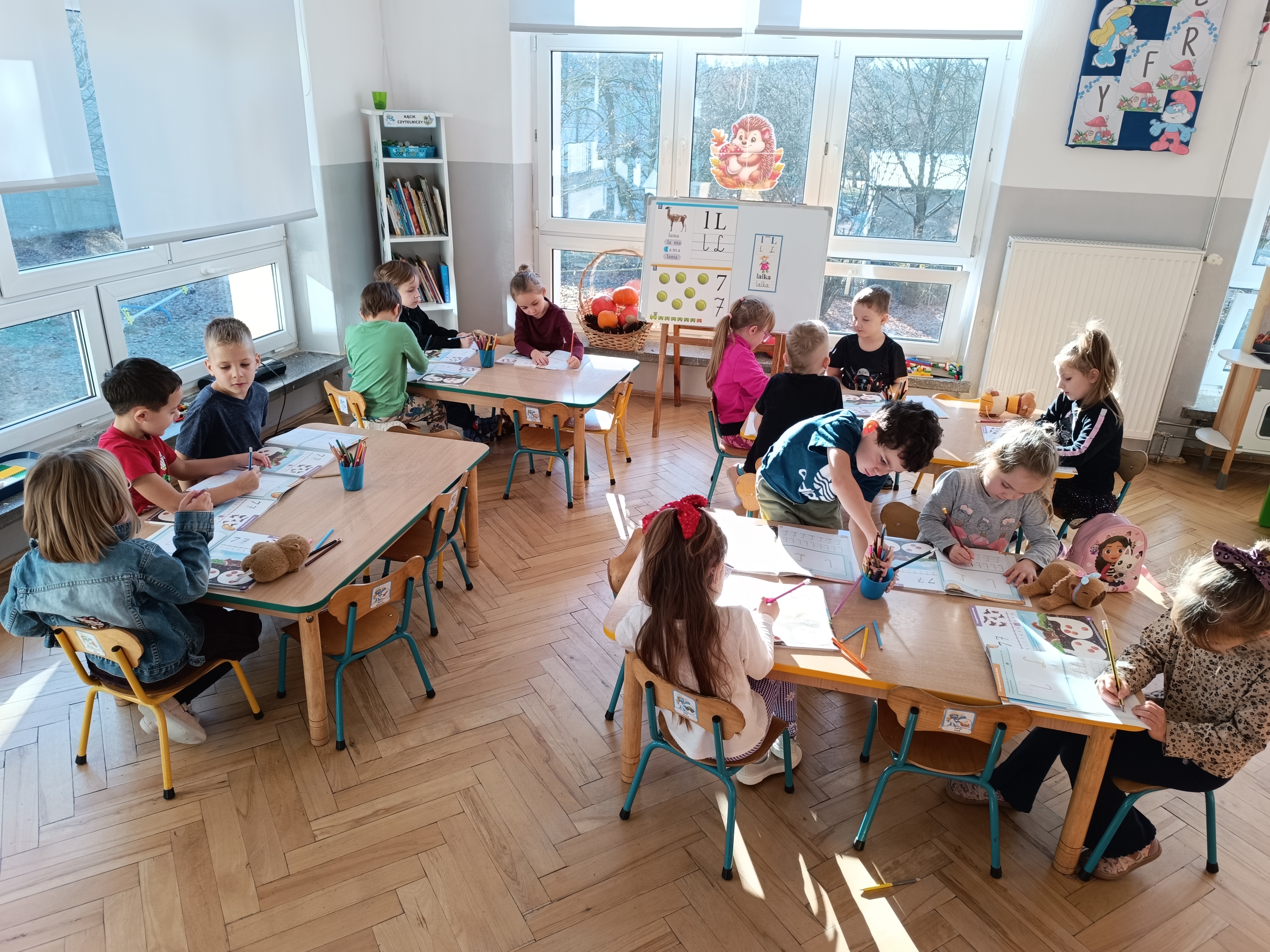 W tym tygodniu poznaliśmy również cyferkę 7 w aspekcie miarowym i porządkowym oraz jej zapis graficzny, uczestnicząc w zabawach matematycznych: " Czy schowałaś orzechy w pierwszej norce?" ; " Ile kołek zrobiła wiewiórka?"; " Jak wygląda siedem?" ; "Matematyczne ruchy".