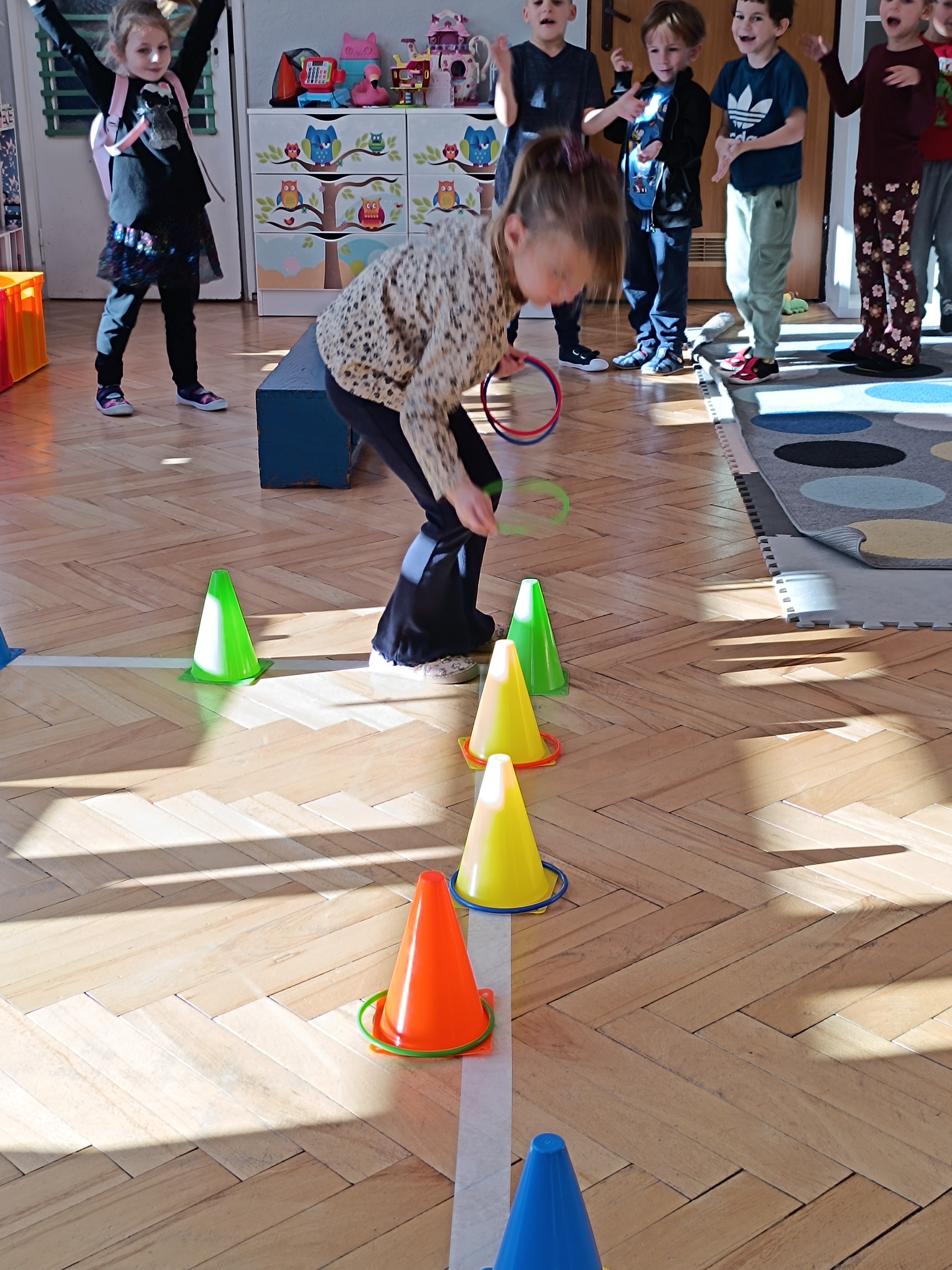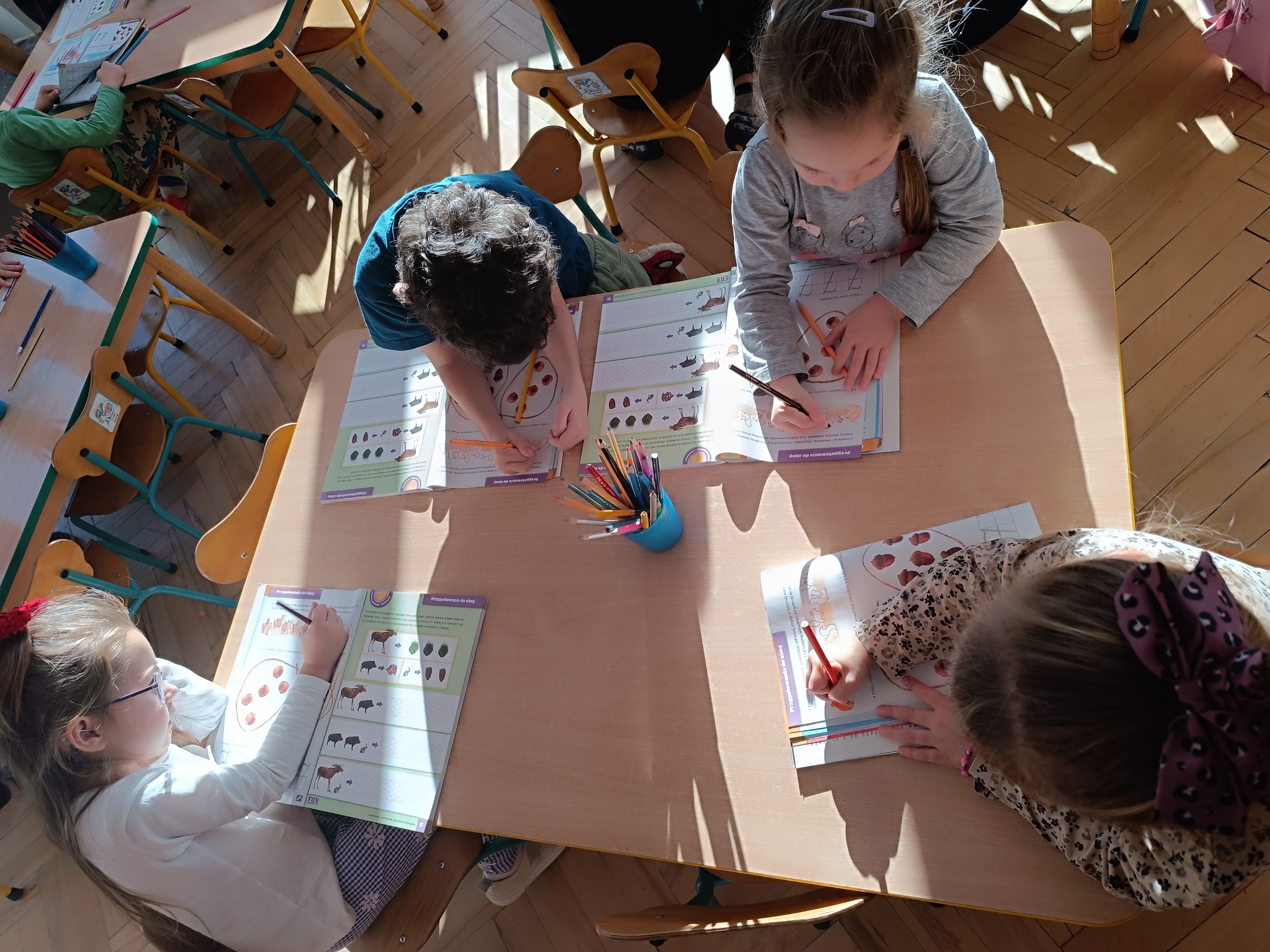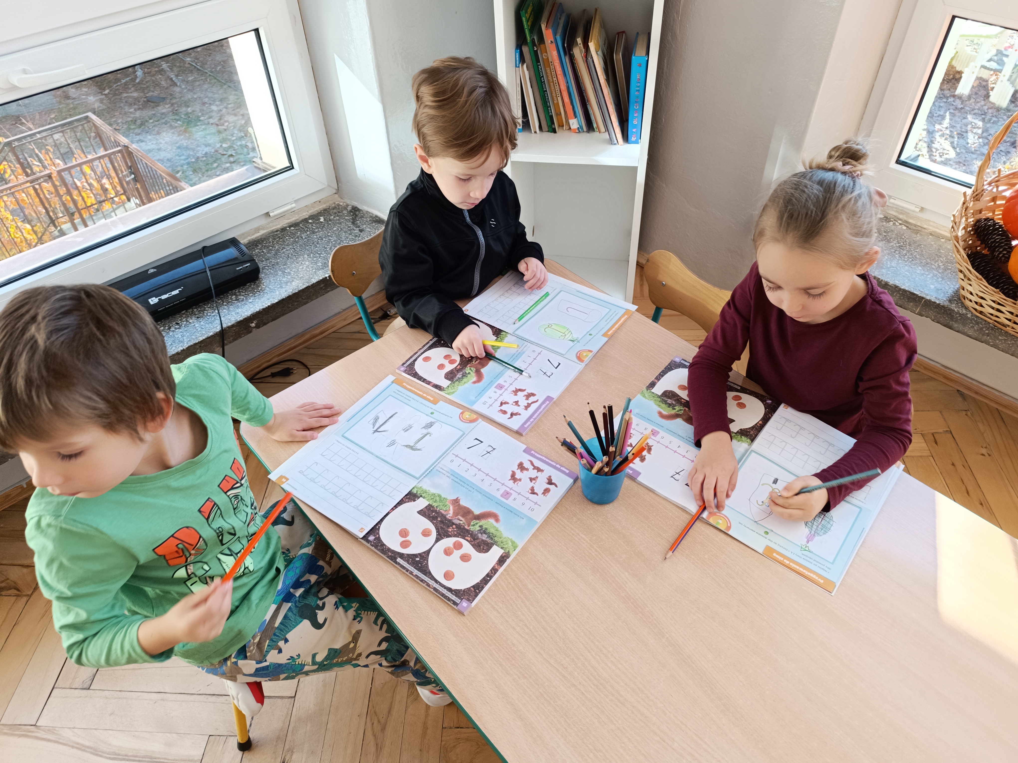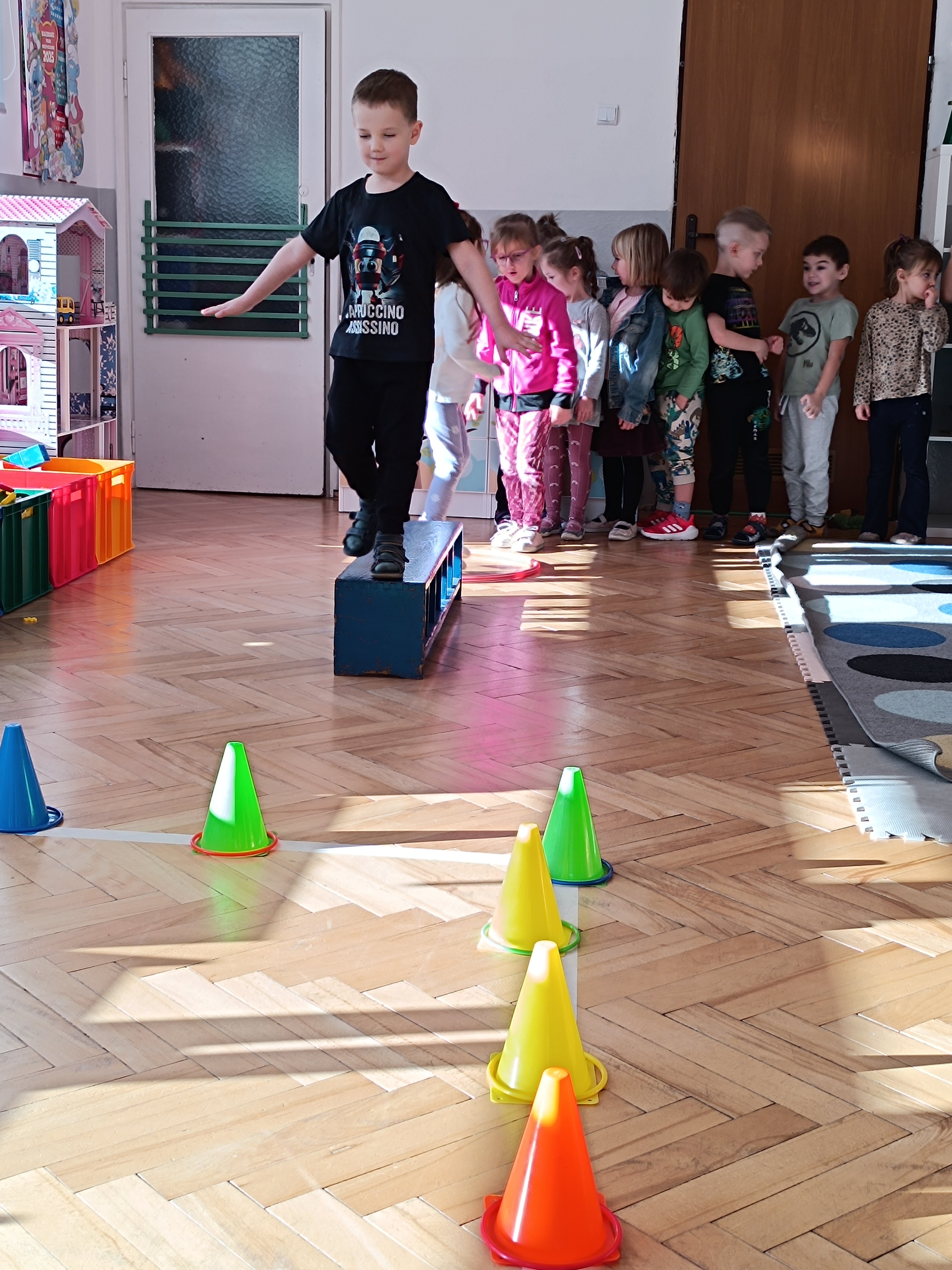 W tym tygodniu poznaliśmy również cyferkę 7 w aspekcie miarowym i porządkowym oraz jej zapis graficzny, uczestnicząc w zabawach matematycznych: " Czy schowałaś orzechy w pierwszej norce?" ; " Ile kołek zrobiła wiewiórka?"; " Jak wygląda siedem?" ; "Matematyczne ruchy".