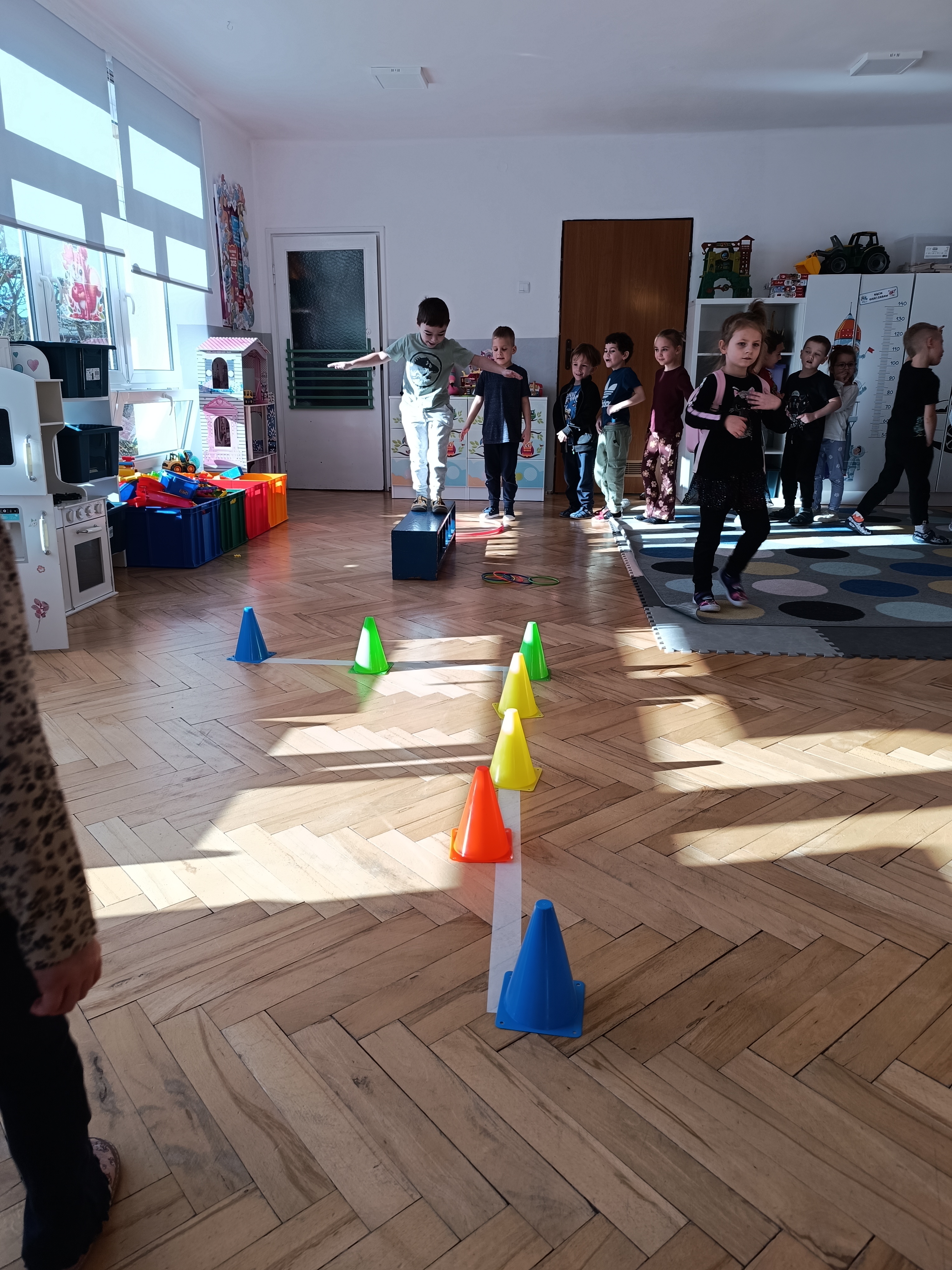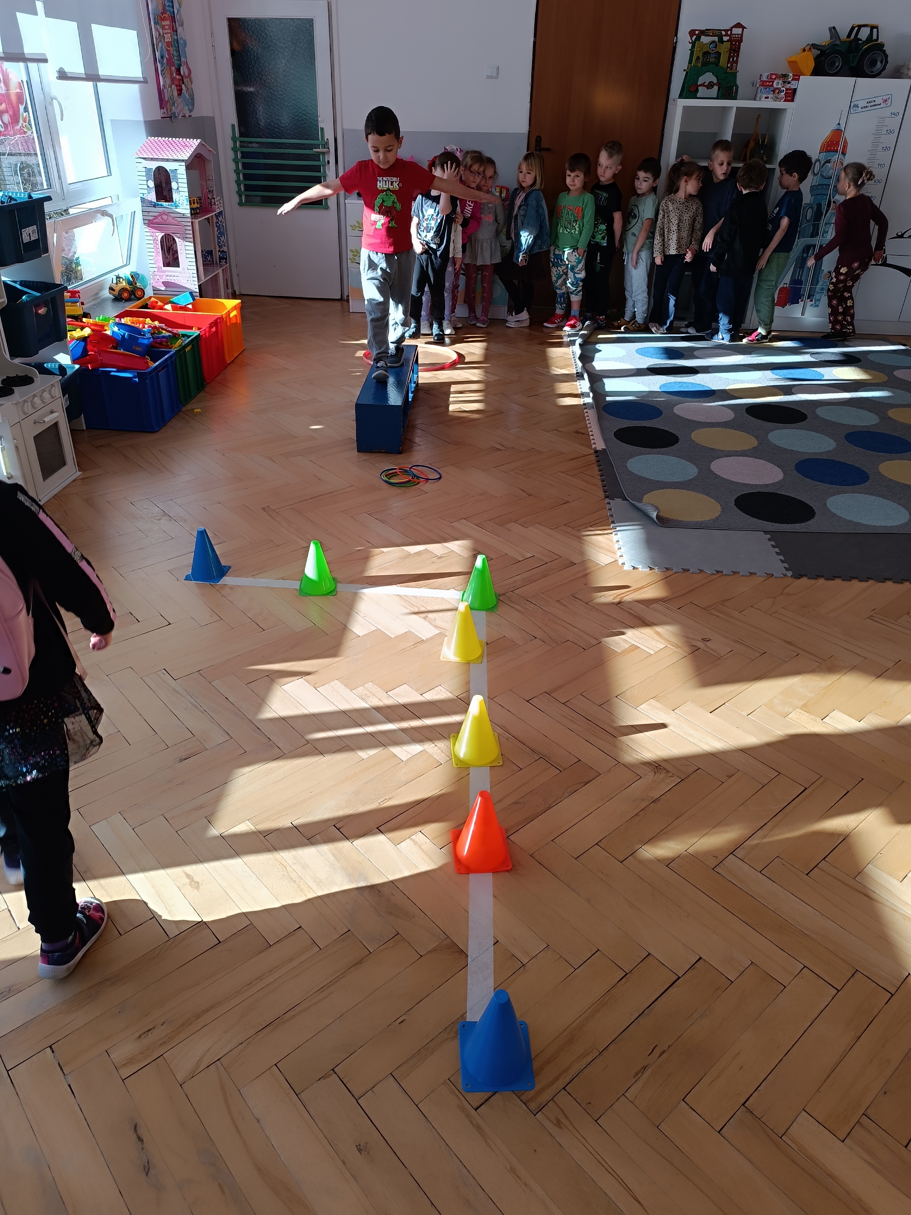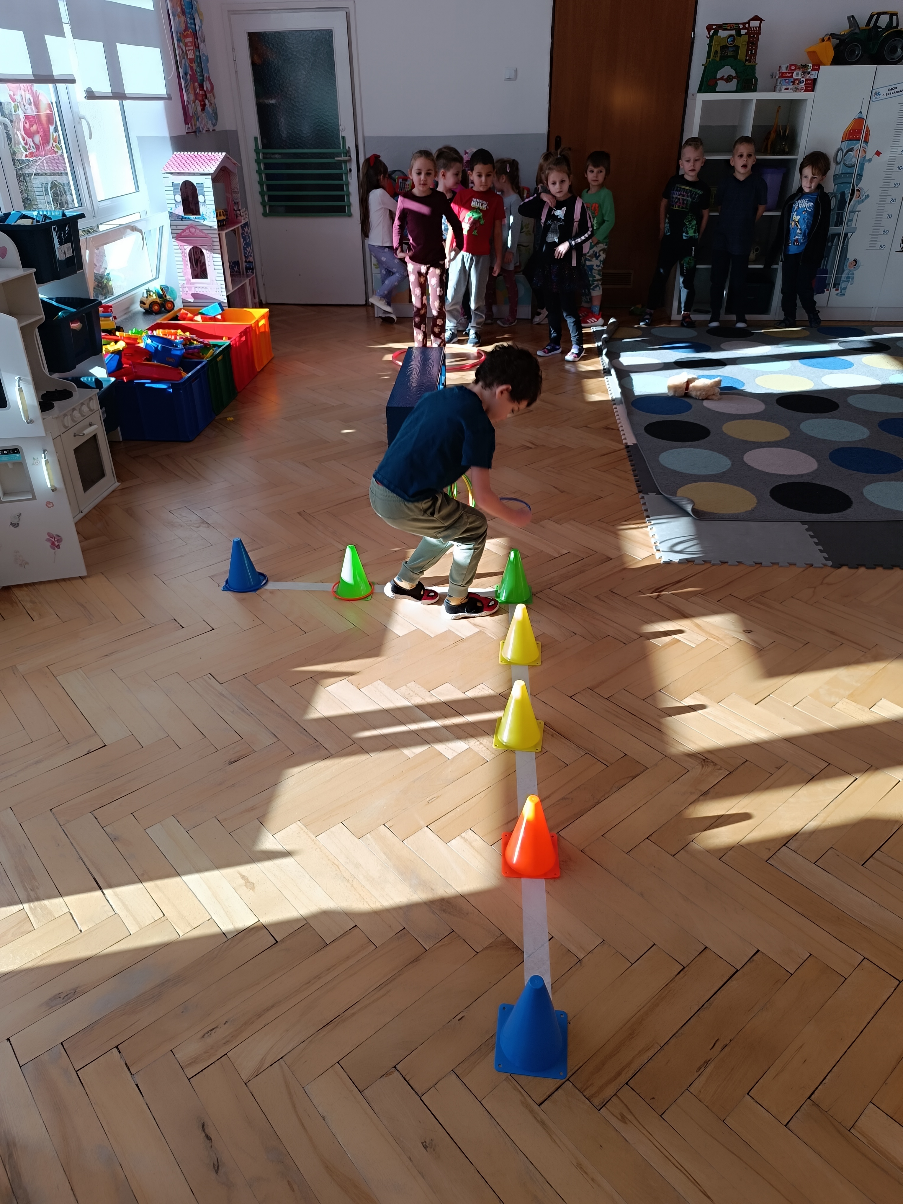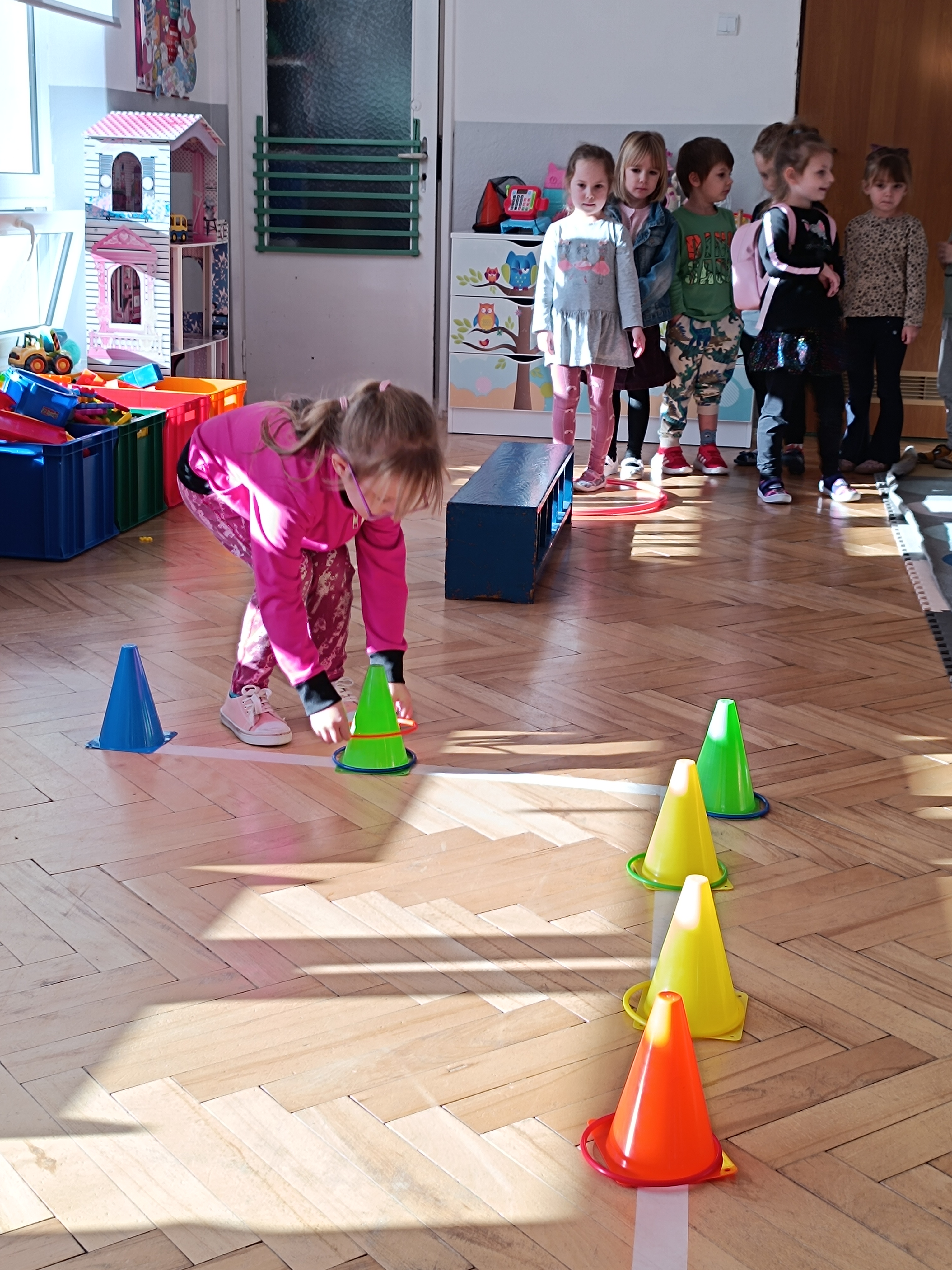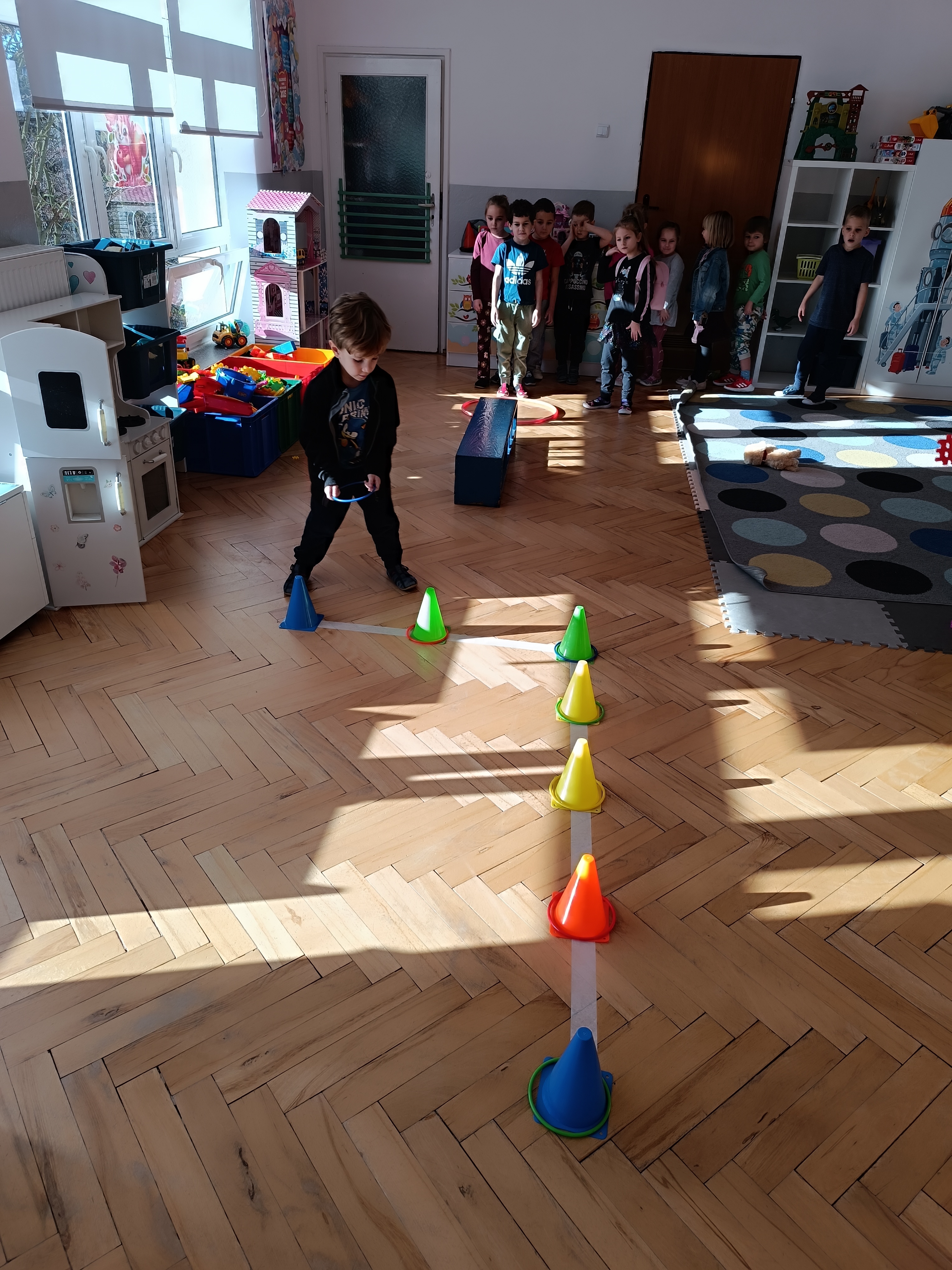 W tym tygodniu poznaliśmy również cyferkę 7 w aspekcie miarowym i porządkowym oraz jej zapis graficzny, uczestnicząc w zabawach matematycznych: " Czy schowałaś orzechy w pierwszej norce?" ; " Ile kołek zrobiła wiewiórka?"; " Jak wygląda siedem?" ; "Matematyczne ruchy".