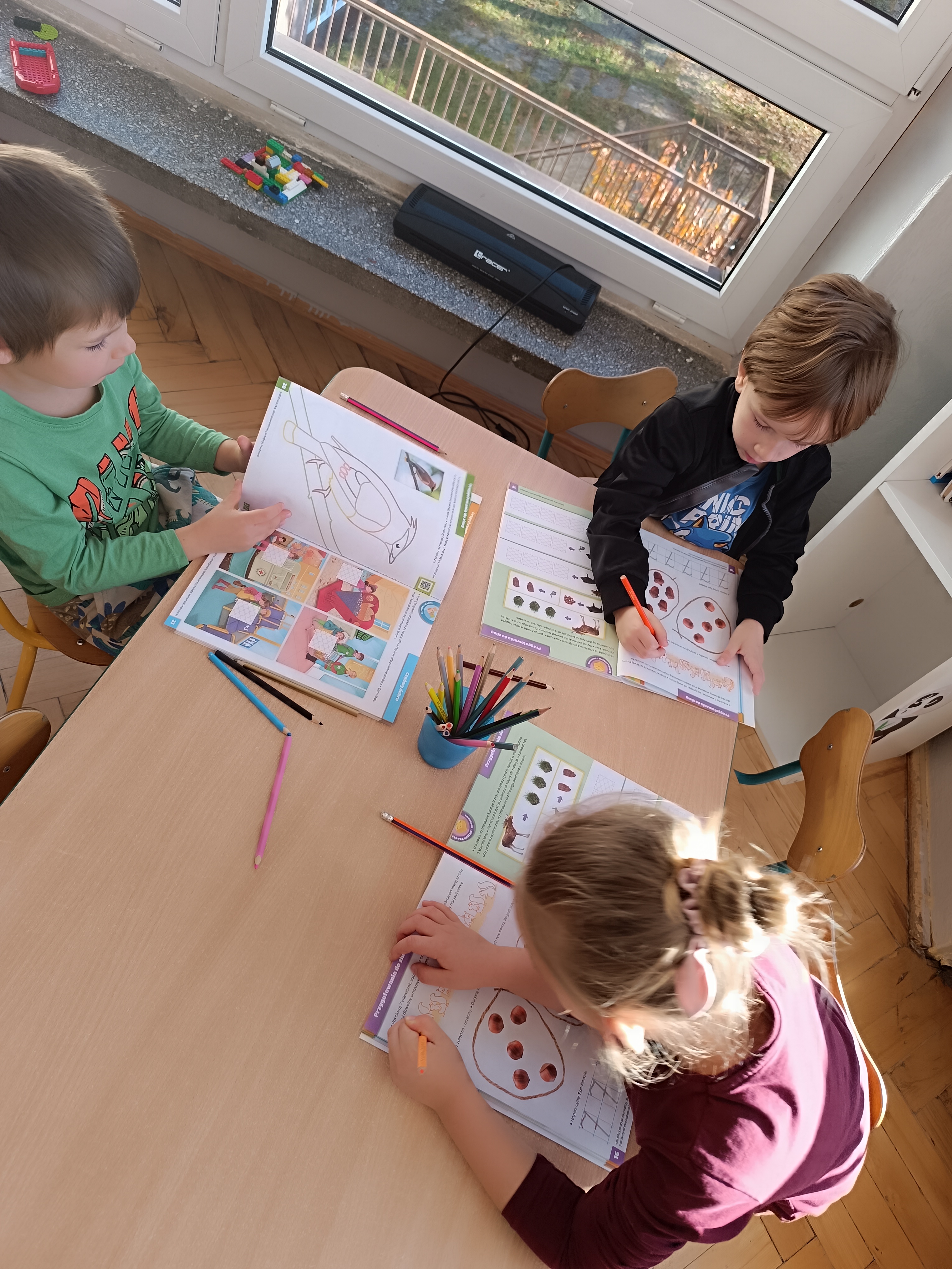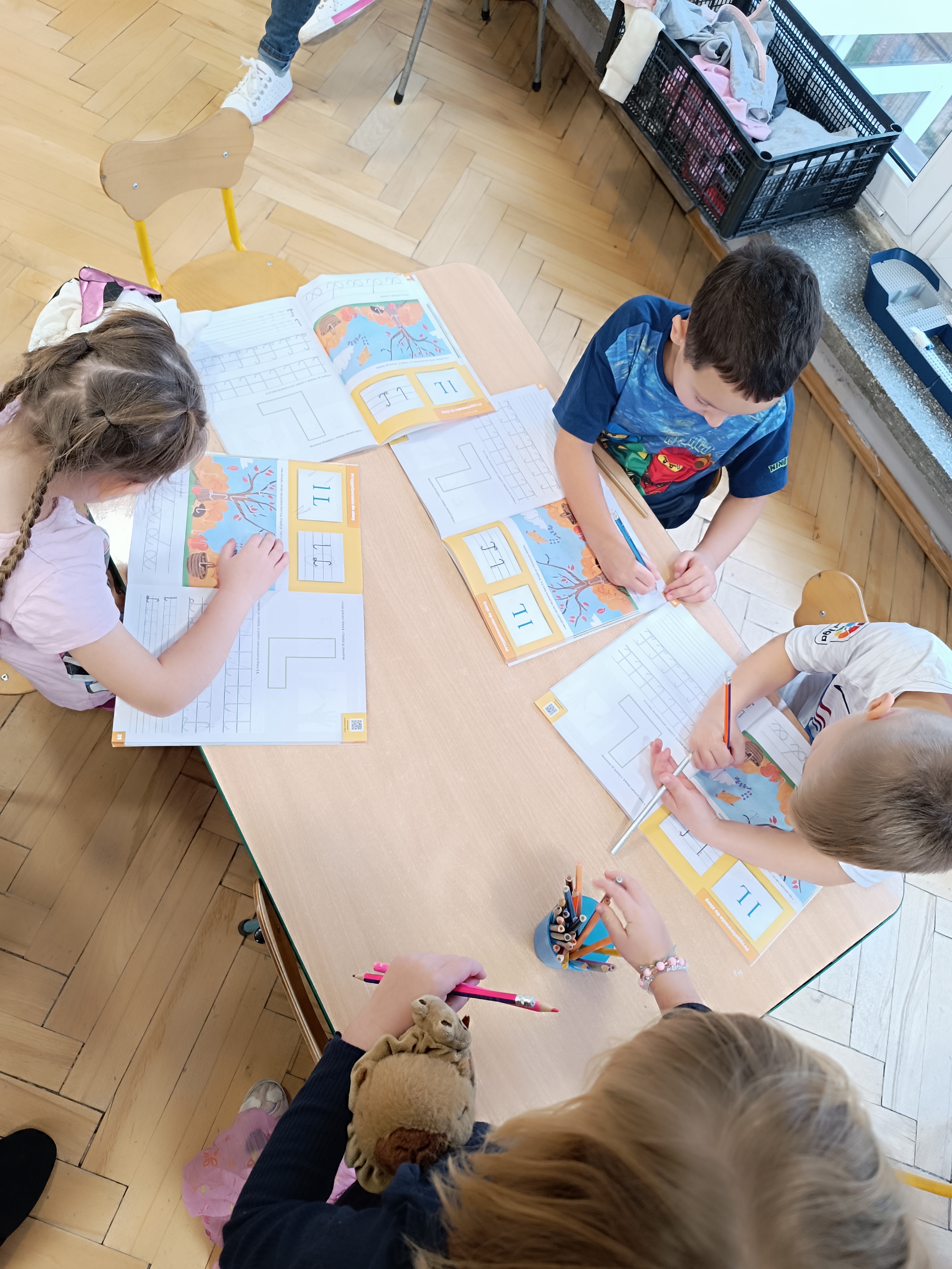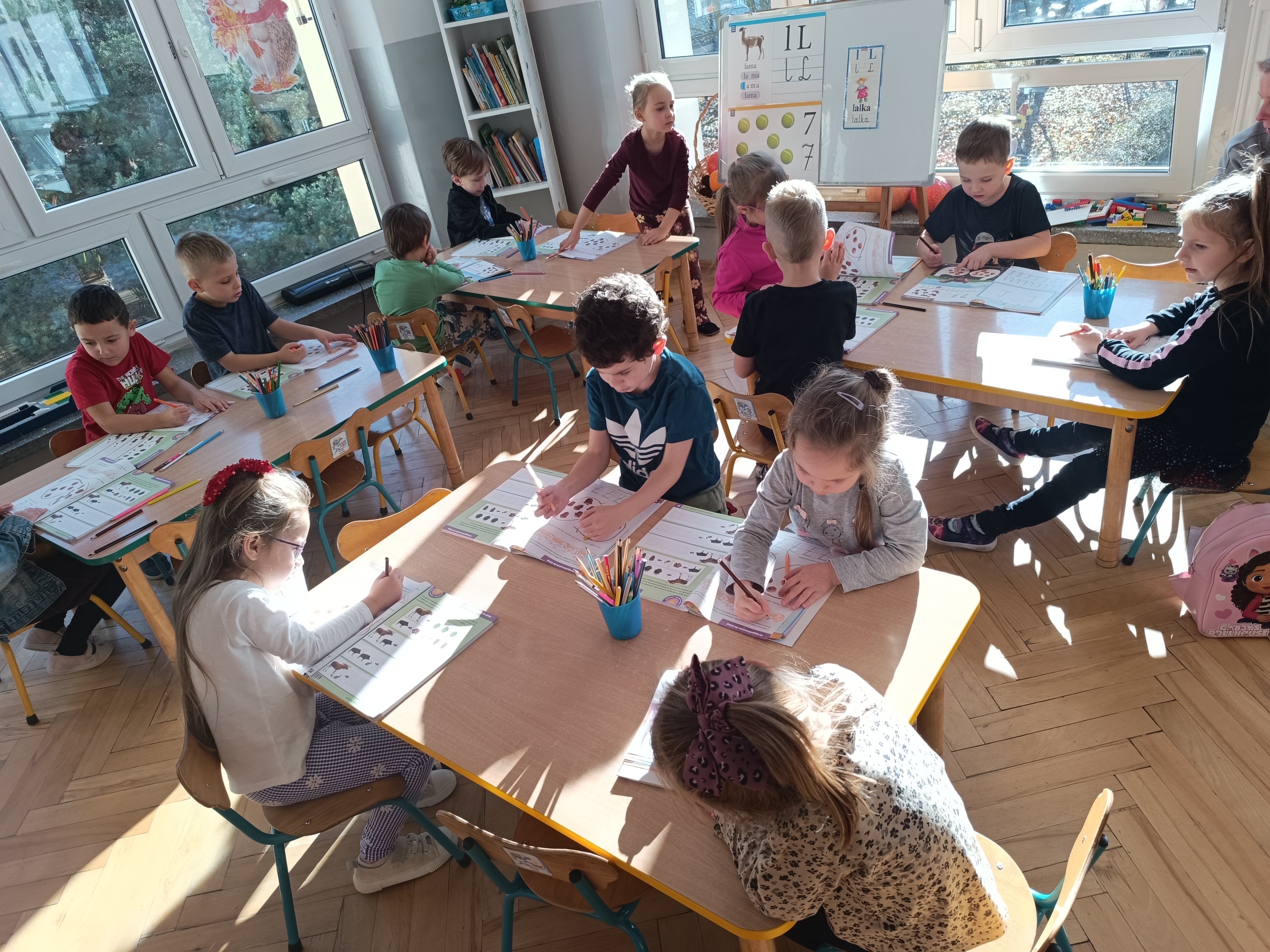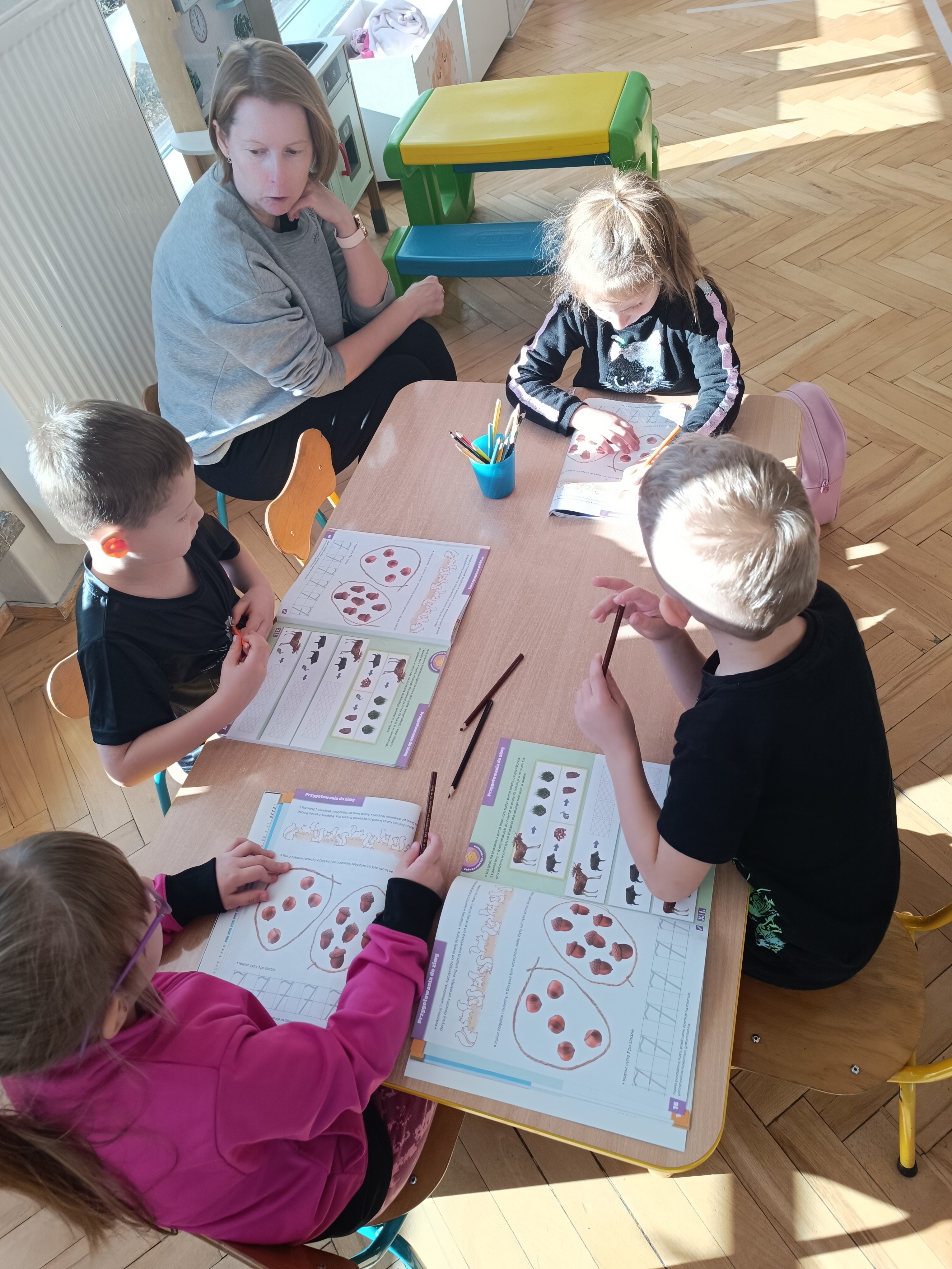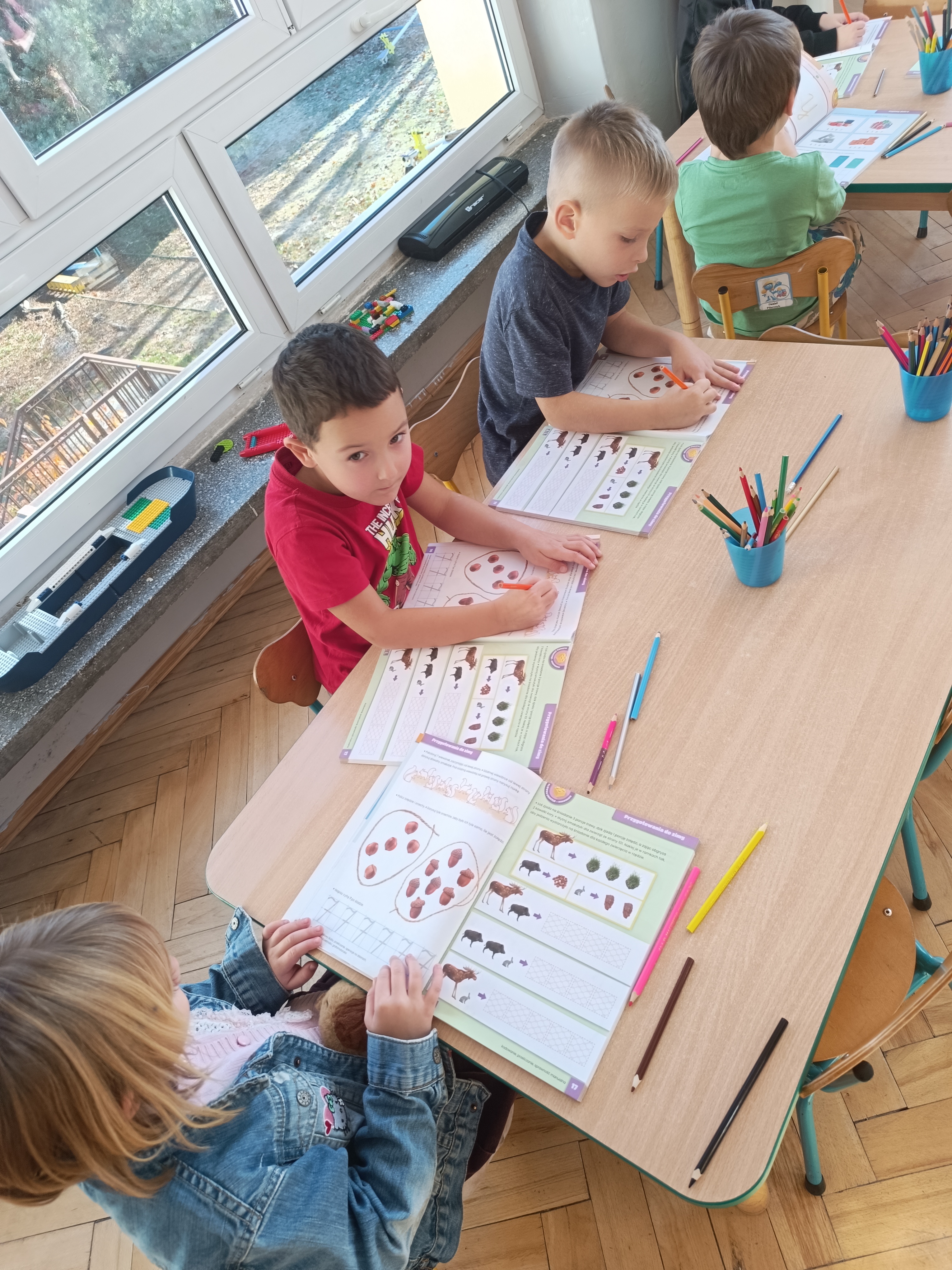 Nie zabrakło również pracy w naszych książeczkach i wykonywania prac plastyczno - technicznych , a także zabaw ruchowych.