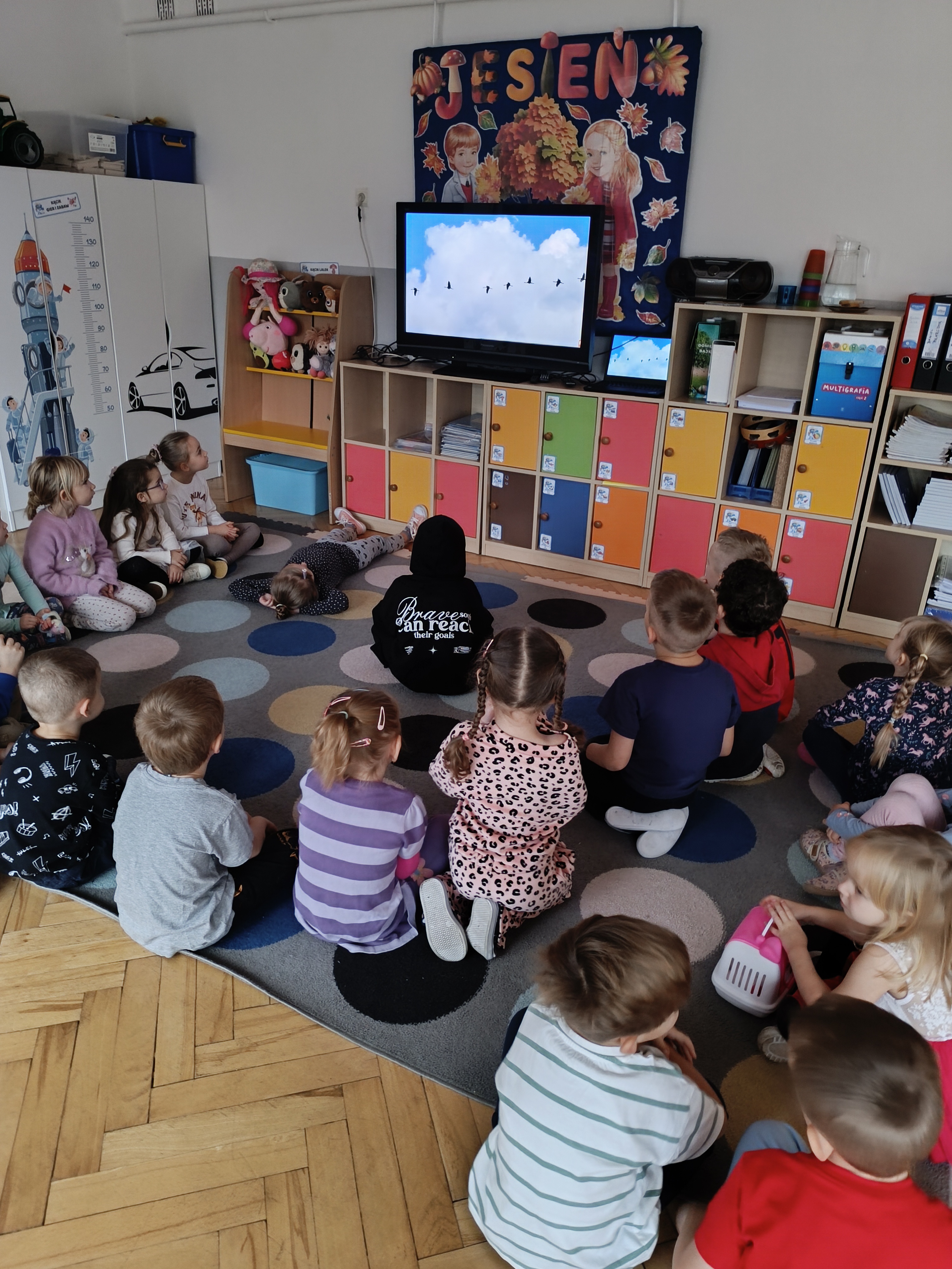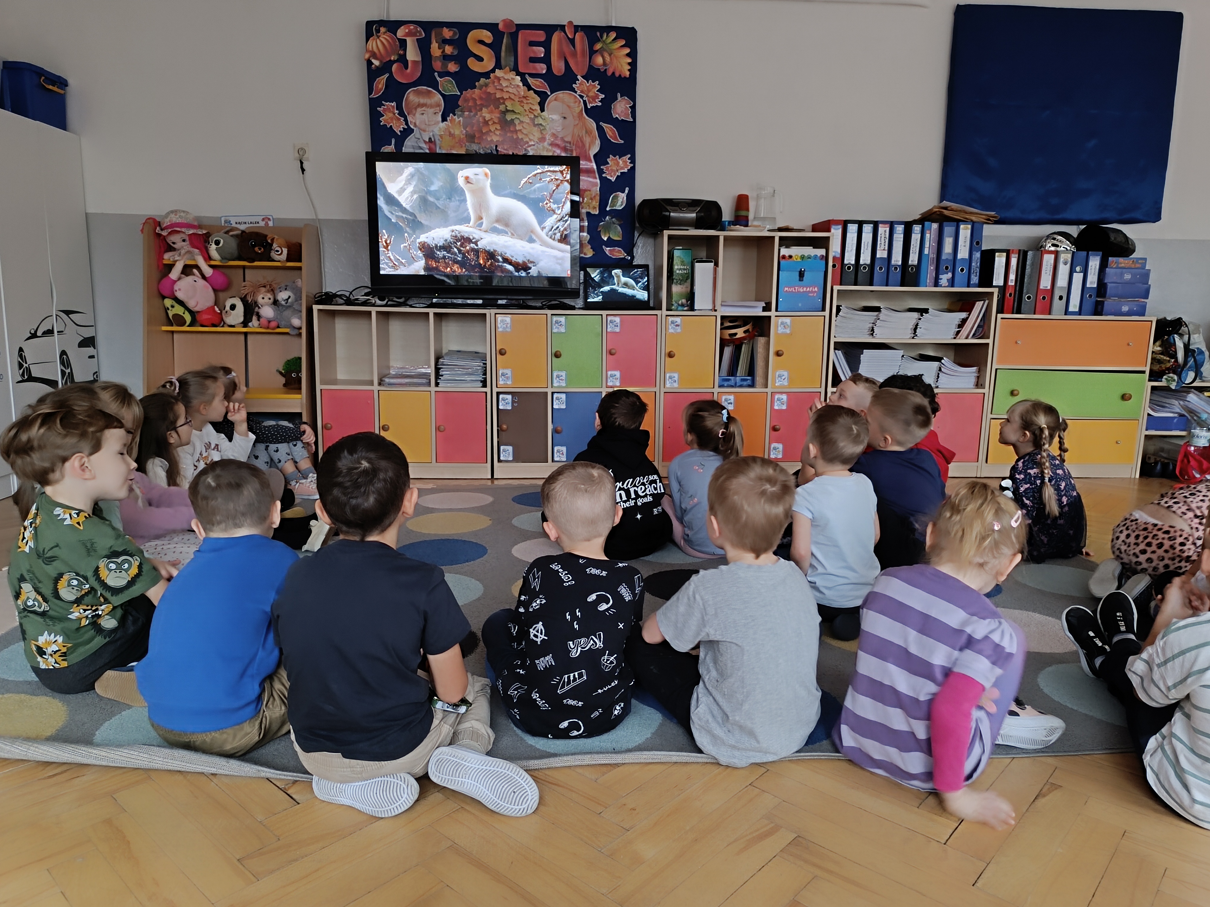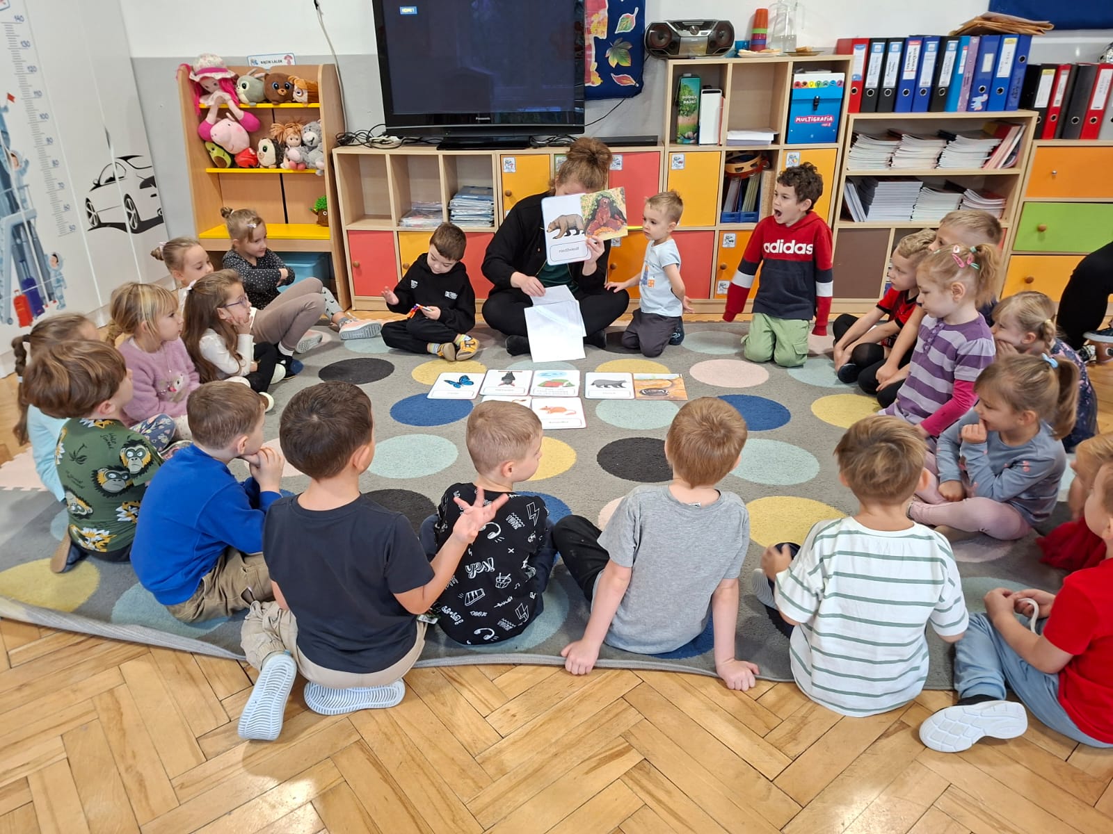 Rozmawialiśmy o zwierzętach, które zasypiają na zimę, o ich zapasach na zimę , o ptakach które opuszczają Polskę na zimę i odlatują do ciepłych krajów, a także o zwierzętach zamieszkujących lasy. Odgadywaliśmy zagadki Anny Urszuli Kamińskiej.