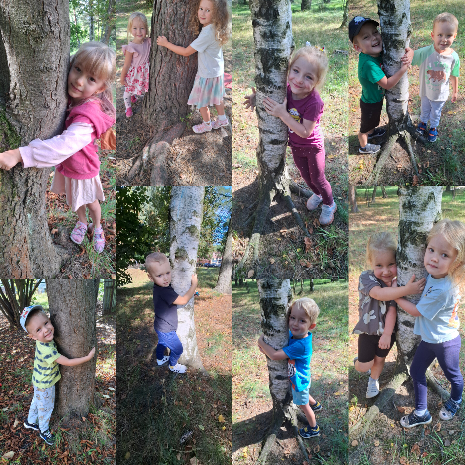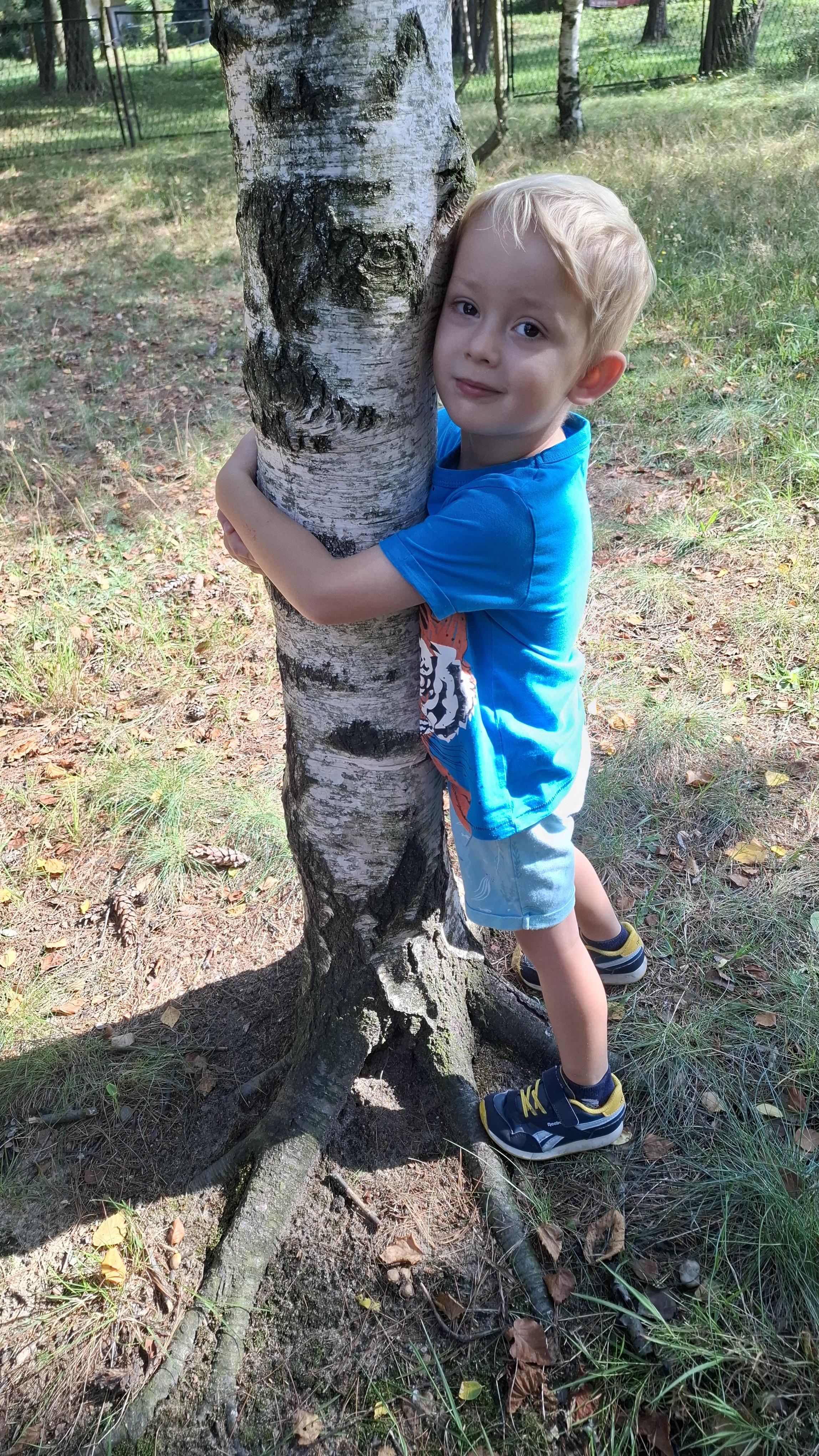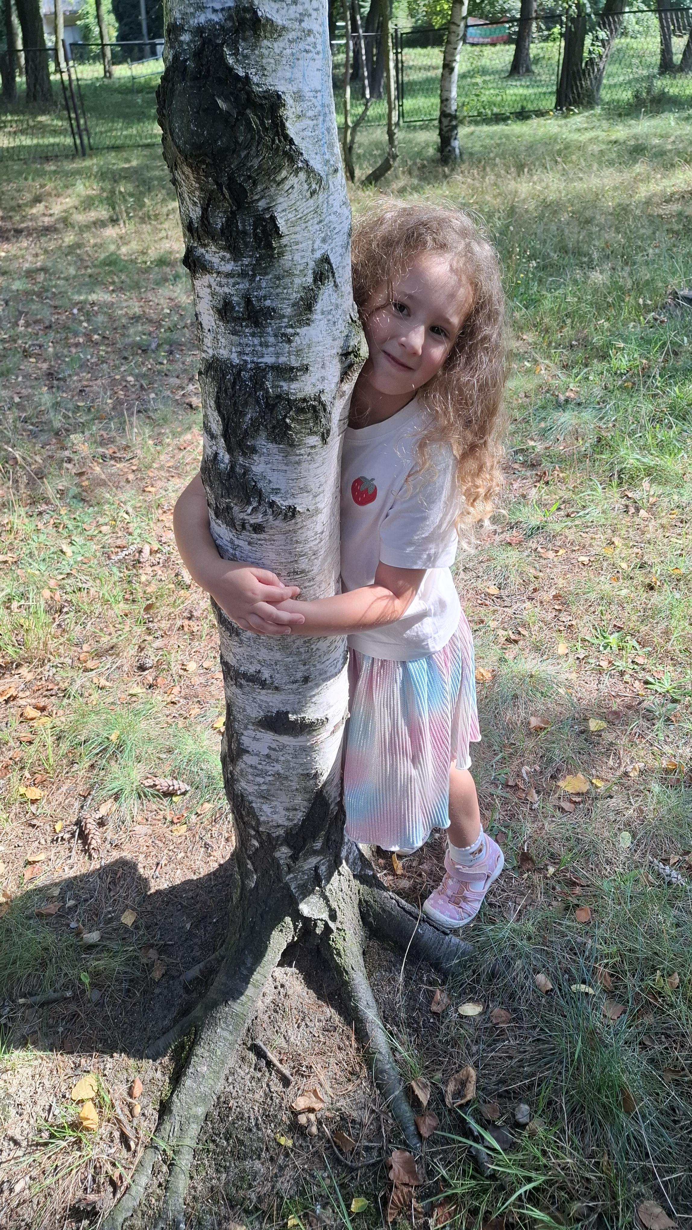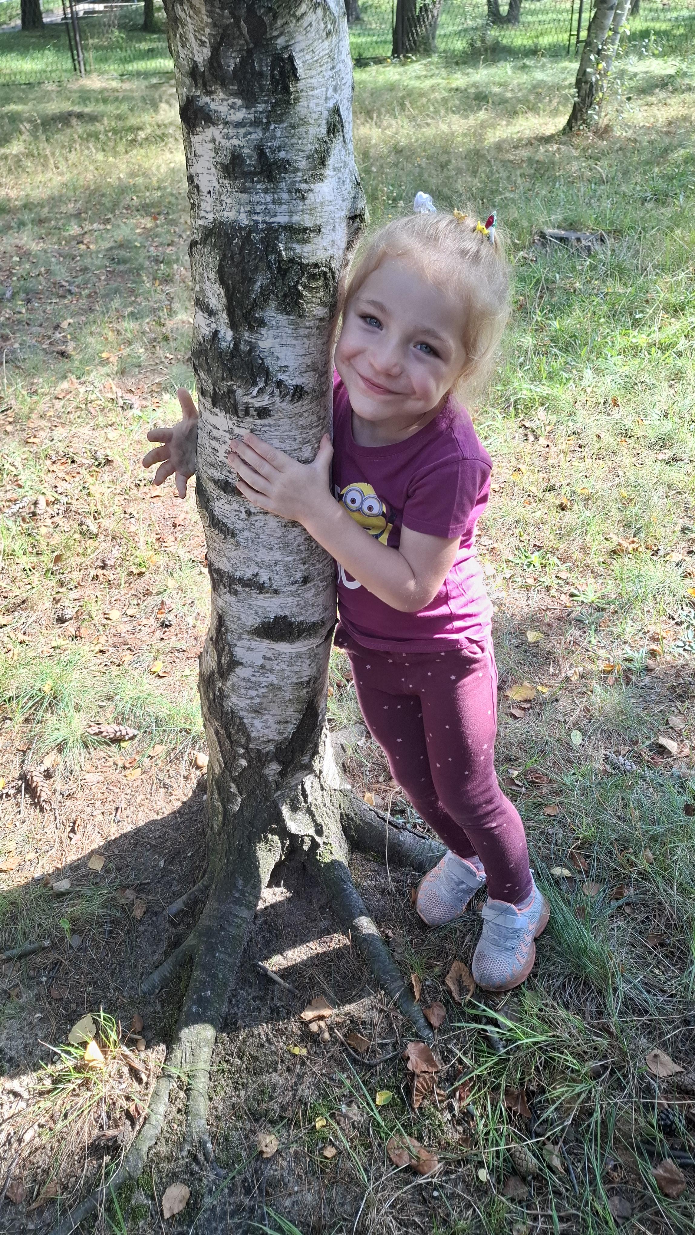 Podczas zajęć wyszliśmy do ogrody przedszkolnego, aby przytulić wybrane drzewa w naszym otoczeniu. Ten prosty, ale piękny gest miał wyjątkowe znaczenie – uczył najmłodszych szacunku do przyrody i pokazał, jak ważne jest dbanie o lasy i drzewa, które dają nam tlen, cień i schronienie dla wielu zwierząt.