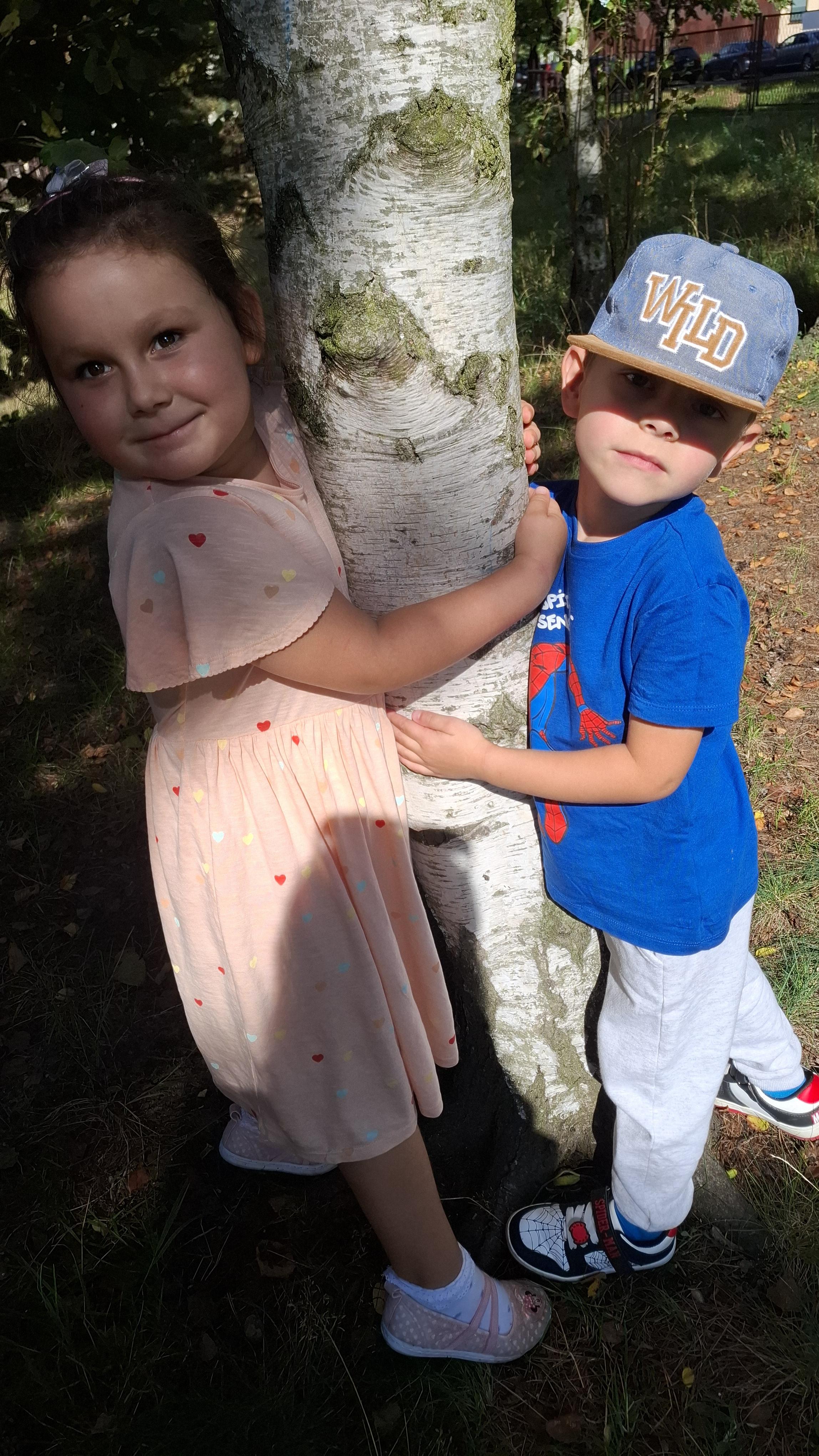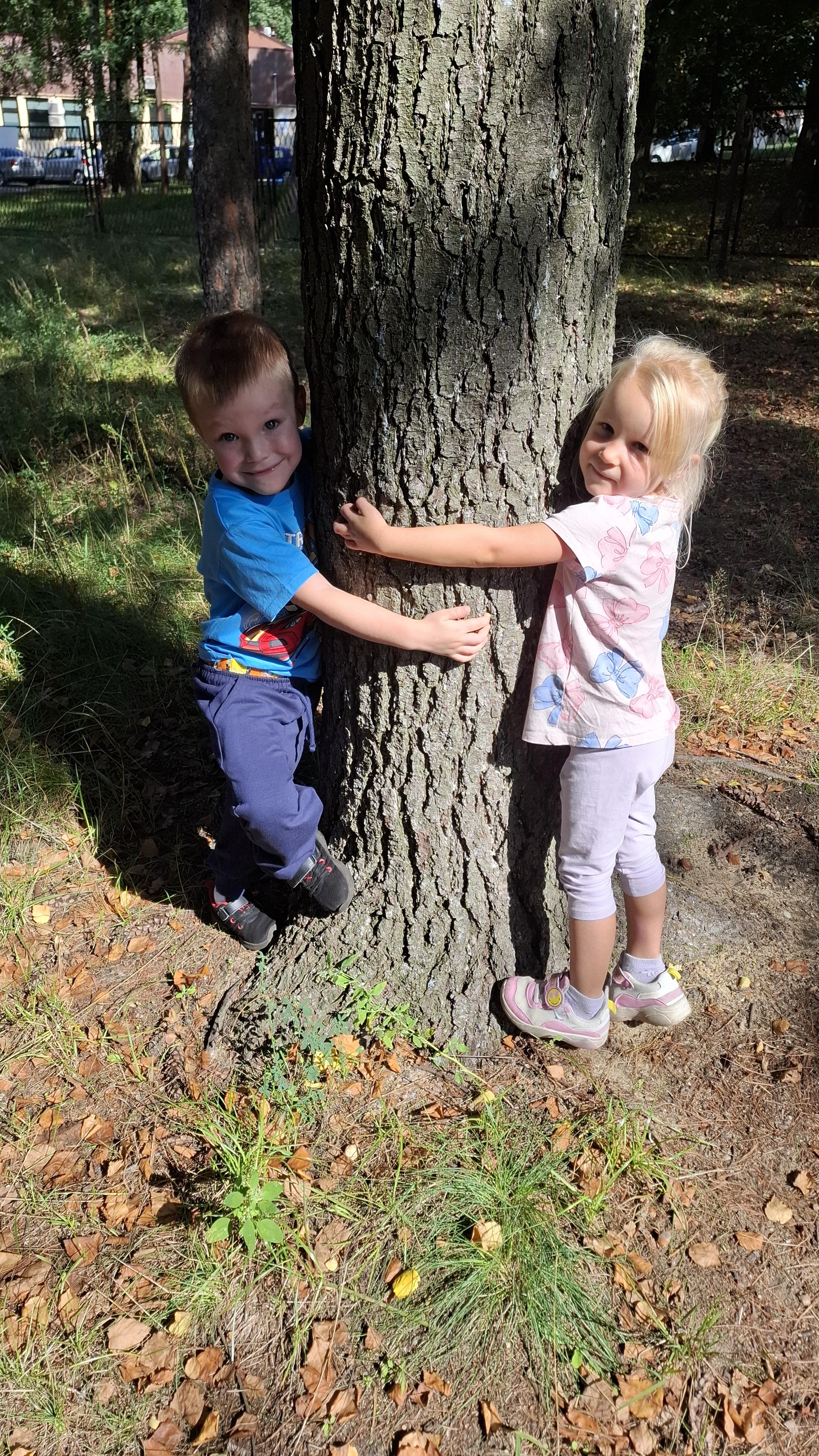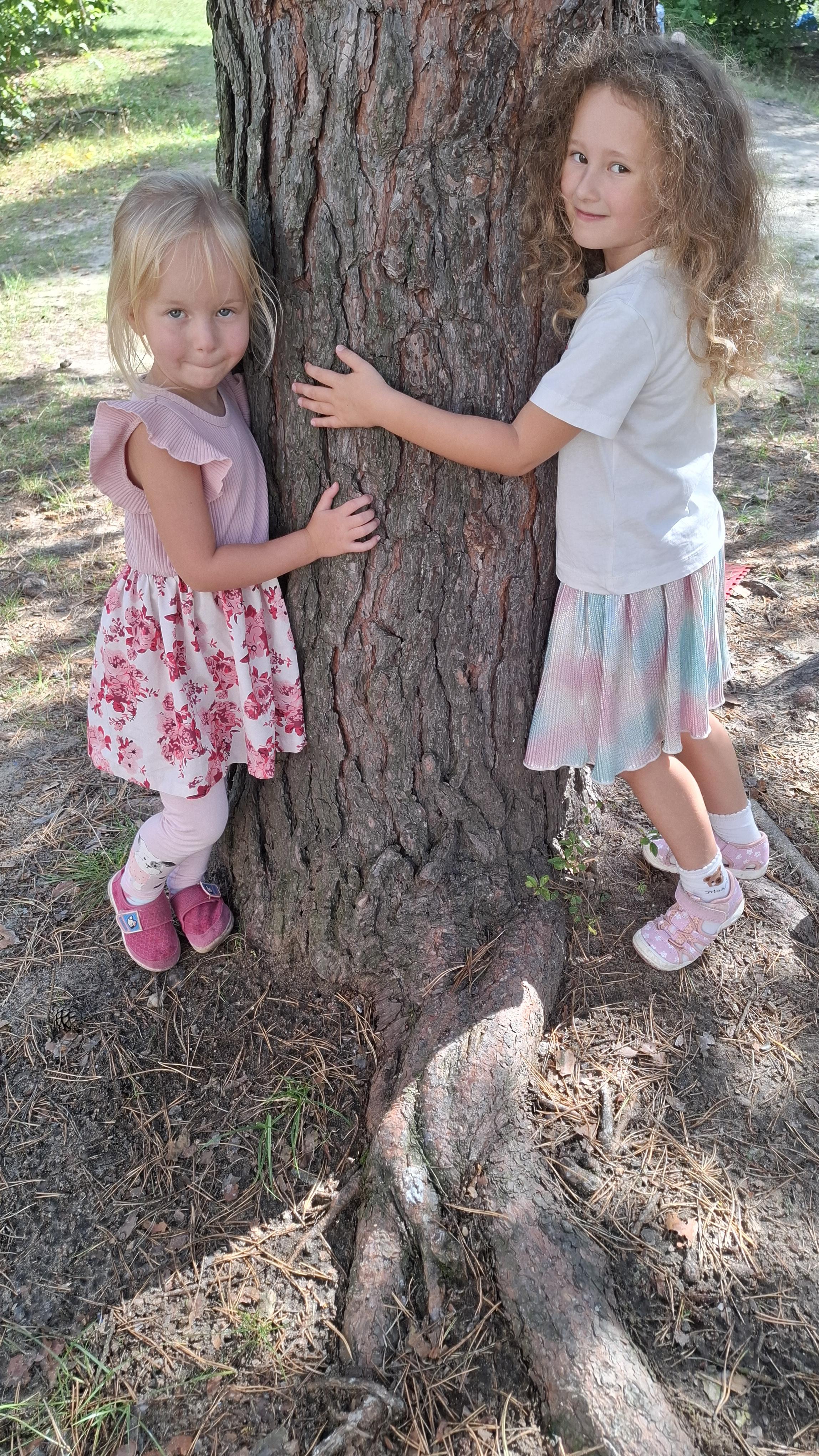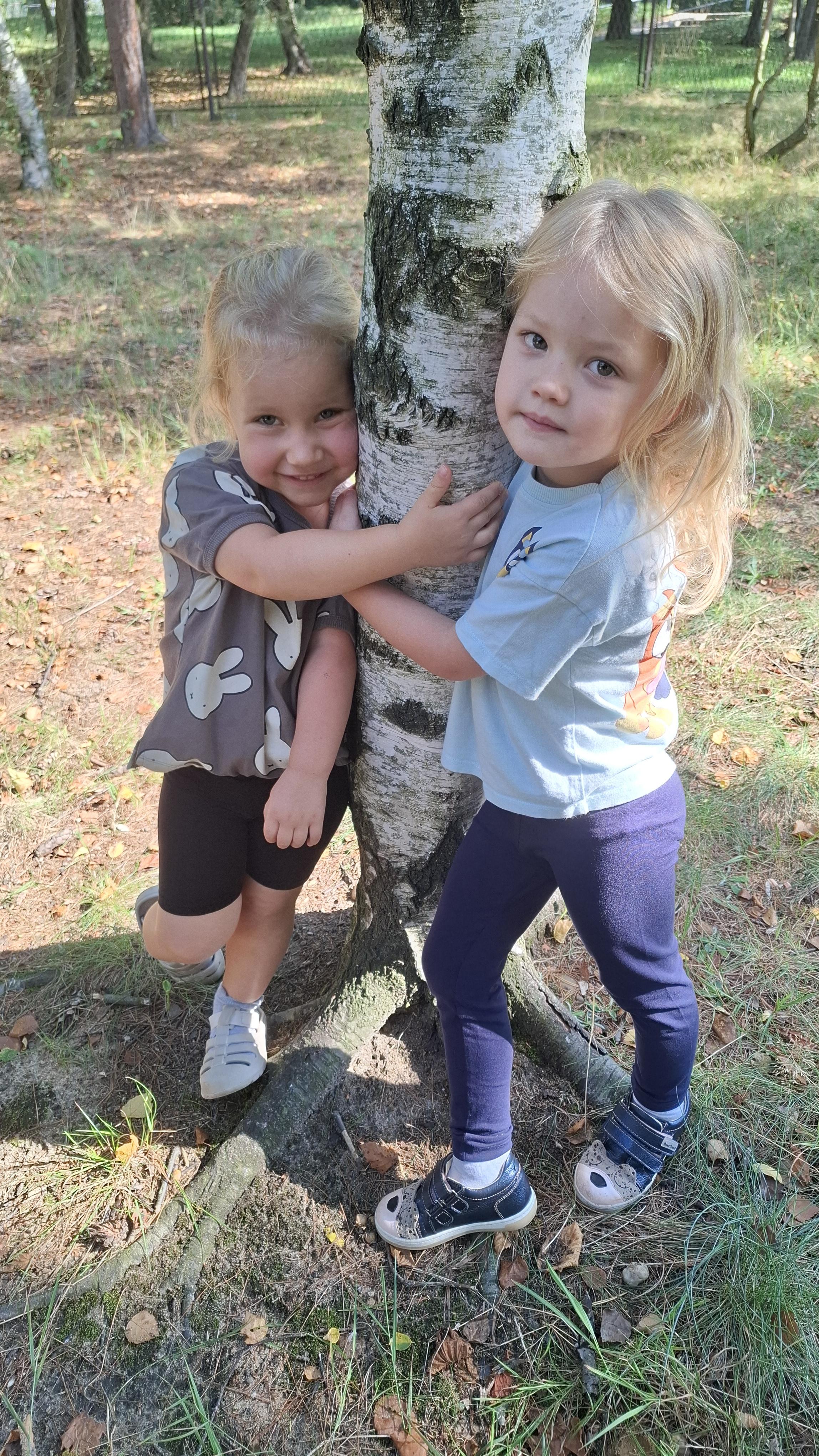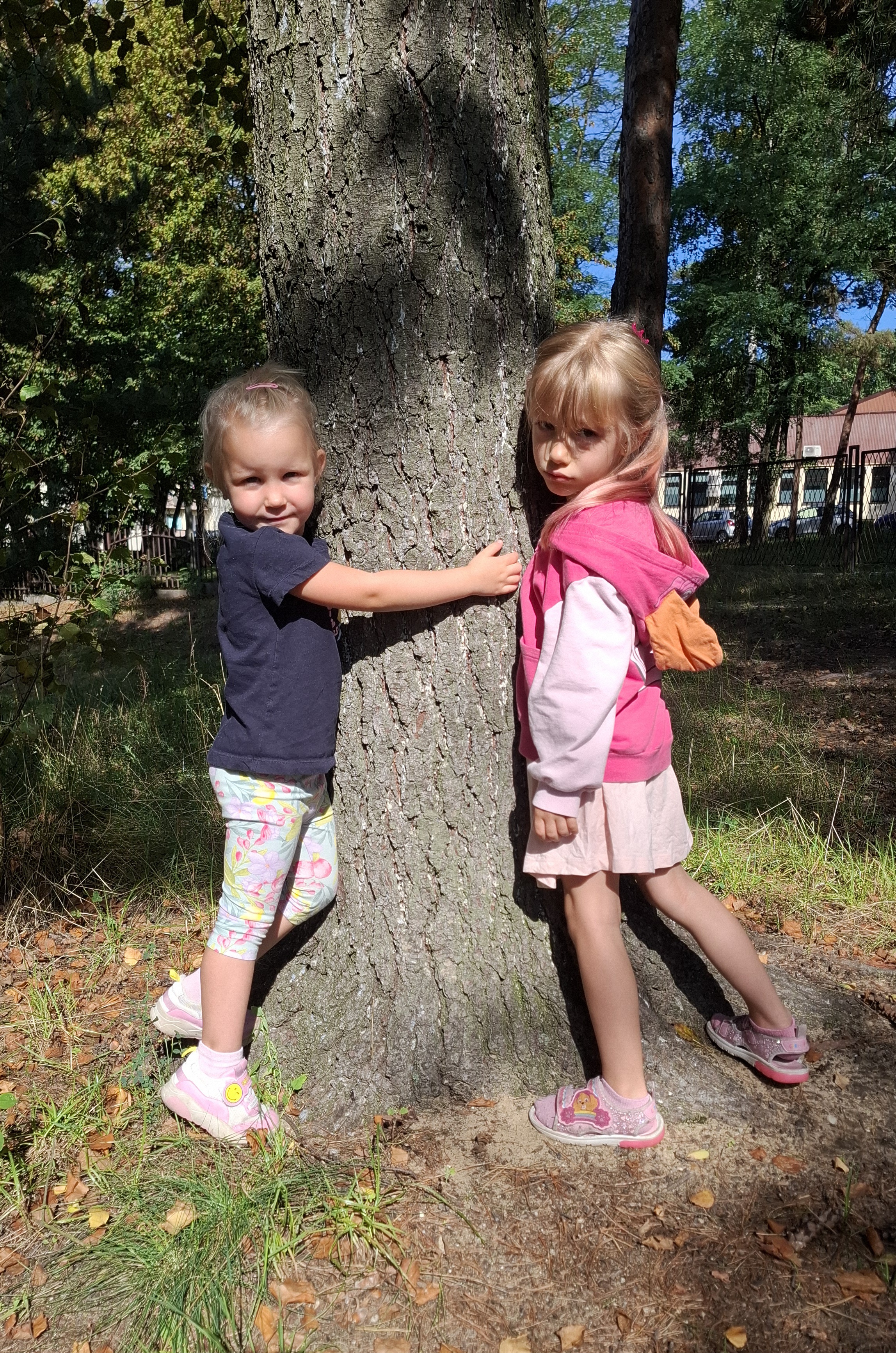 Podczas zajęć wyszliśmy do ogrody przedszkolnego, aby przytulić wybrane drzewa w naszym otoczeniu. Ten prosty, ale piękny gest miał wyjątkowe znaczenie – uczył najmłodszych szacunku do przyrody i pokazał, jak ważne jest dbanie o lasy i drzewa, które dają nam tlen, cień i schronienie dla wielu zwierząt.