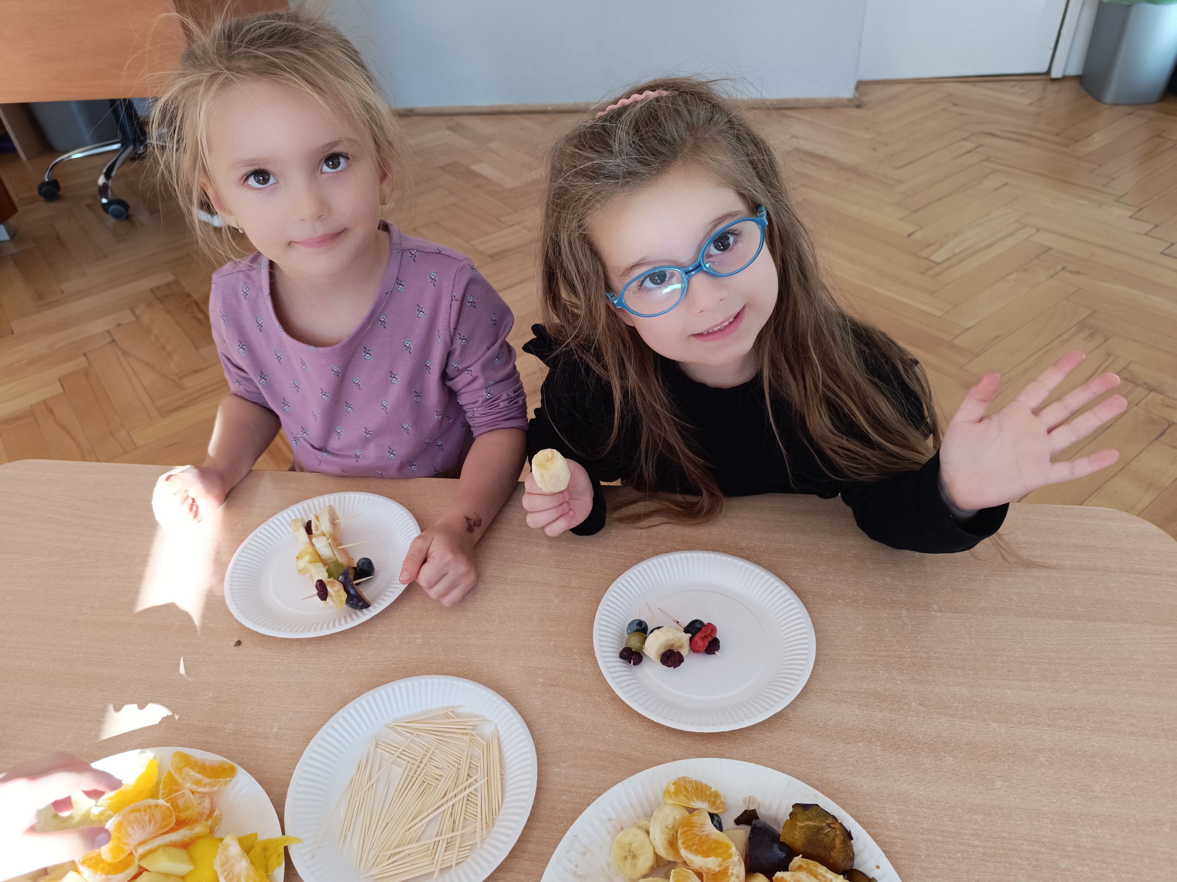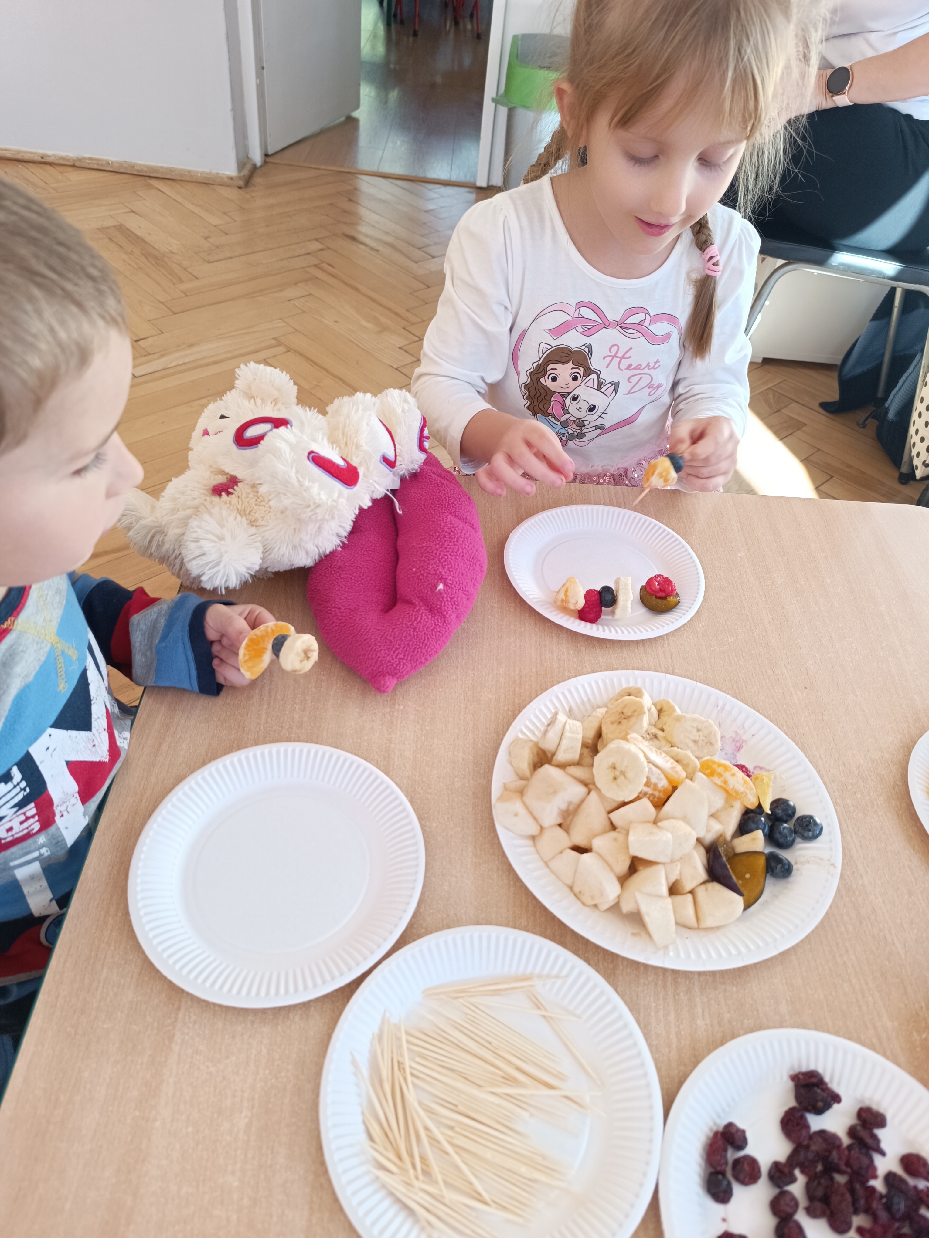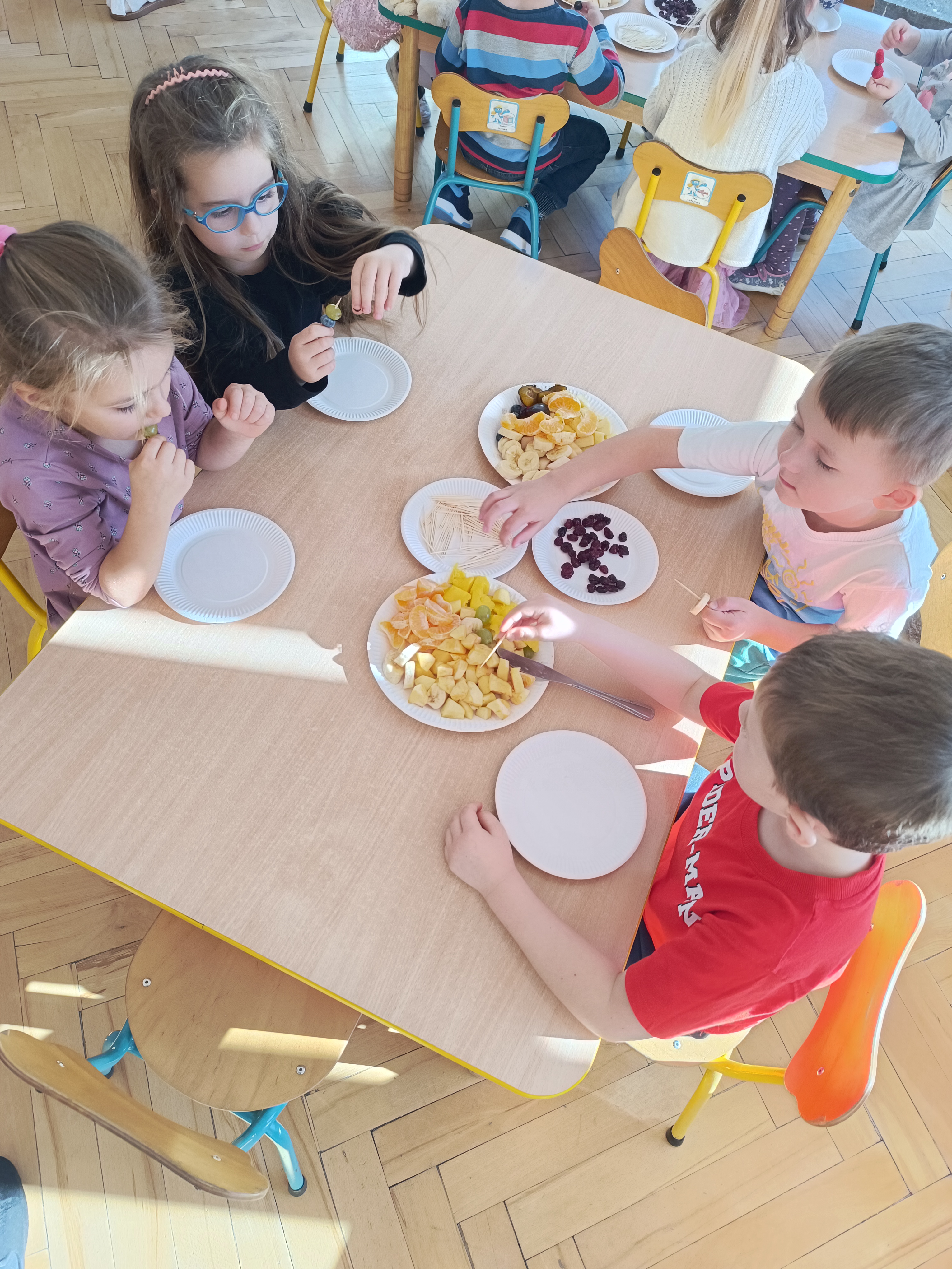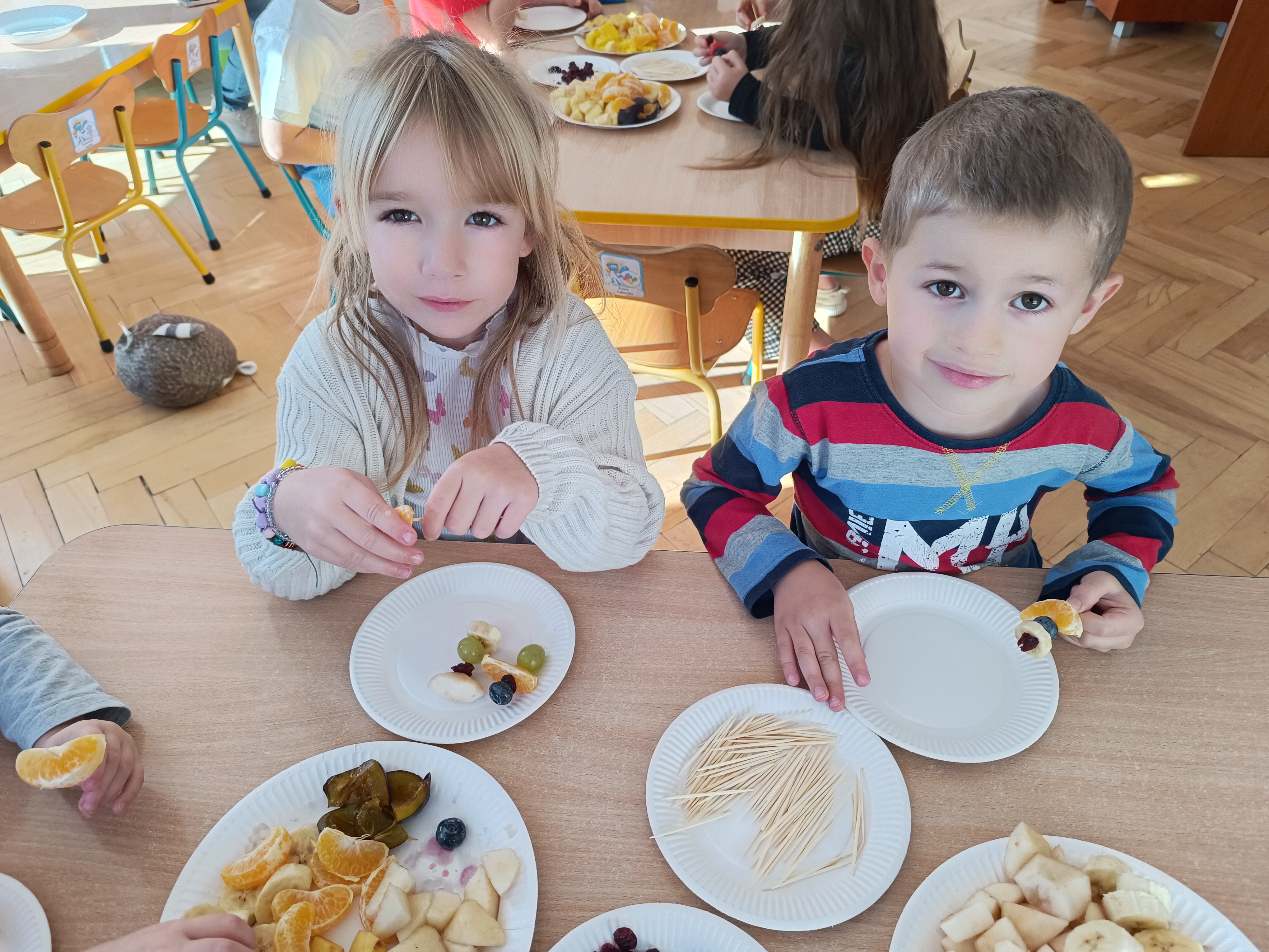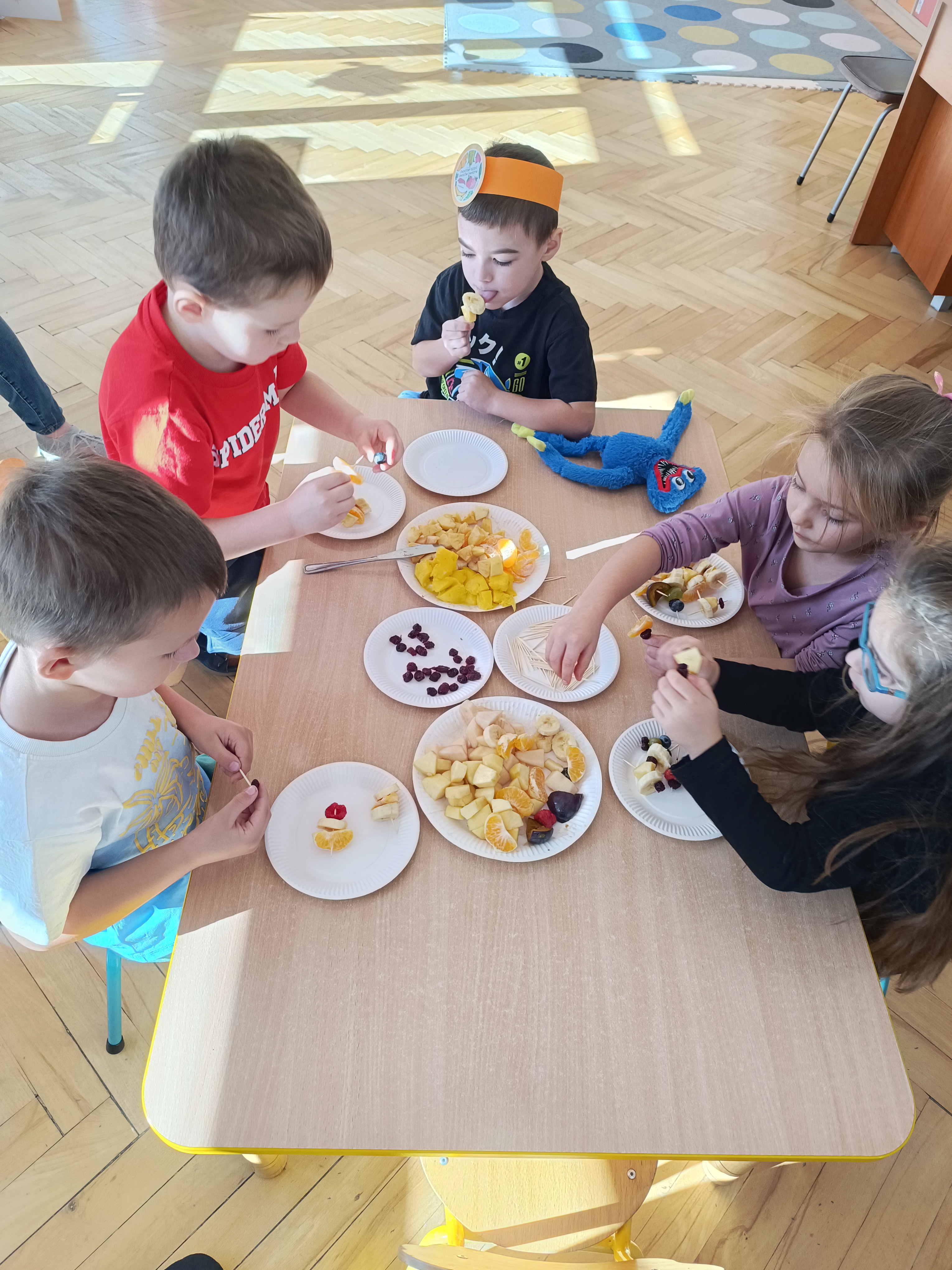 Wspomniane święto było okazją do tworzenia owocowych szaszłyków, koreczków, które dzieci później zjadły z przyjemnością i uśmiechami na twarzy.