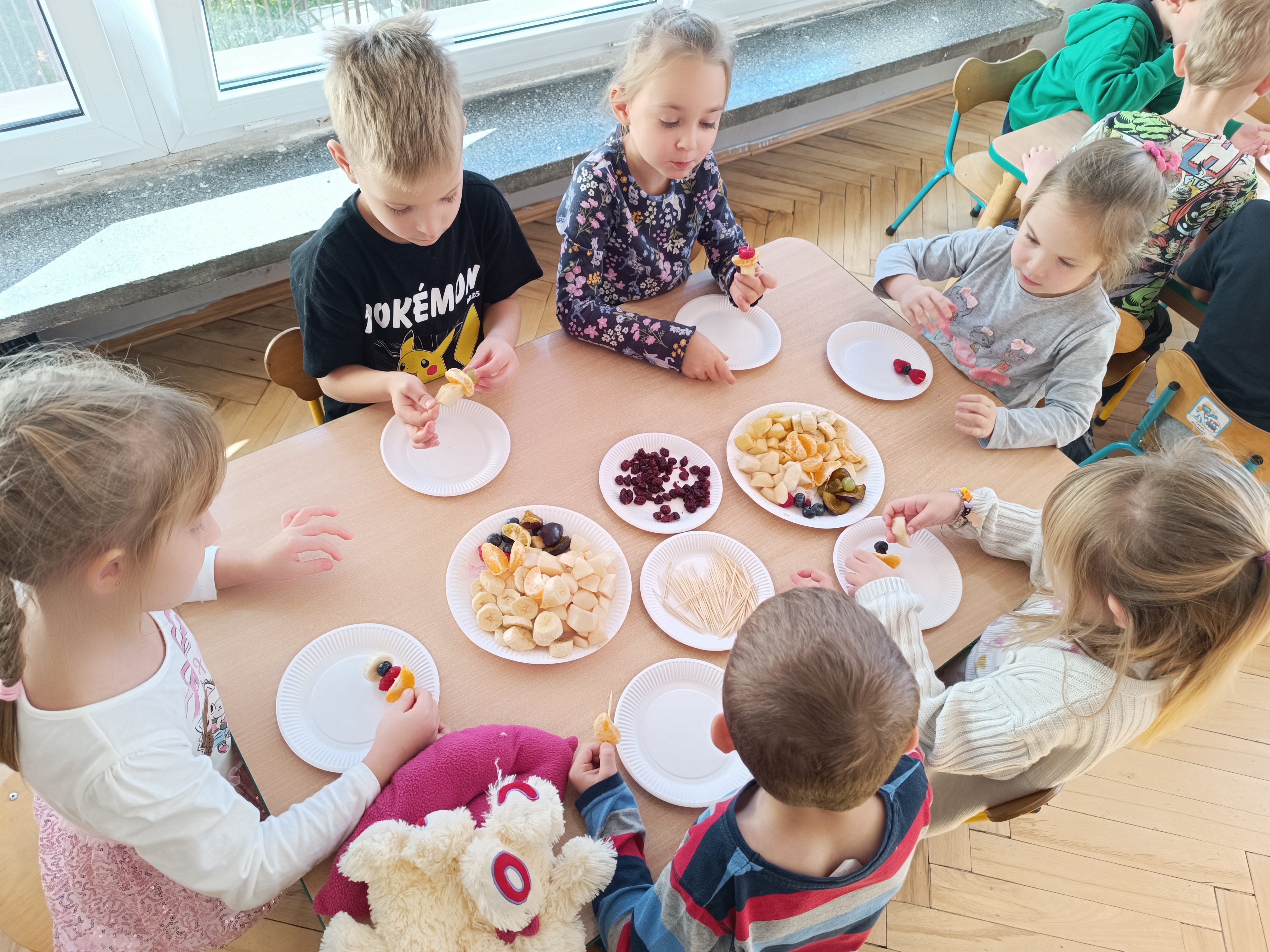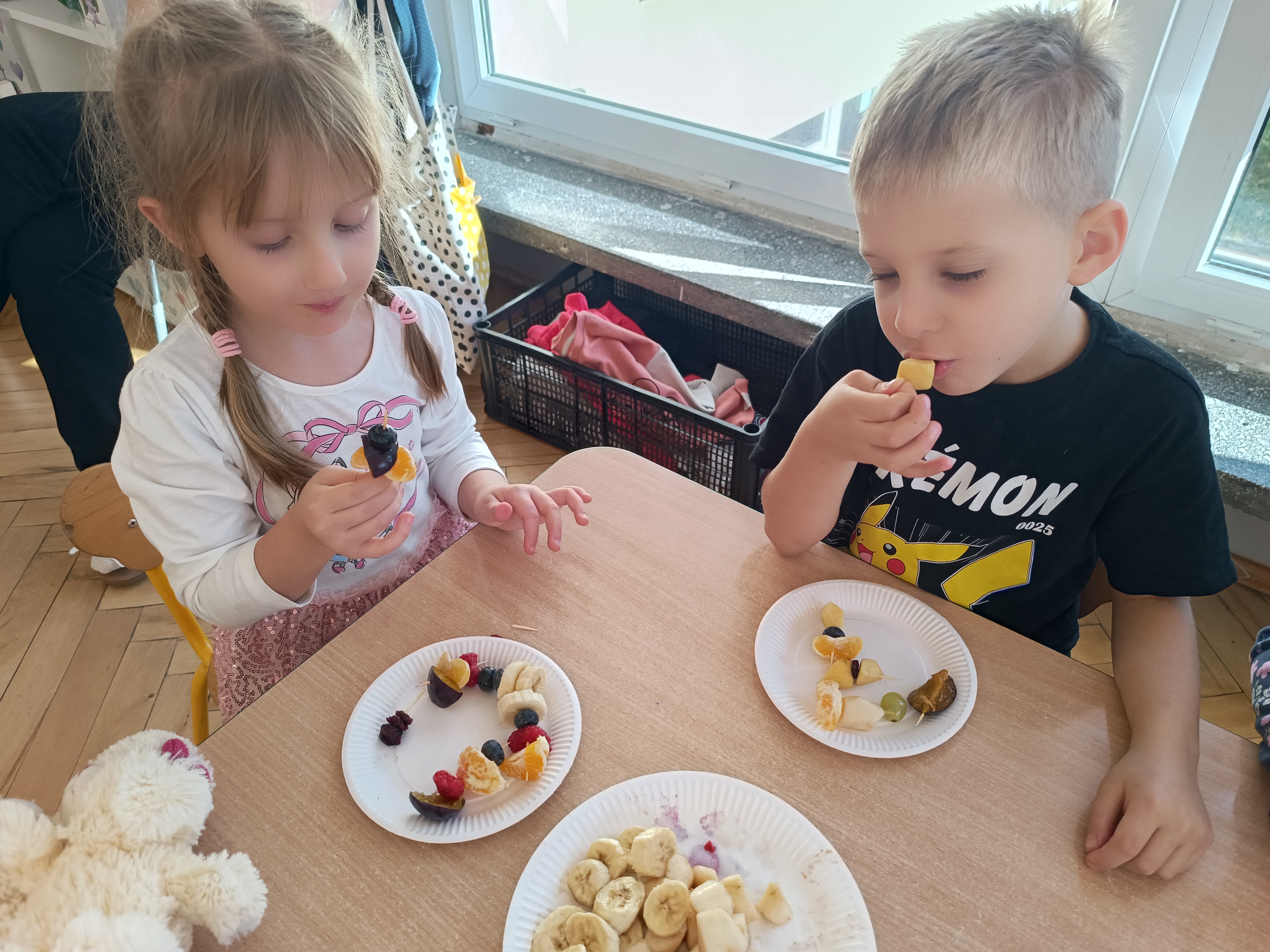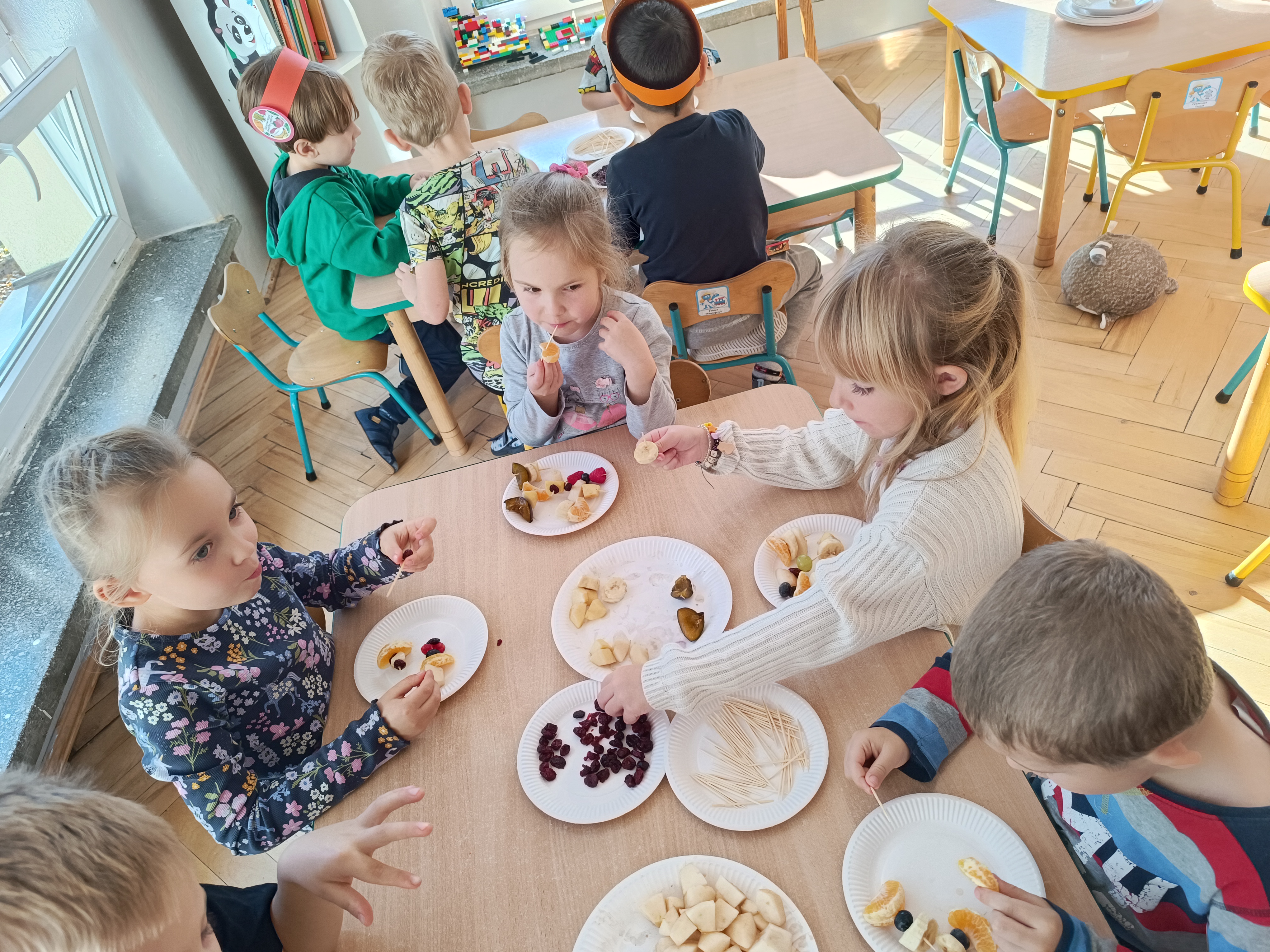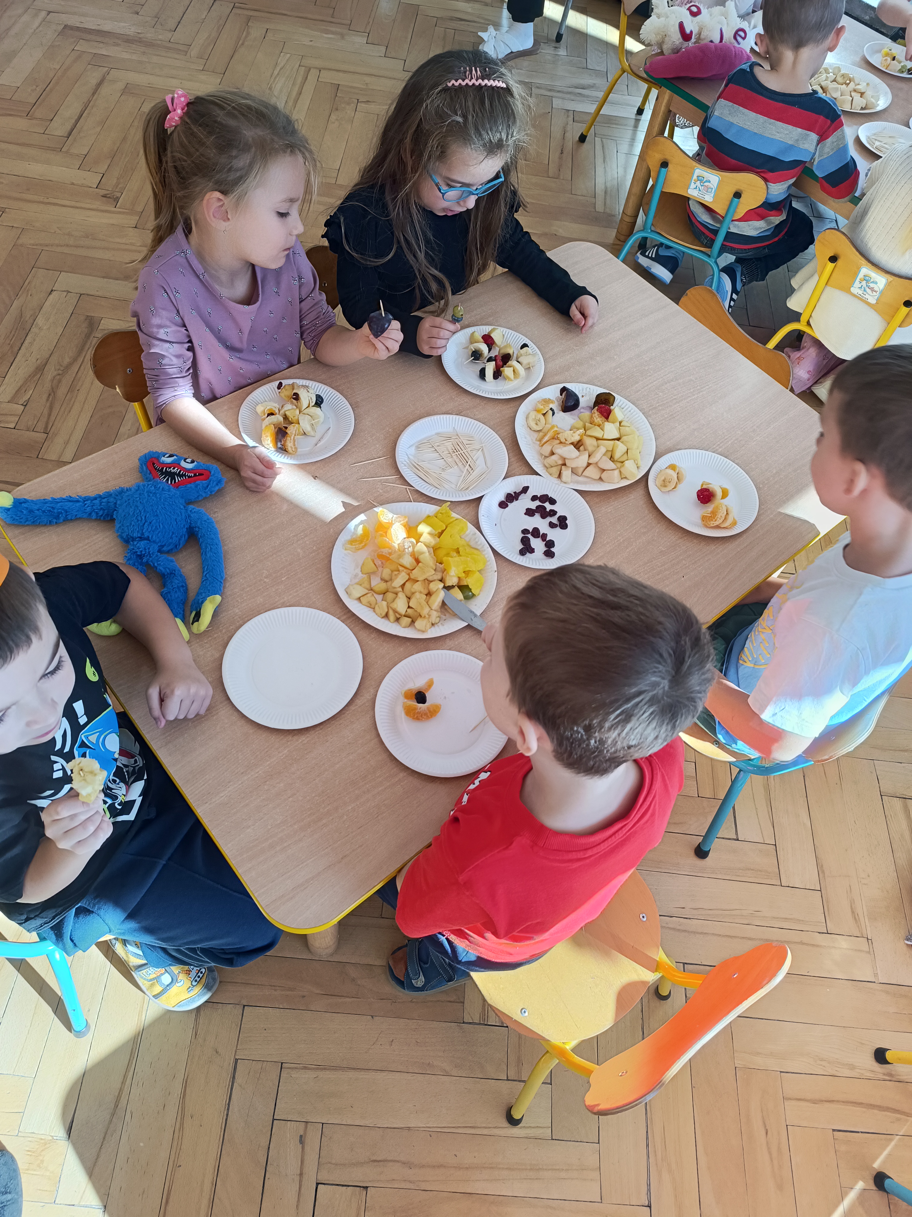 Wspomniane święto było okazją do tworzenia owocowych szaszłyków, koreczków, które dzieci później zjadły z przyjemnością i uśmiechami na twarzy.