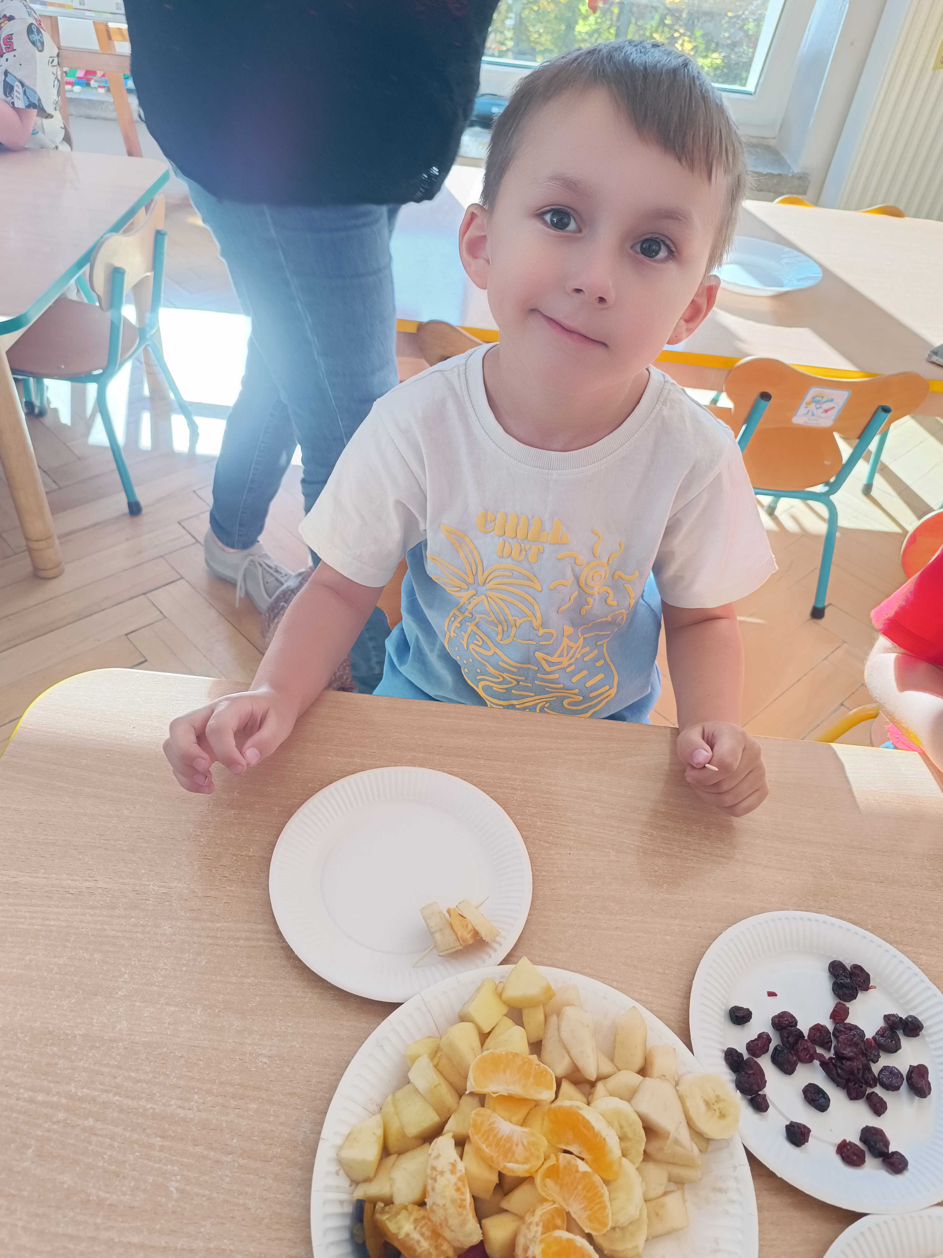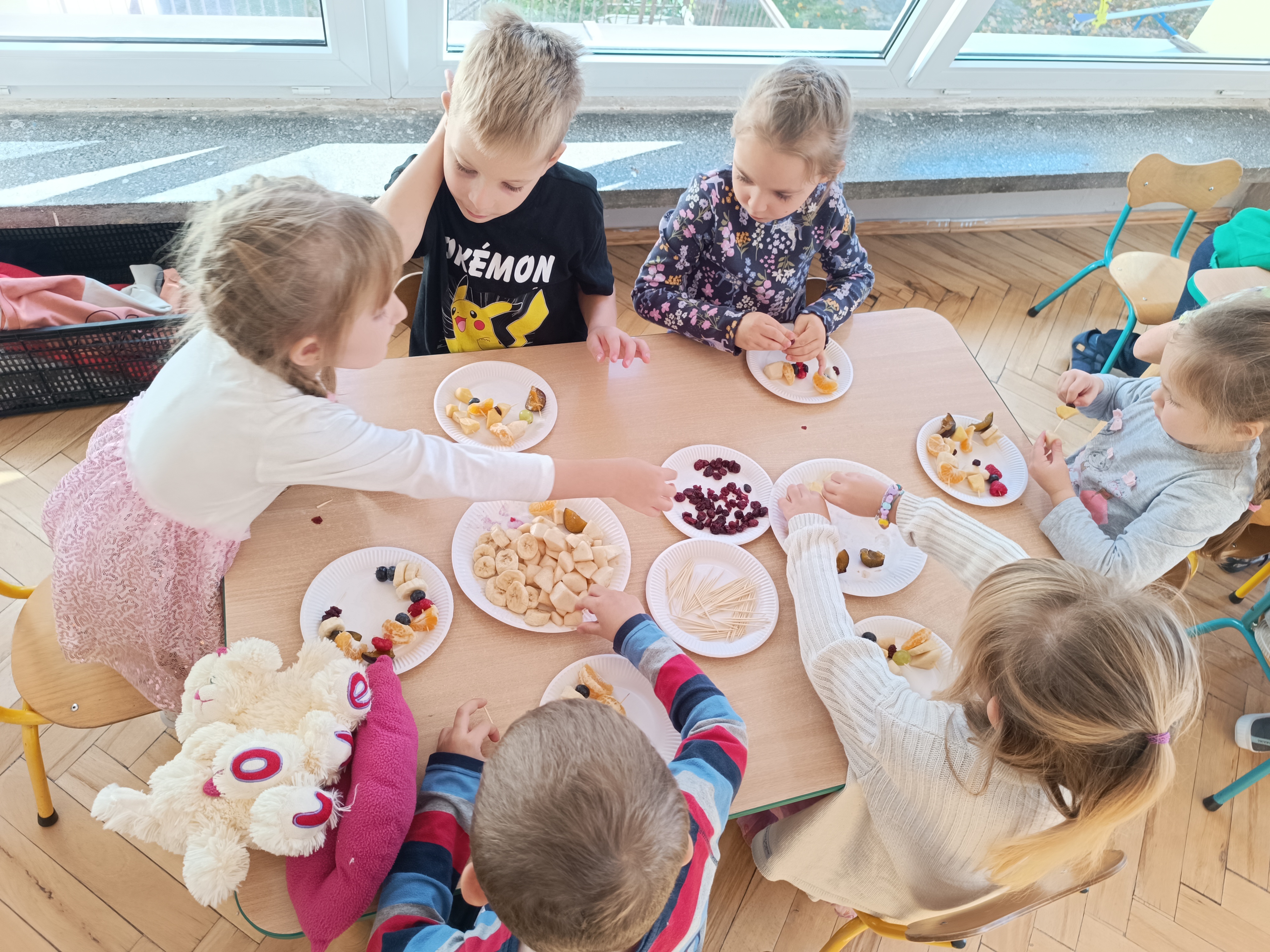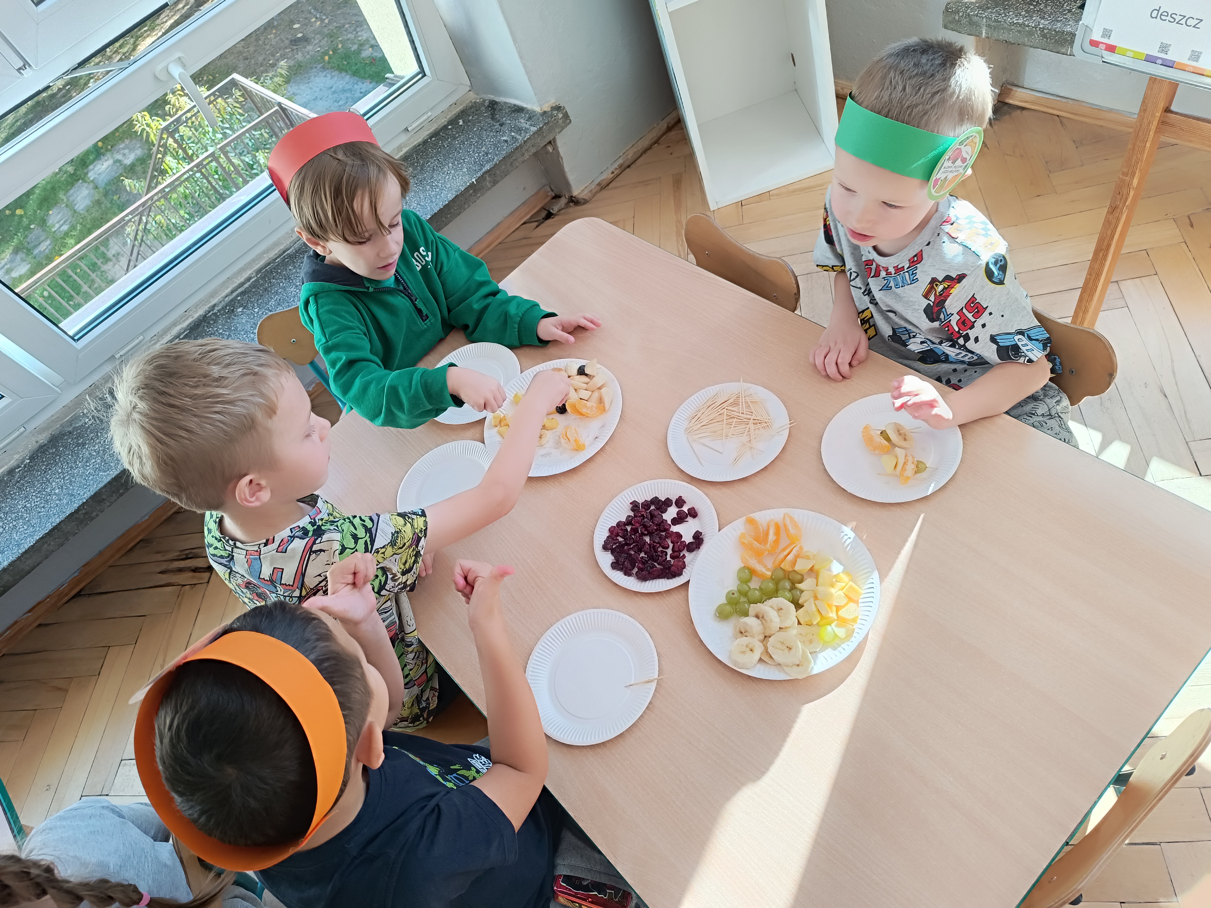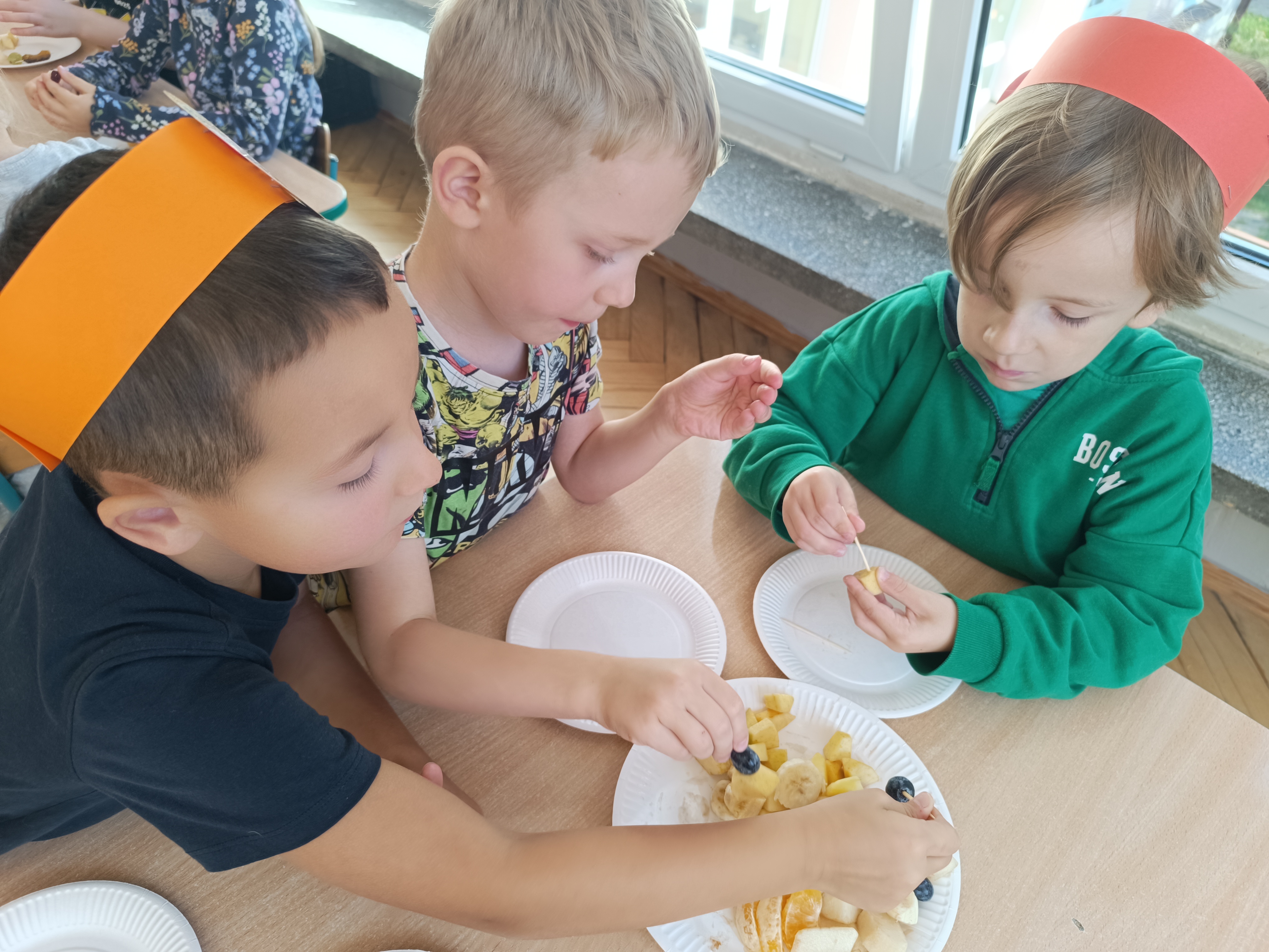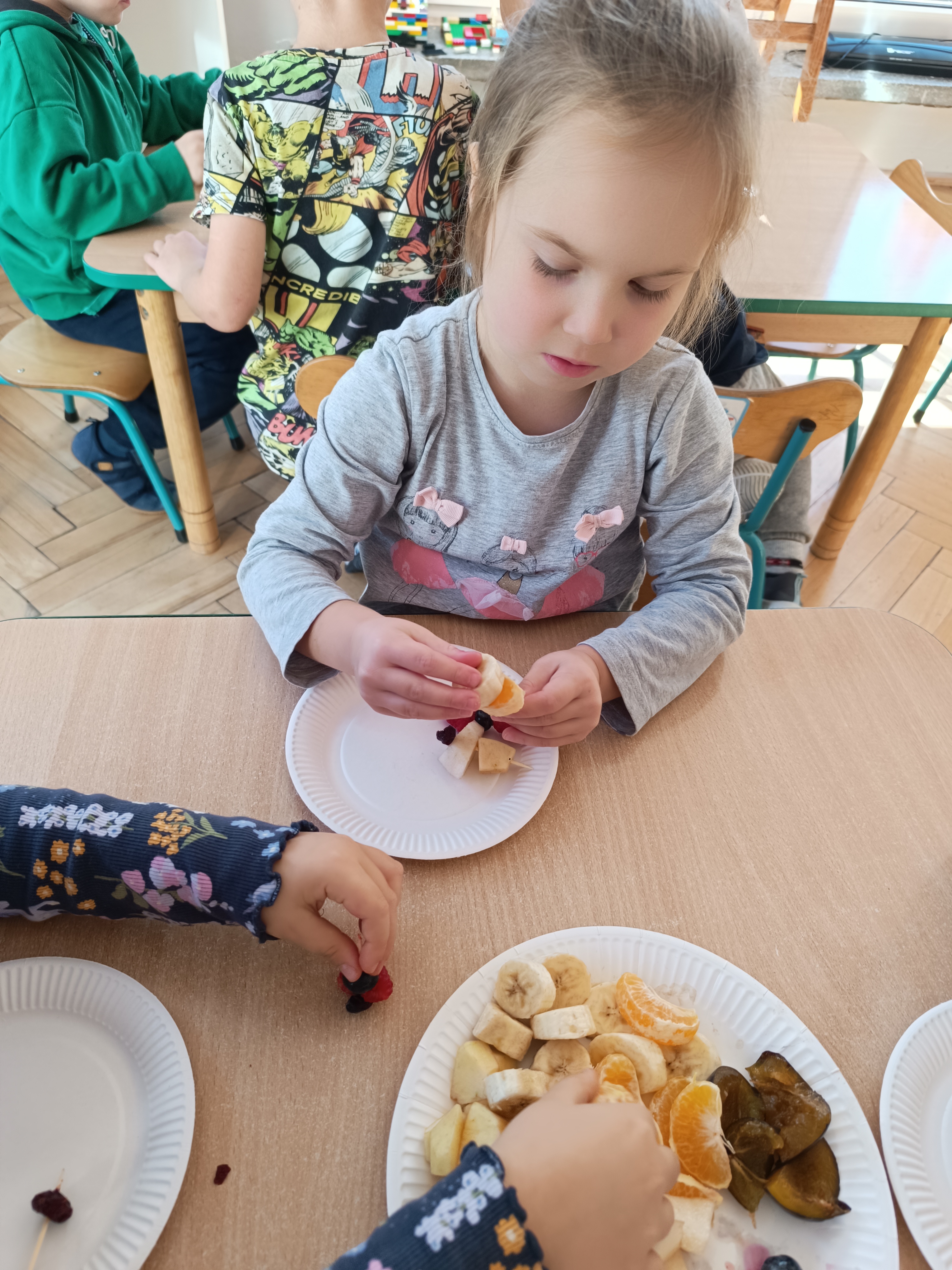 Wspomniane święto było okazją do tworzenia owocowych szaszłyków, koreczków, które dzieci później zjadły z przyjemnością i uśmiechami na twarzy.