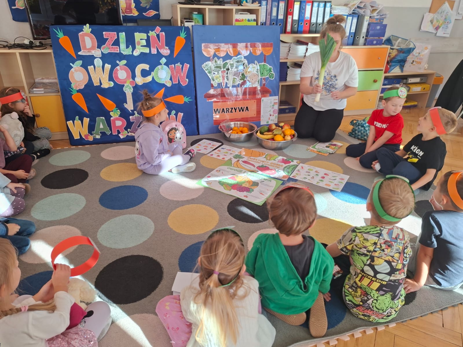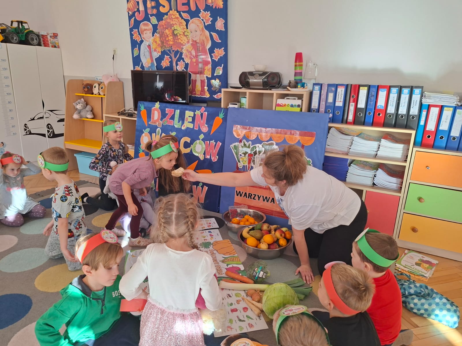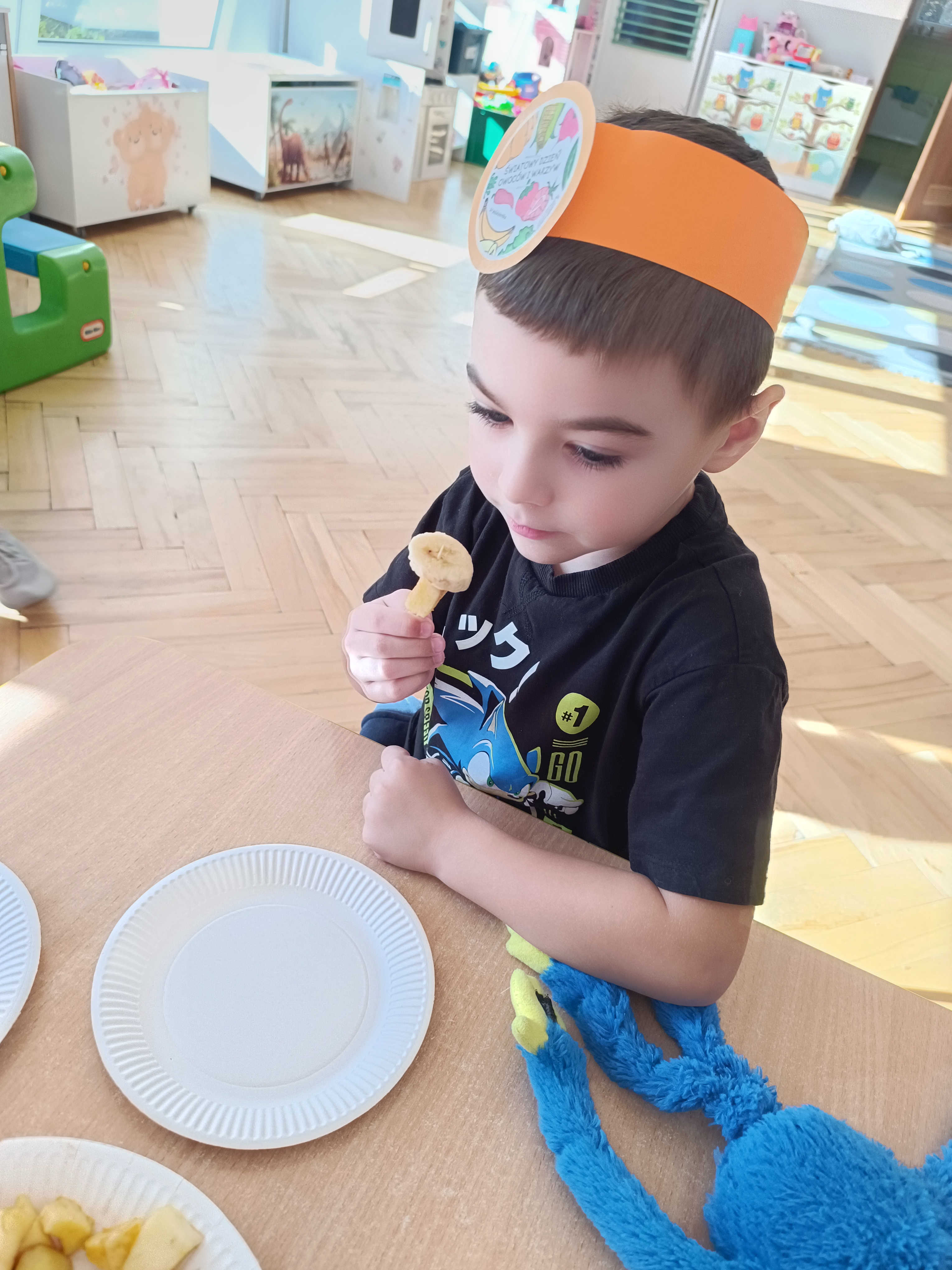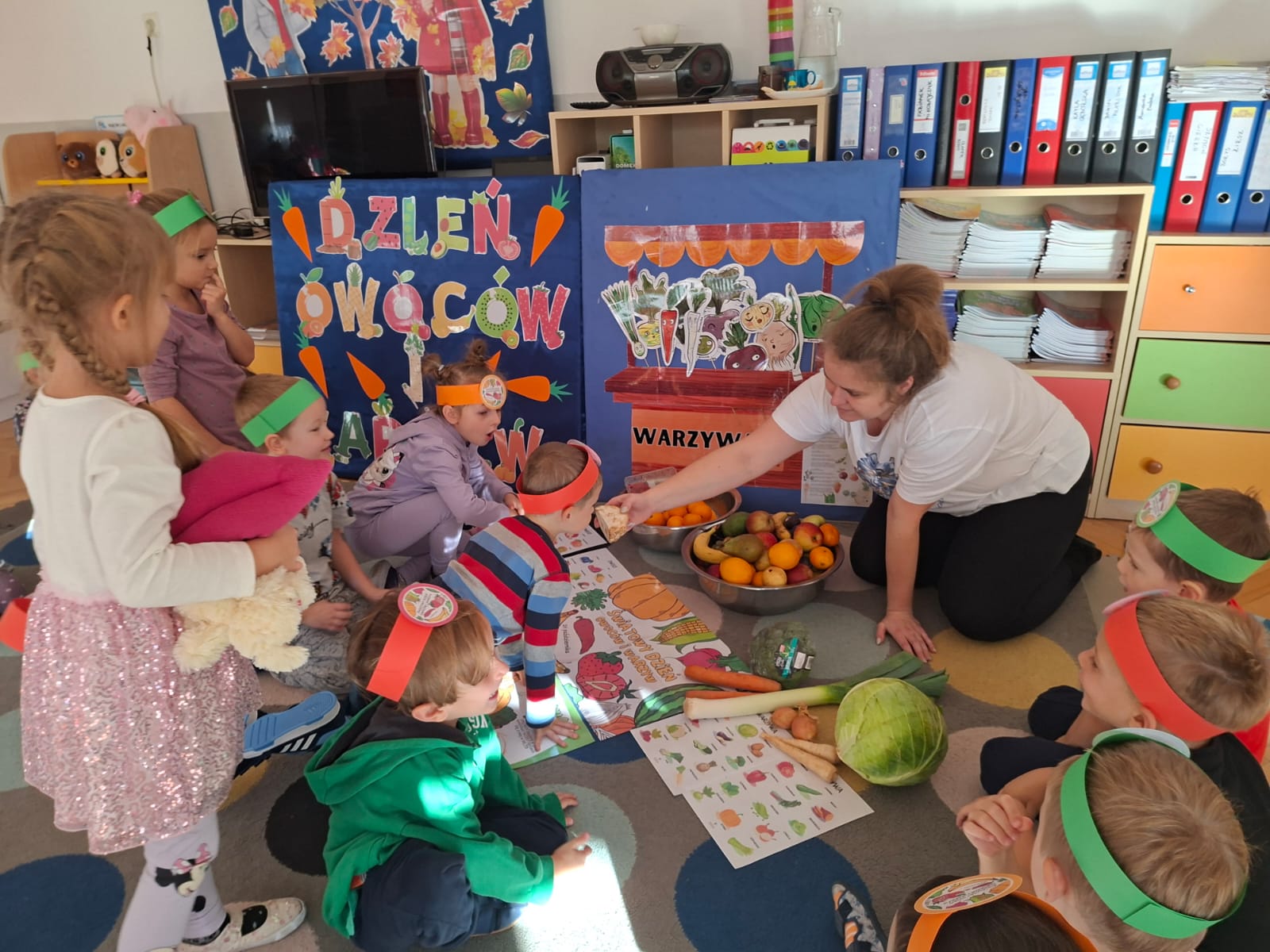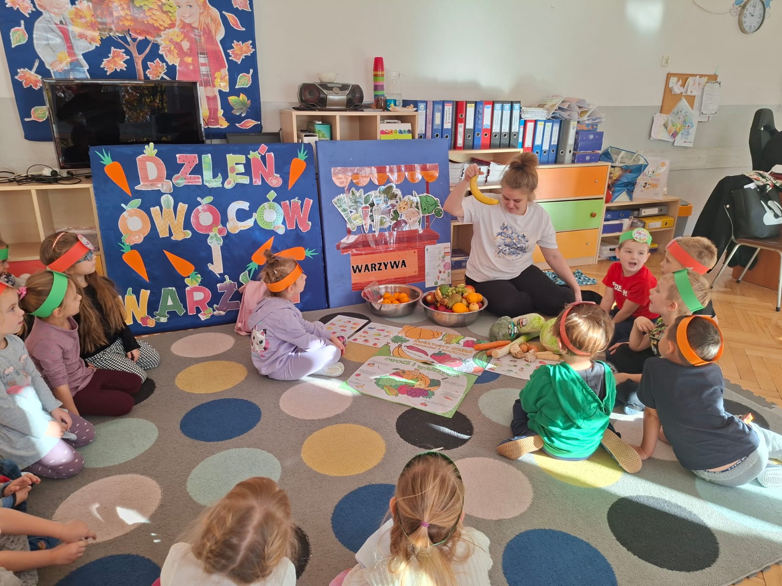 To święto, którego głównym celem jest przypomnienie o tym, jak istotnym elementem diety są warzywa i owoce bogate w minerały, witaminy i błonnik. W związku z tym w naszej grupie zostały przeprowadzone zajęcia promujące zdrowe nawyki żywieniowe, które należy kształtować już od najmłodszych lat. Dzieci porównywały wygląd, kolory, smaki i kształty wybranych warzyw i owoców.