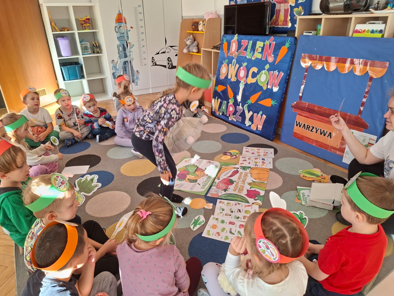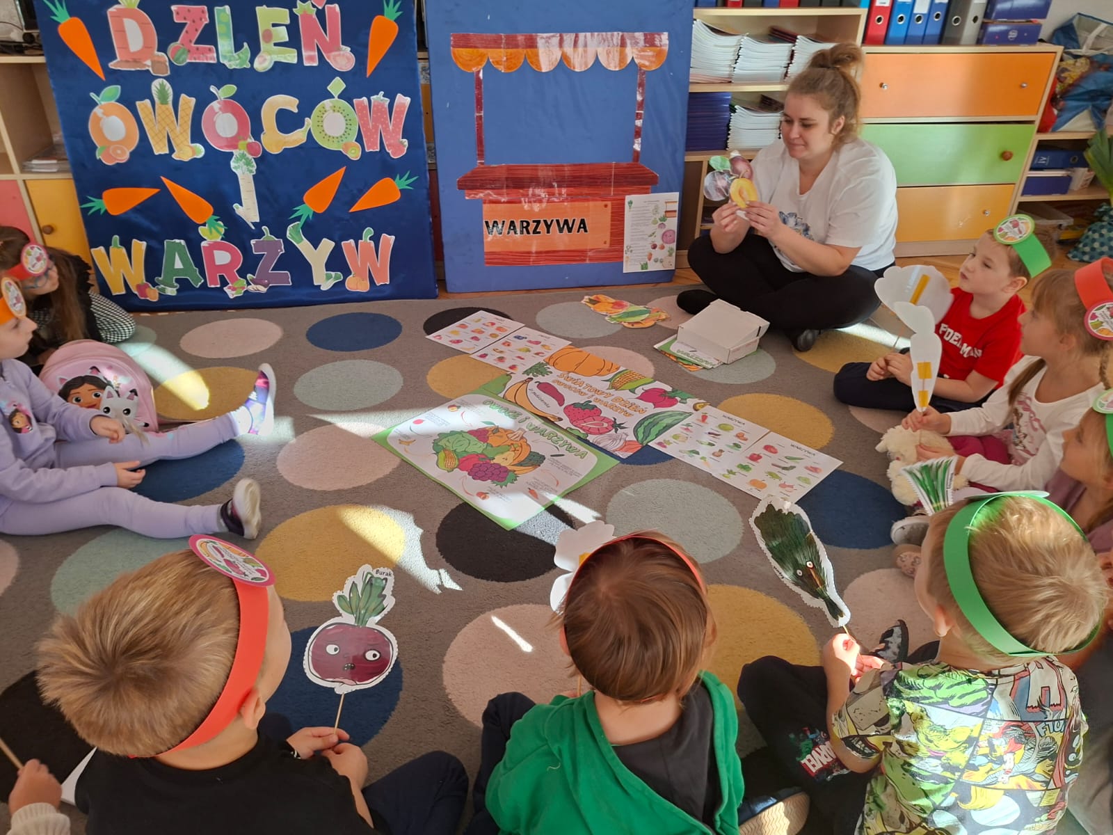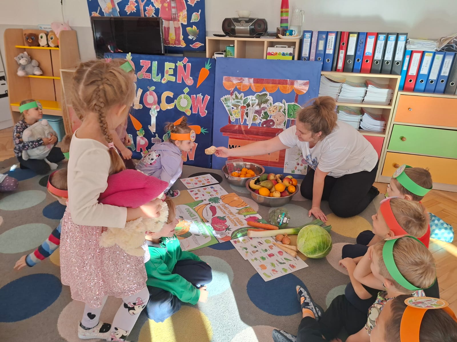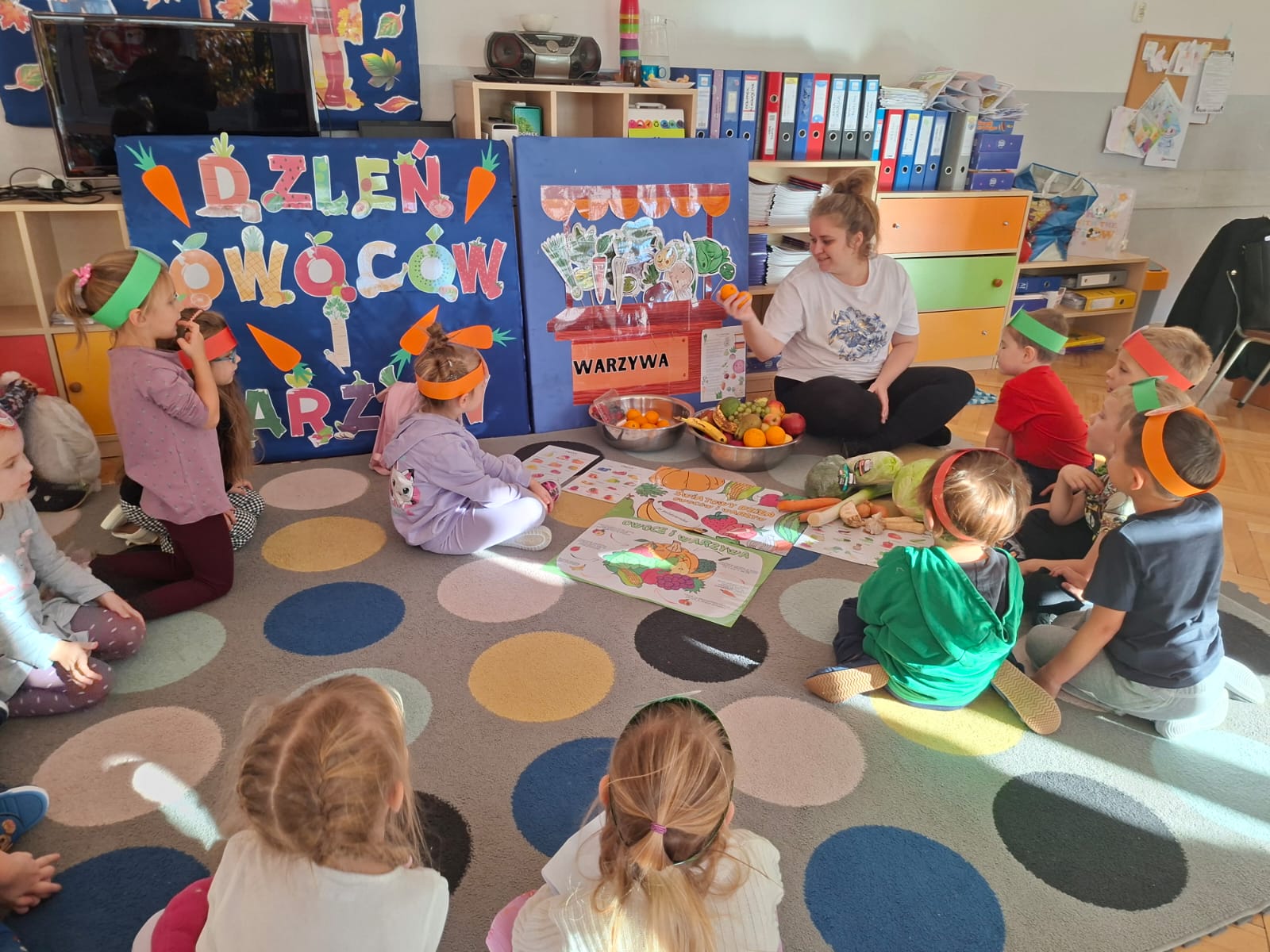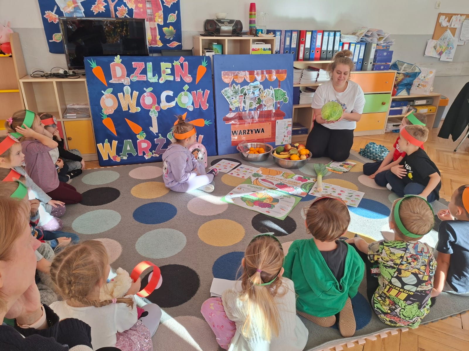 To święto, którego głównym celem jest przypomnienie o tym, jak istotnym elementem diety są warzywa i owoce bogate w minerały, witaminy i błonnik. W związku z tym w naszej grupie zostały przeprowadzone zajęcia promujące zdrowe nawyki żywieniowe, które należy kształtować już od najmłodszych lat. Dzieci porównywały wygląd, kolory, smaki i kształty wybranych warzyw i owoców.