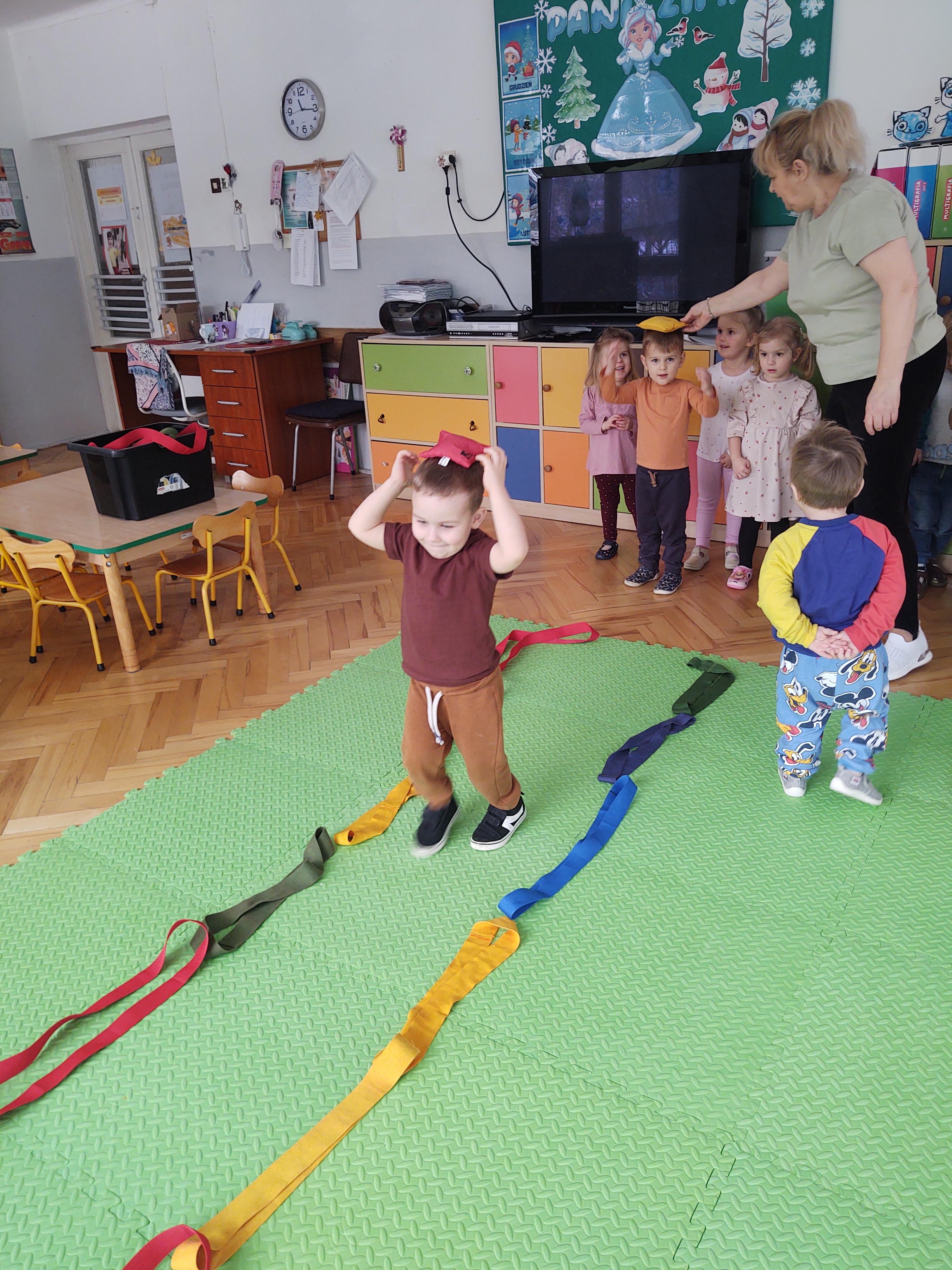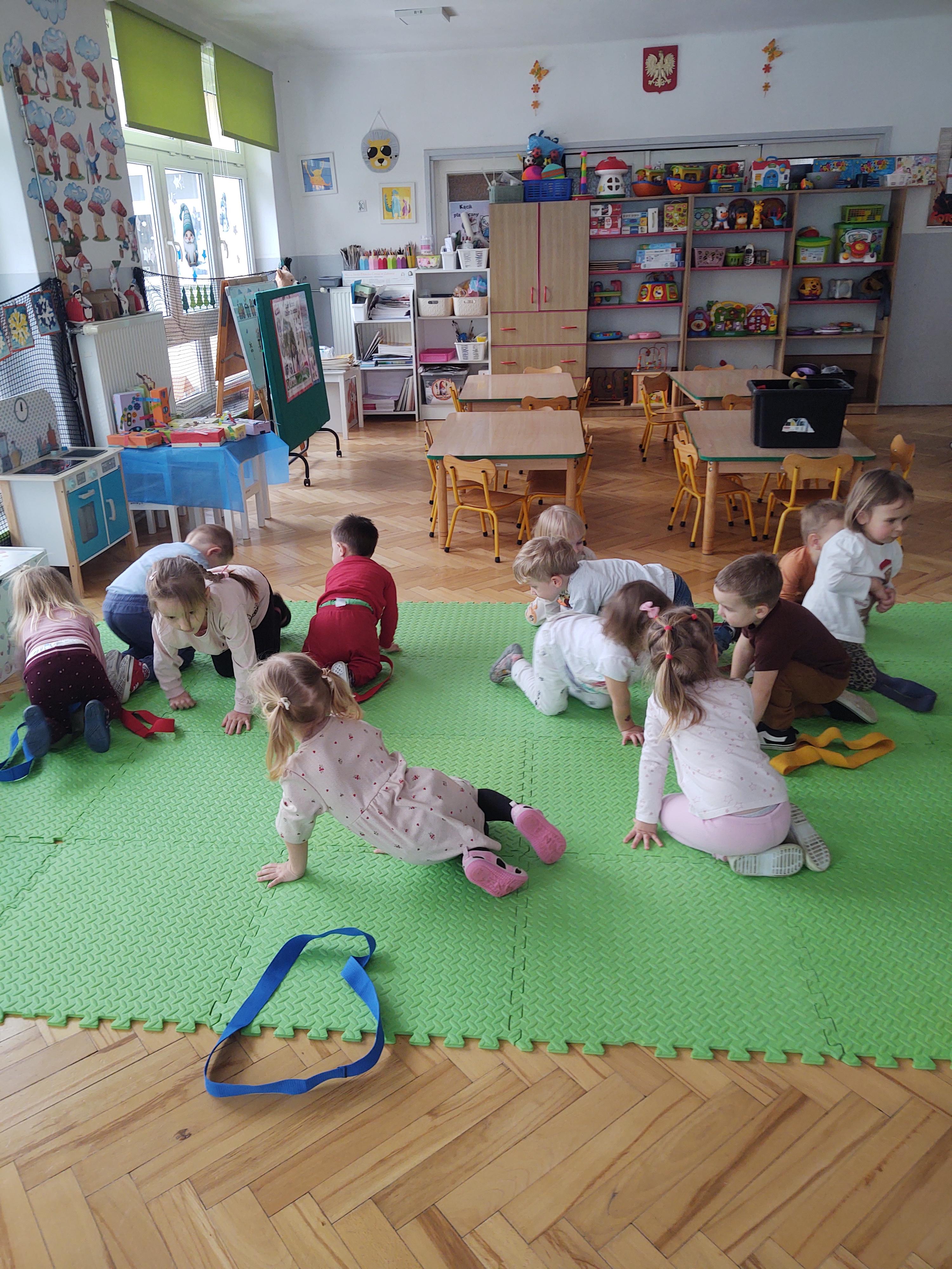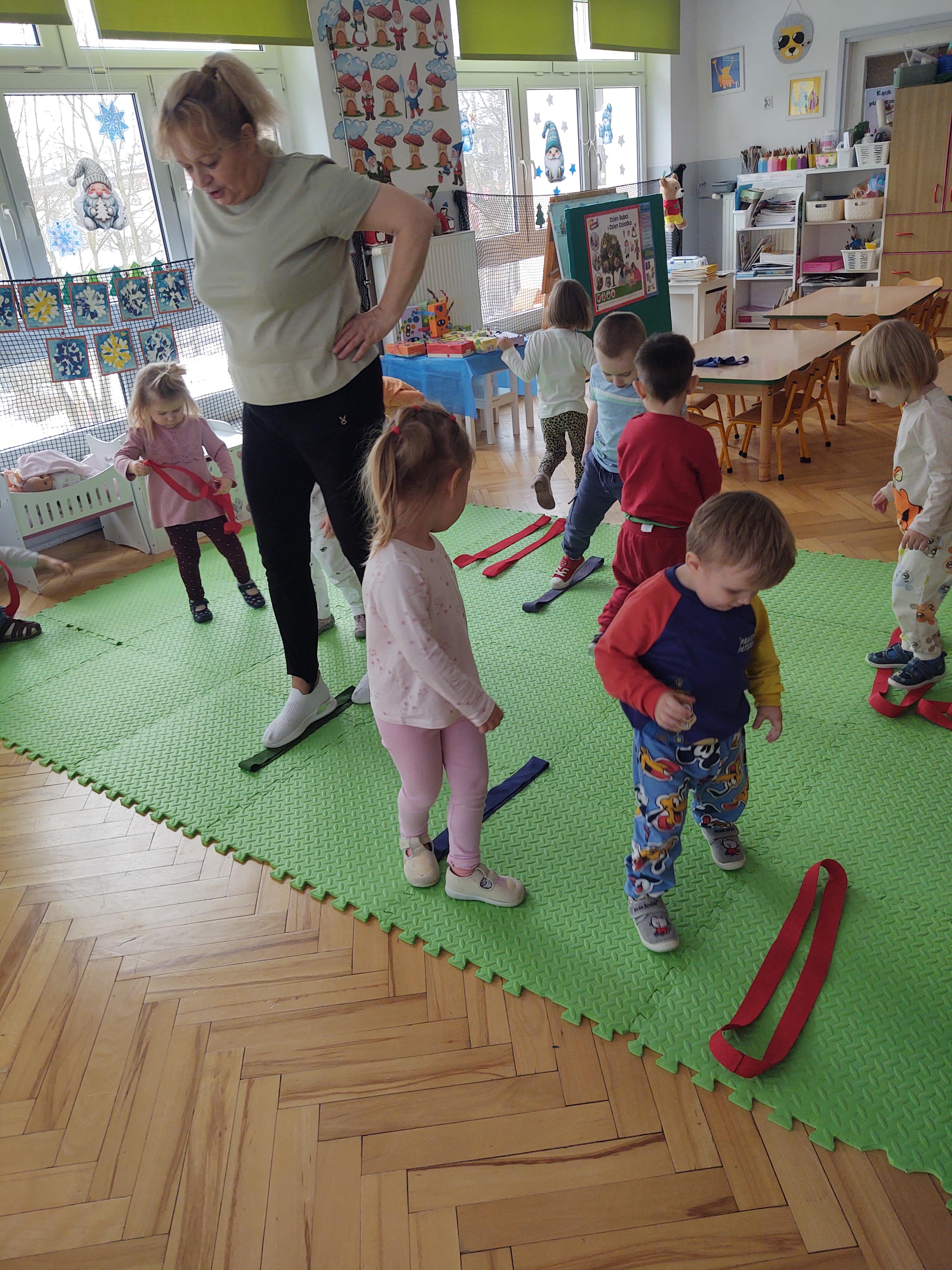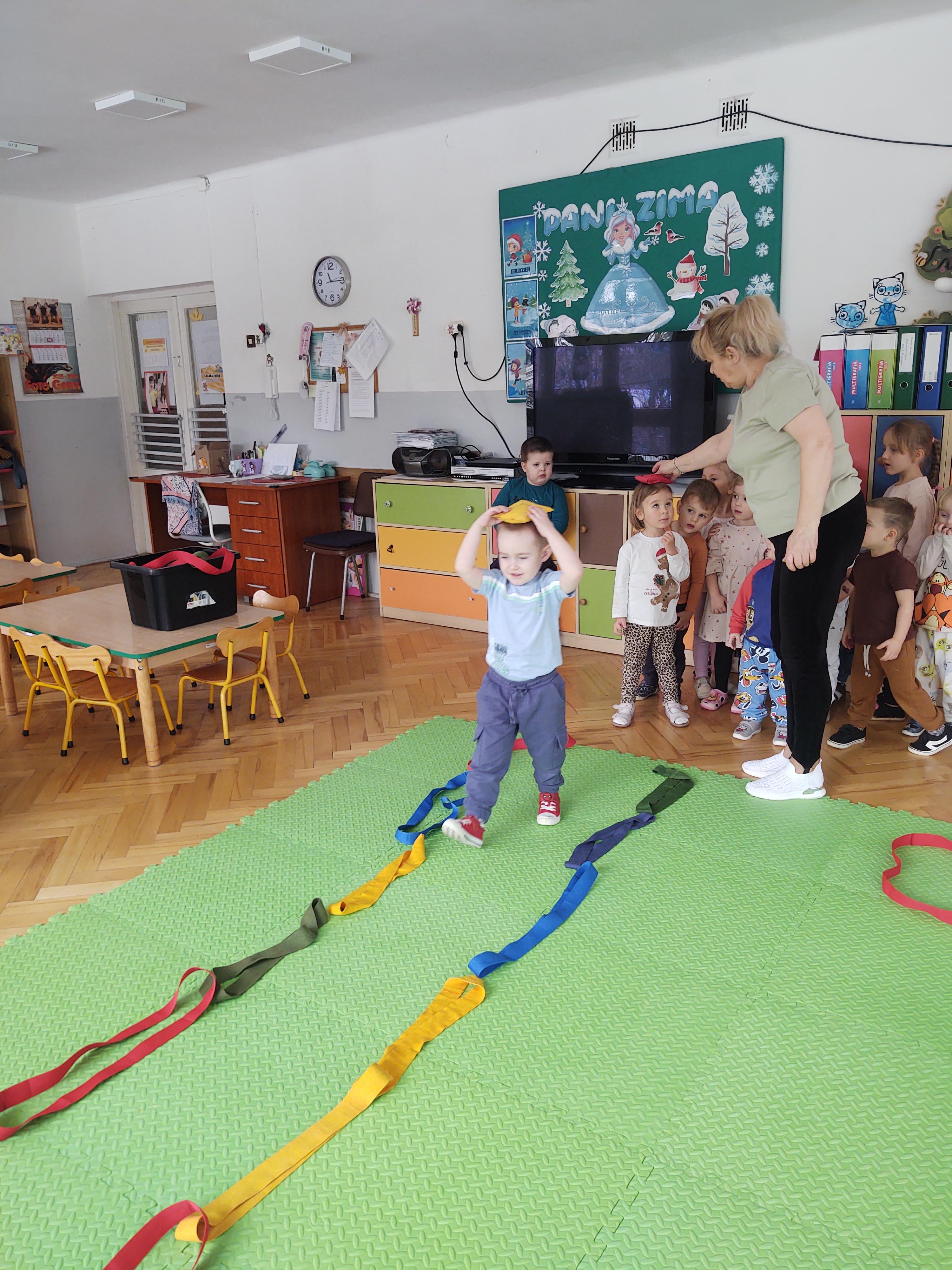 Zabawy z szarfami sprzyjały także rozwijaniu kreatywności – dzieci proponowały własne sposoby wykorzystania przyborów, tworzyły „tory przeszkód” oraz wymyślały nowe formy aktywności. Dzięki temu zajęcia miały nie tylko charakter ruchowy, ale również twórczy i integracyjny.