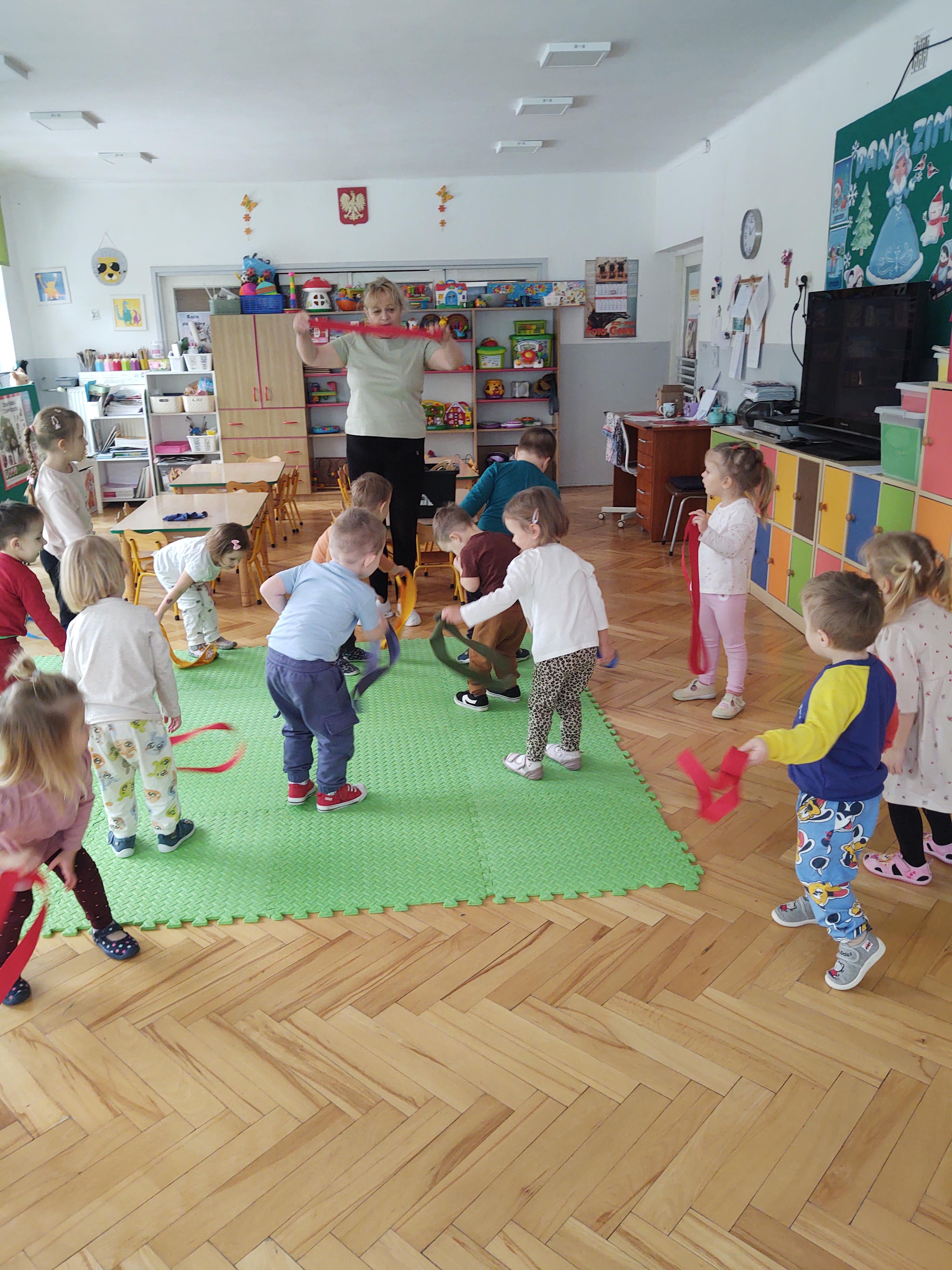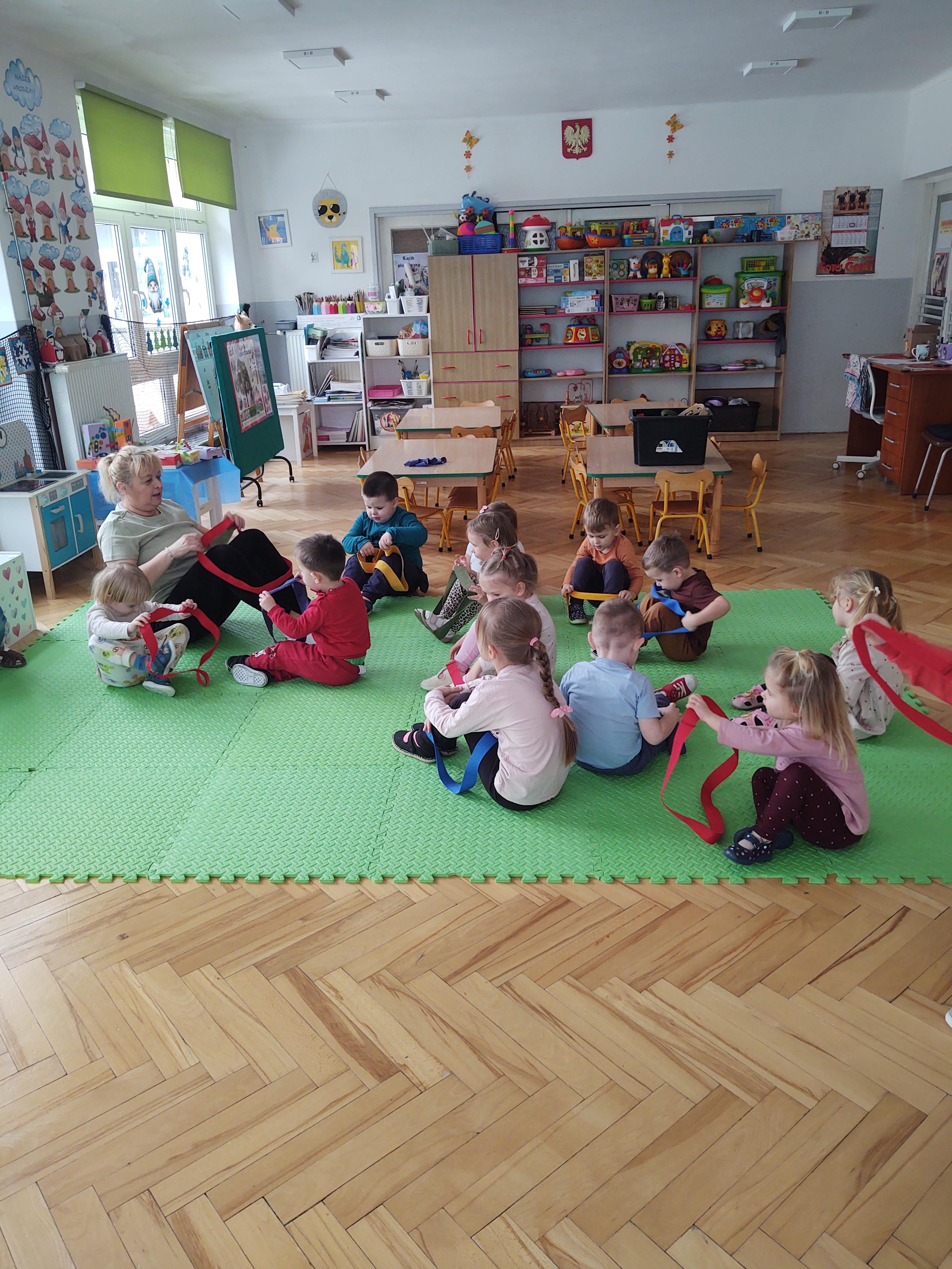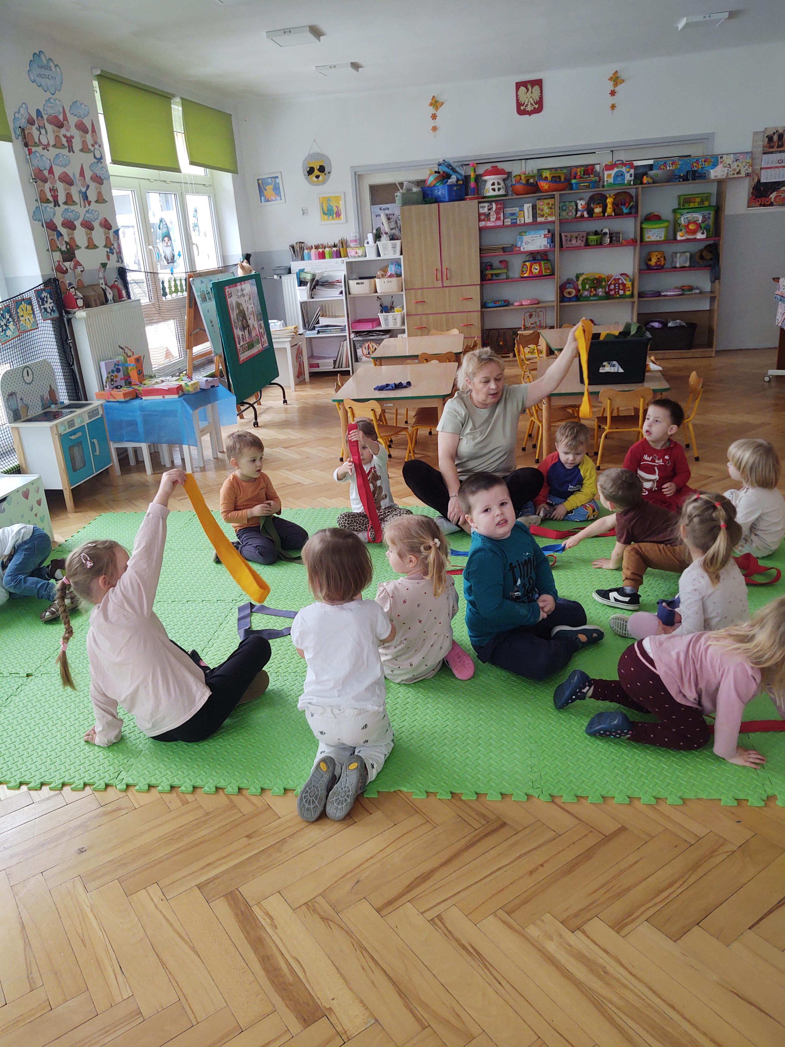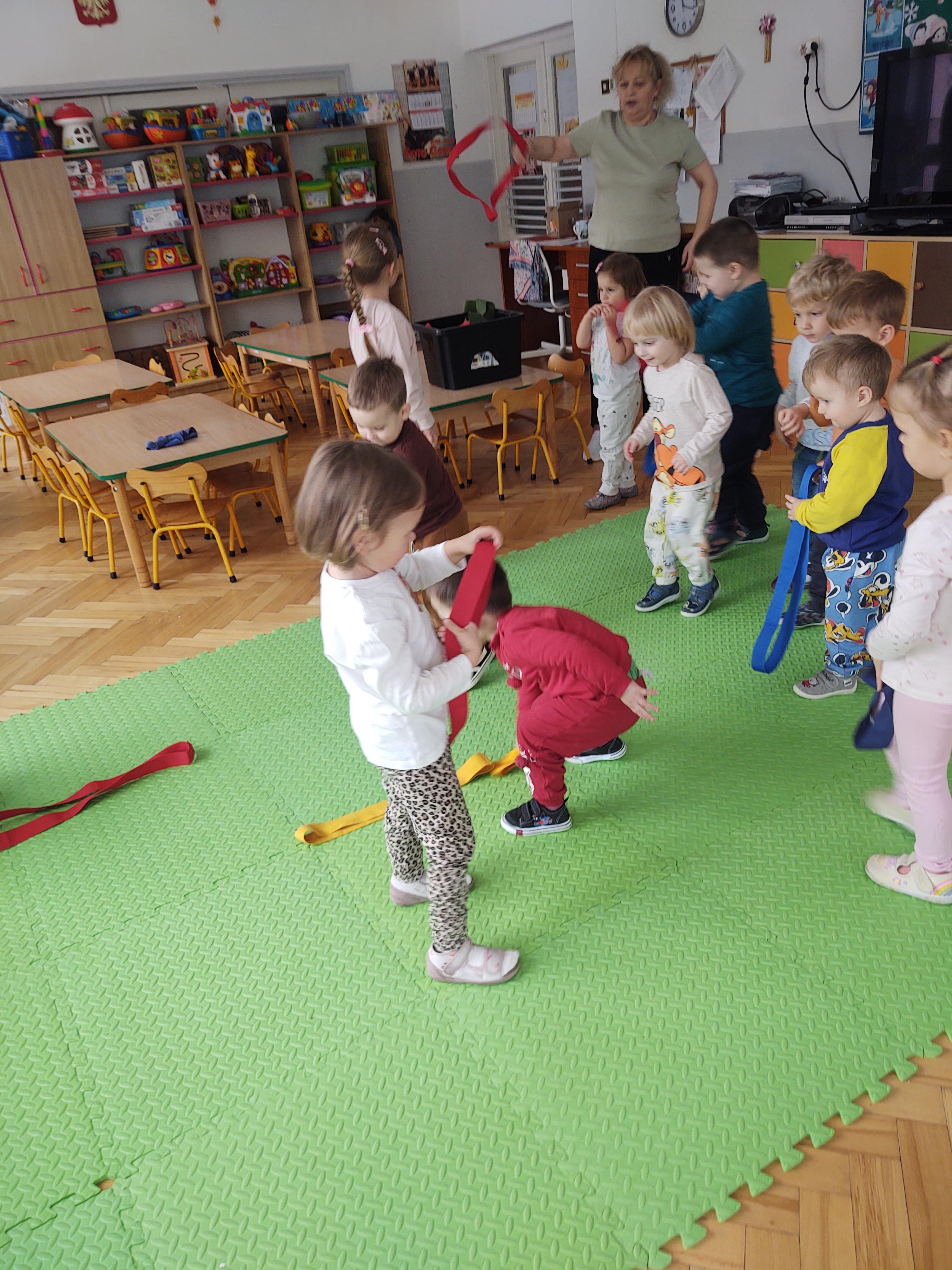 W ramach programu edukacyjnego „W zdrowym ciele zdrowy duch…” zrealizowaliśmy kolejne zajęcia ruchowe z wykorzystaniem szarf gimnastycznych.