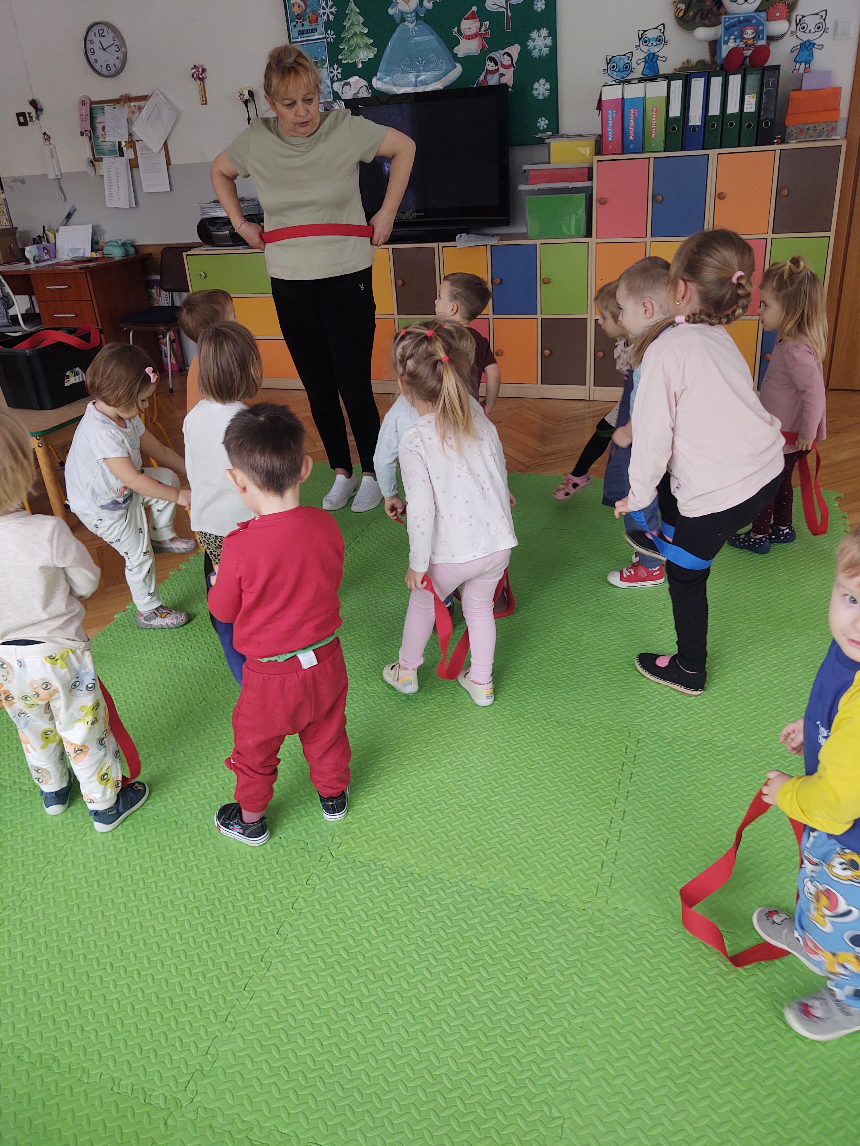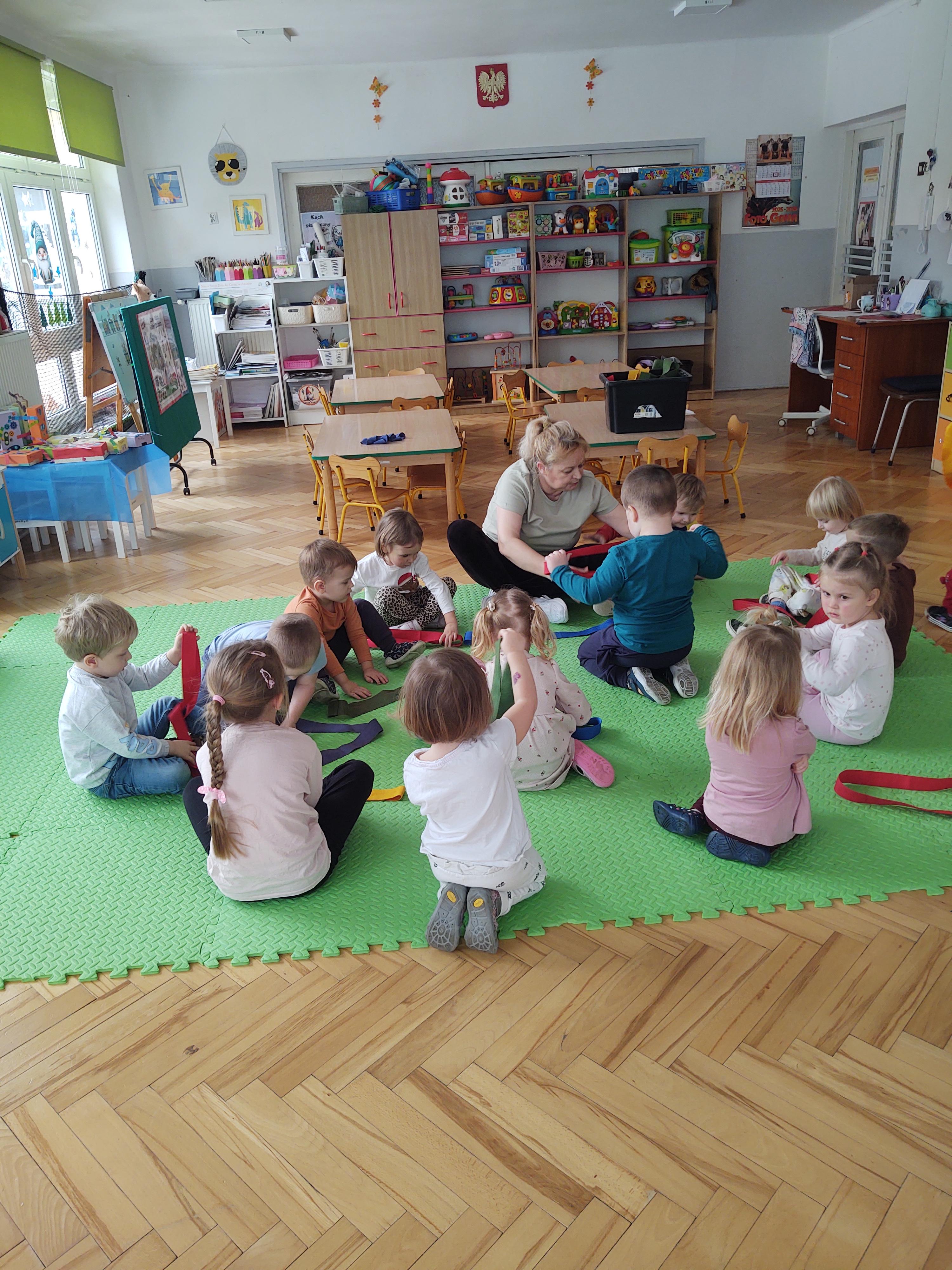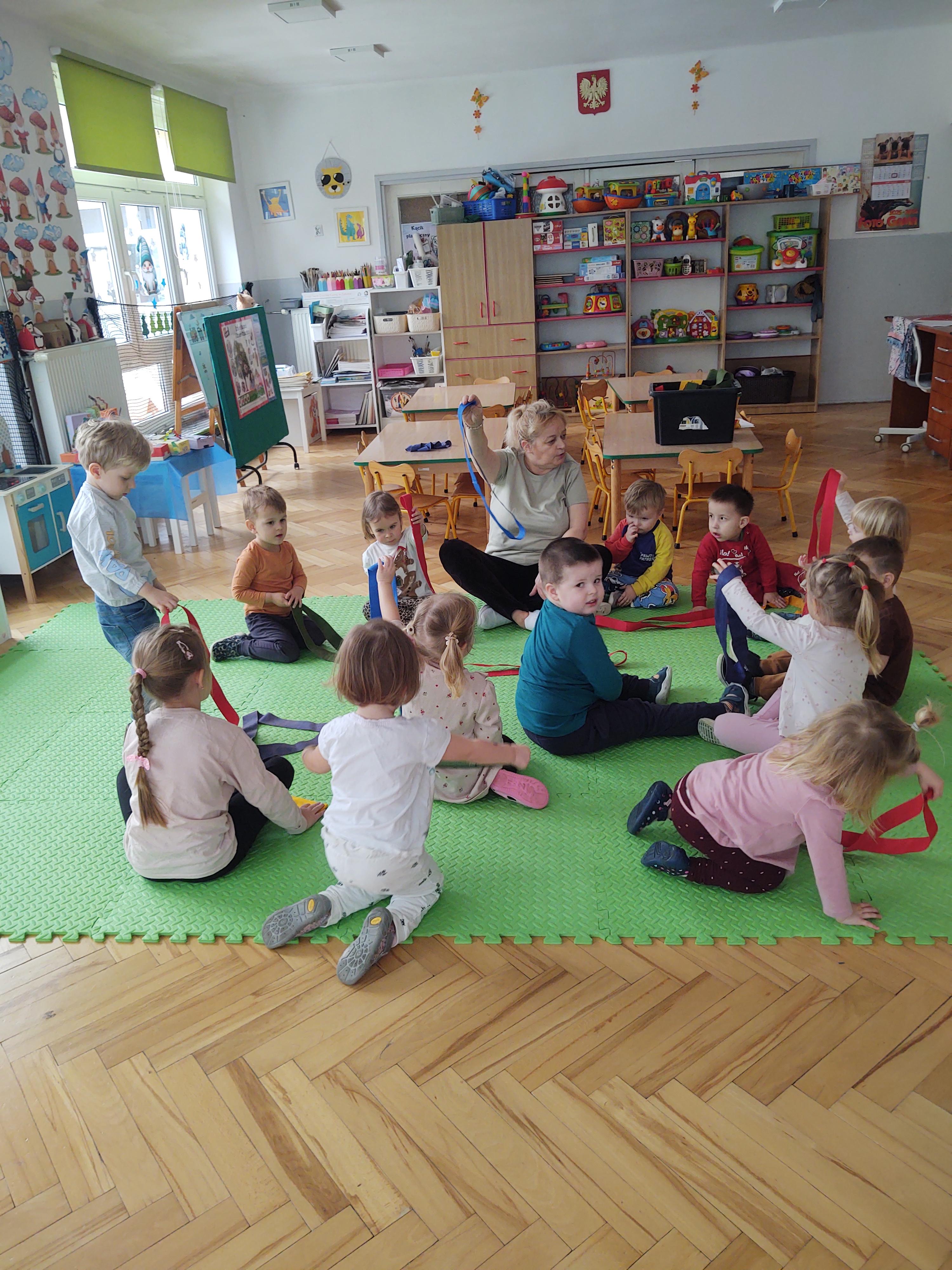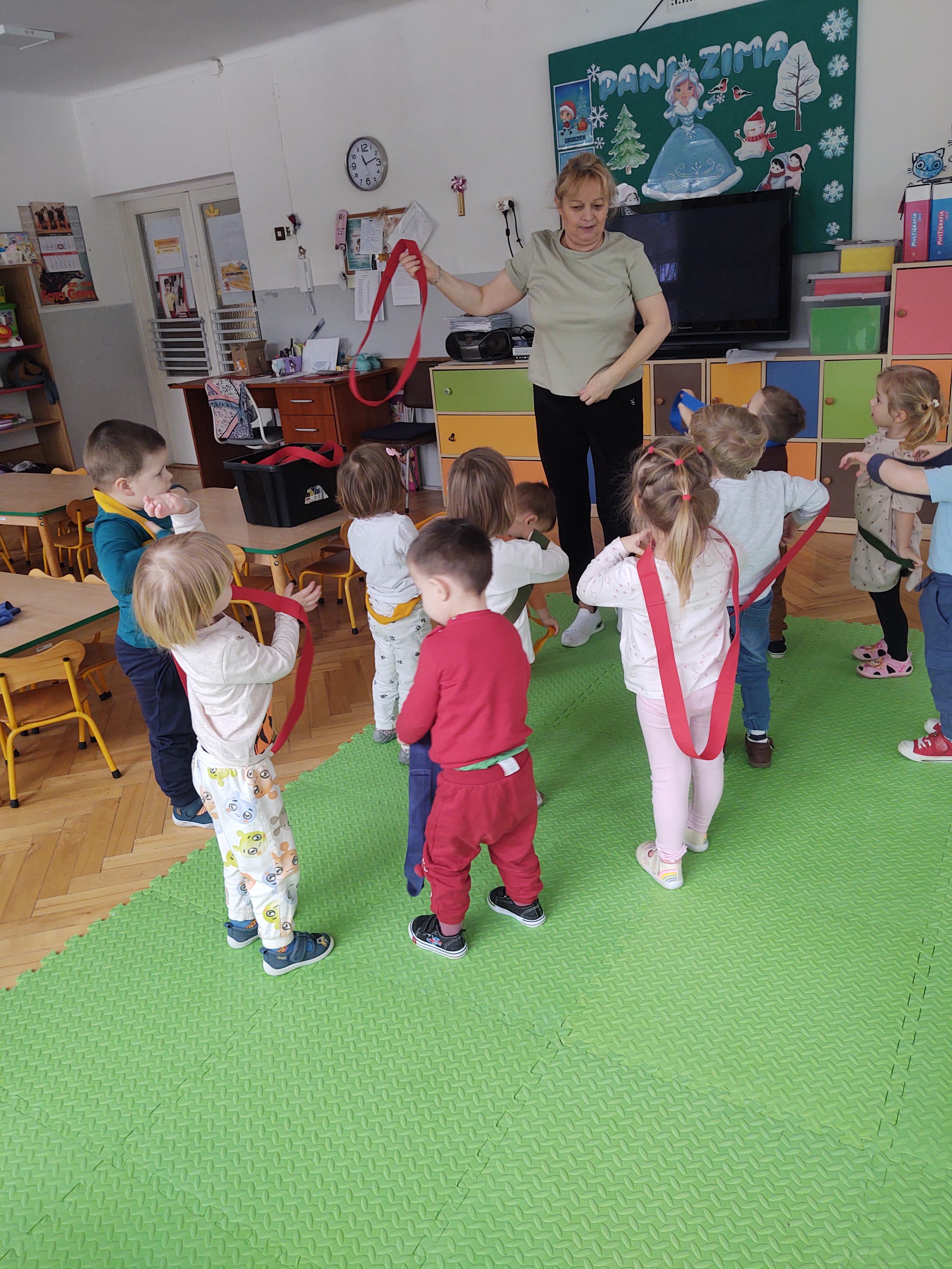W ramach programu edukacyjnego „W zdrowym ciele zdrowy duch…” zrealizowaliśmy kolejne zajęcia ruchowe z wykorzystaniem szarf gimnastycznych.