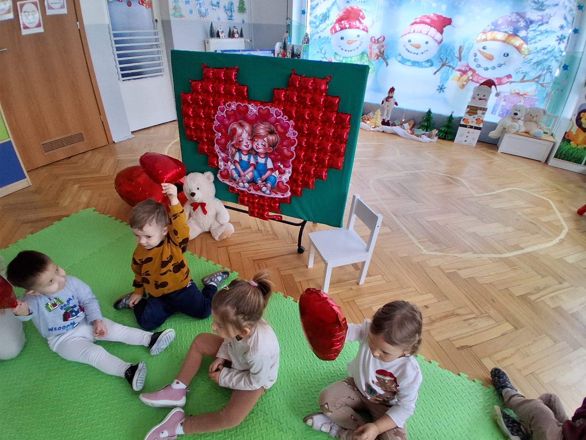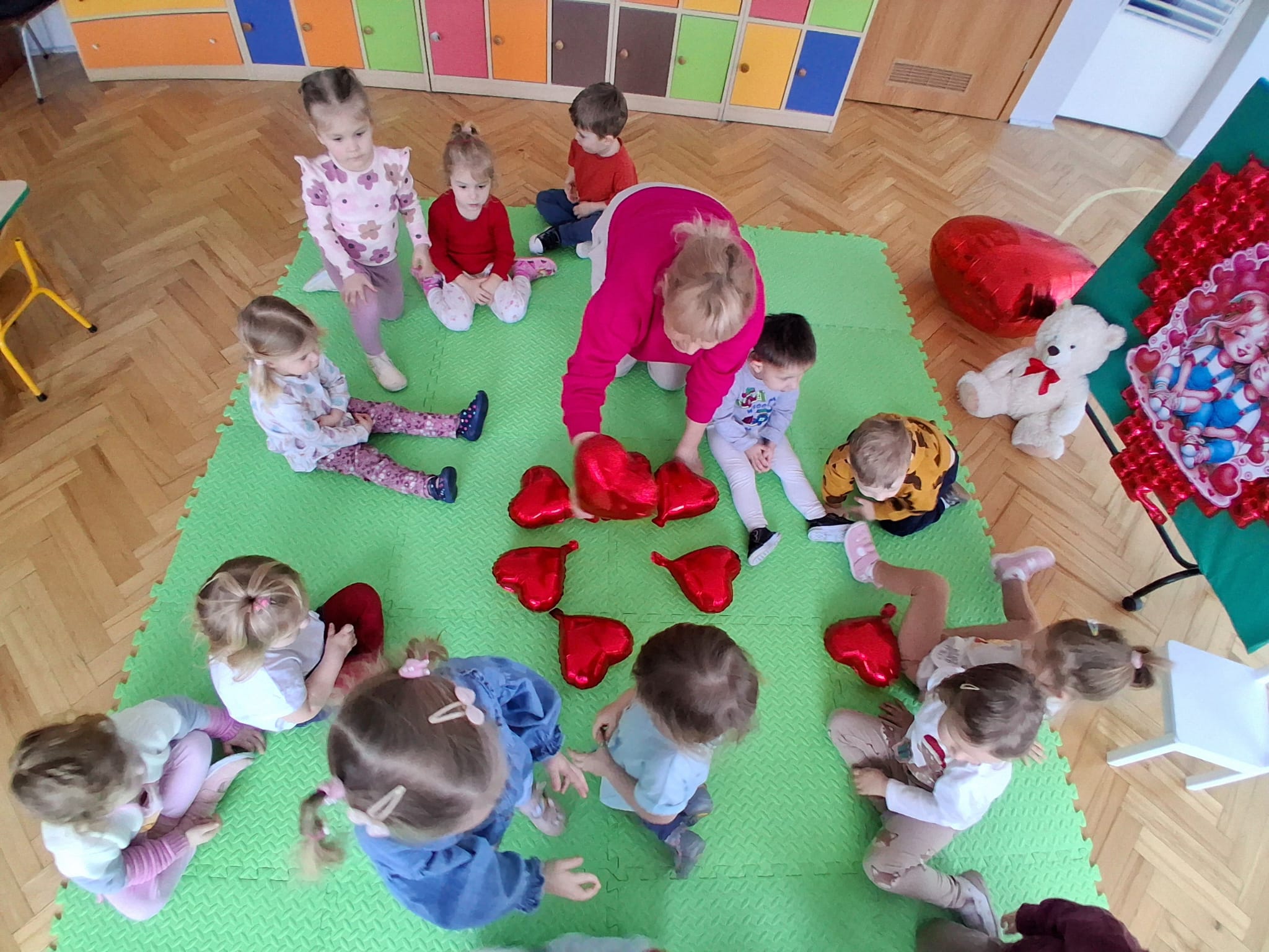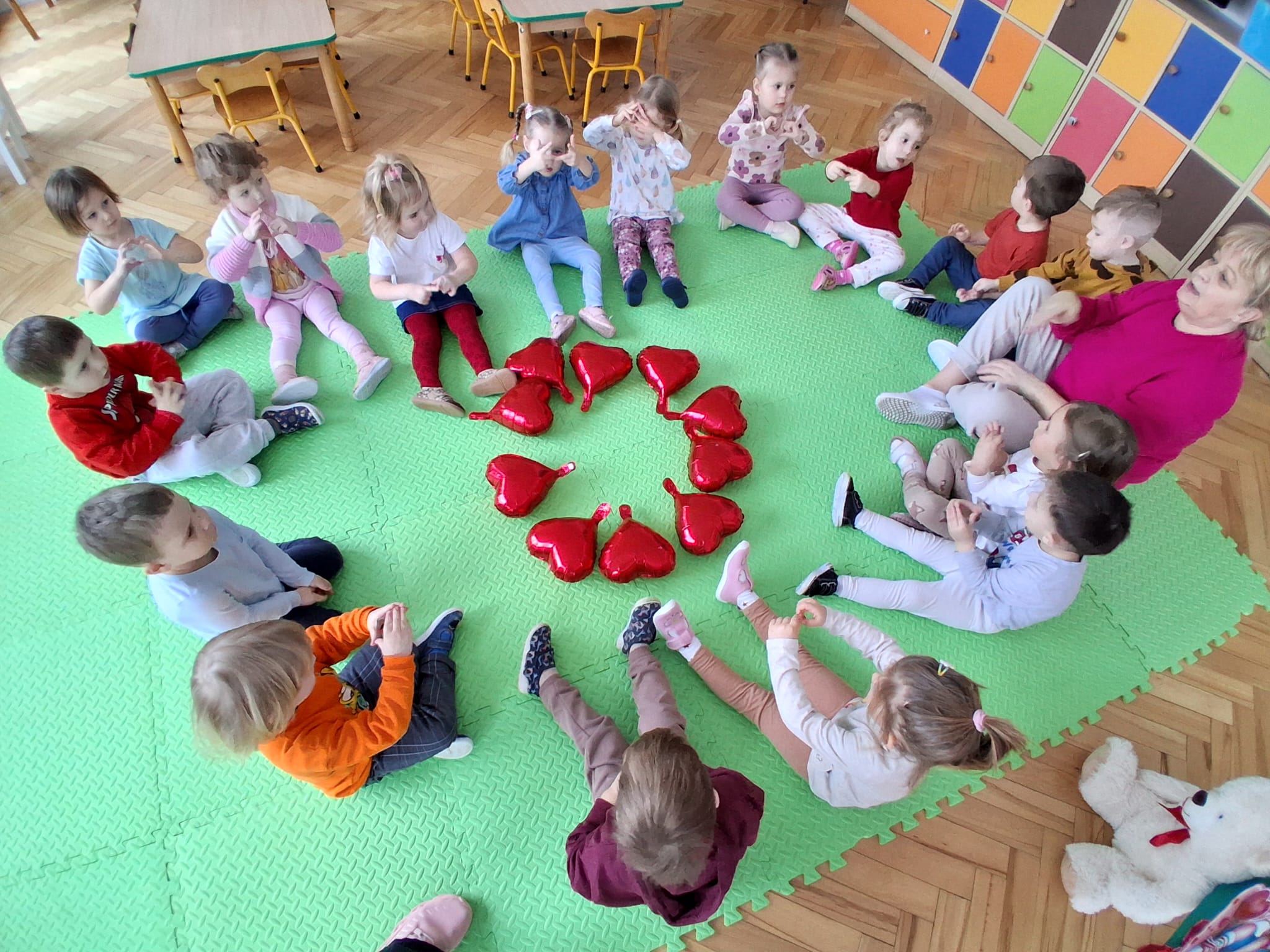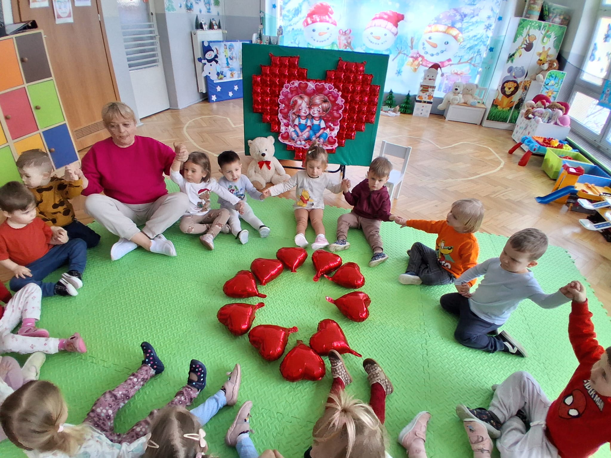 Realizacja programu edukacyjnego „Serca dobrych gestów” w grupie najmłodszych odbyła się w nawiązaniu do święta Walentynki, które stało się okazją do rozmów o przyjaźni, życzliwości i okazywaniu sympatii innym.