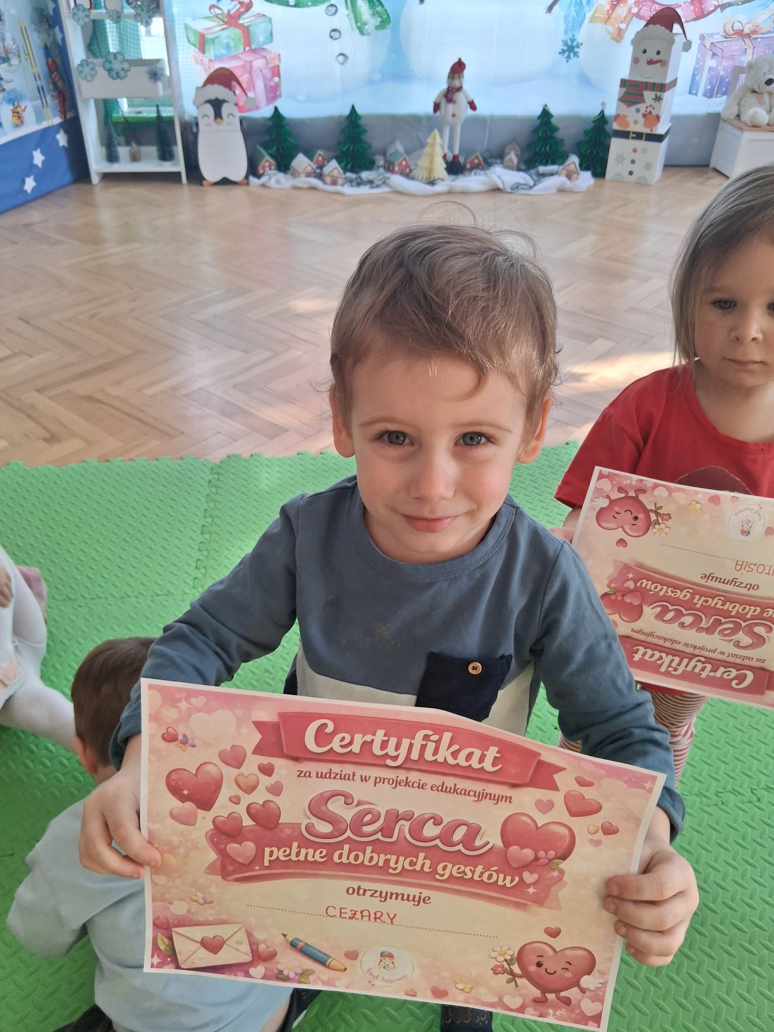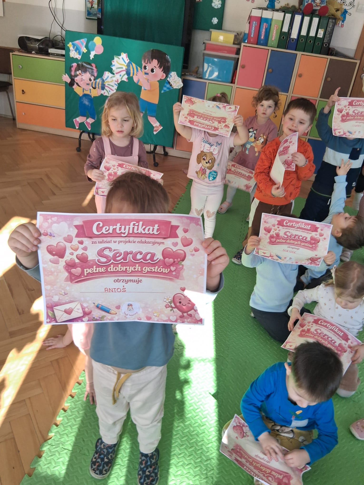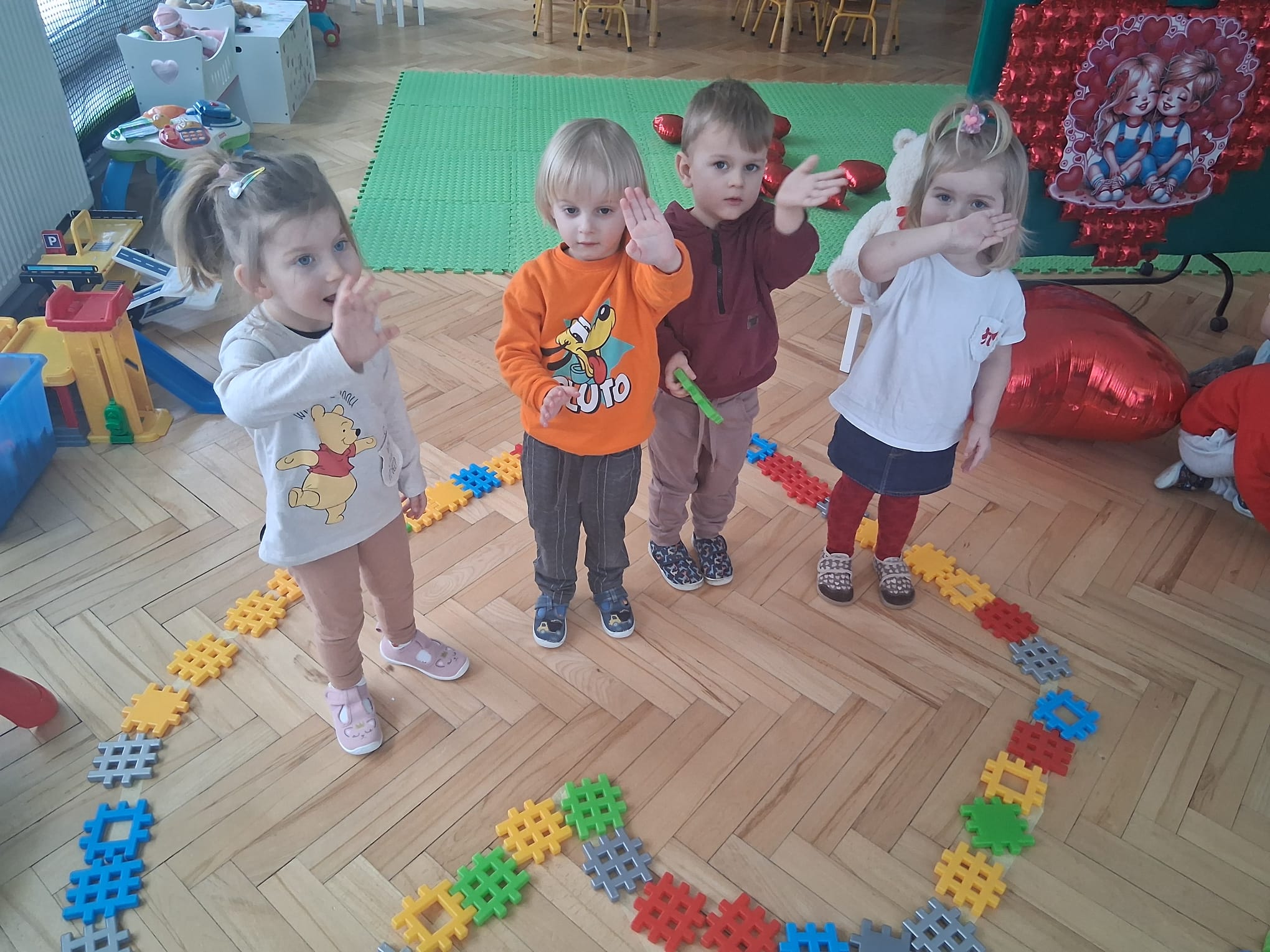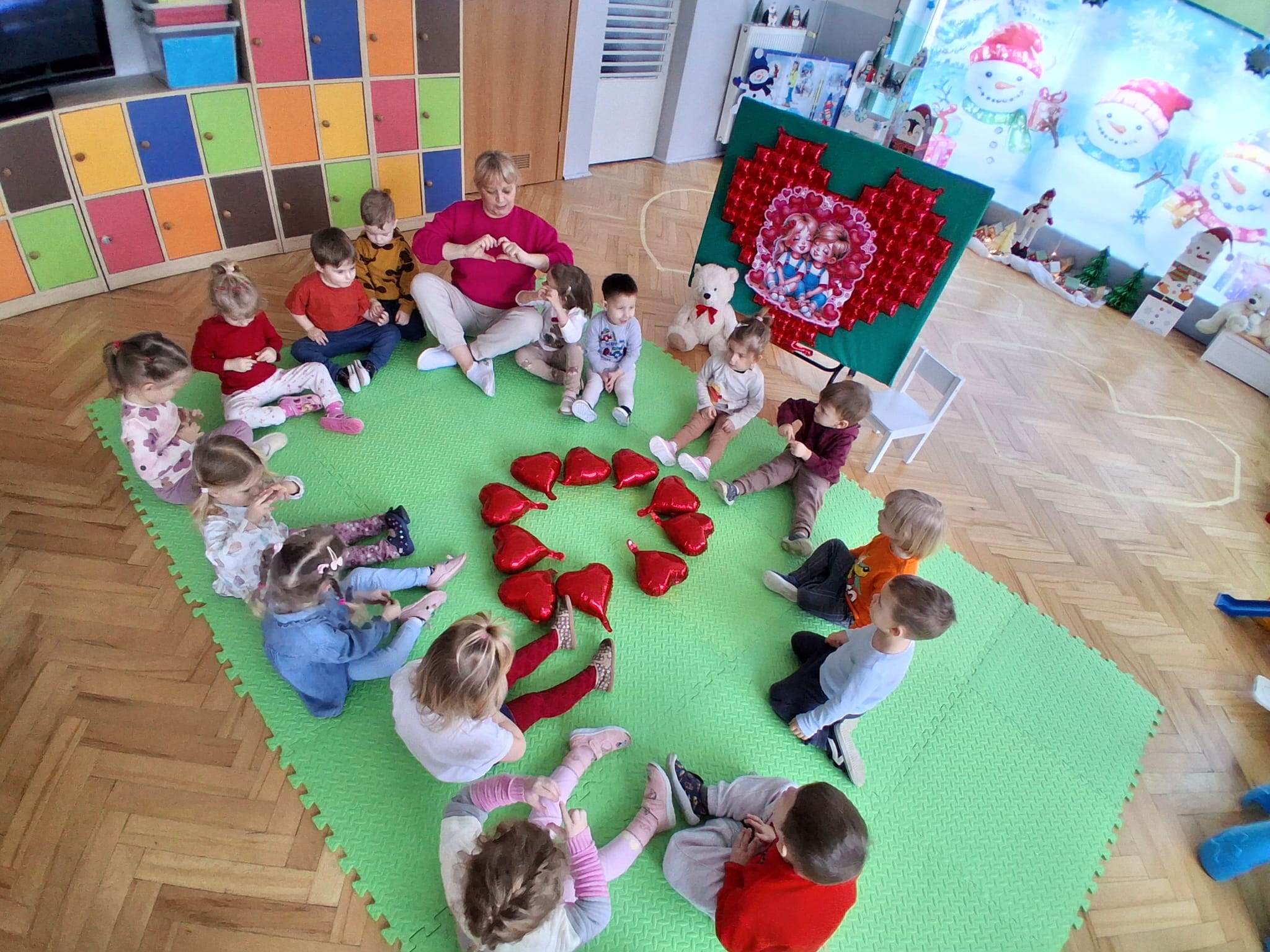 Realizacja programu edukacyjnego „Serca dobrych gestów” w grupie najmłodszych odbyła się w nawiązaniu do święta Walentynki, które stało się okazją do rozmów o przyjaźni, życzliwości i okazywaniu sympatii innym.