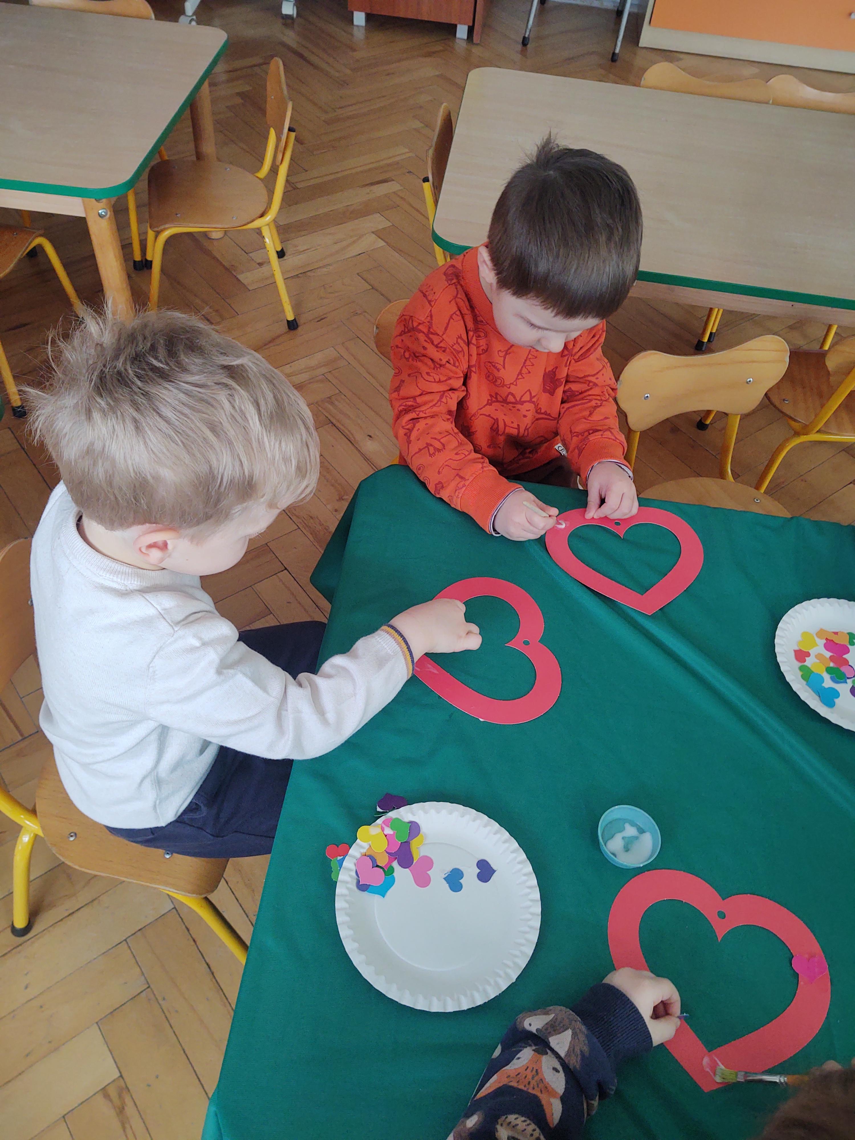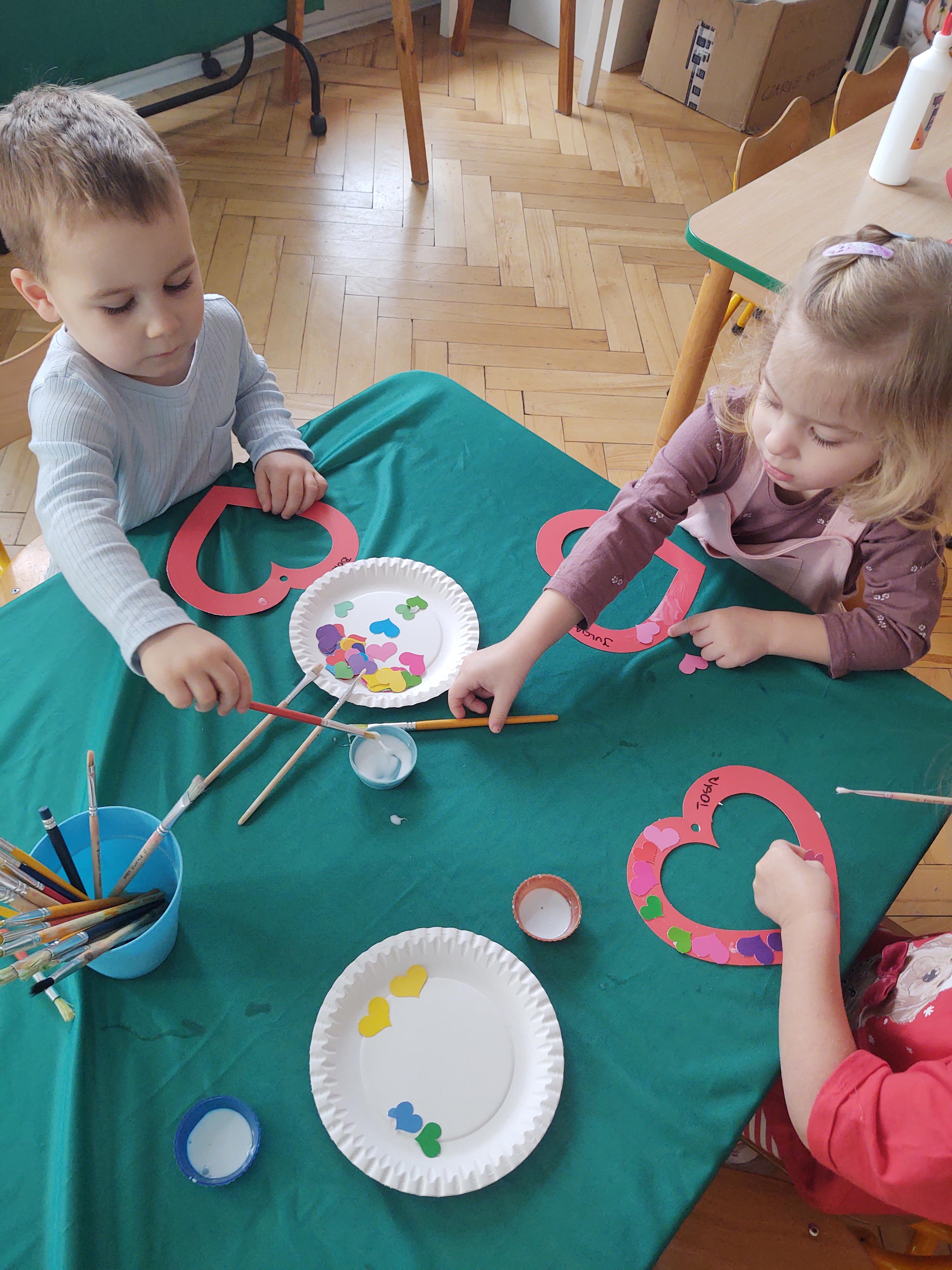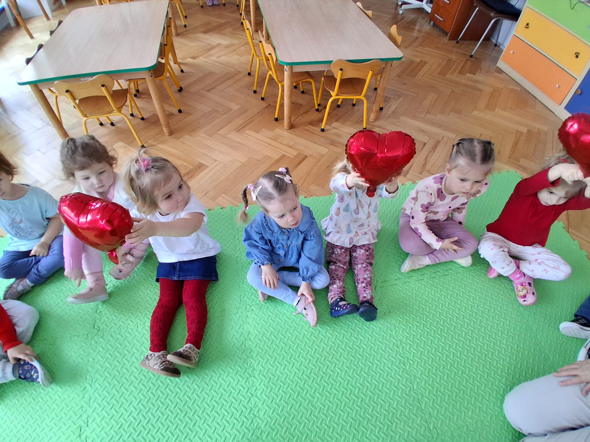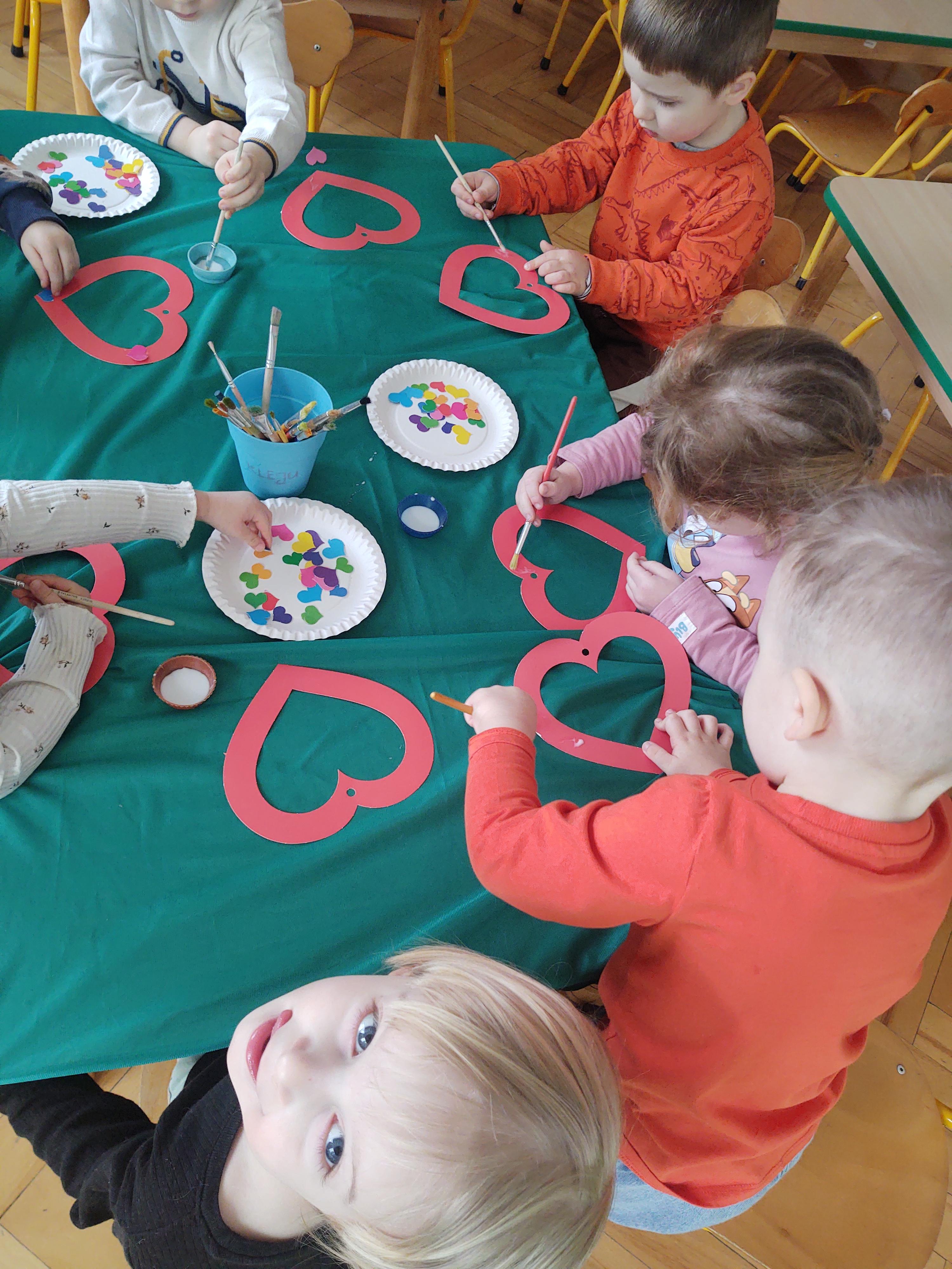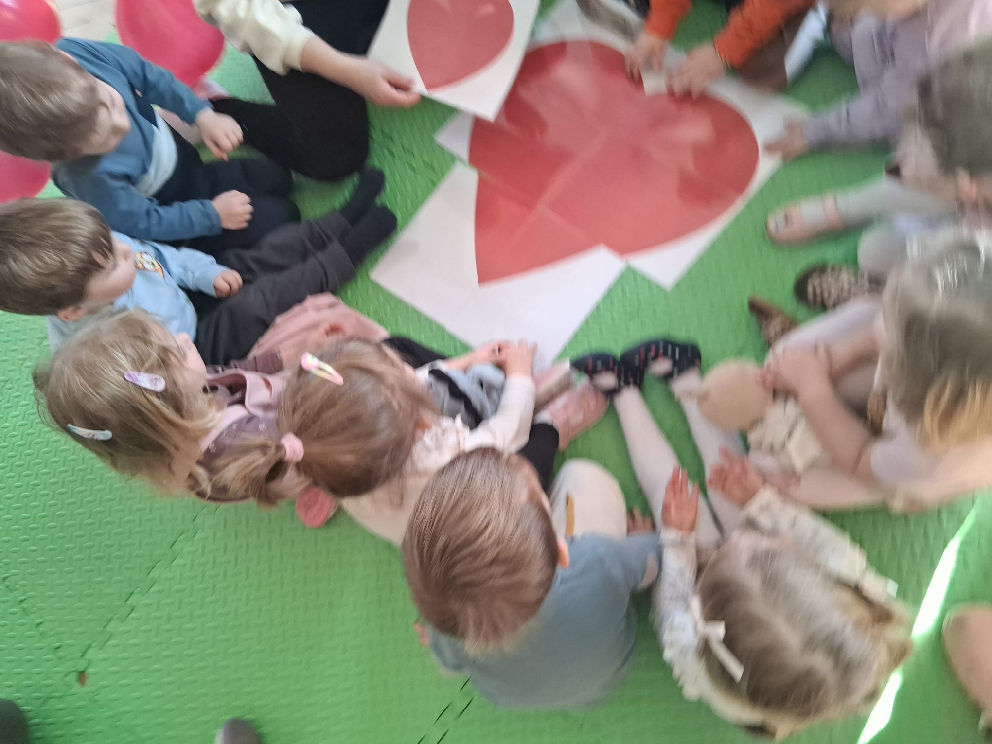 Podczas zajęć dzieci uczestniczyły w zabawach integracyjnych, uczyły się mówić miłe słowa oraz rozpoznawać i nazywać emocje. Wspólnie przygotowały serduszkowe prace plastyczne.