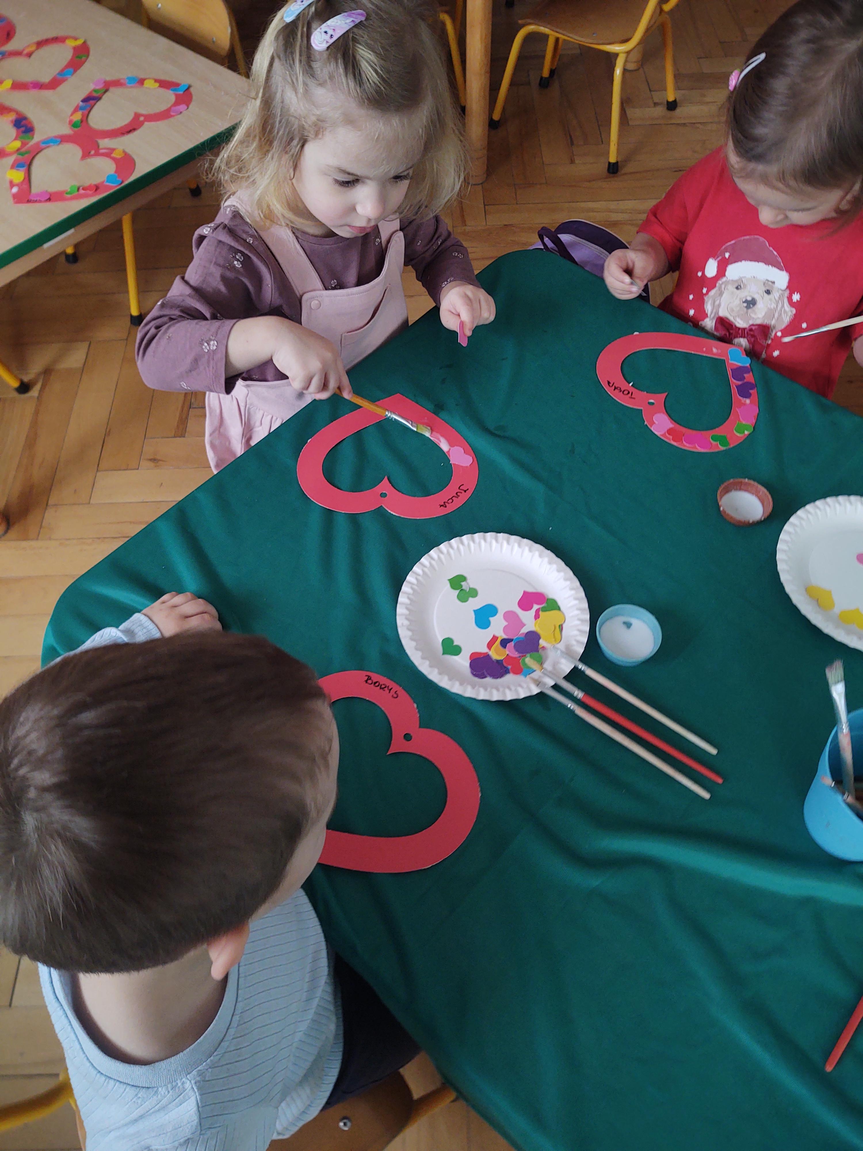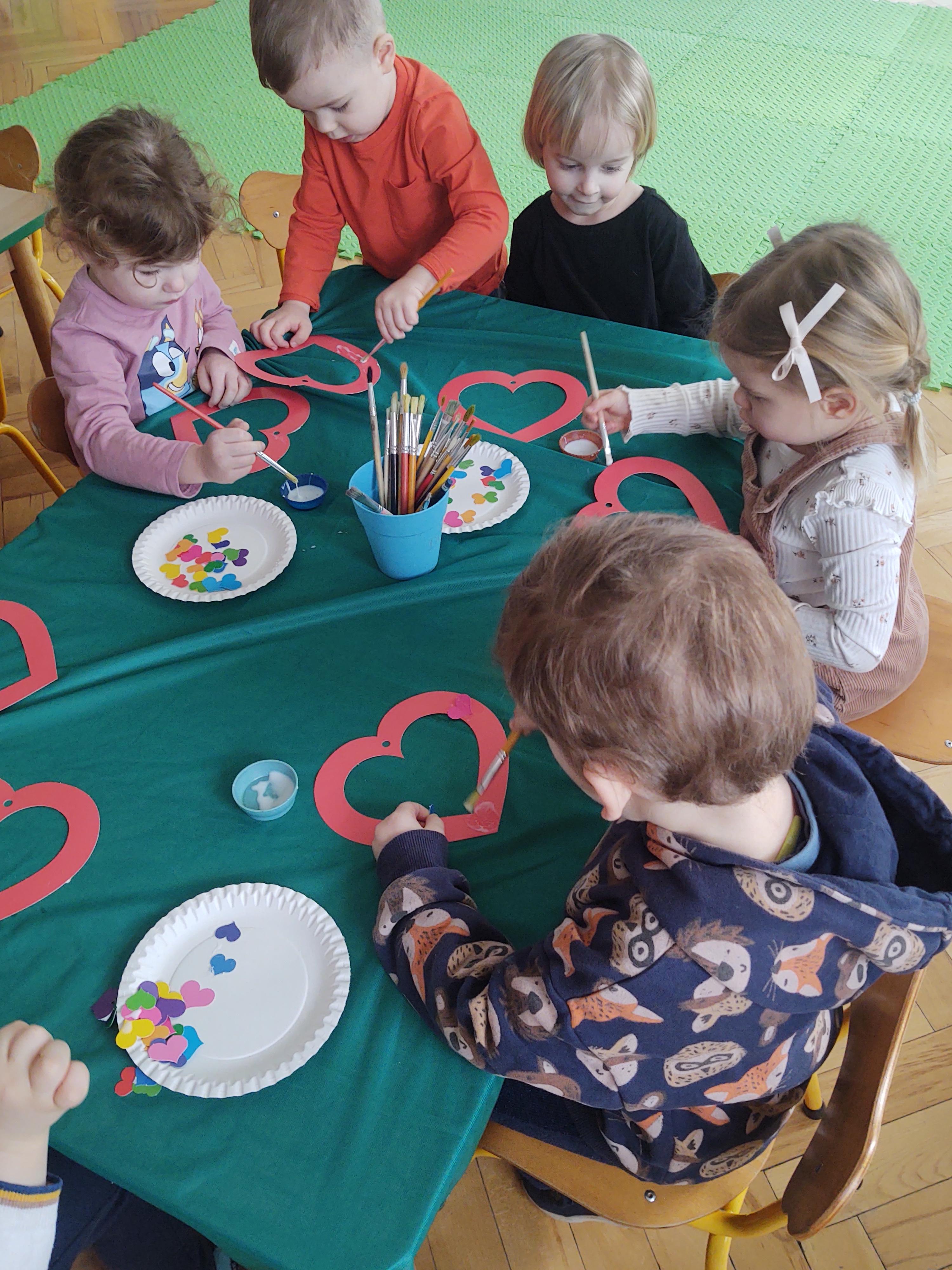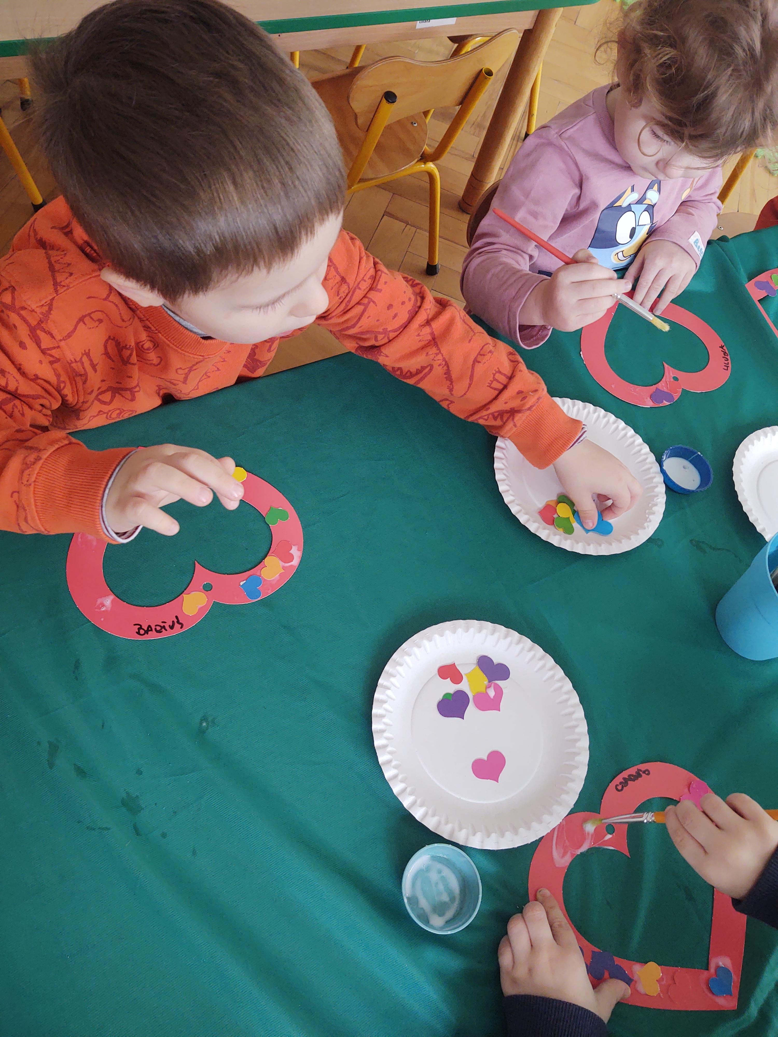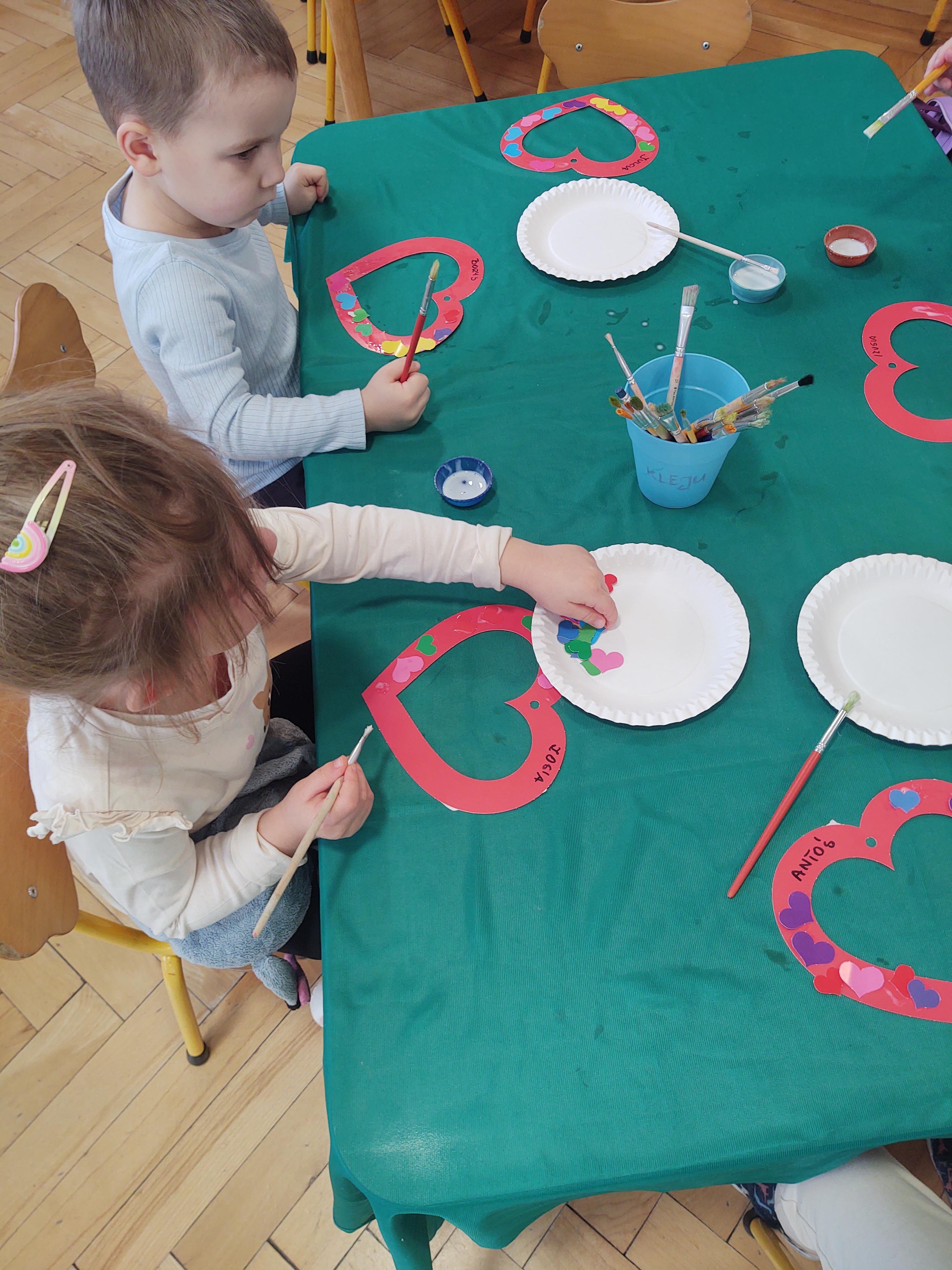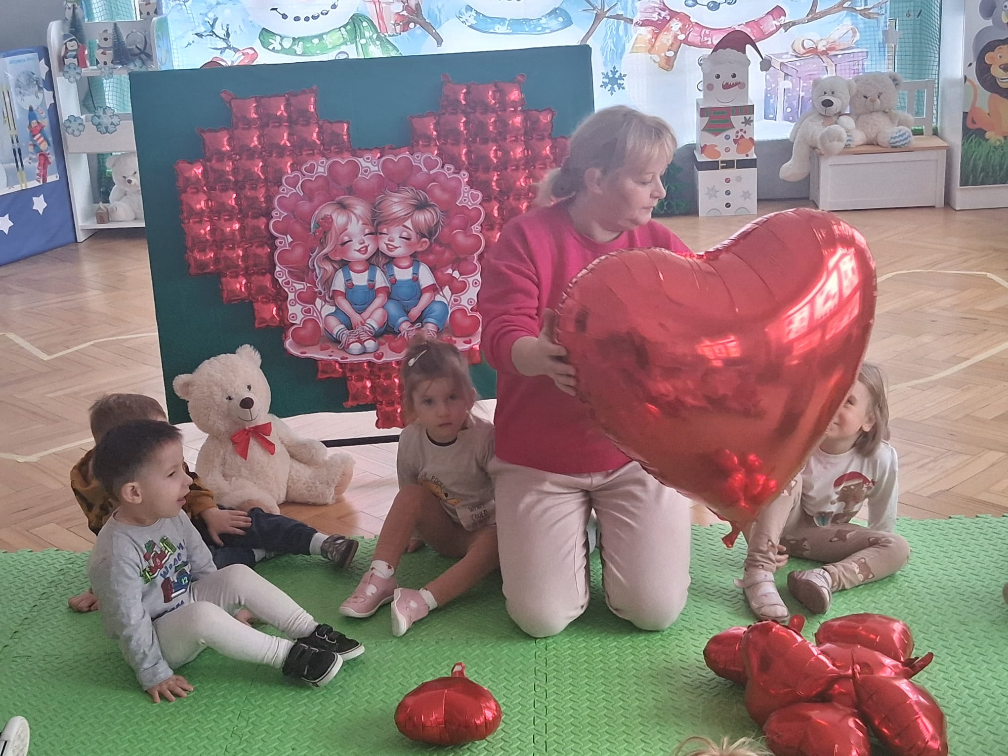 Podczas zajęć dzieci uczestniczyły w zabawach integracyjnych, uczyły się mówić miłe słowa oraz rozpoznawać i nazywać emocje. Wspólnie przygotowały serduszkowe prace plastyczne.