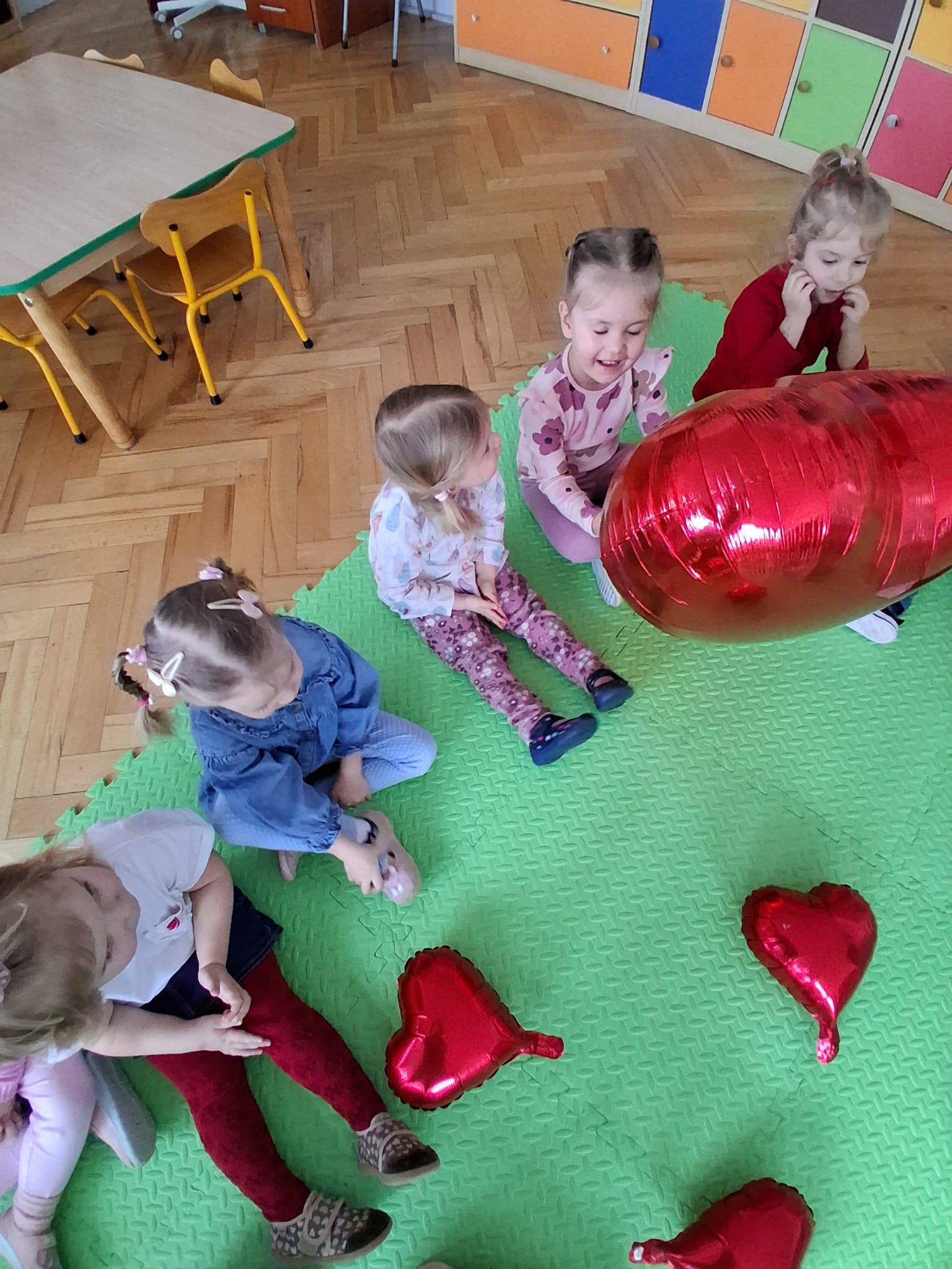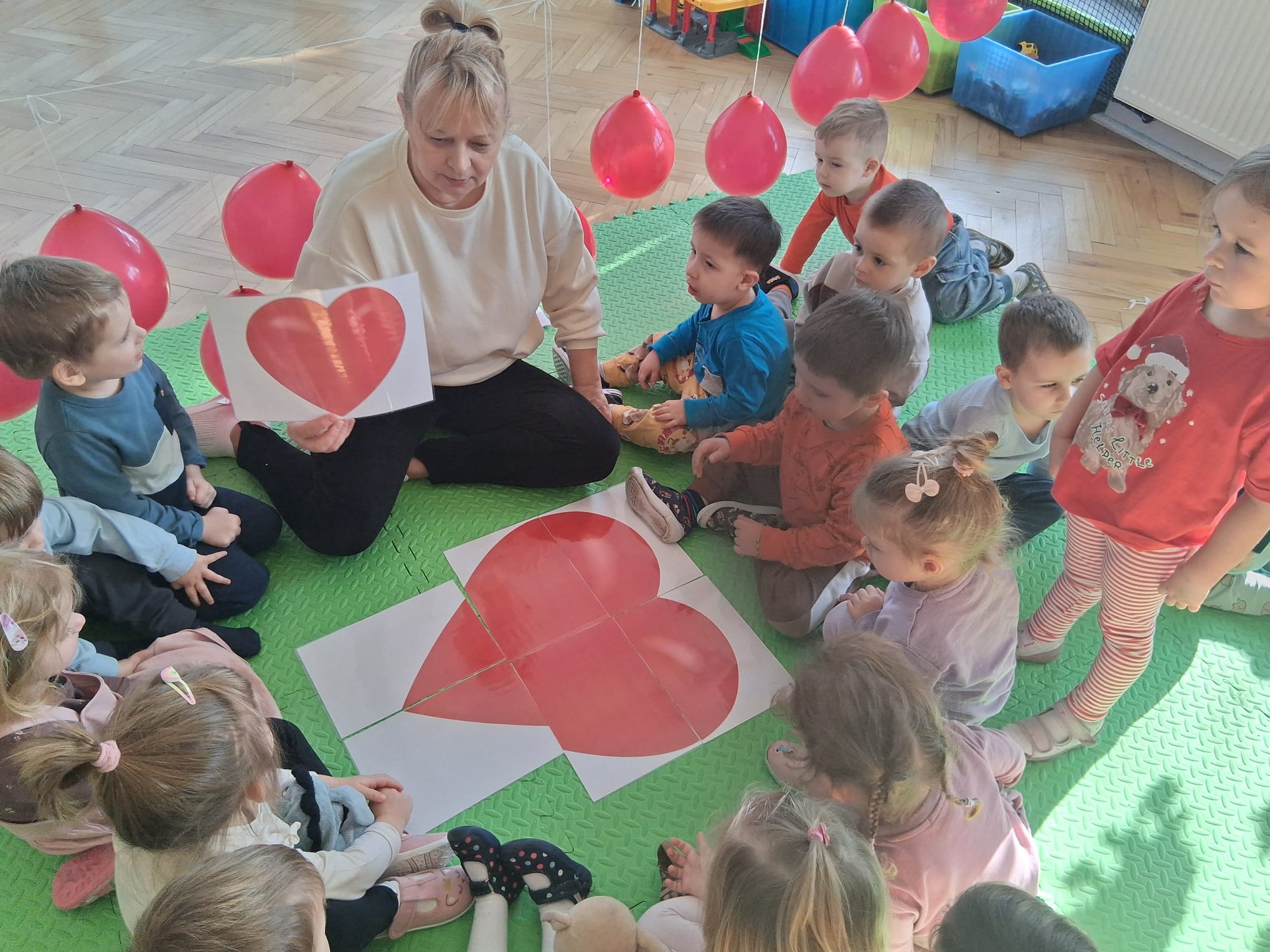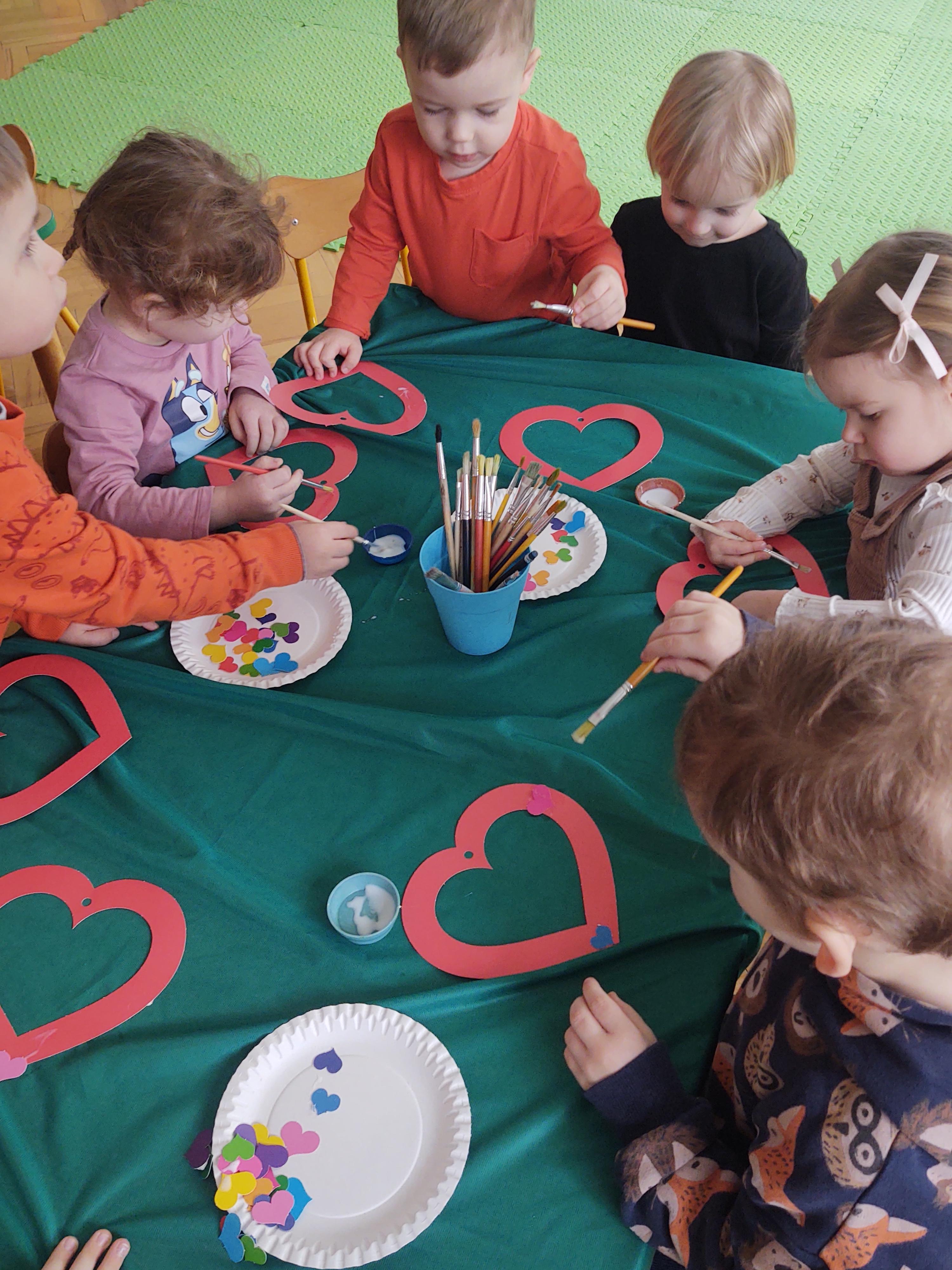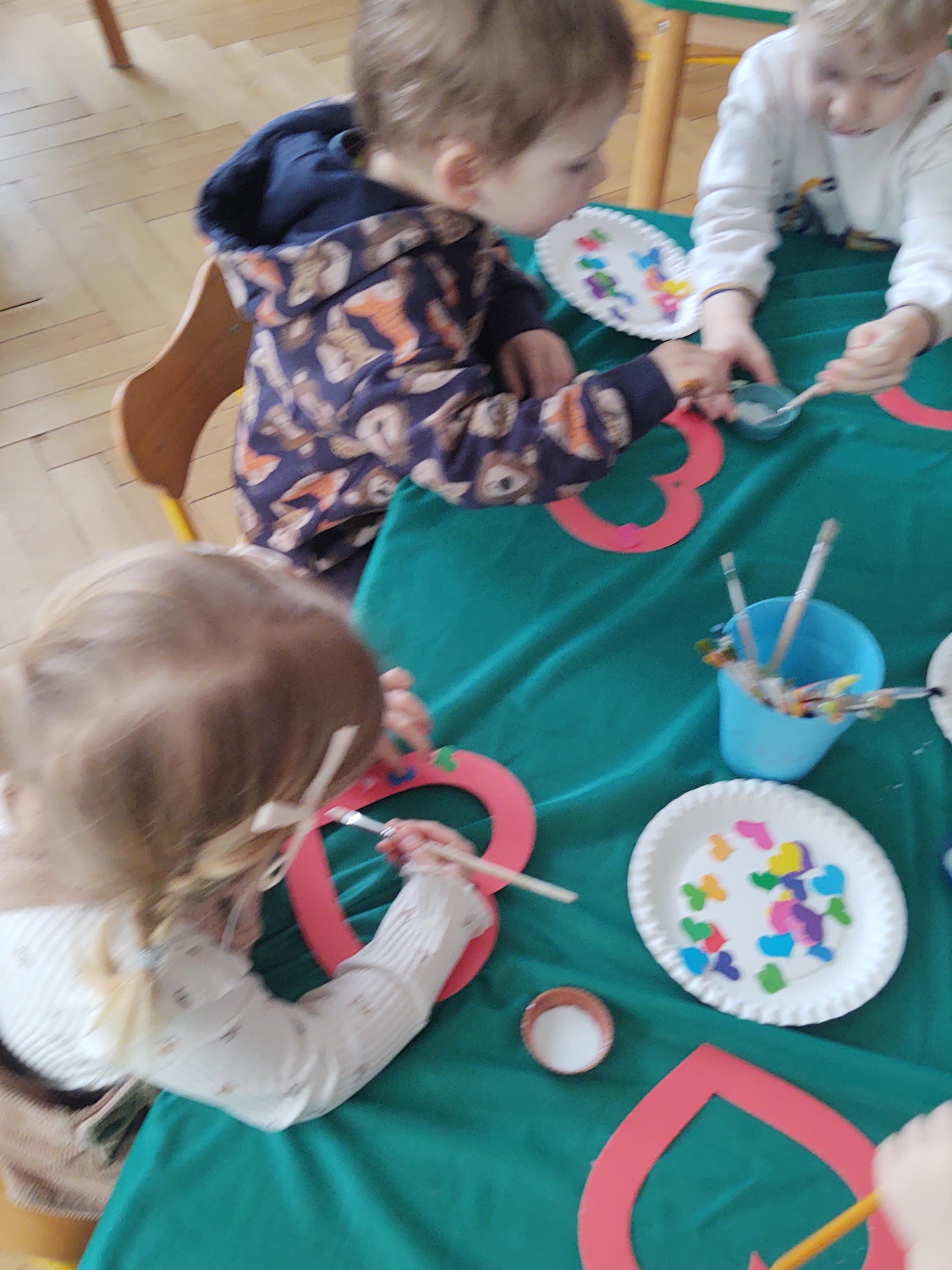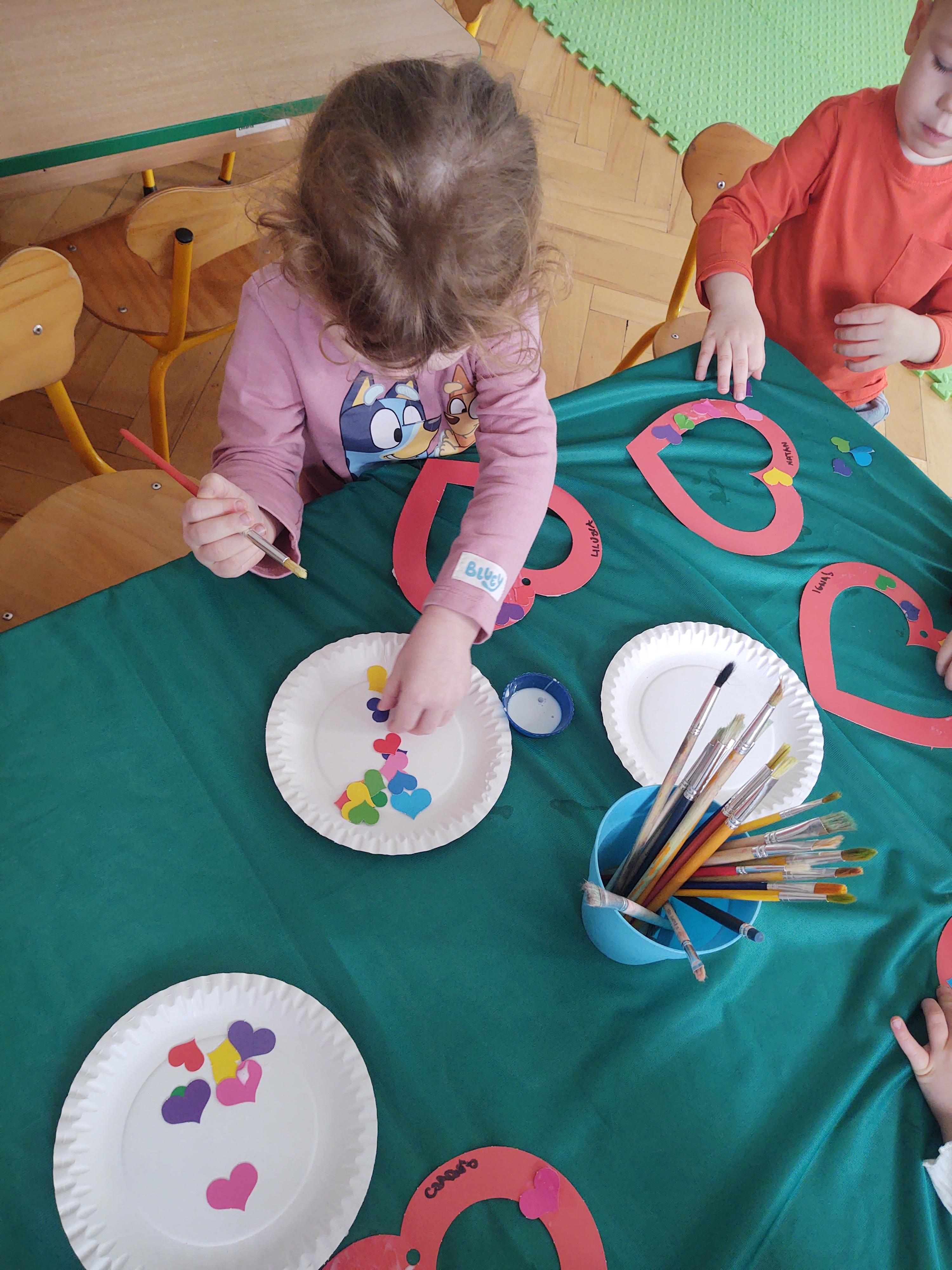 Podczas zajęć dzieci uczestniczyły w zabawach integracyjnych, uczyły się mówić miłe słowa oraz rozpoznawać i nazywać emocje. Wspólnie przygotowały serduszkowe prace plastyczne.