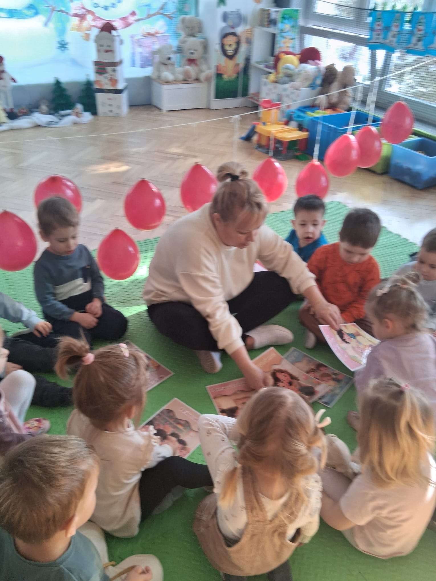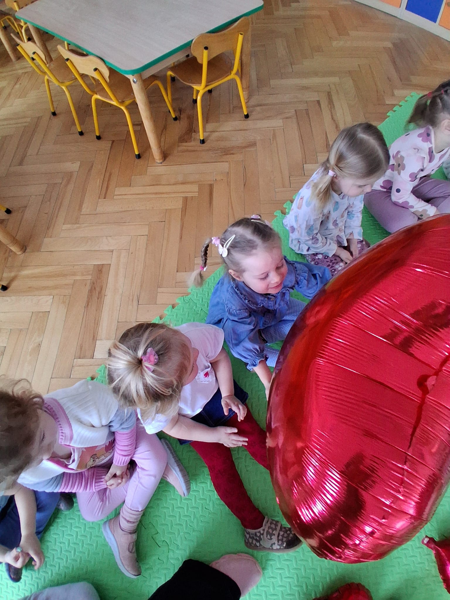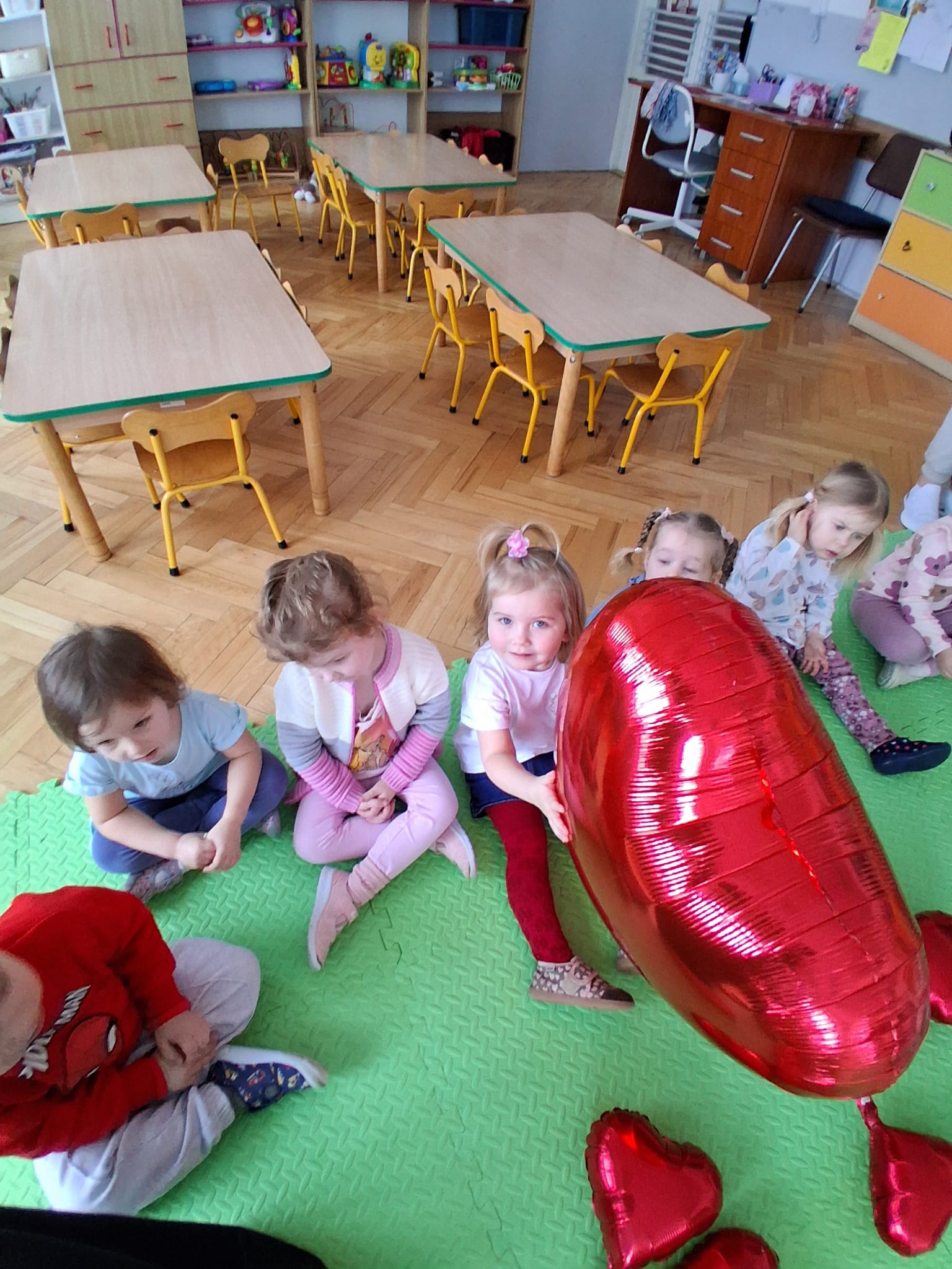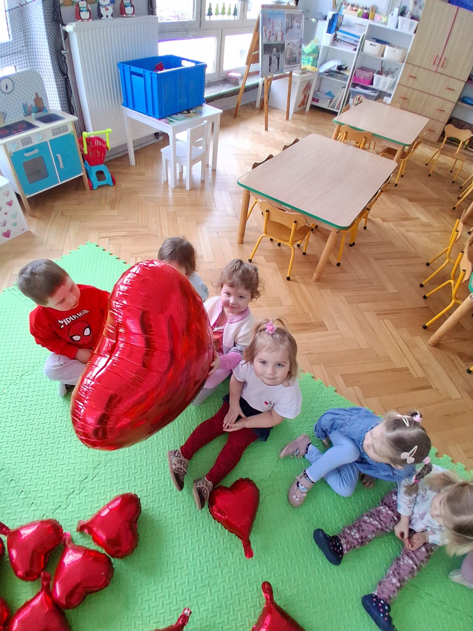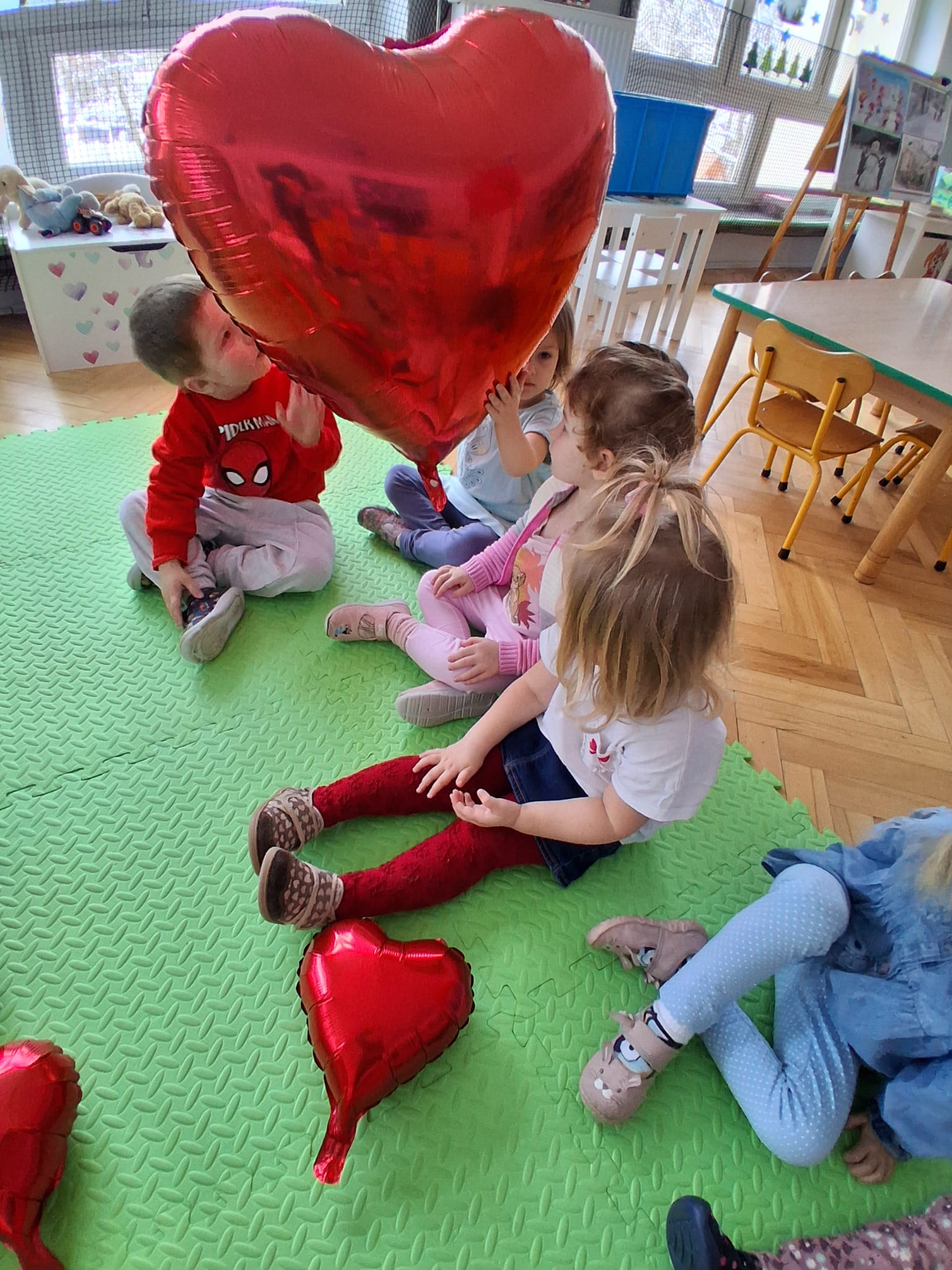 Podczas zajęć dzieci uczestniczyły w zabawach integracyjnych, uczyły się mówić miłe słowa oraz rozpoznawać i nazywać emocje. Wspólnie przygotowały serduszkowe prace plastyczne.