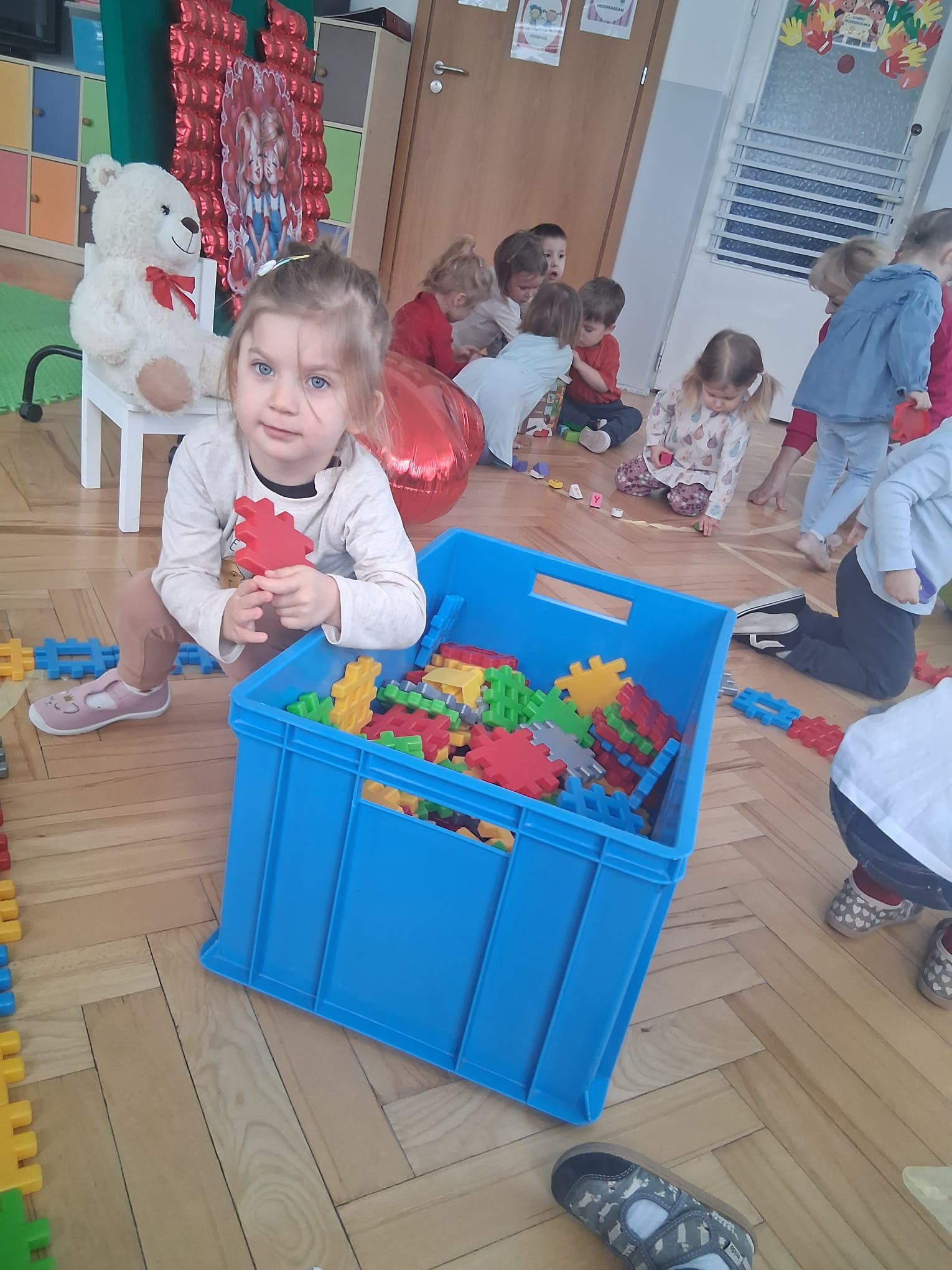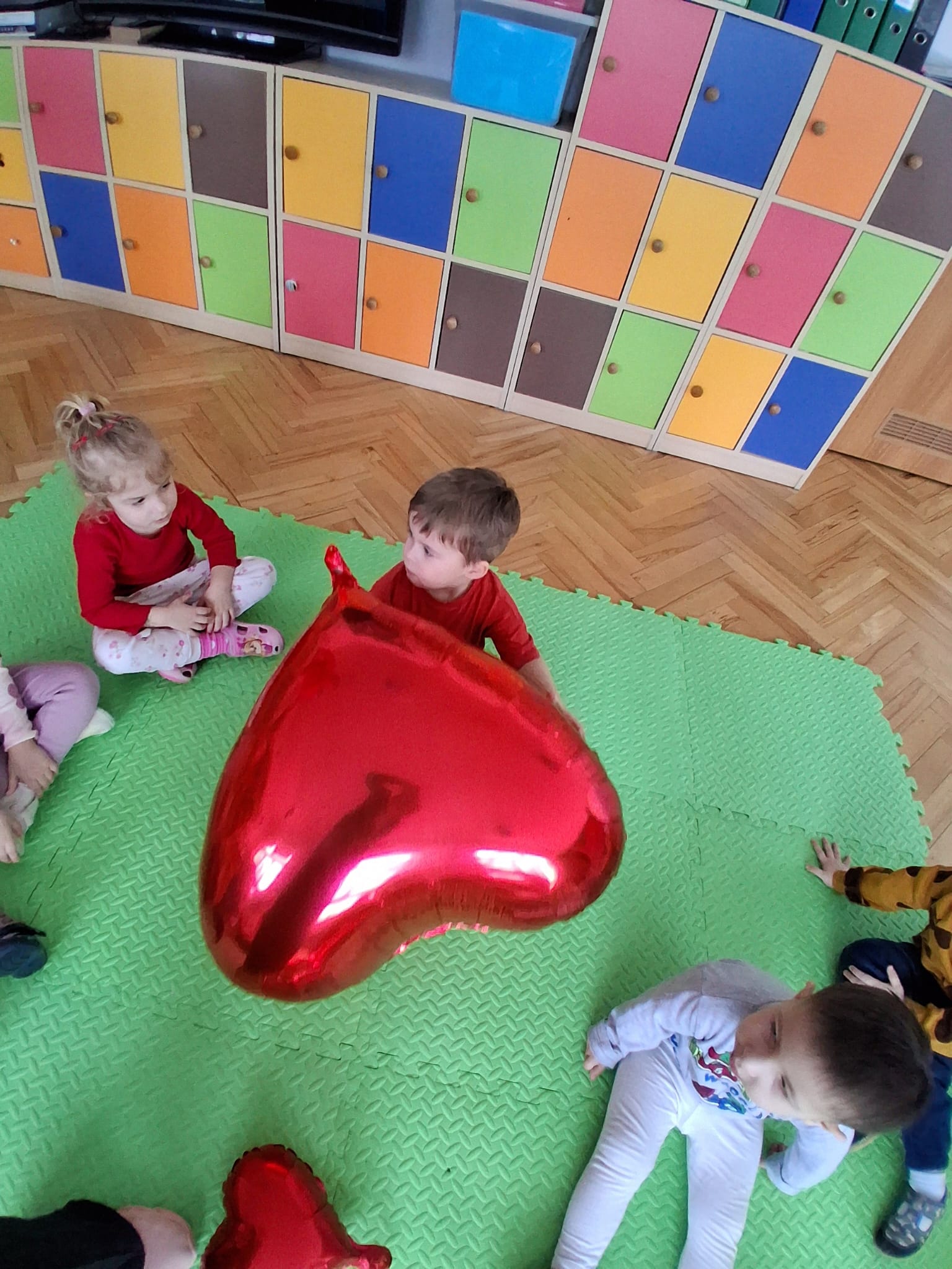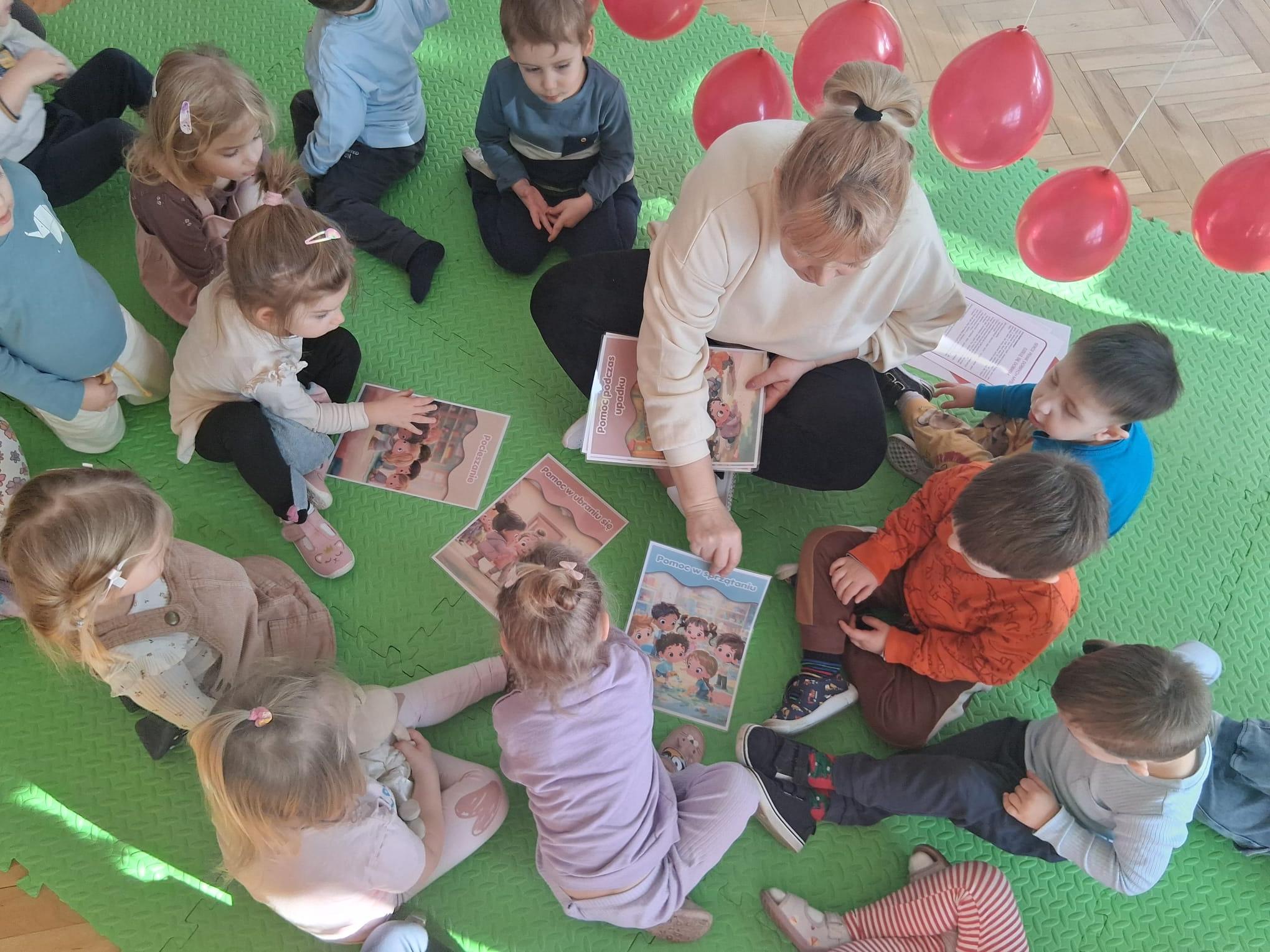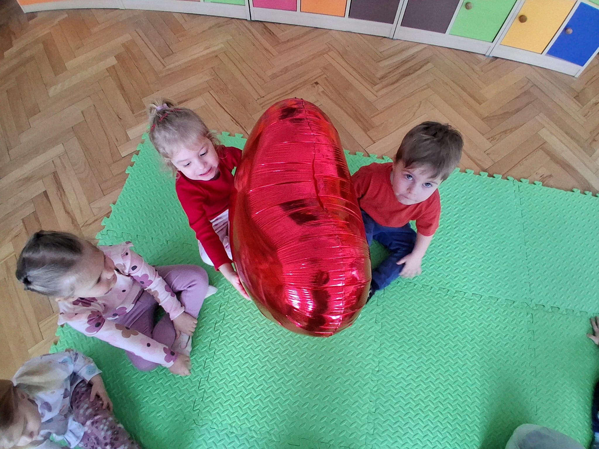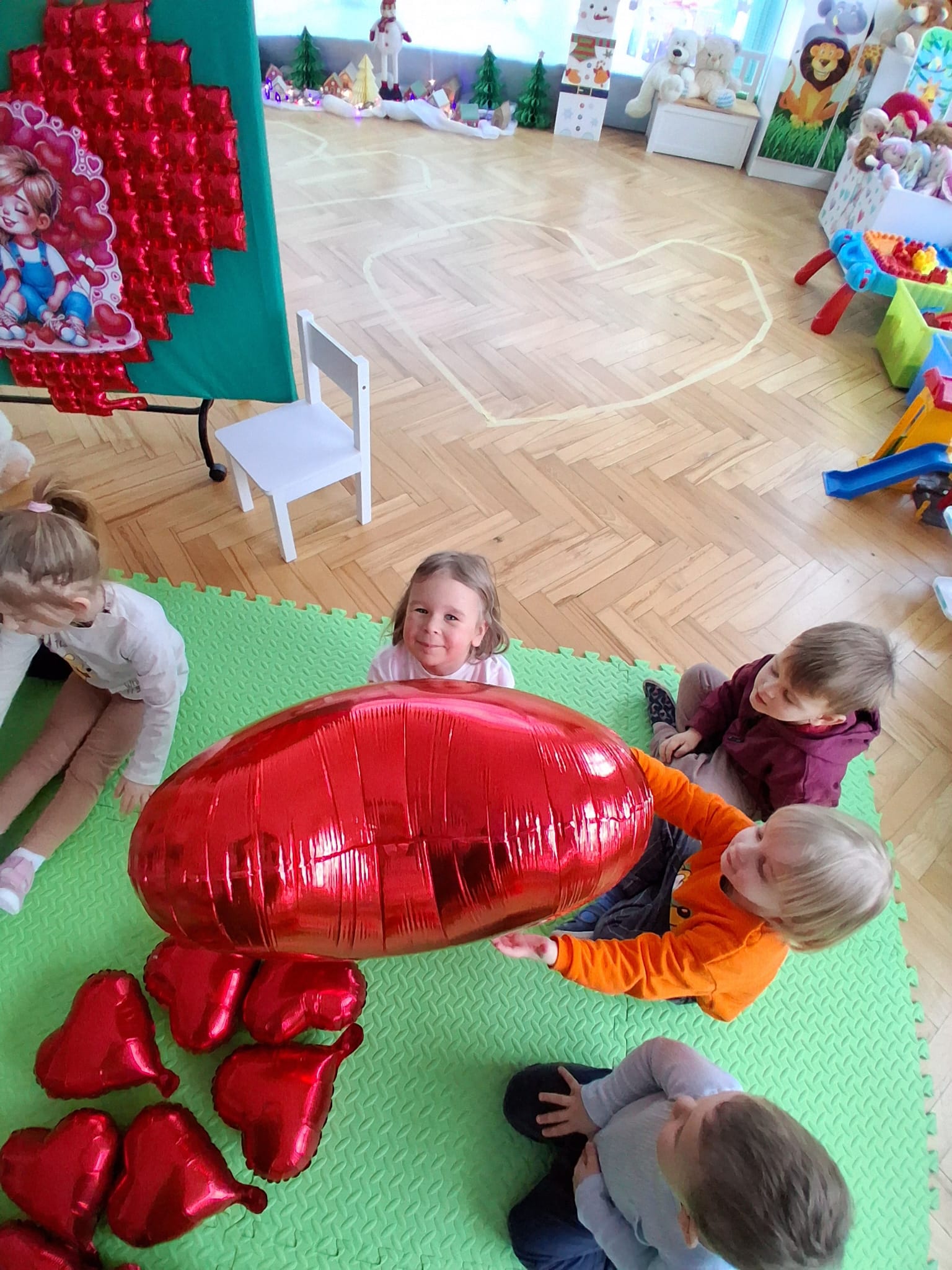 Podczas zajęć dzieci uczestniczyły w zabawach integracyjnych, uczyły się mówić miłe słowa oraz rozpoznawać i nazywać emocje. Wspólnie przygotowały serduszkowe prace plastyczne.