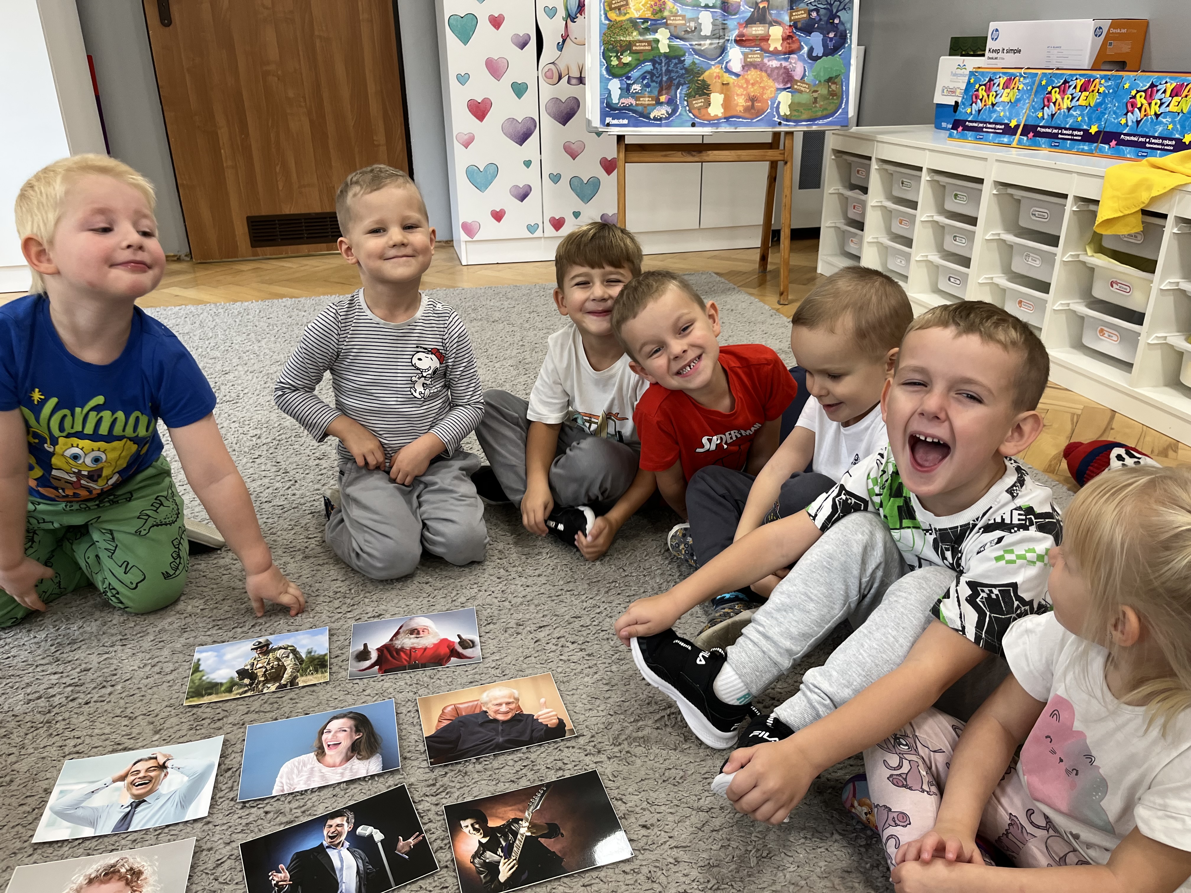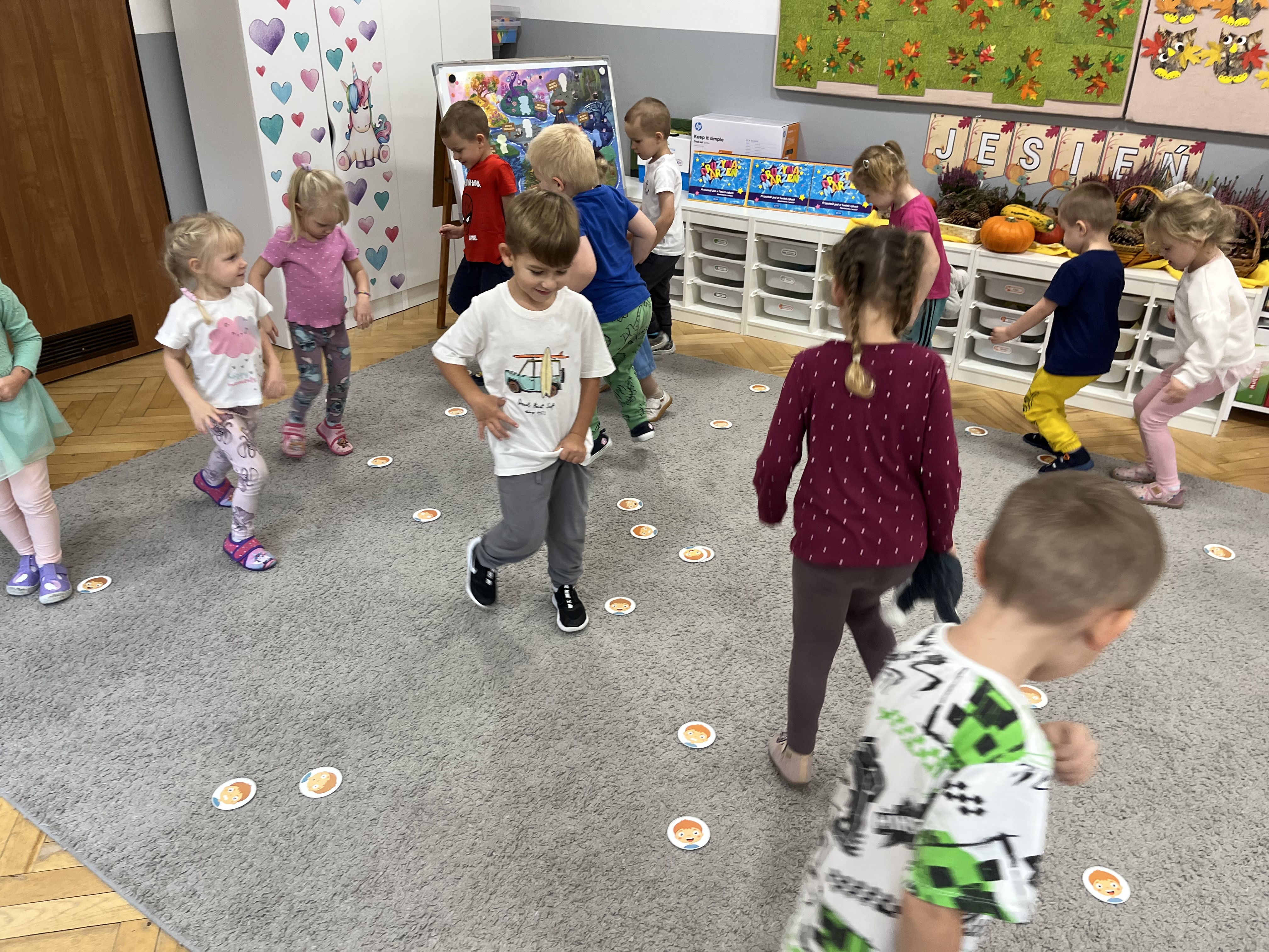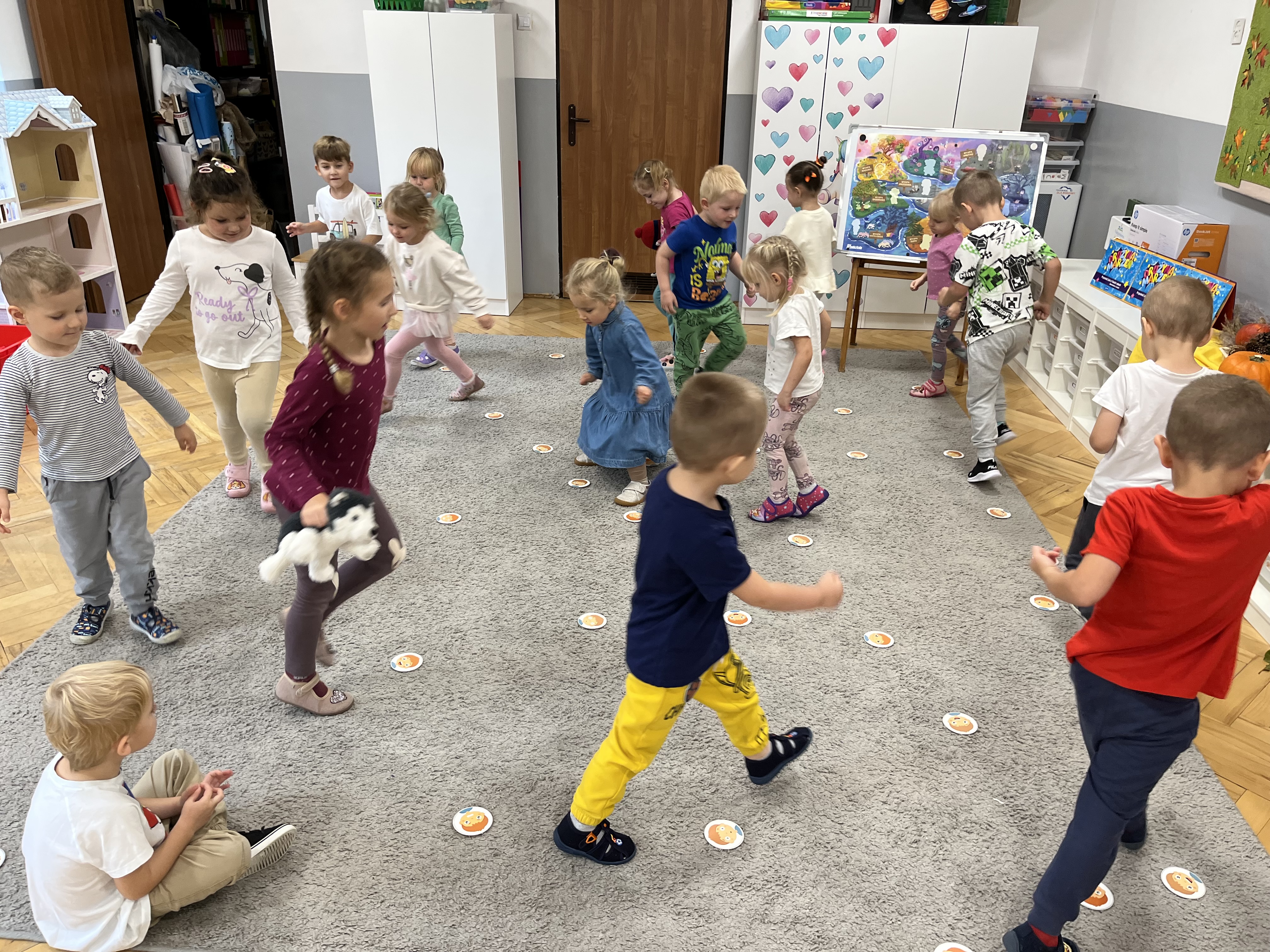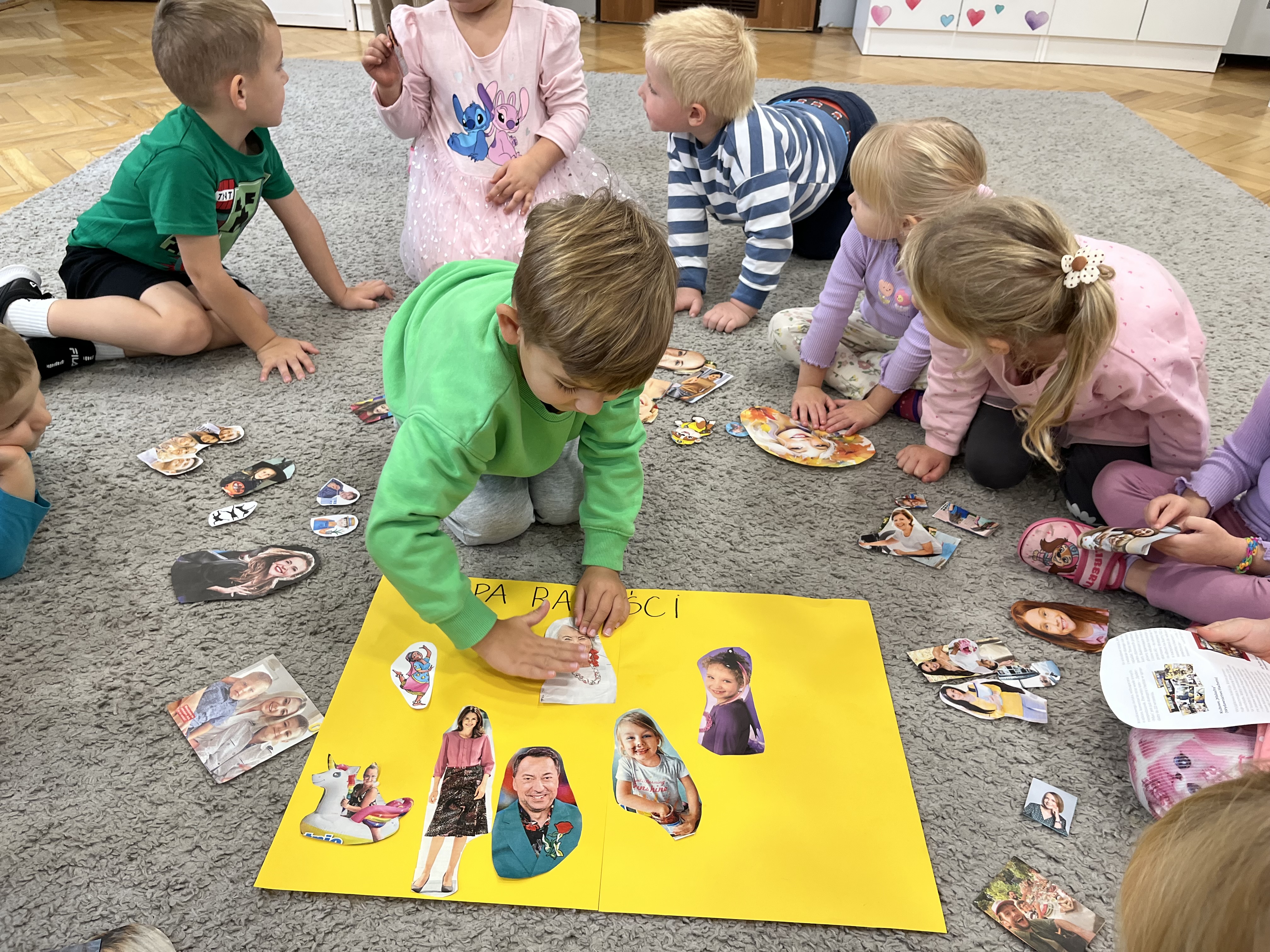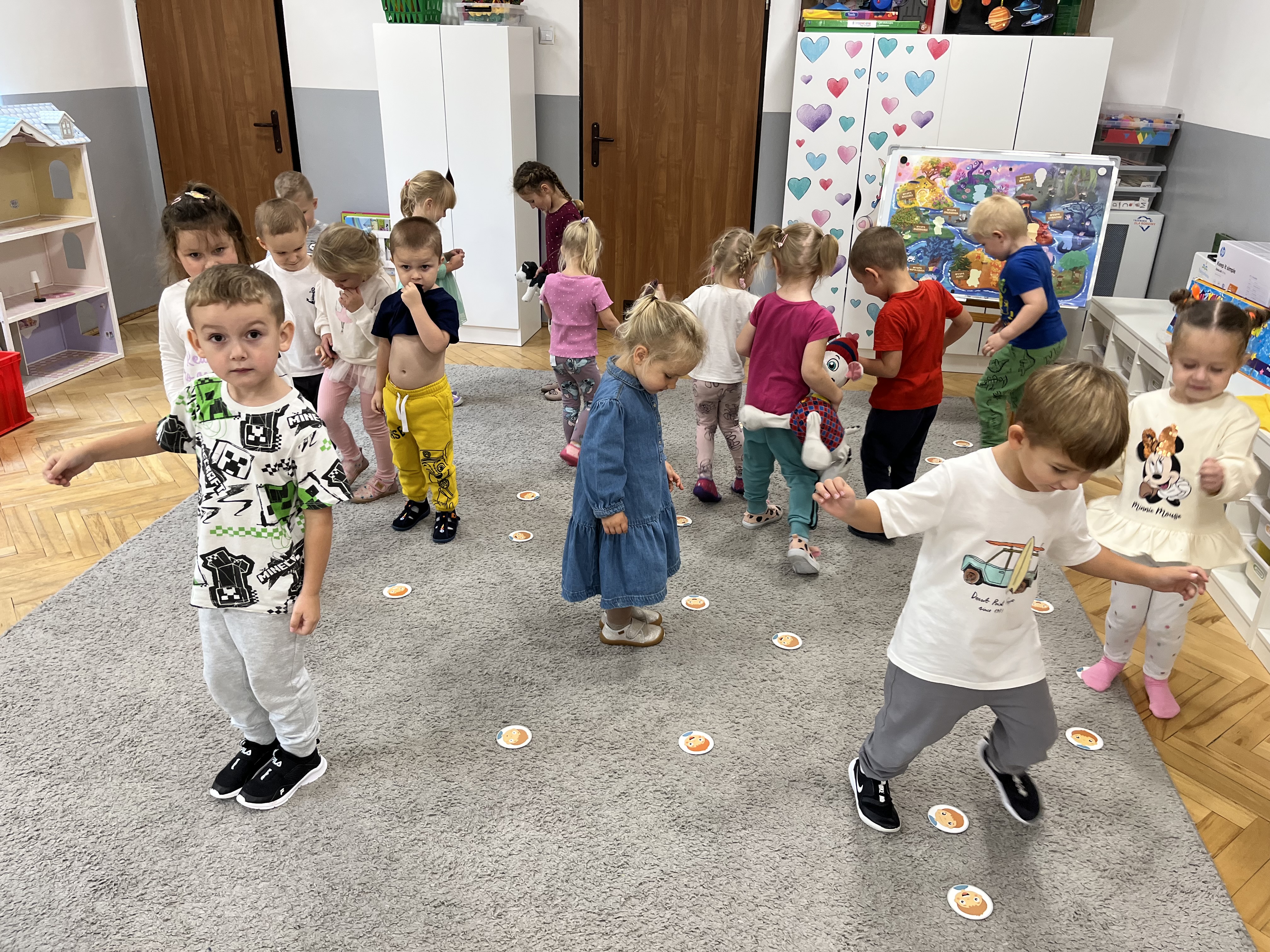 Podczas zabaw ruchowych przedszkolaki rozpoznawały i nazywały różne emocje, ze szczególnym uwzględnieniem radości. Wspólnie poszukiwały oznak tej emocji w mimice, gestach i zachowaniu.