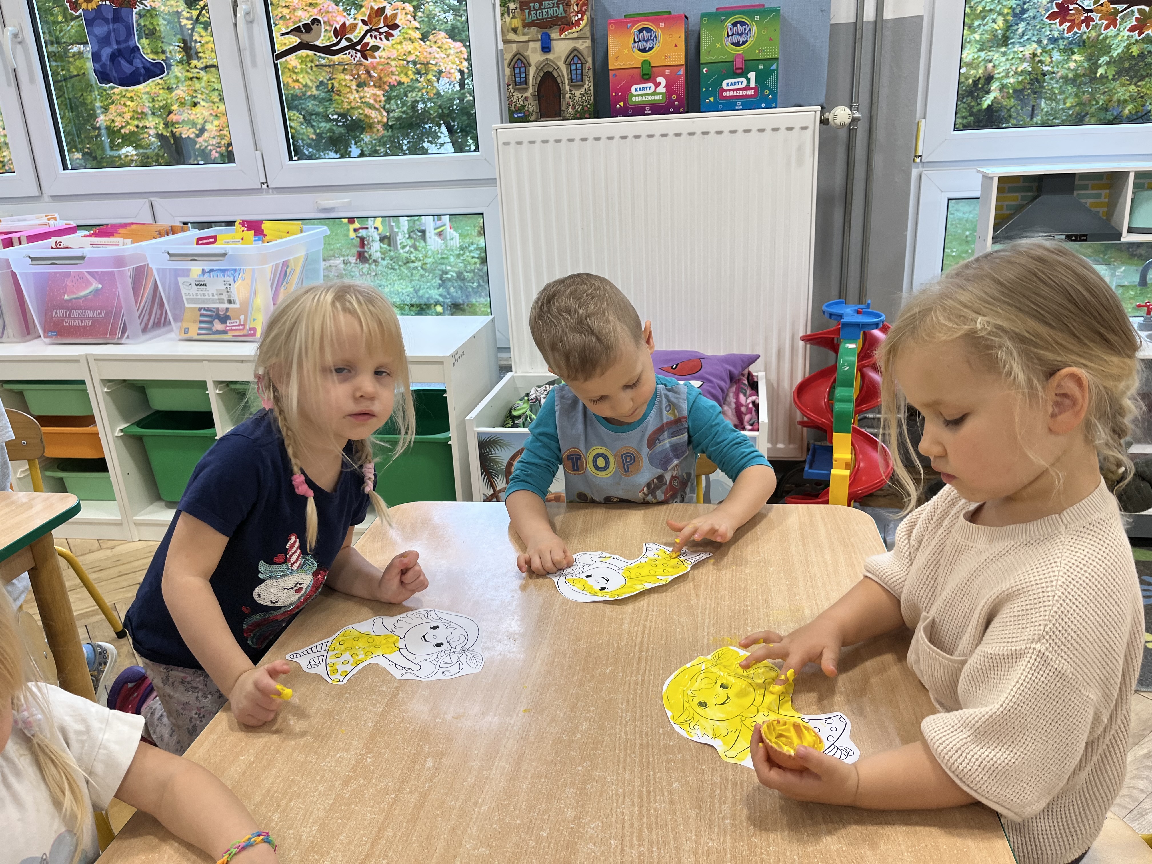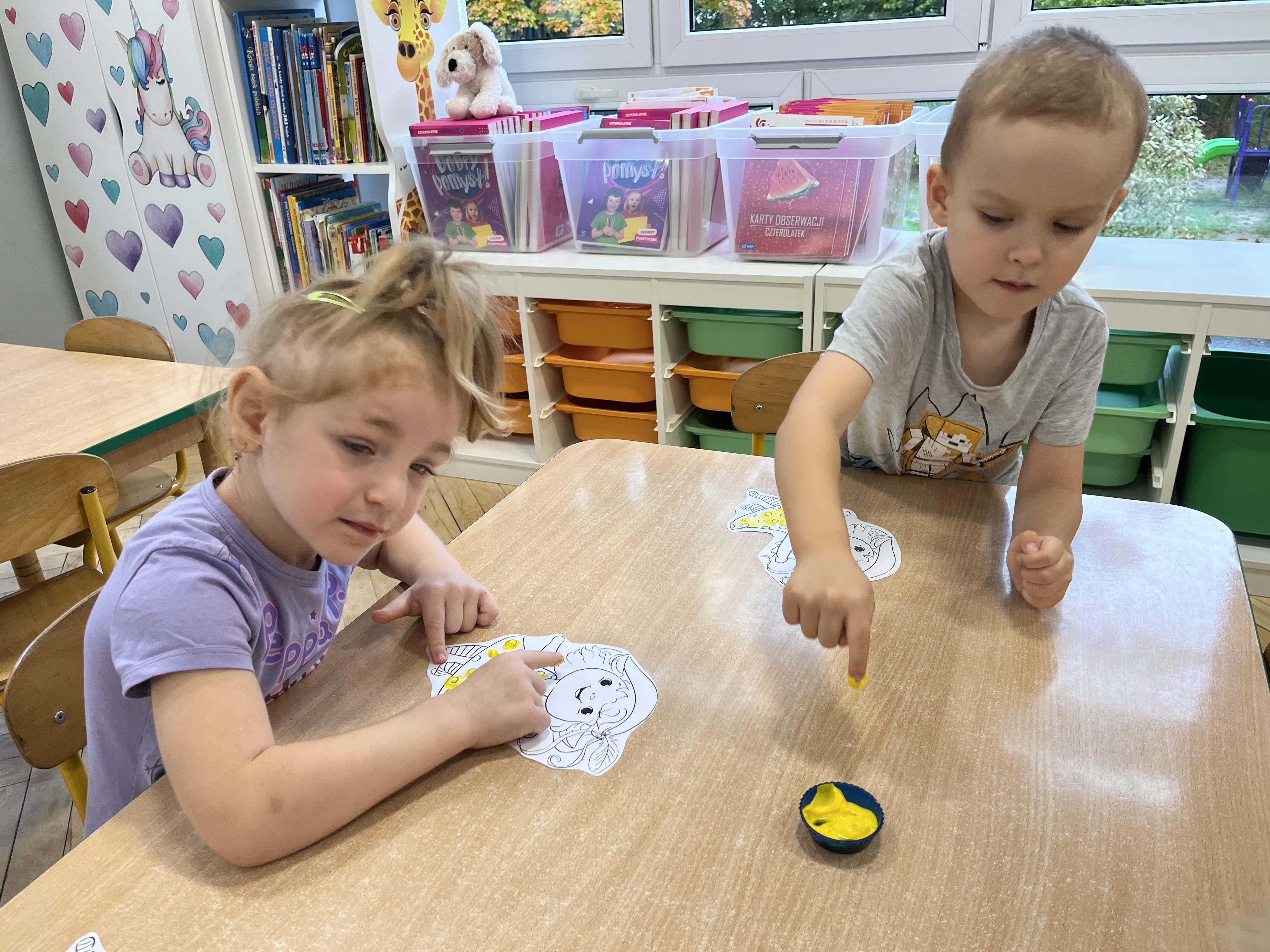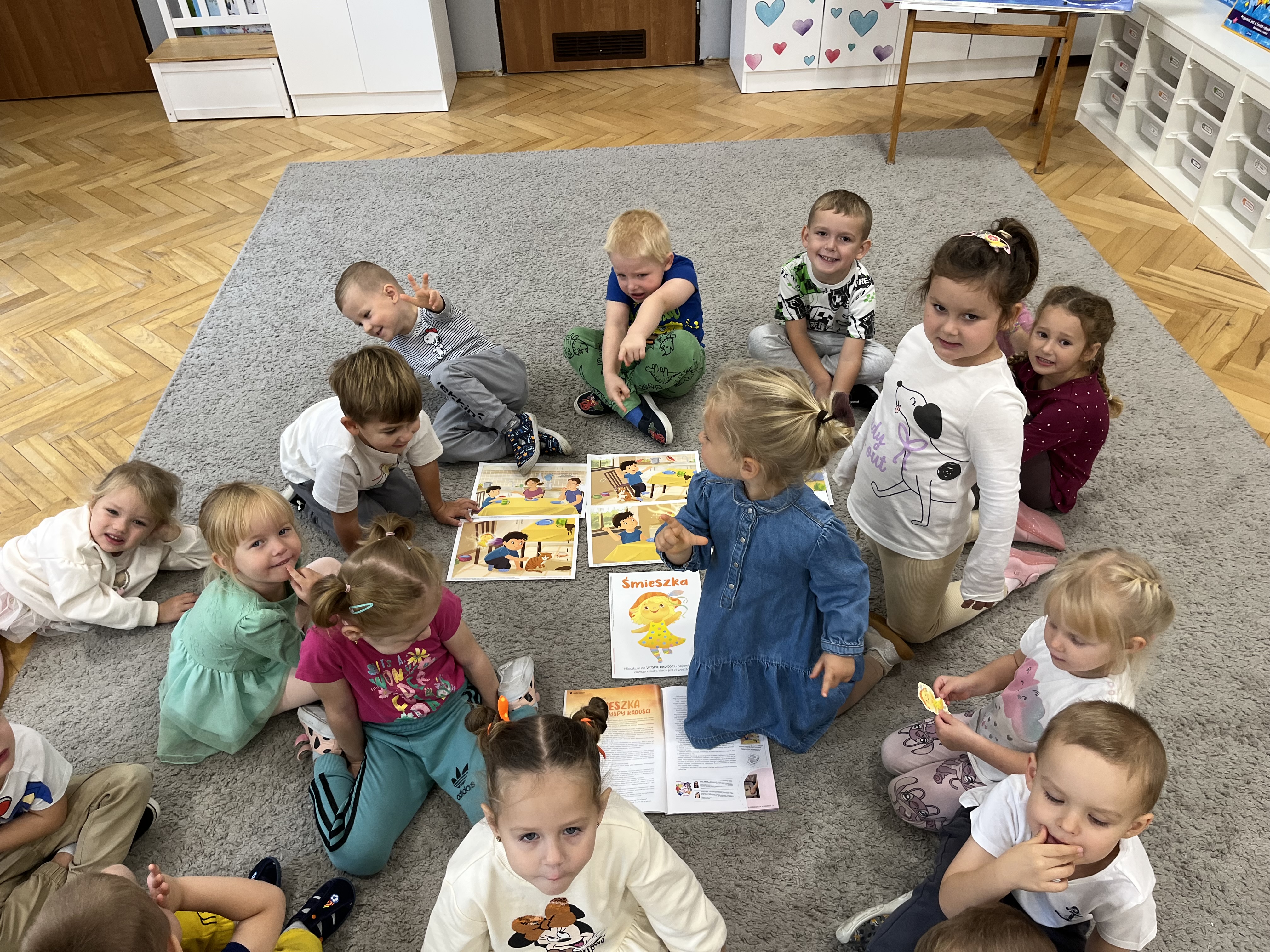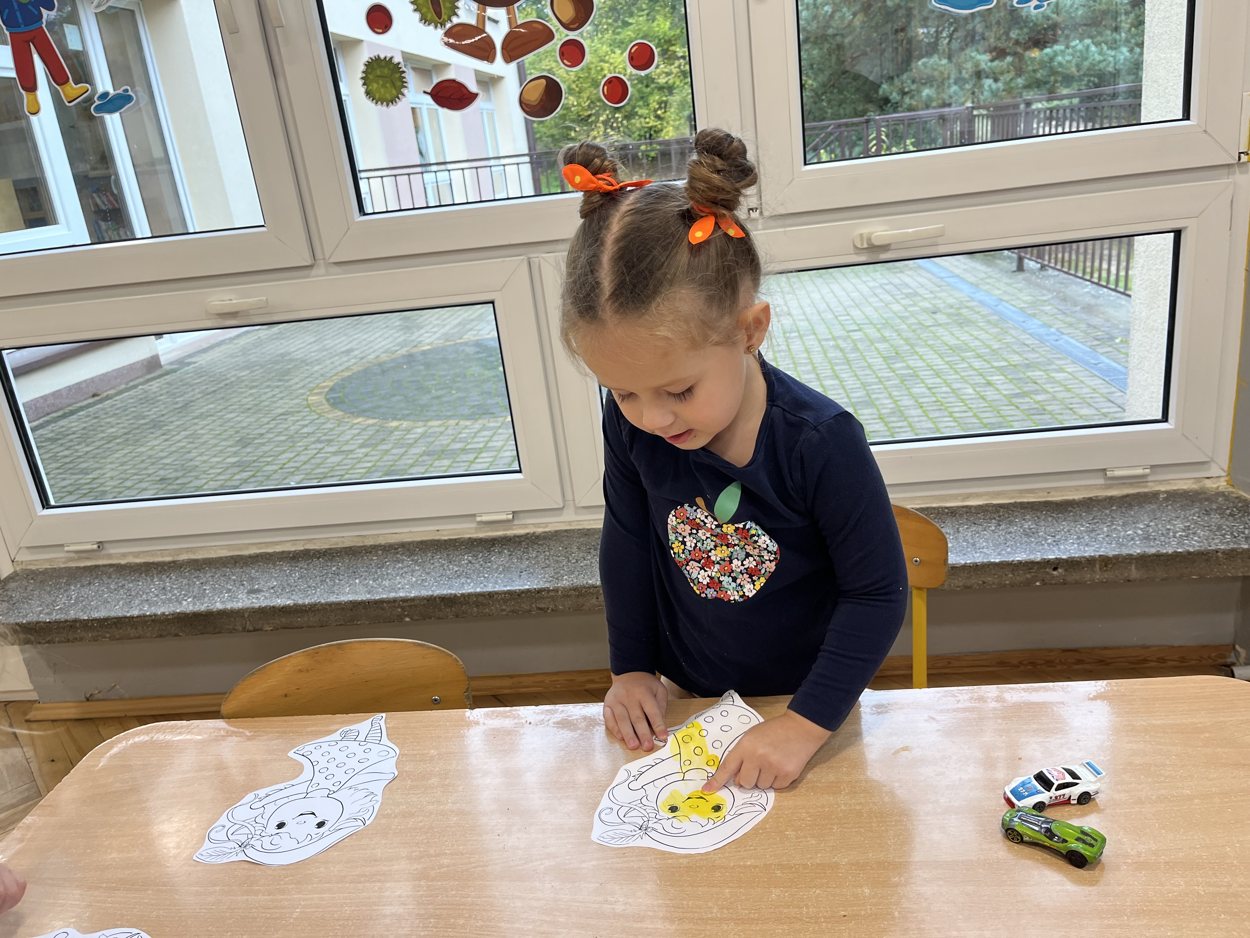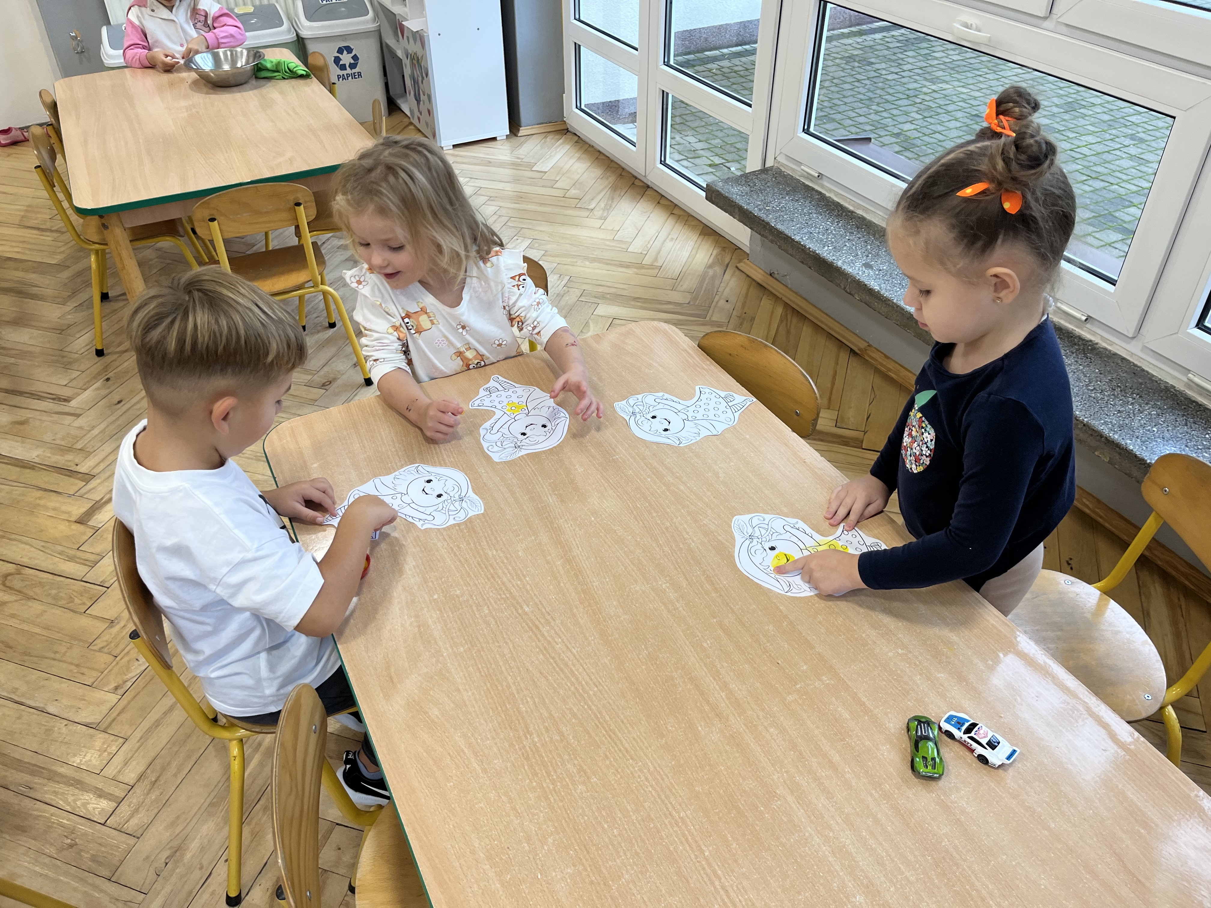 W dalszej części zajęć dzieci wypełniły pierwszą kartę emocjonalnej książeczki – pokolorowały postać Śmieszki oraz narysowały to, co sprawia im największą radość.