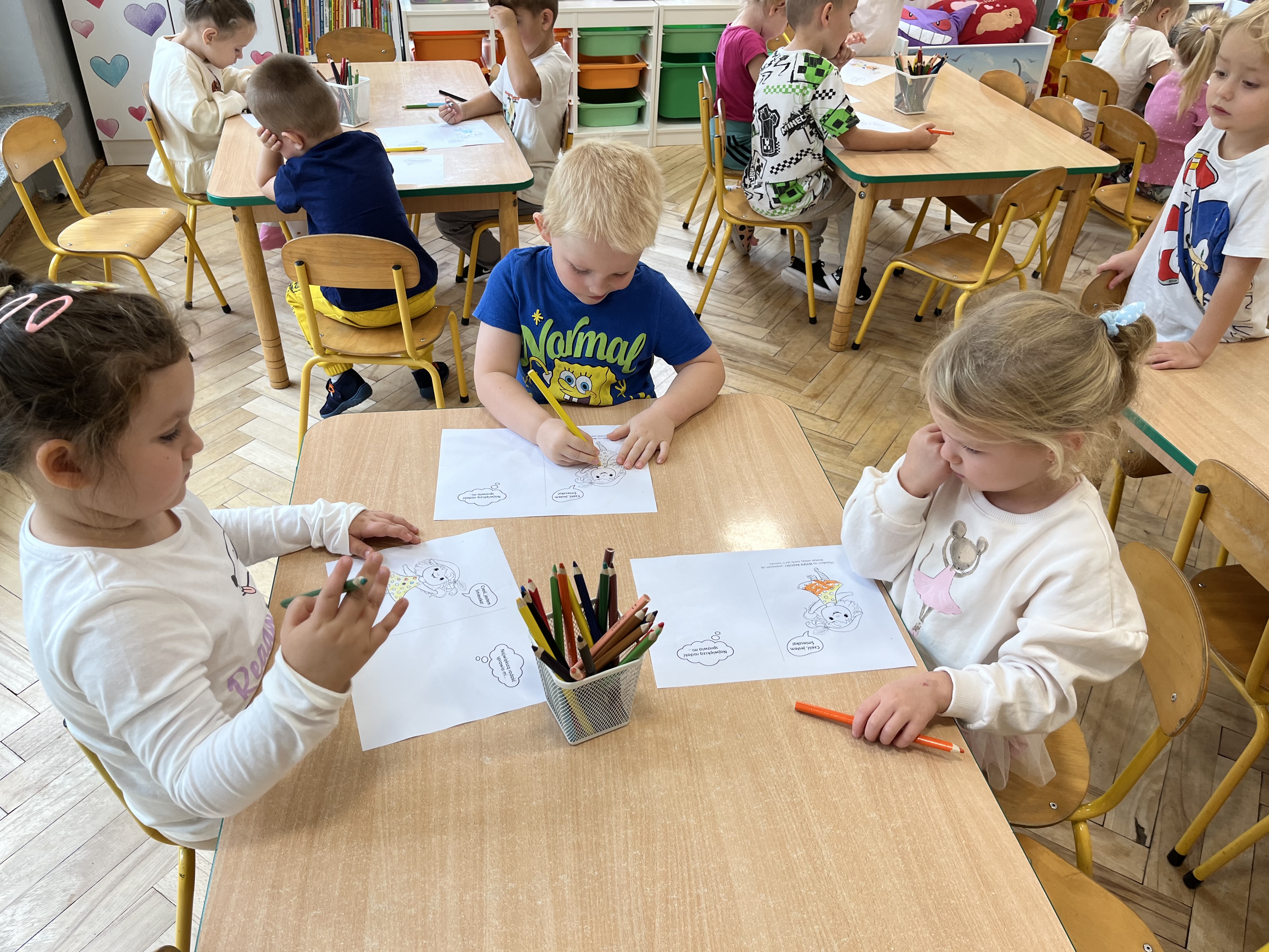 Zajęcia przebiegły w pogodnej atmosferze, a dzieci z entuzjazmem angażowały się w każdą aktywność, rozwijając umiejętność rozpoznawania i wyrażania emocji w pozytywny sposób.