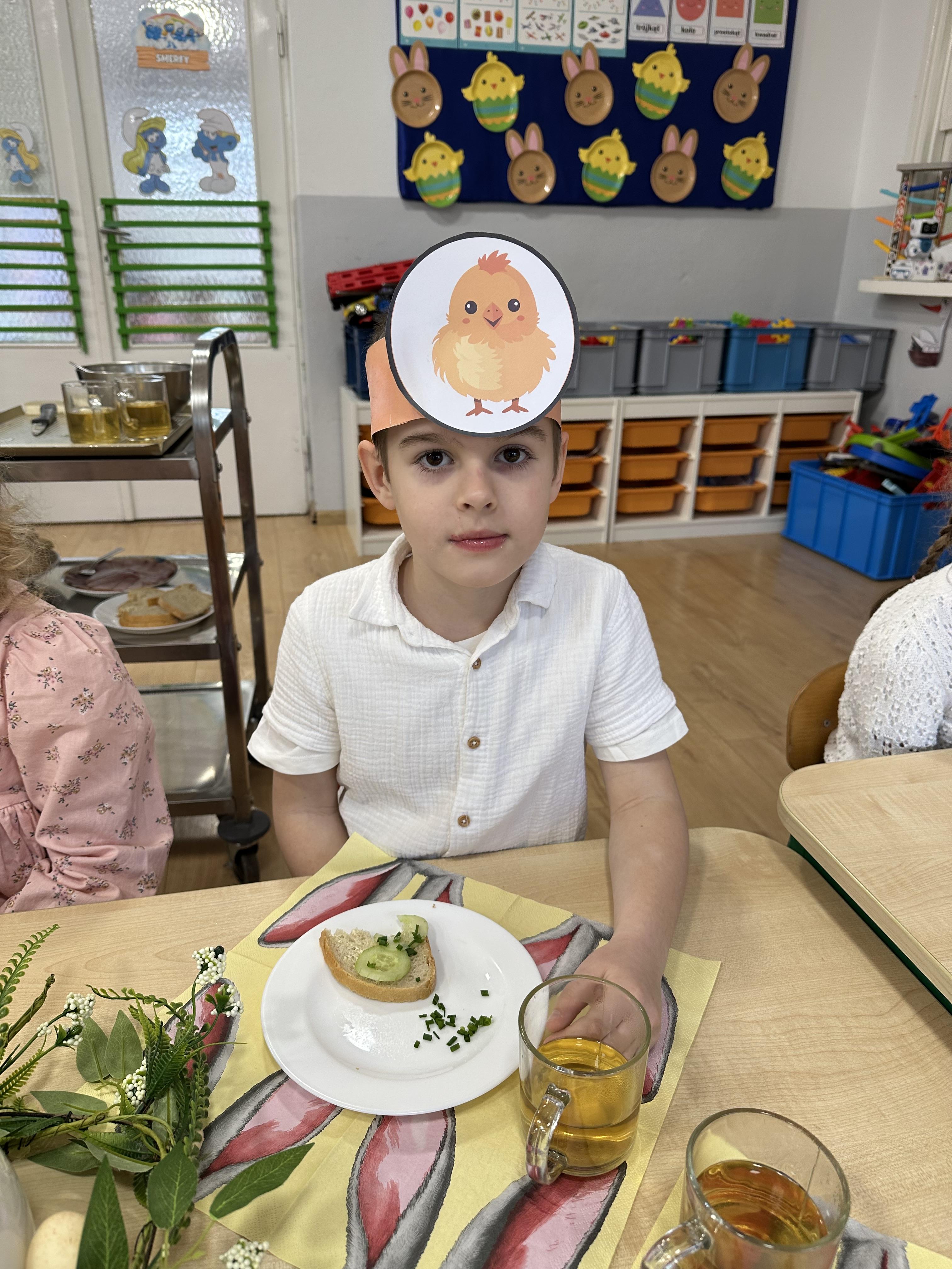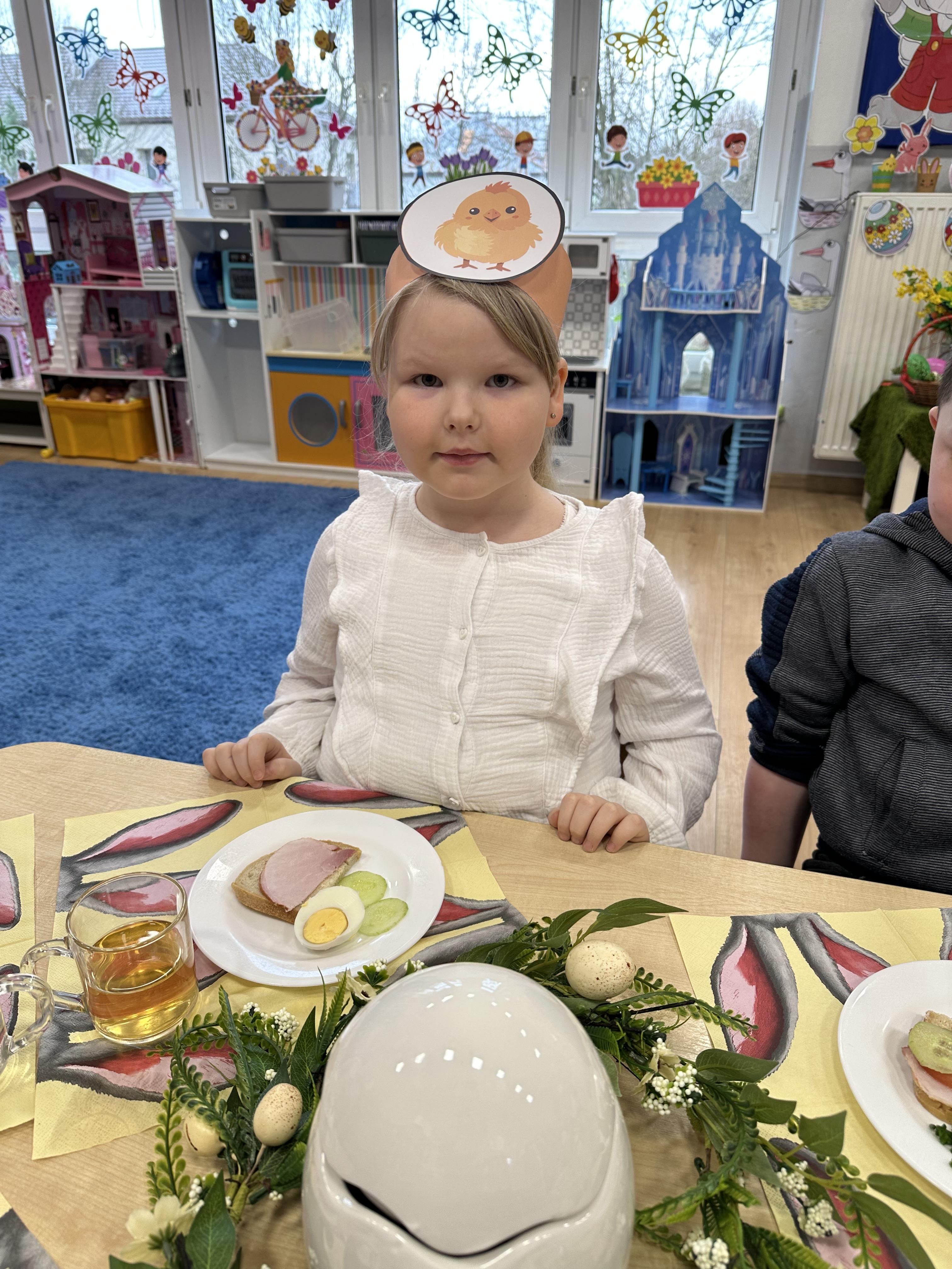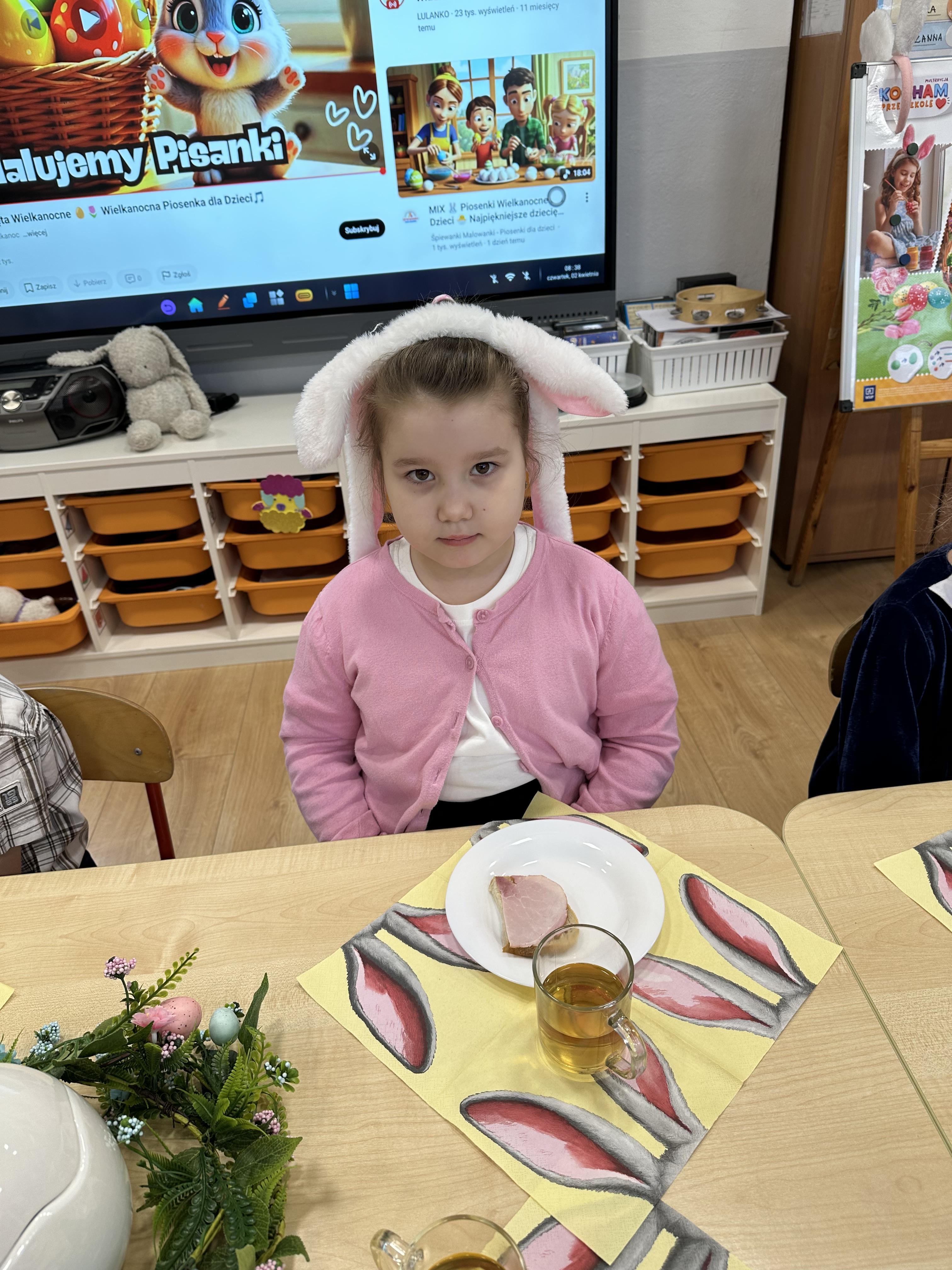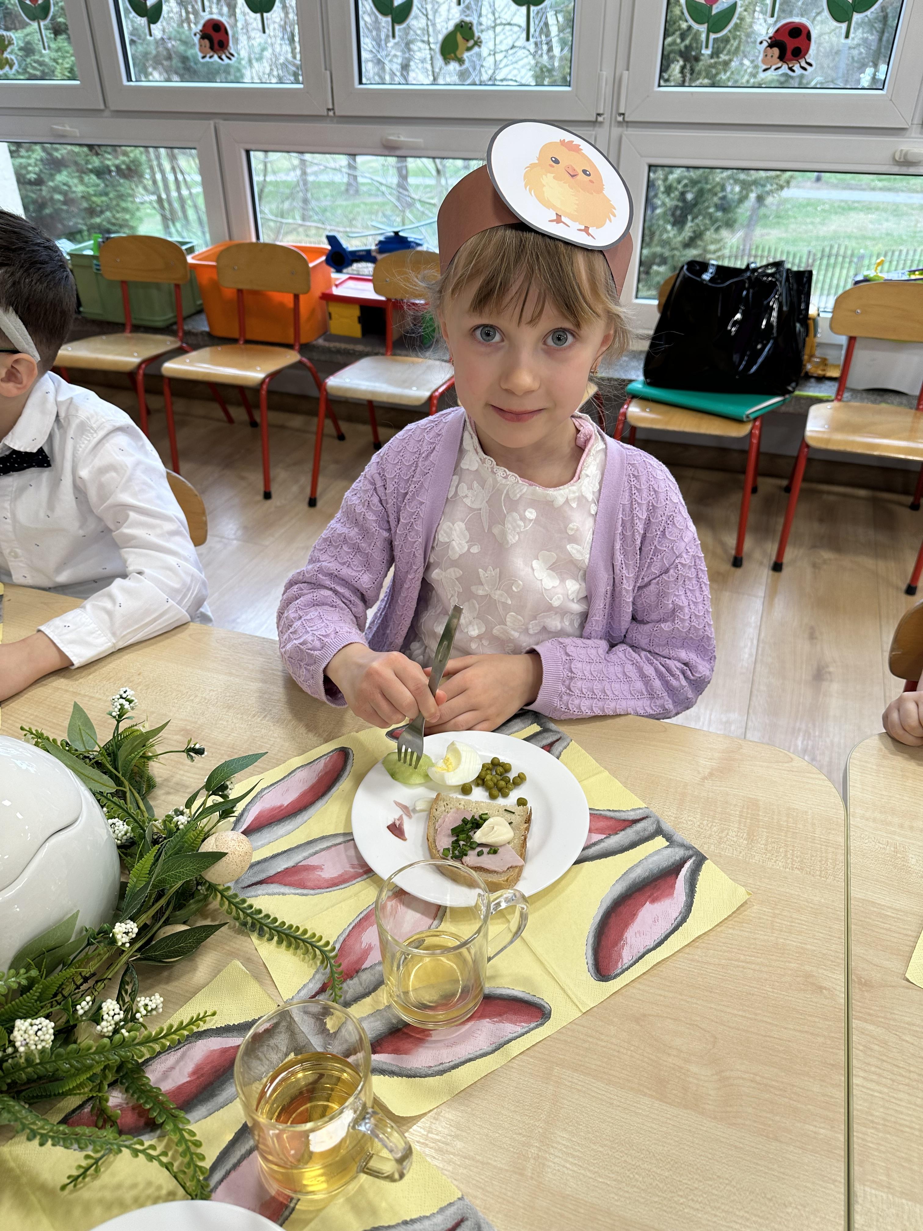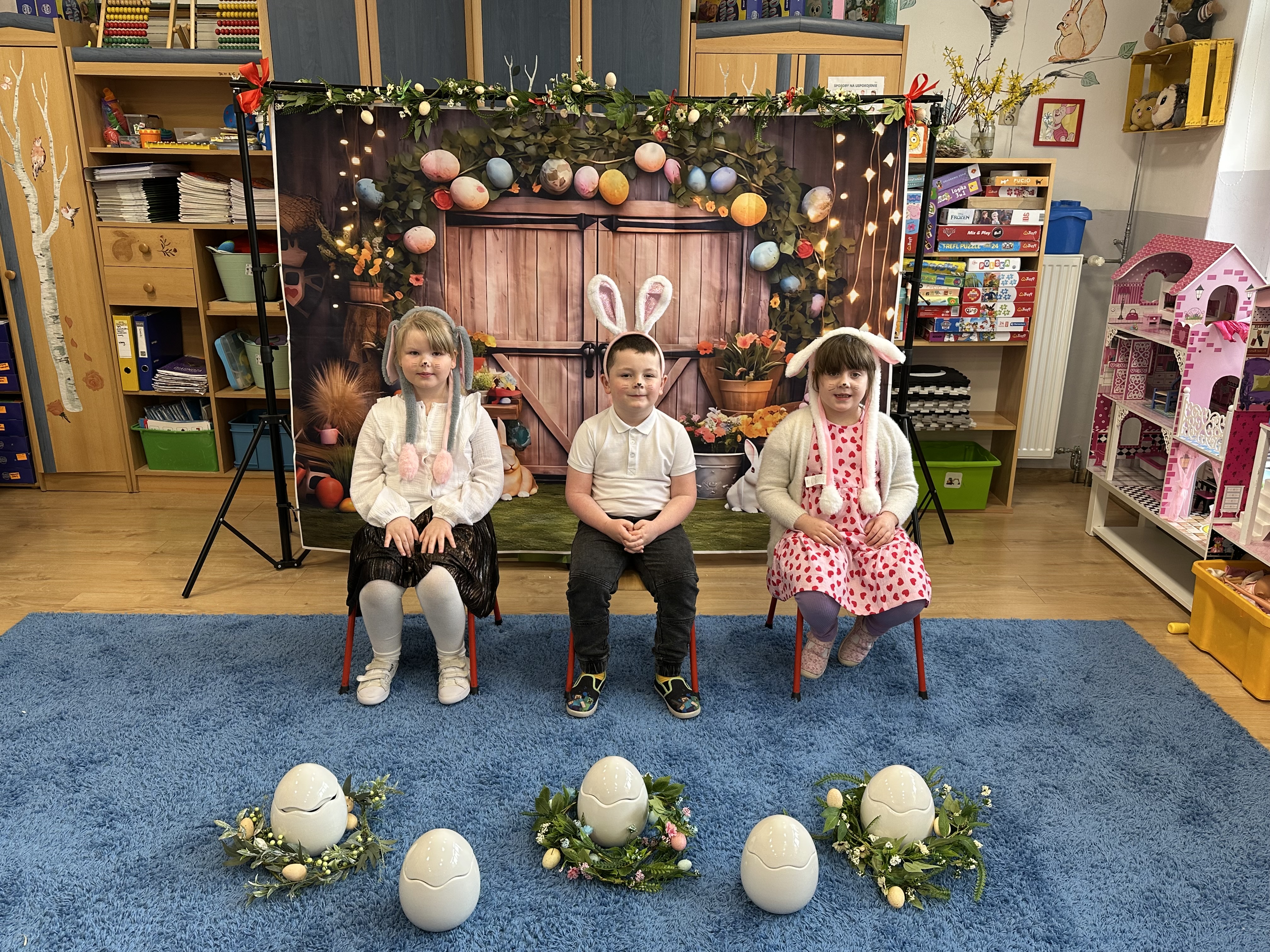 Drugiego kwietnia starszaki oraz pozostałe grupy w naszym przedszkolu rozpoczęły dzień od uroczystego Śniadania Wielkanocnego. Był to wyjątkowy czas pełen radości oraz wspólnego świętowania. Następnie ,,Pszczółki” udały się do ogrodu przedszkolnego, gdzie – zgodnie z tradycją – zajączek ukrył dla nich niespodzianki w postaci czekoladowych jajeczek. Dzieci z ogromnym zaangażowaniem i entuzjazmem poszukiwały upominków, a zabawie towarzyszyło wiele uśmiechu i radosnych emocji. Po powrocie do przedszkola „Pszczółki” wraz z wychowawcą złożyły świąteczne życzenia Pani Dyrektor oraz wszystkim pracownikom placówki, wręczając przy tym drobne wielkanocne upominki. Nie zabrakło również pamiątkowych fotografii, które będą pięknym wspomnieniem tego wyjątkowego dnia. Dzieci złożyły także świąteczne życzenia rodzicom oraz całej społeczności przedszkolnej. Życzenia te zostały uwiecznione na specjalnie przygotowanym filmiku.