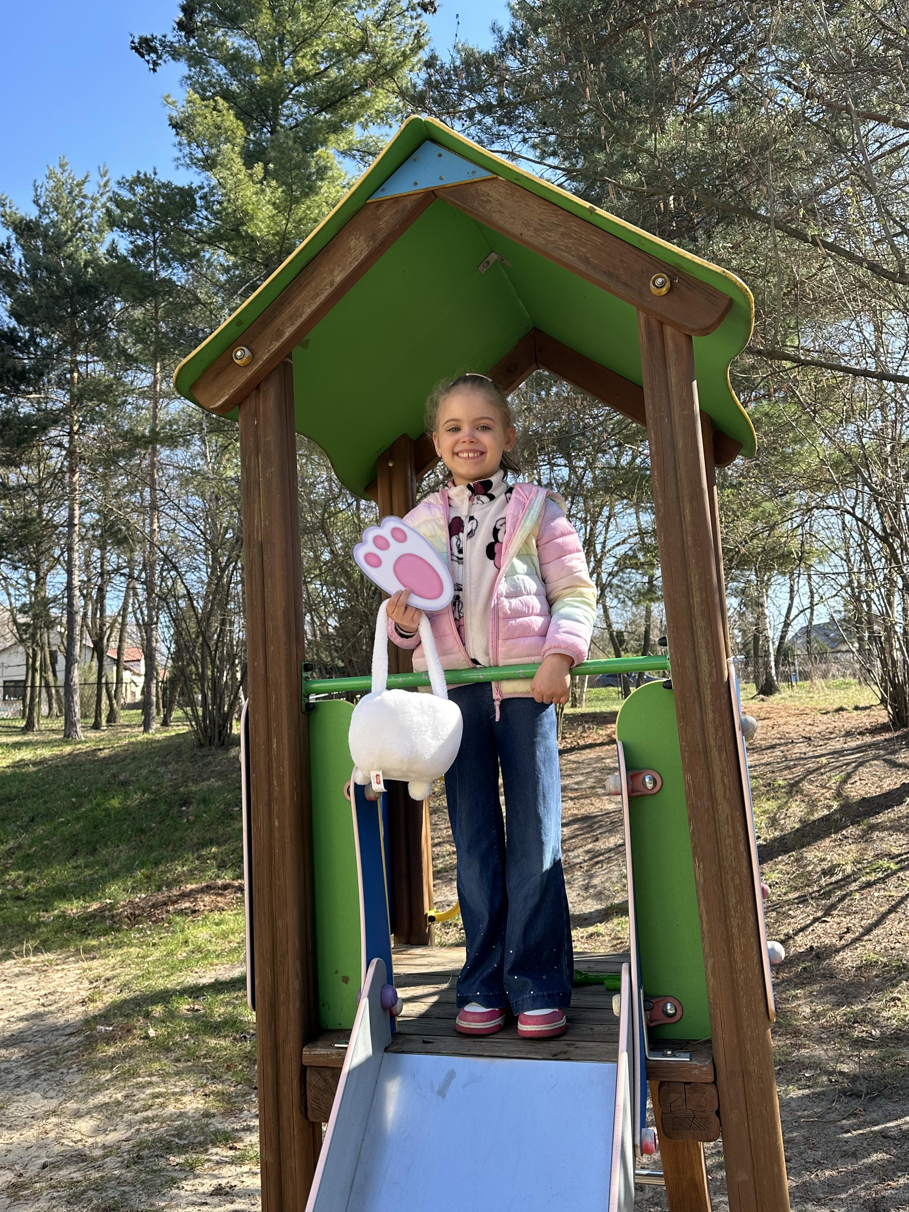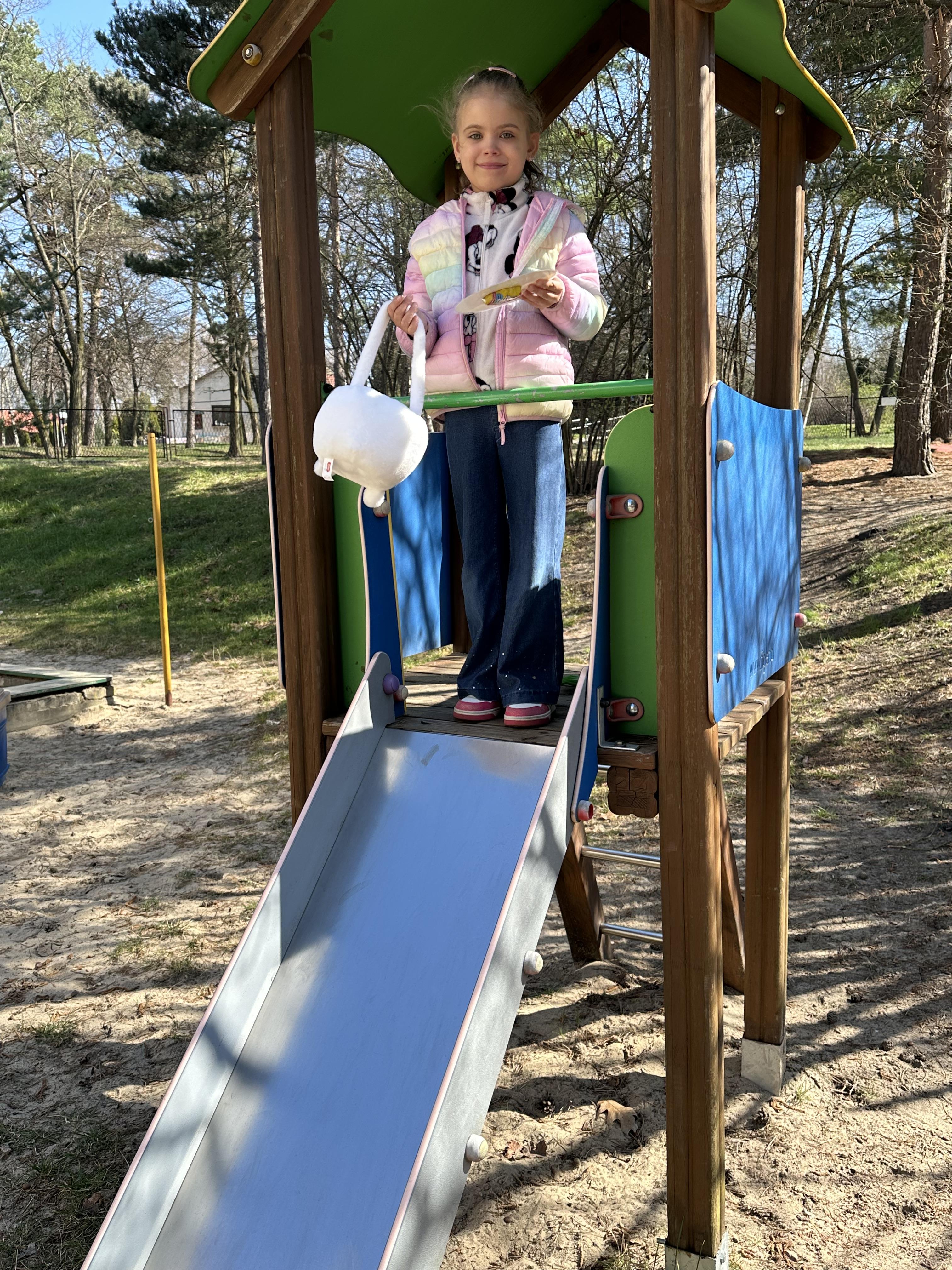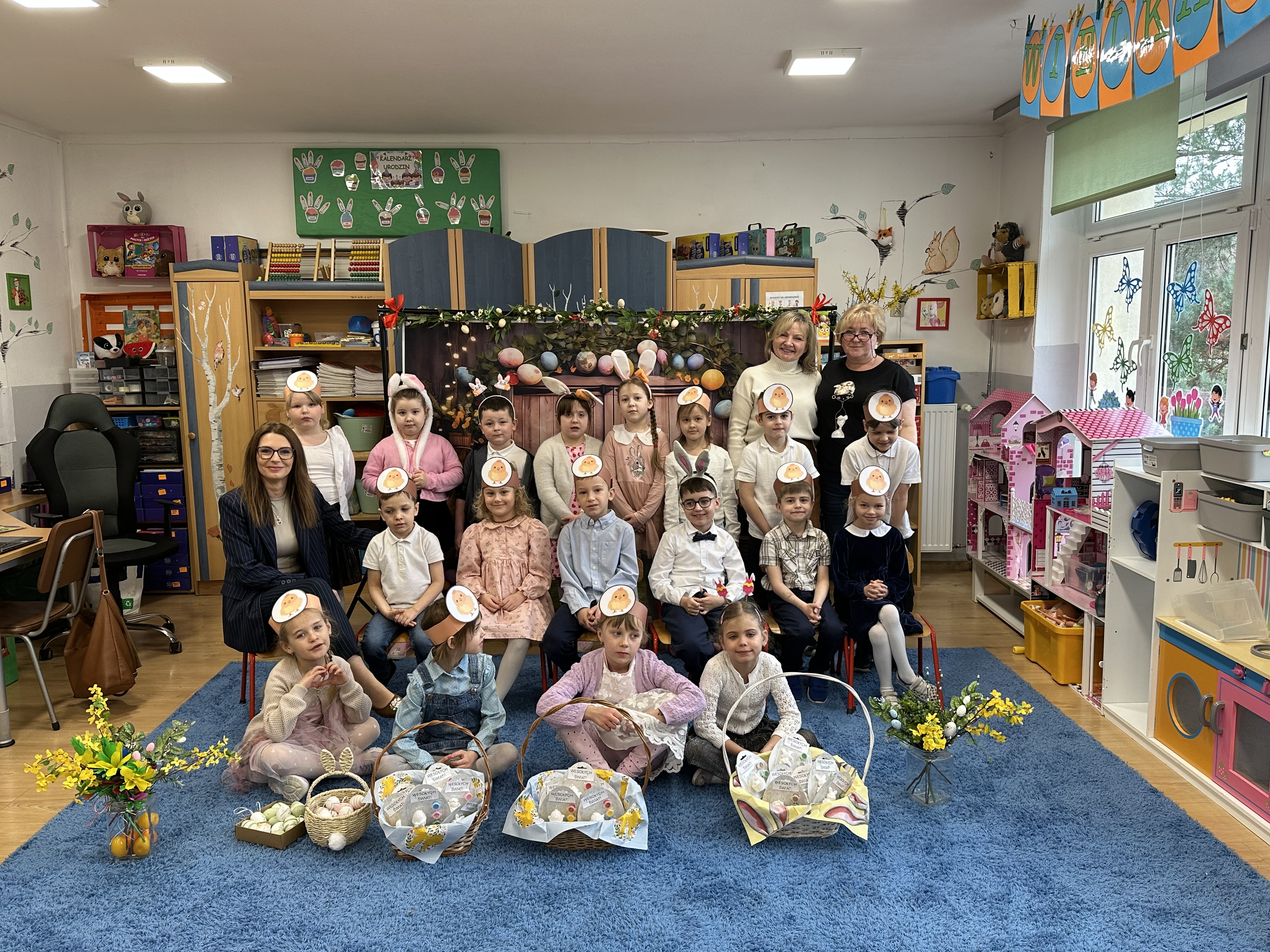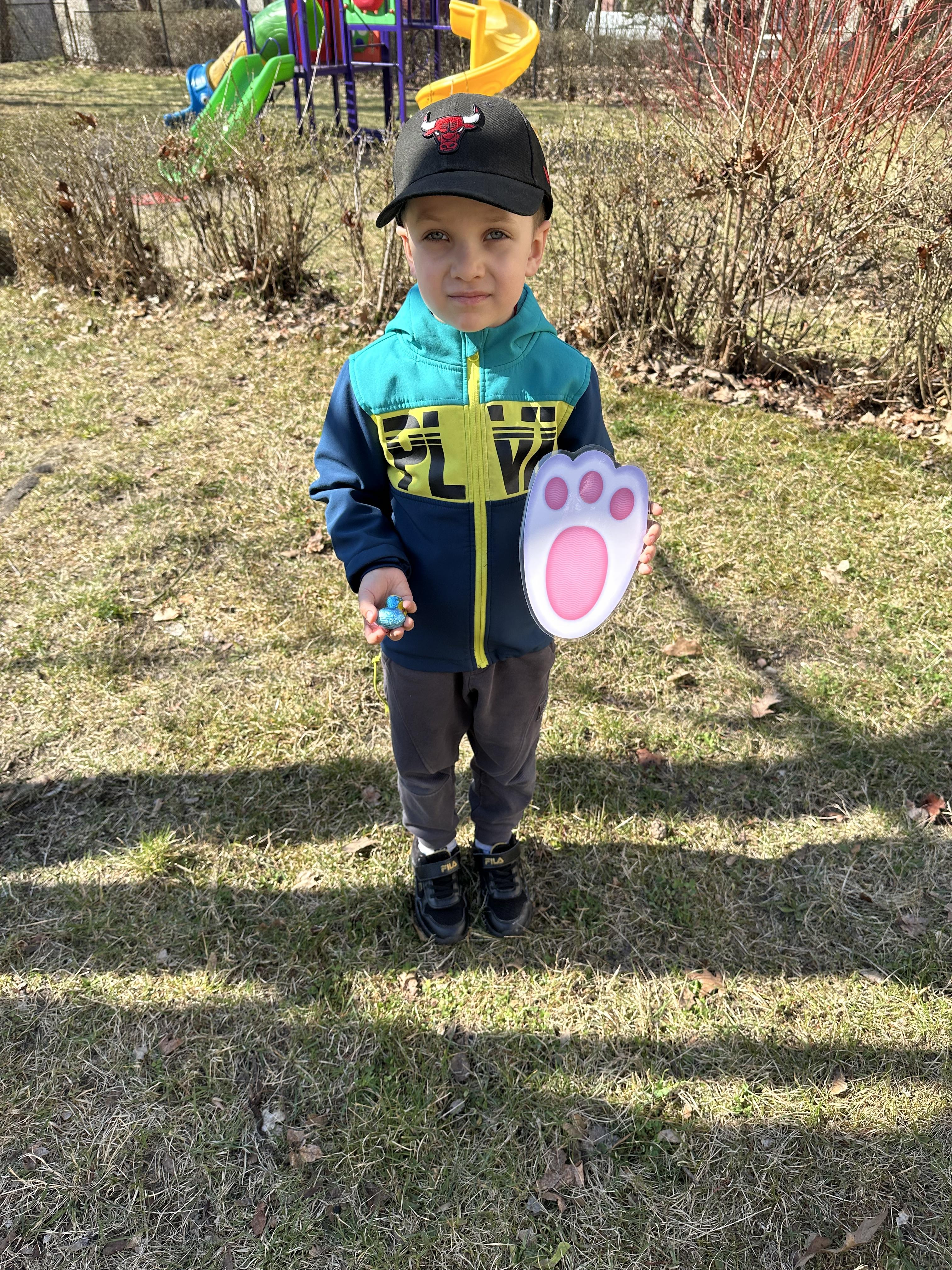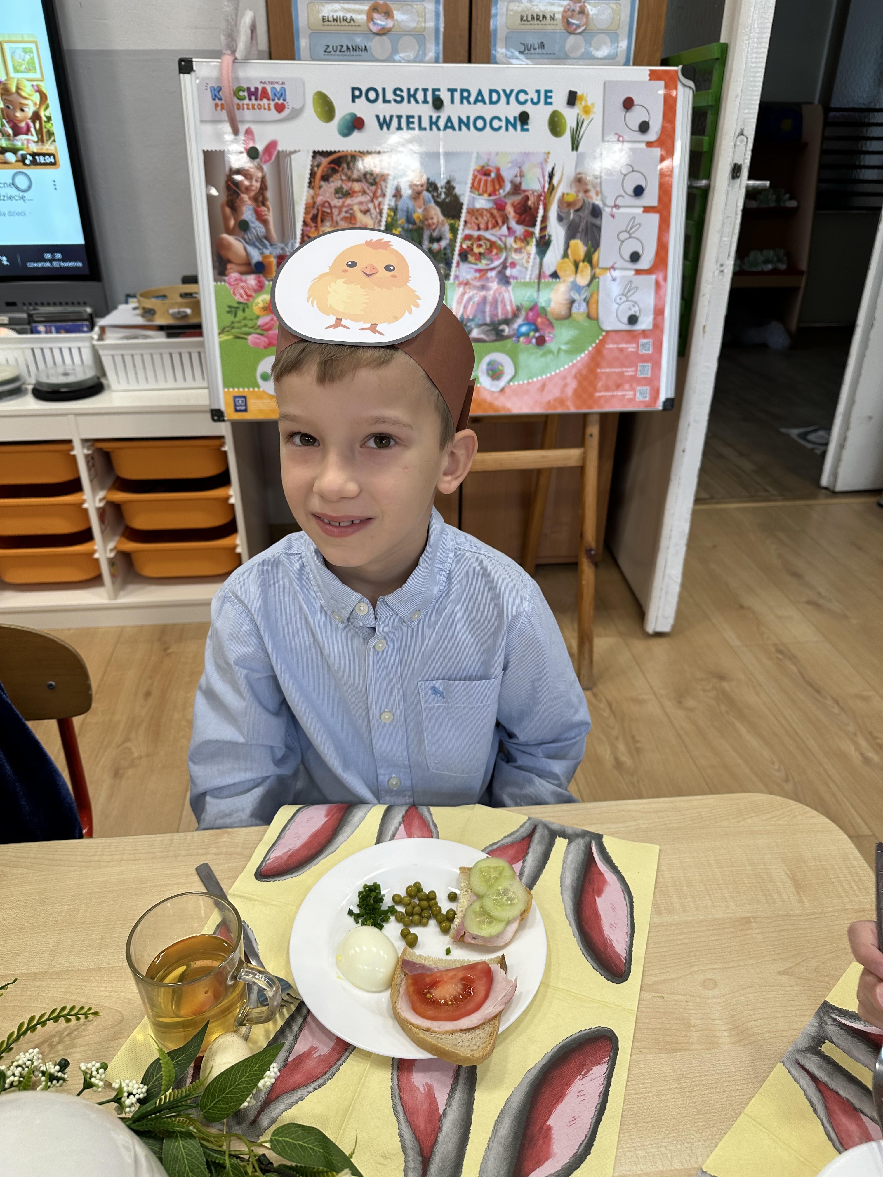 Drugiego kwietnia starszaki oraz pozostałe grupy w naszym przedszkolu rozpoczęły dzień od uroczystego Śniadania Wielkanocnego. Był to wyjątkowy czas pełen radości oraz wspólnego świętowania. Następnie ,,Pszczółki” udały się do ogrodu przedszkolnego, gdzie – zgodnie z tradycją – zajączek ukrył dla nich niespodzianki w postaci czekoladowych jajeczek. Dzieci z ogromnym zaangażowaniem i entuzjazmem poszukiwały upominków, a zabawie towarzyszyło wiele uśmiechu i radosnych emocji. Po powrocie do przedszkola „Pszczółki” wraz z wychowawcą złożyły świąteczne życzenia Pani Dyrektor oraz wszystkim pracownikom placówki, wręczając przy tym drobne wielkanocne upominki. Nie zabrakło również pamiątkowych fotografii, które będą pięknym wspomnieniem tego wyjątkowego dnia. Dzieci złożyły także świąteczne życzenia rodzicom oraz całej społeczności przedszkolnej. Życzenia te zostały uwiecznione na specjalnie przygotowanym filmiku.
